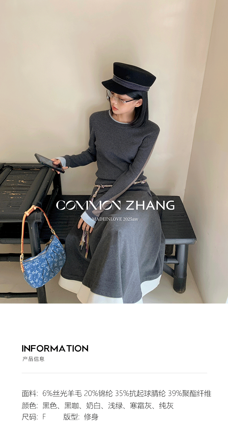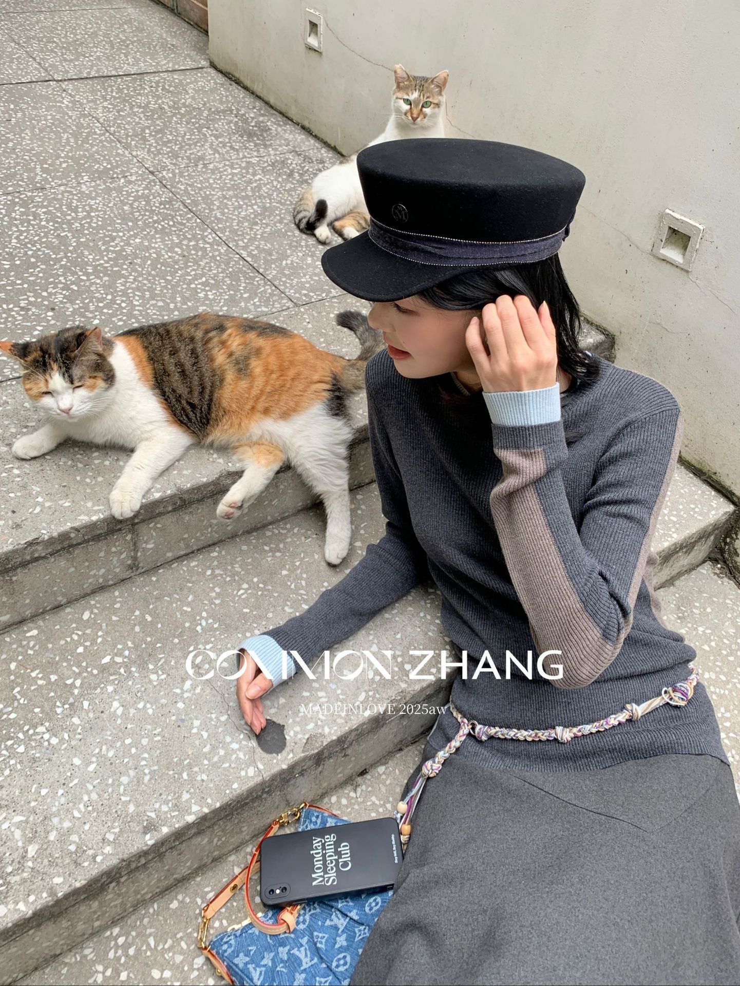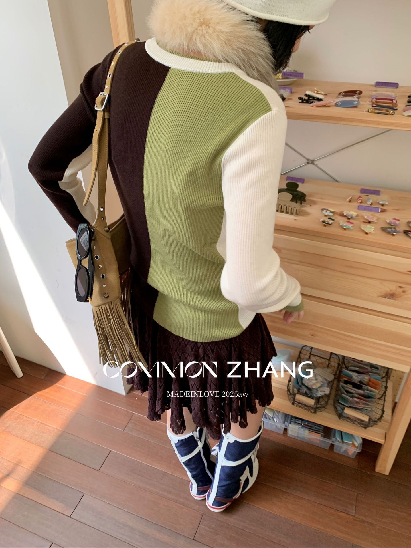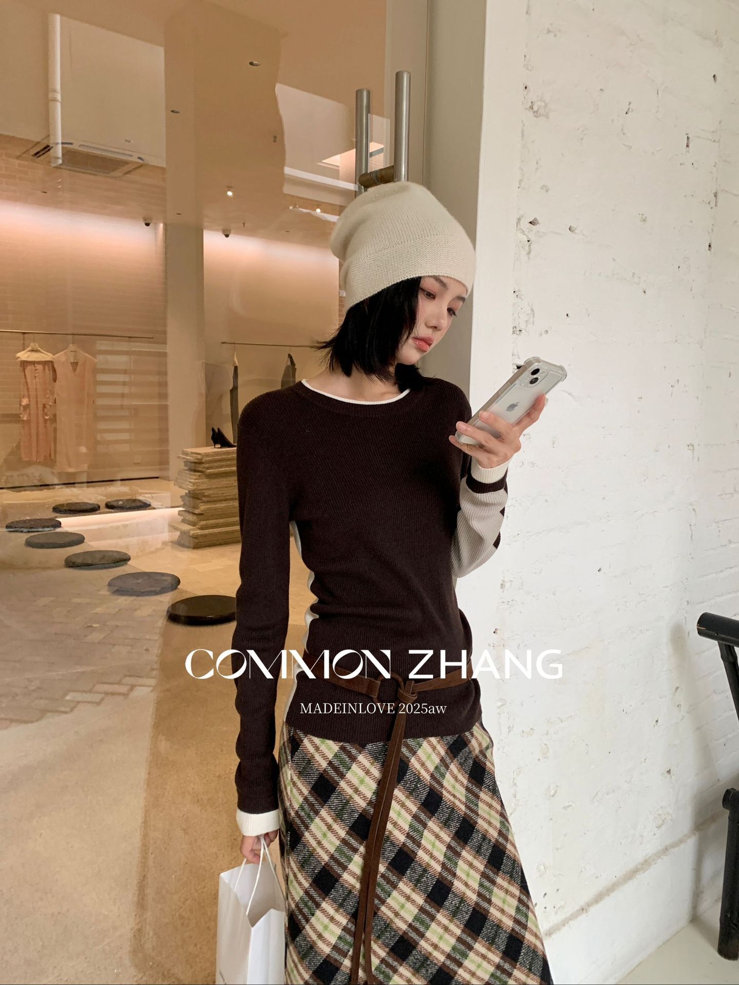 *o-ha-you*【FCZCB405043】秋冬設計感撞色拼接羊毛針織衫女修身打底衫毛衣-6色