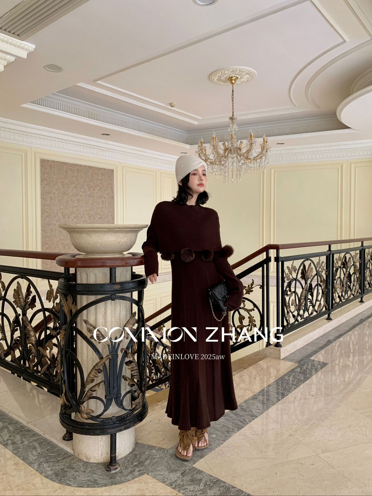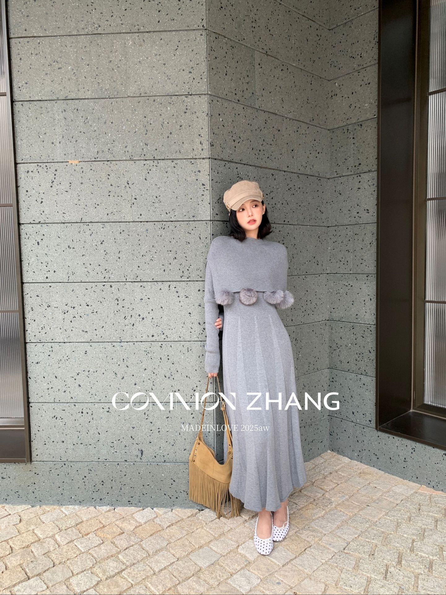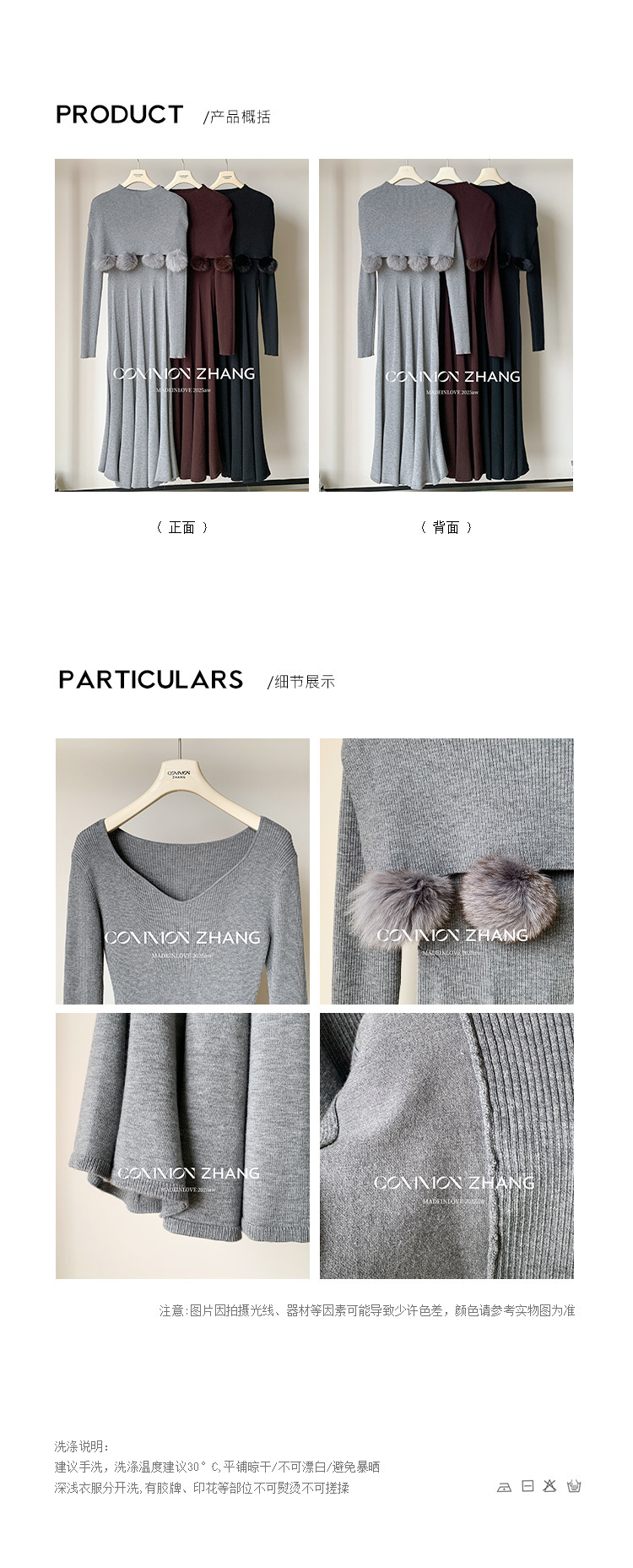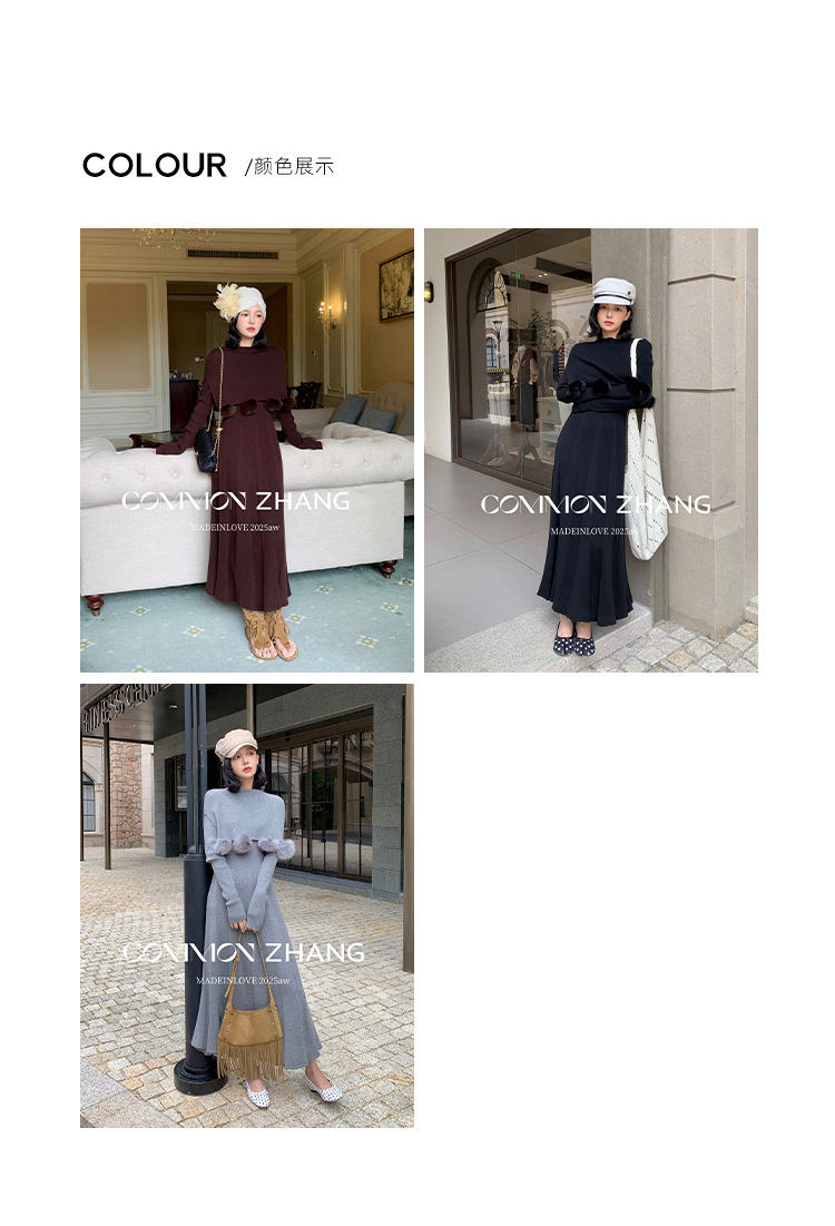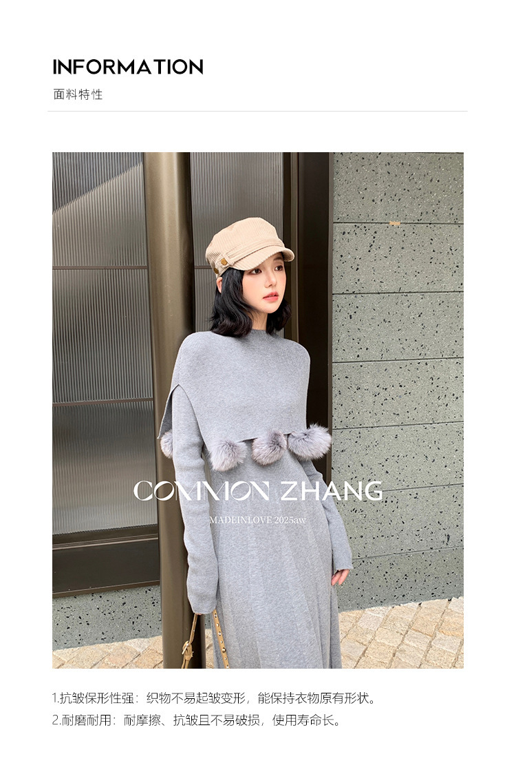 *o-ha-you*【FCZCB405050】秋冬V領針織連衣裙套頭毛球披肩兩件女名媛長裙洋裝-3色