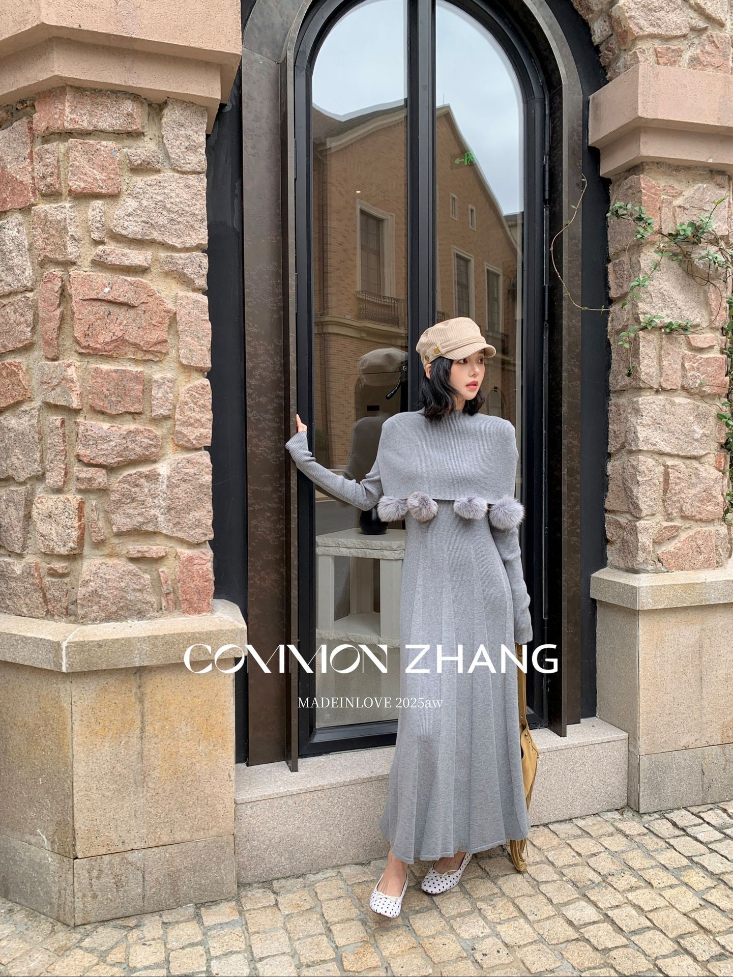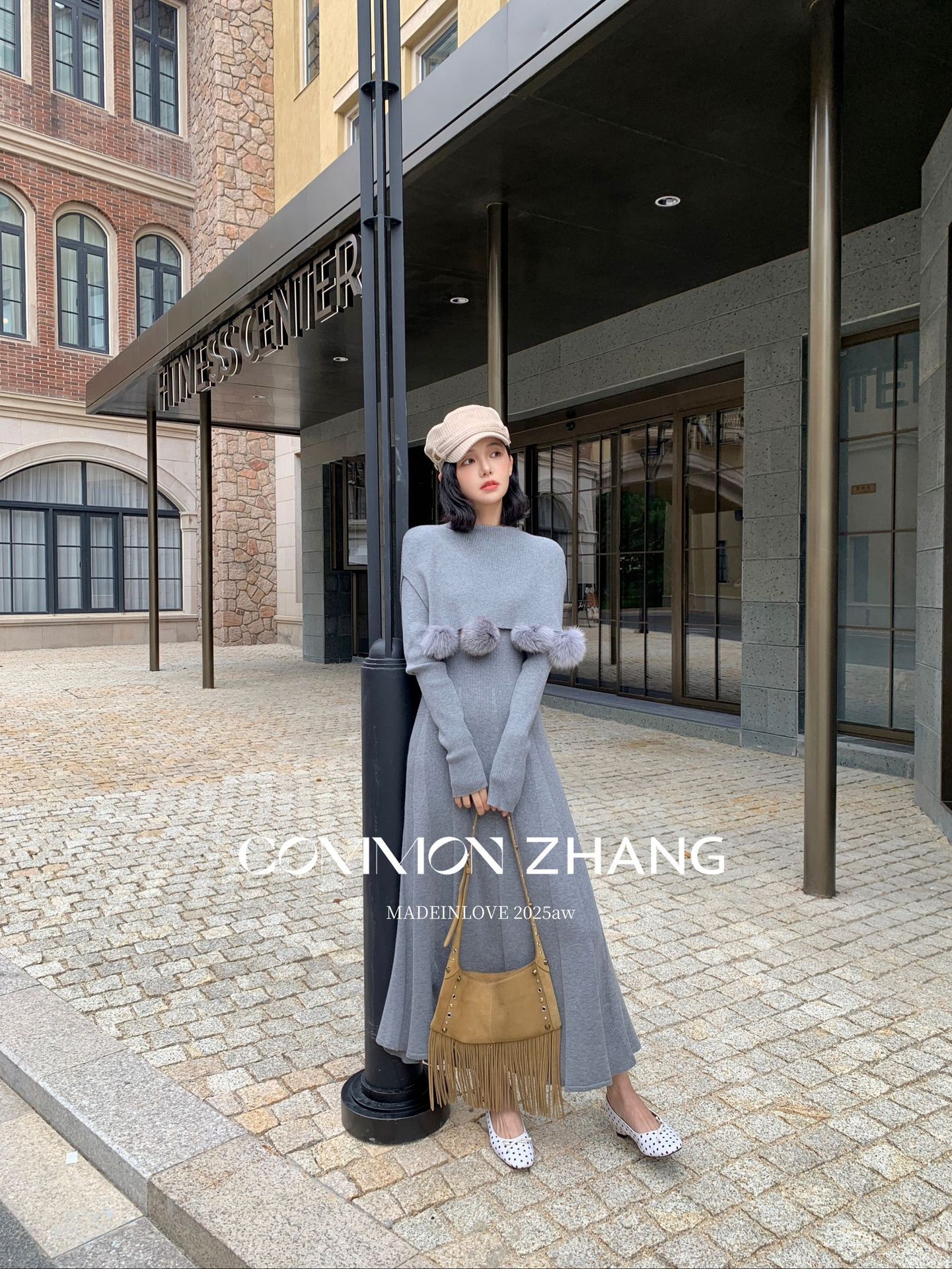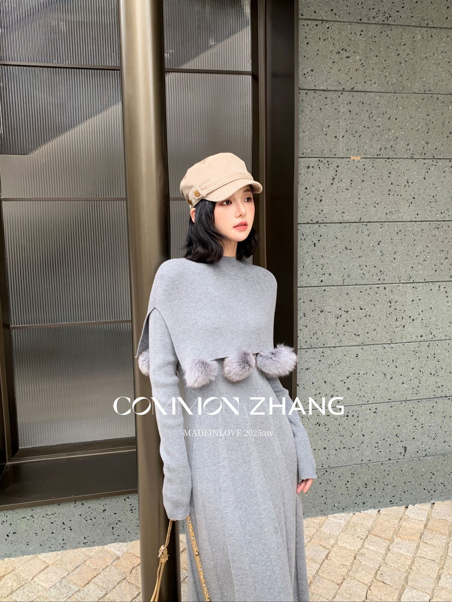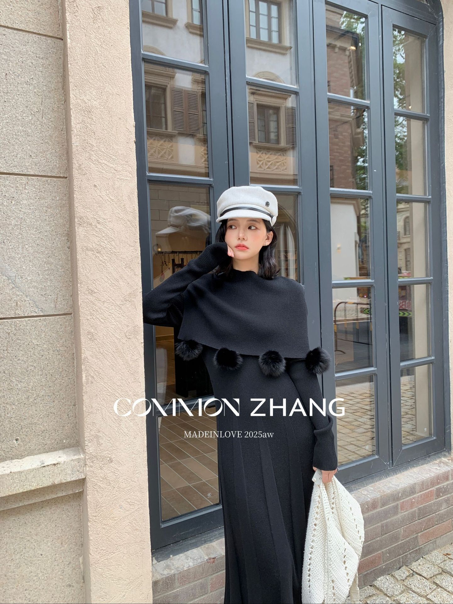 *o-ha-you*【FCZCB405050】秋冬V領針織連衣裙套頭毛球披肩兩件女名媛長裙洋裝-3色