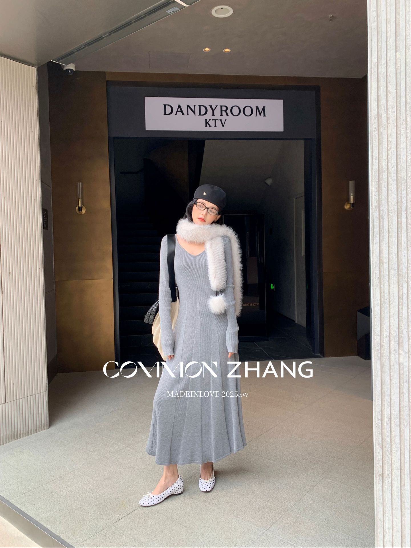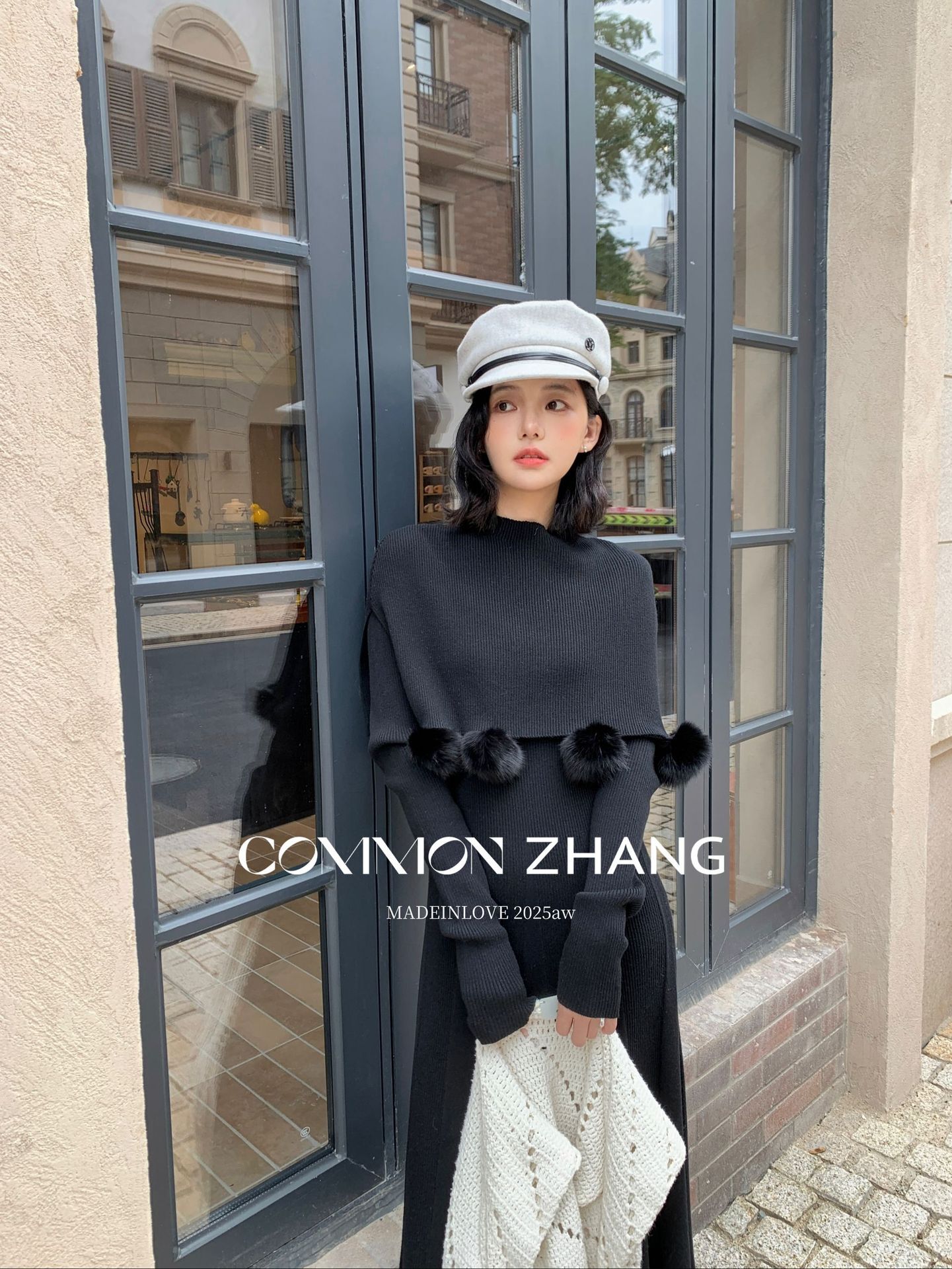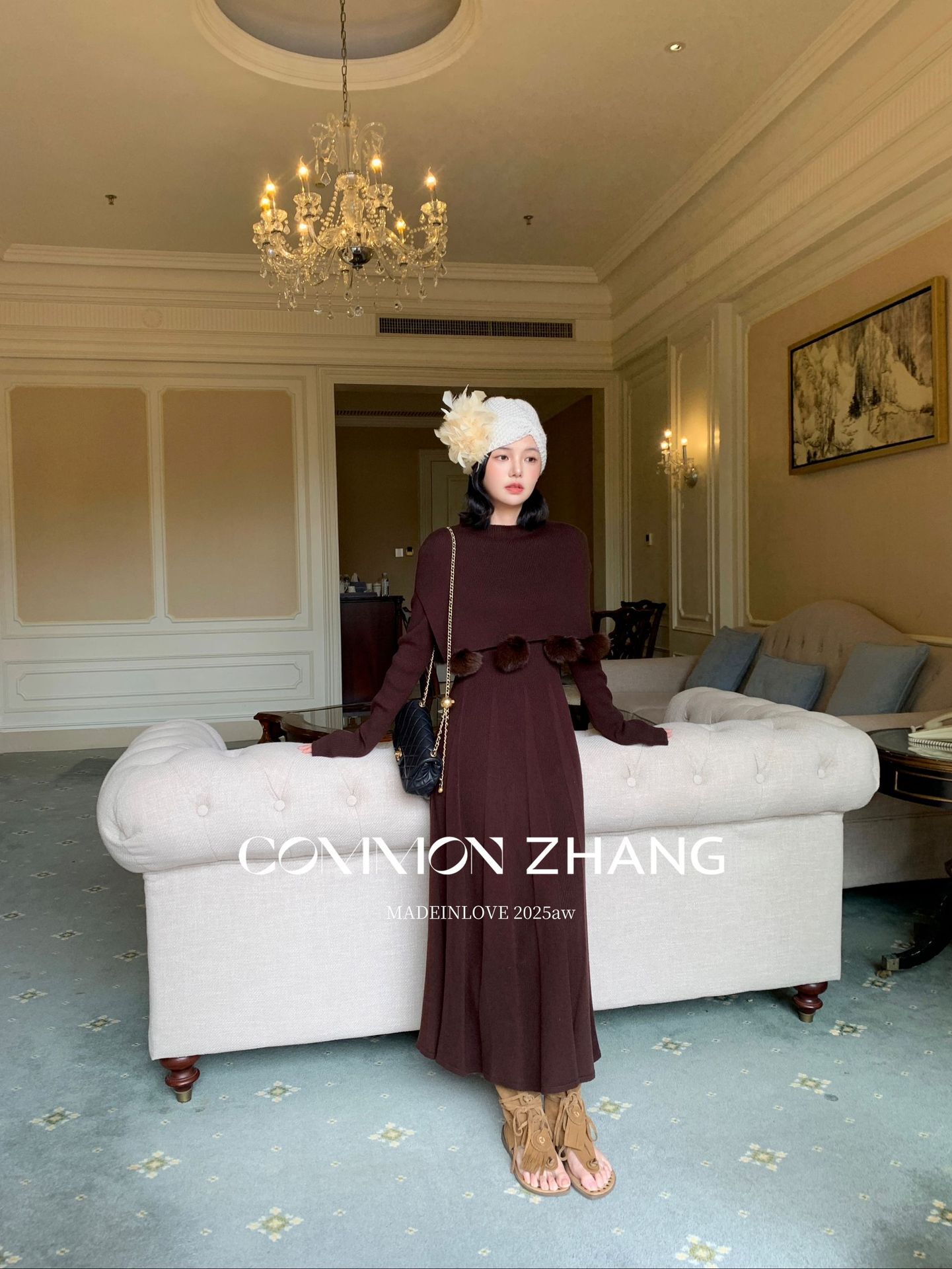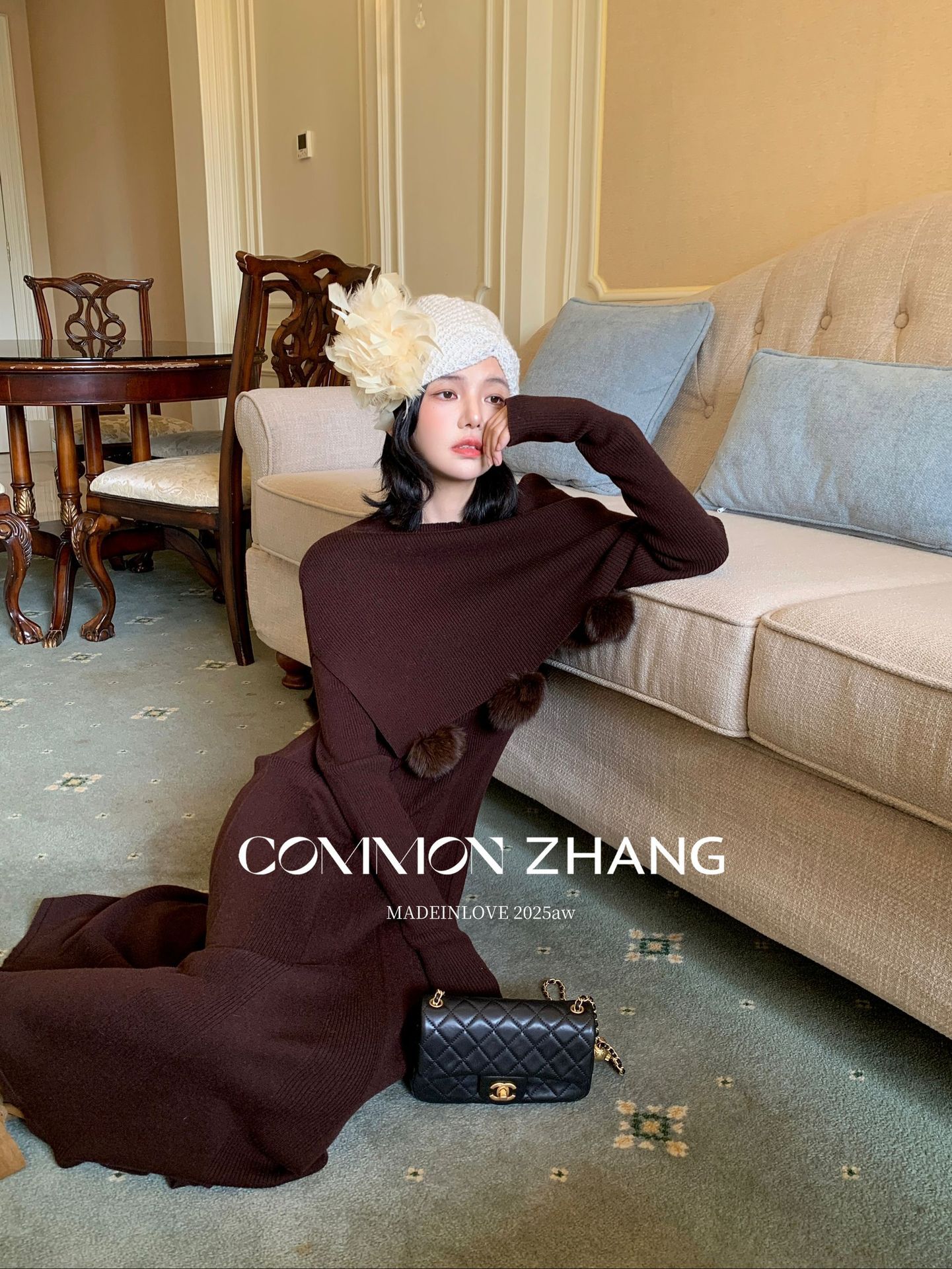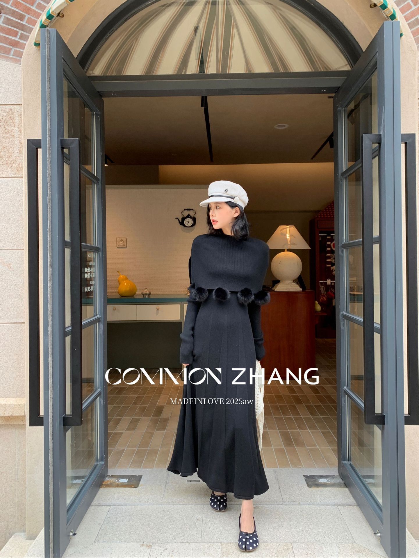 *o-ha-you*【FCZCB405050】秋冬V領針織連衣裙套頭毛球披肩兩件女名媛長裙洋裝-3色