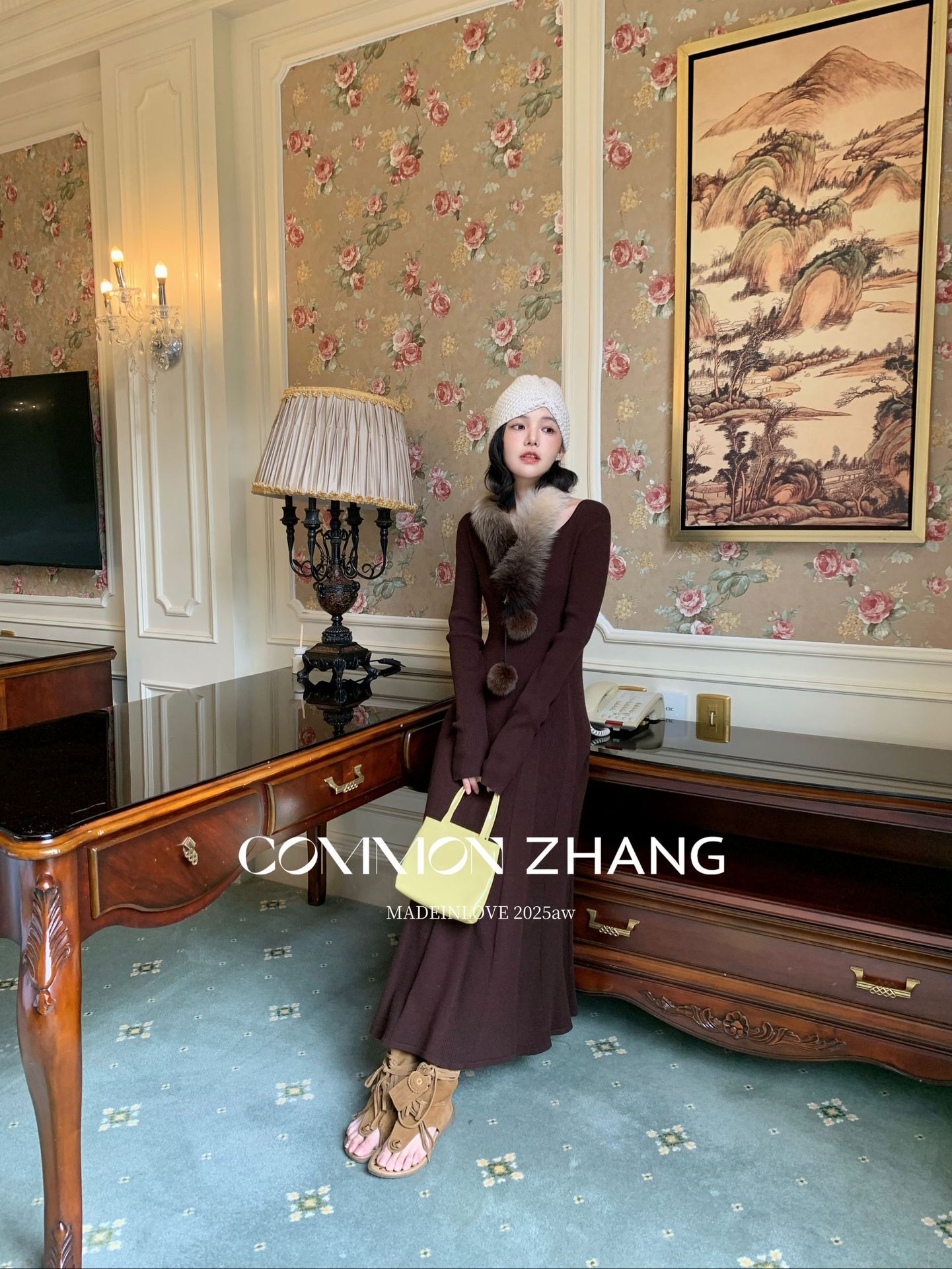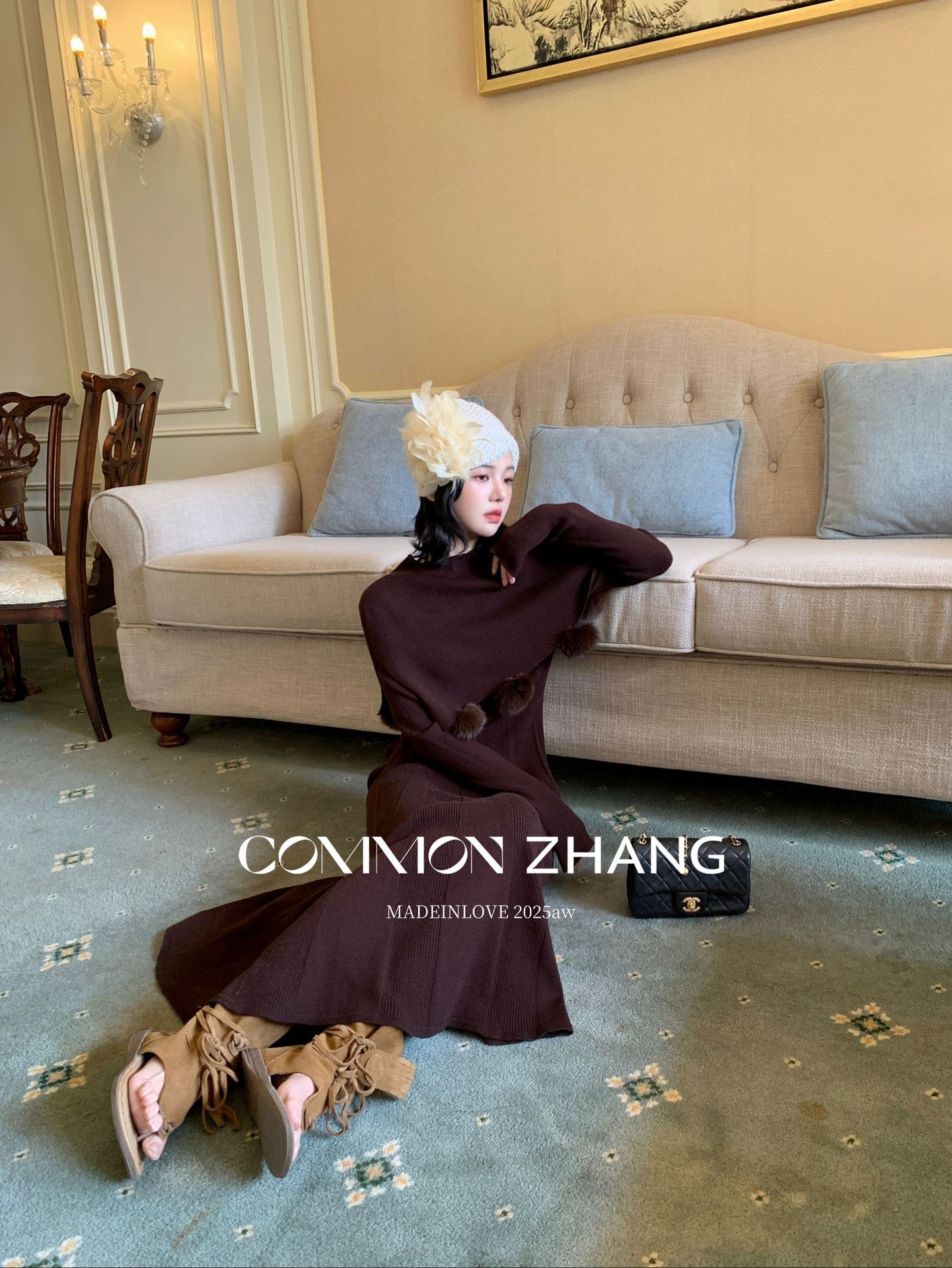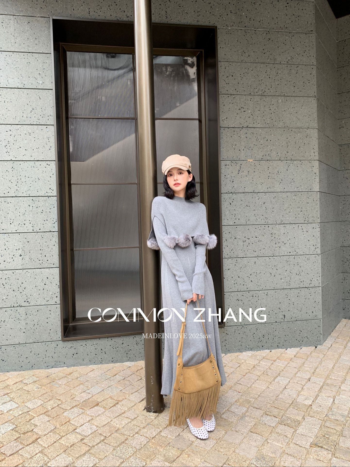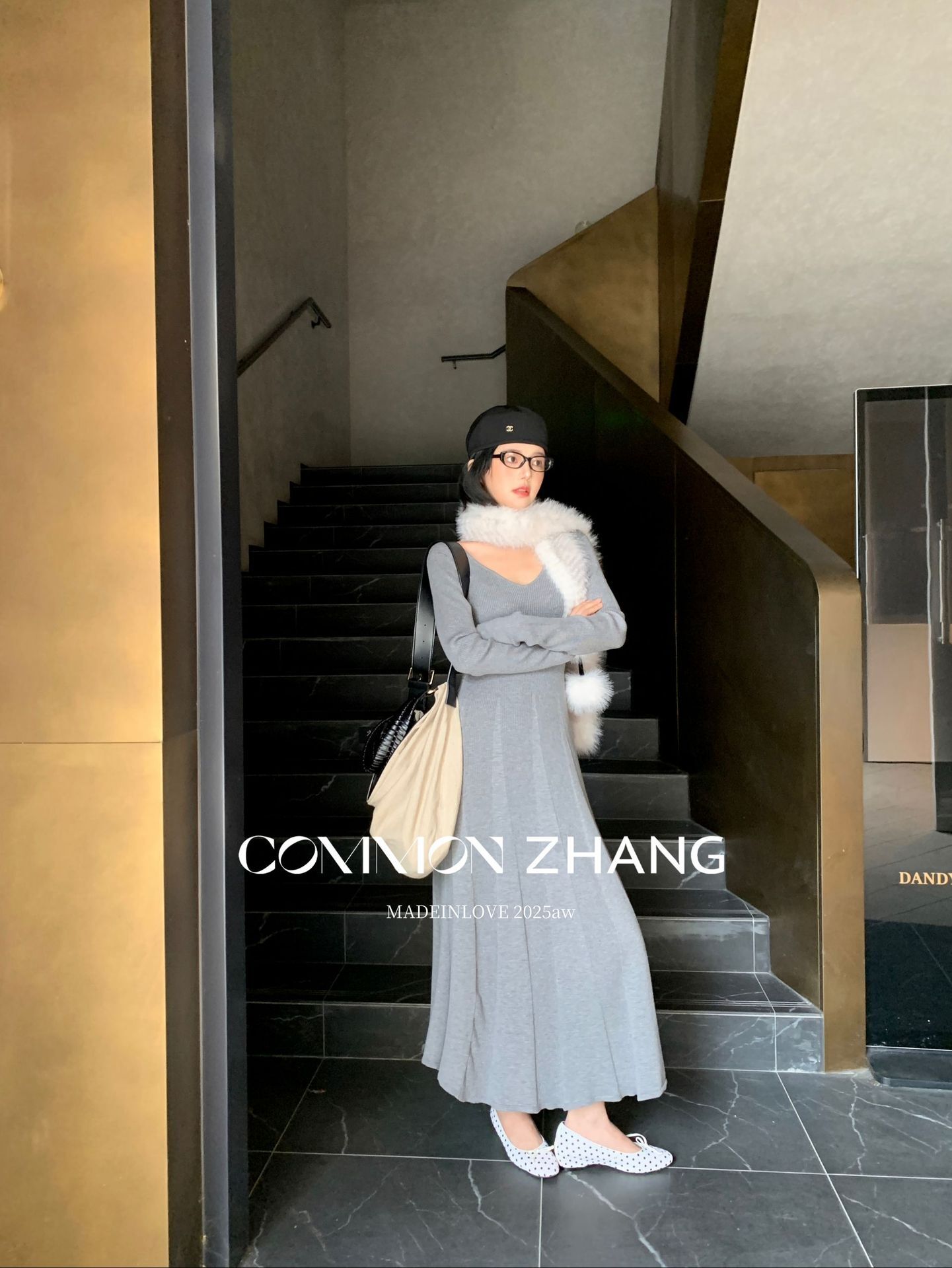 *o-ha-you*【FCZCB405050】秋冬V領針織連衣裙套頭毛球披肩兩件女名媛長裙洋裝-3色