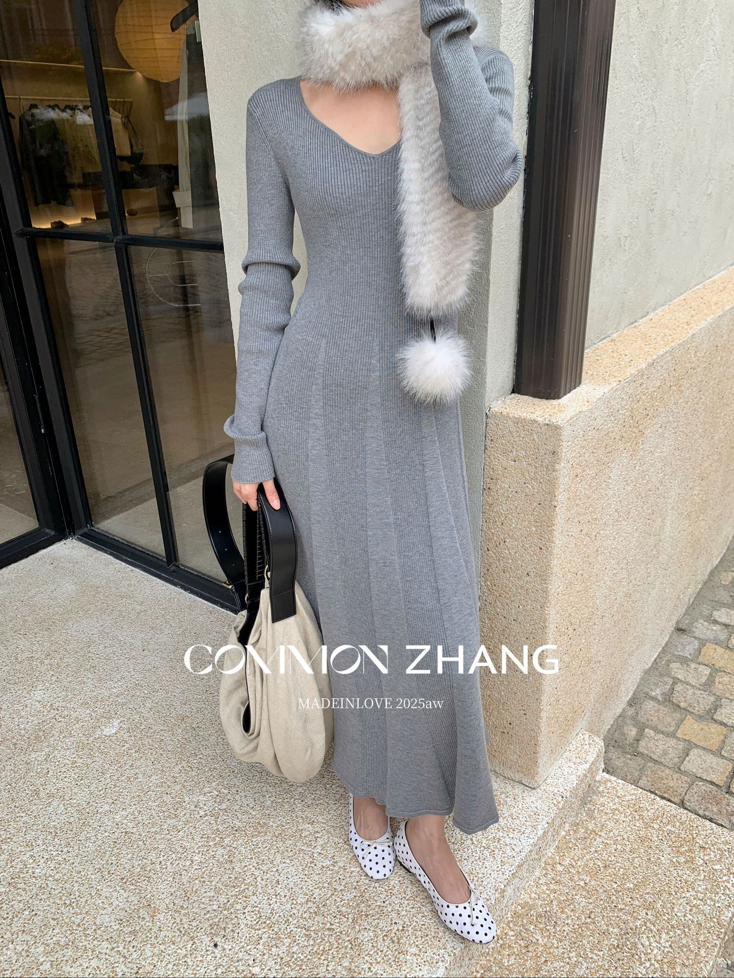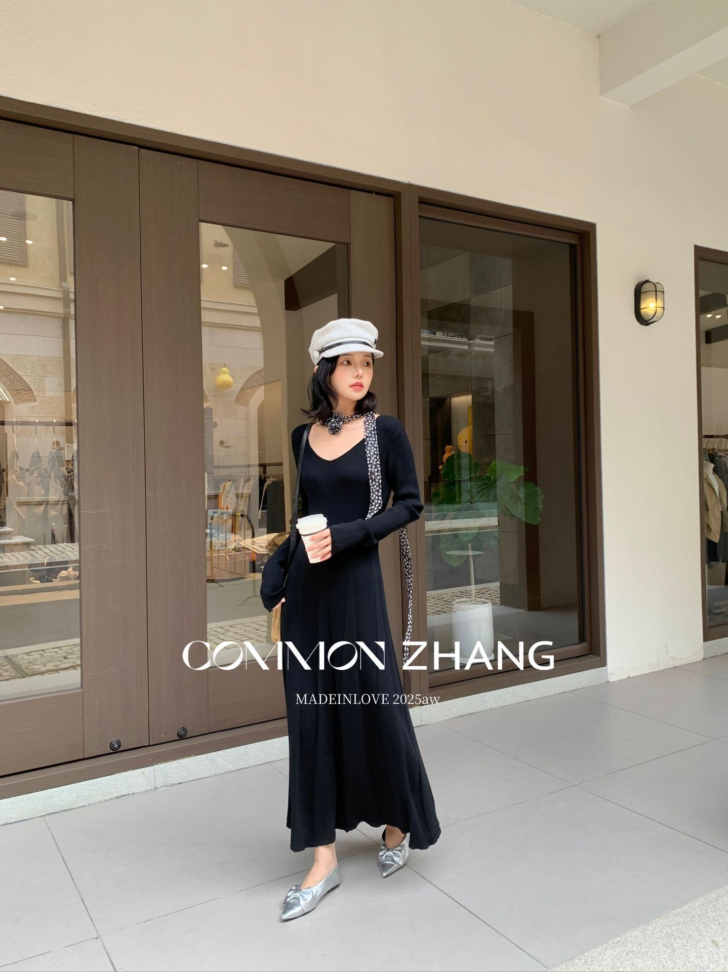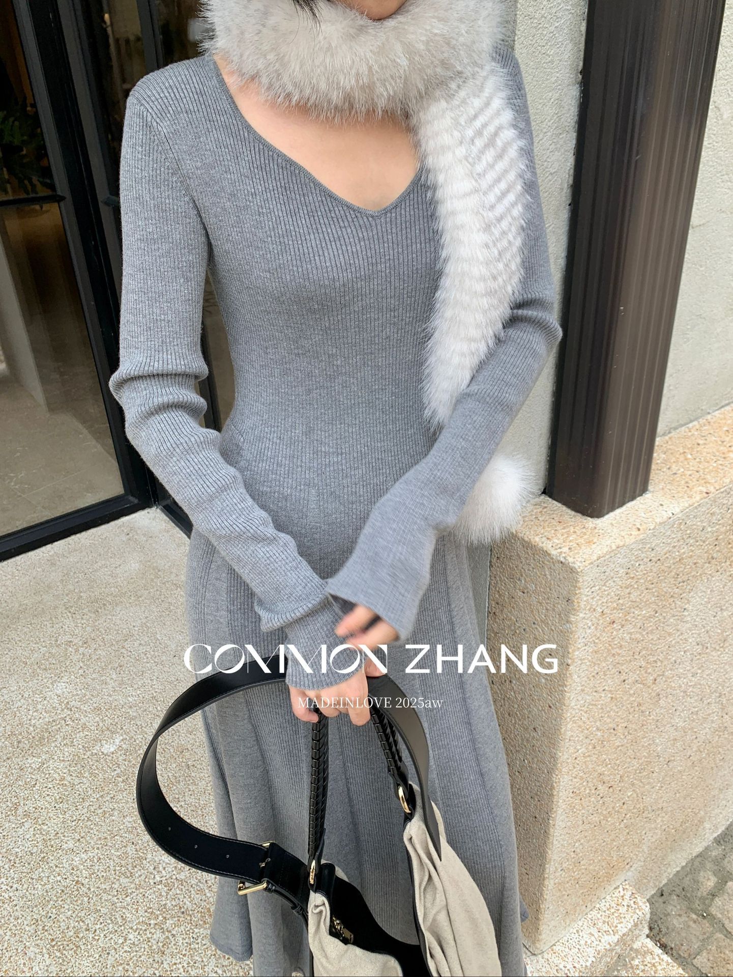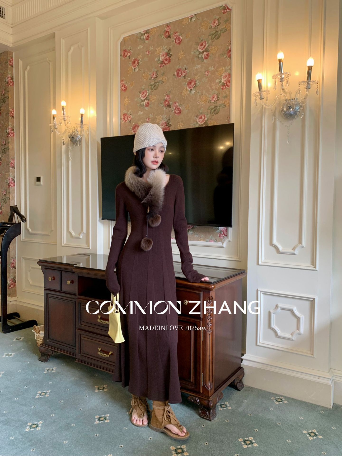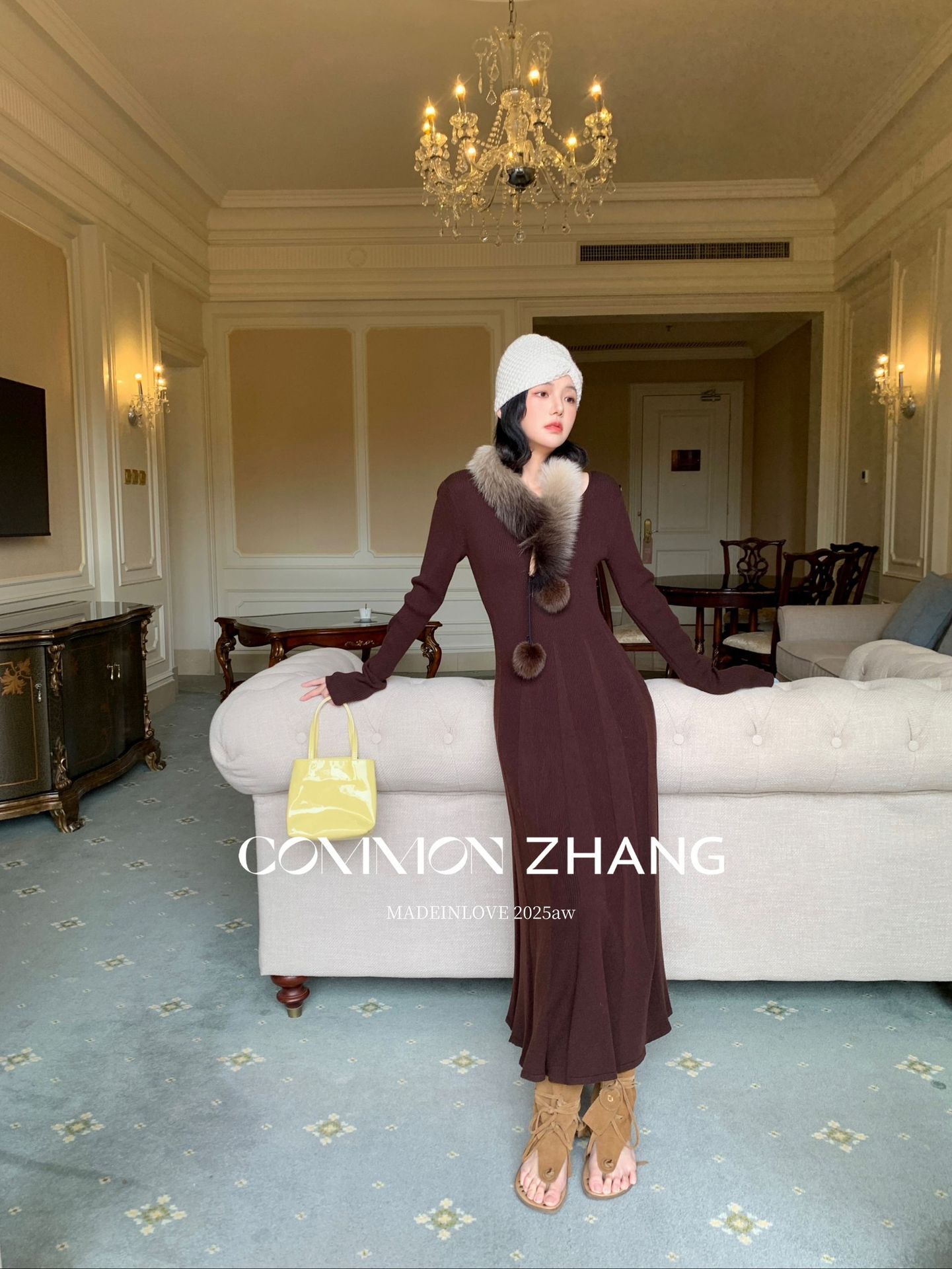 *o-ha-you*【FCZCB405050】秋冬V領針織連衣裙套頭毛球披肩兩件女名媛長裙洋裝-3色