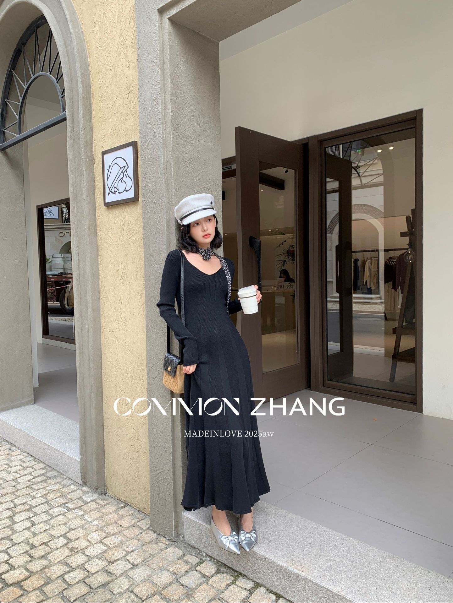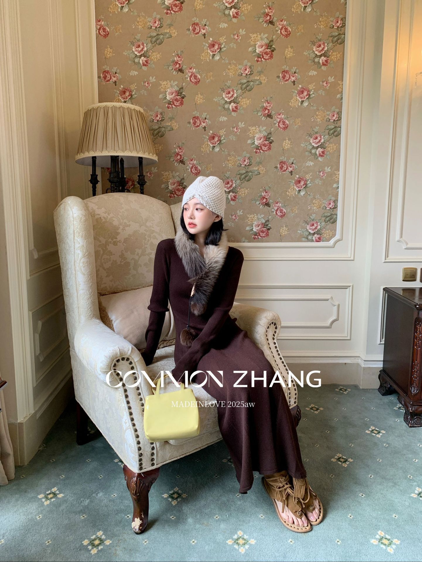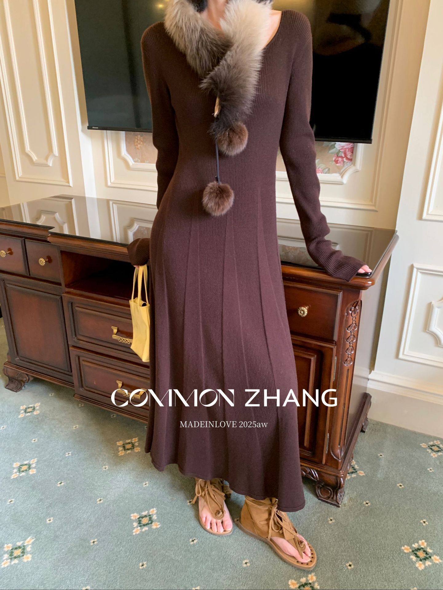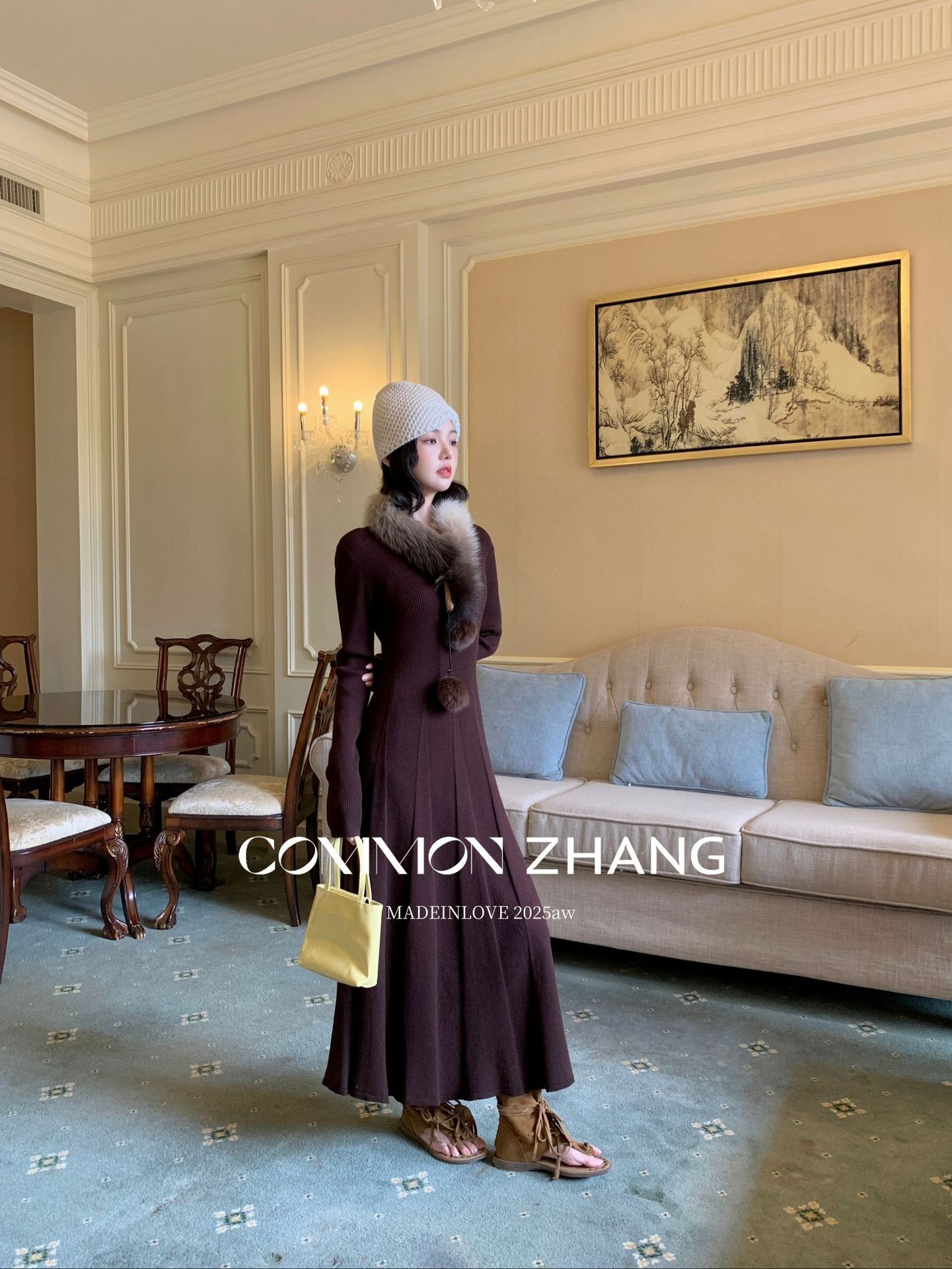 *o-ha-you*【FCZCB405050】秋冬V領針織連衣裙套頭毛球披肩兩件女名媛長裙洋裝-3色