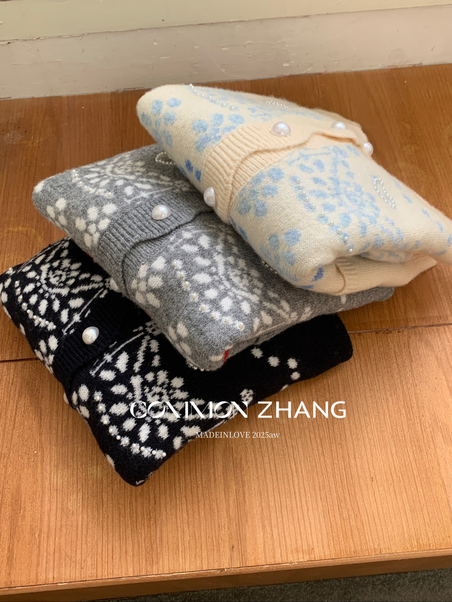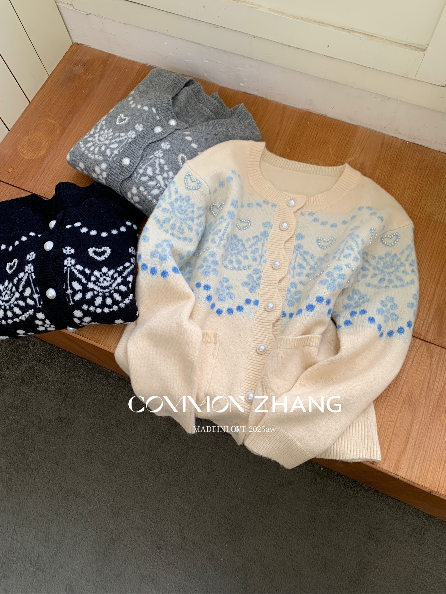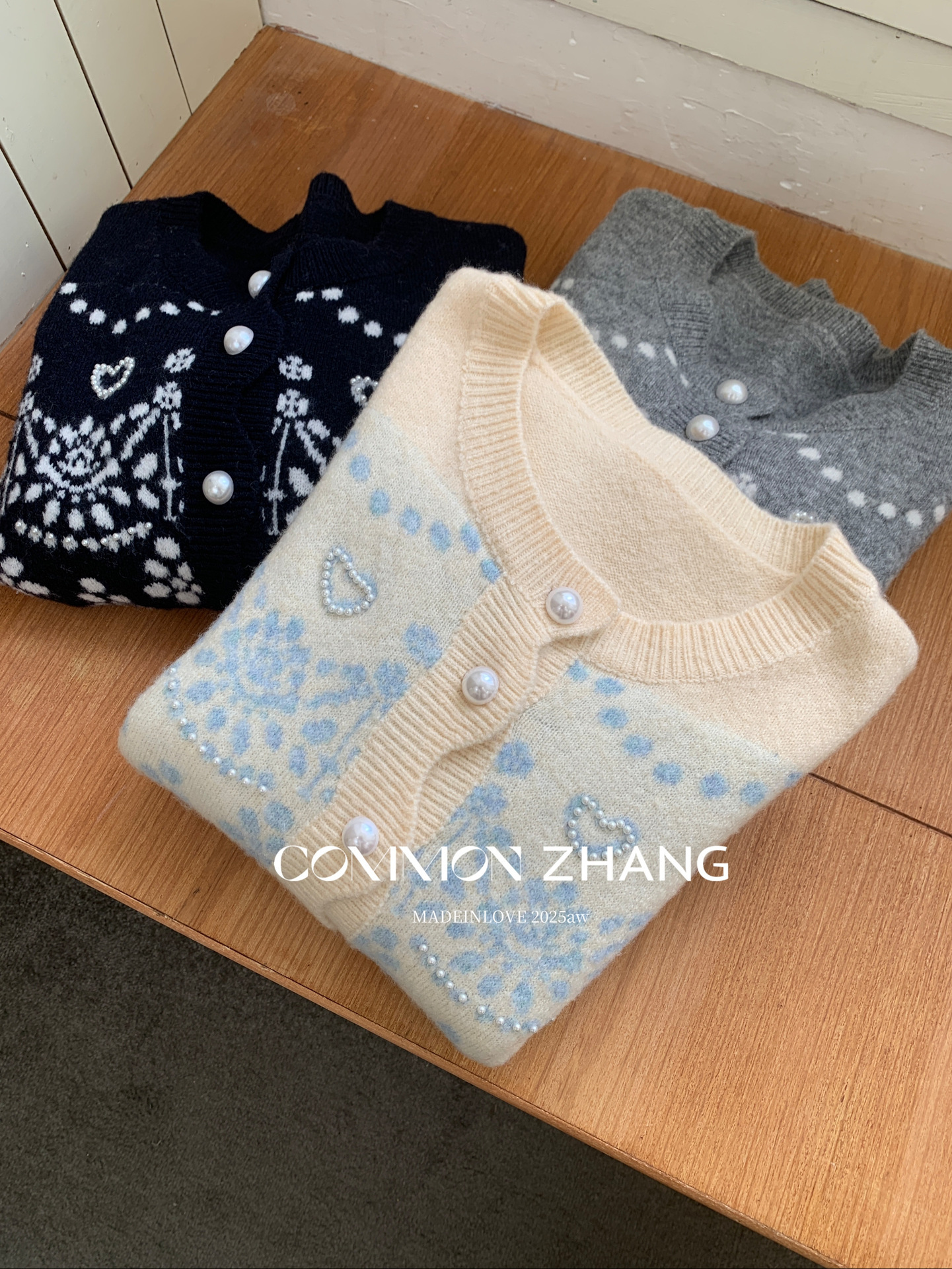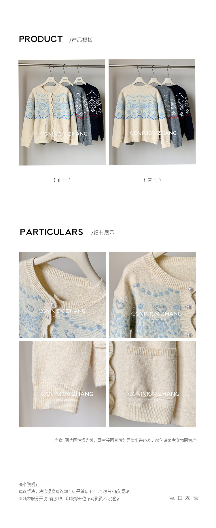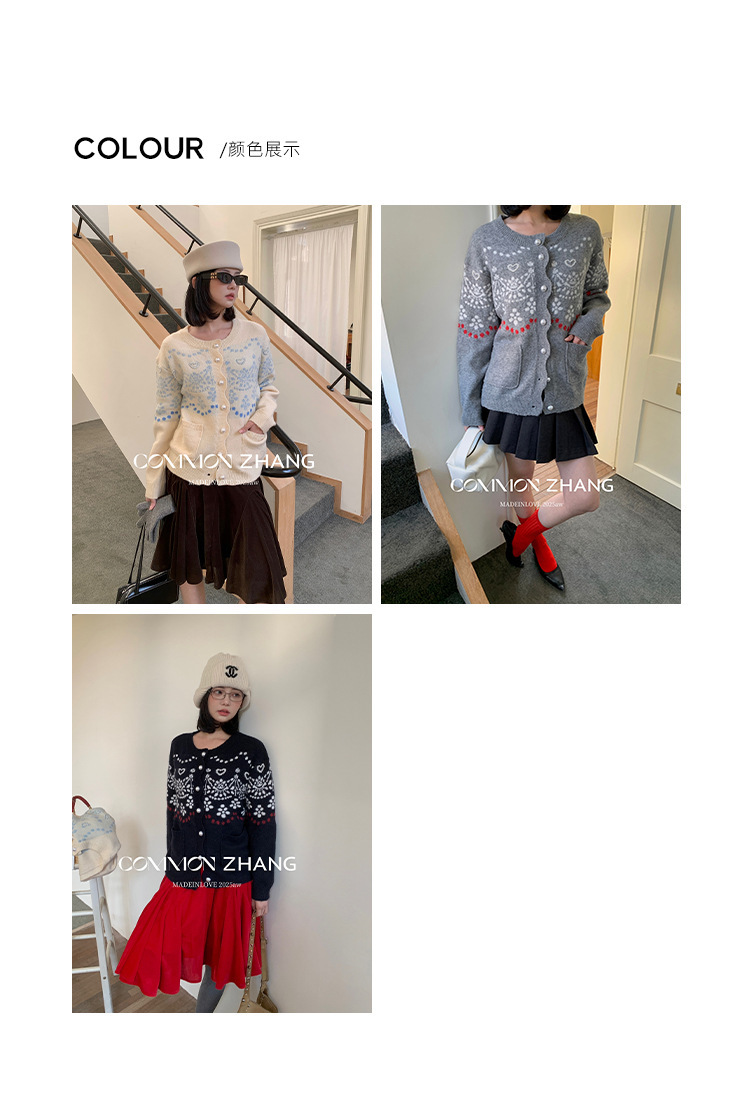 *o-ha-you*【FCZCB405218】秋冬釘珠羊毛針織開襟衫女甜美撞色提花減齡毛衣外套-3色