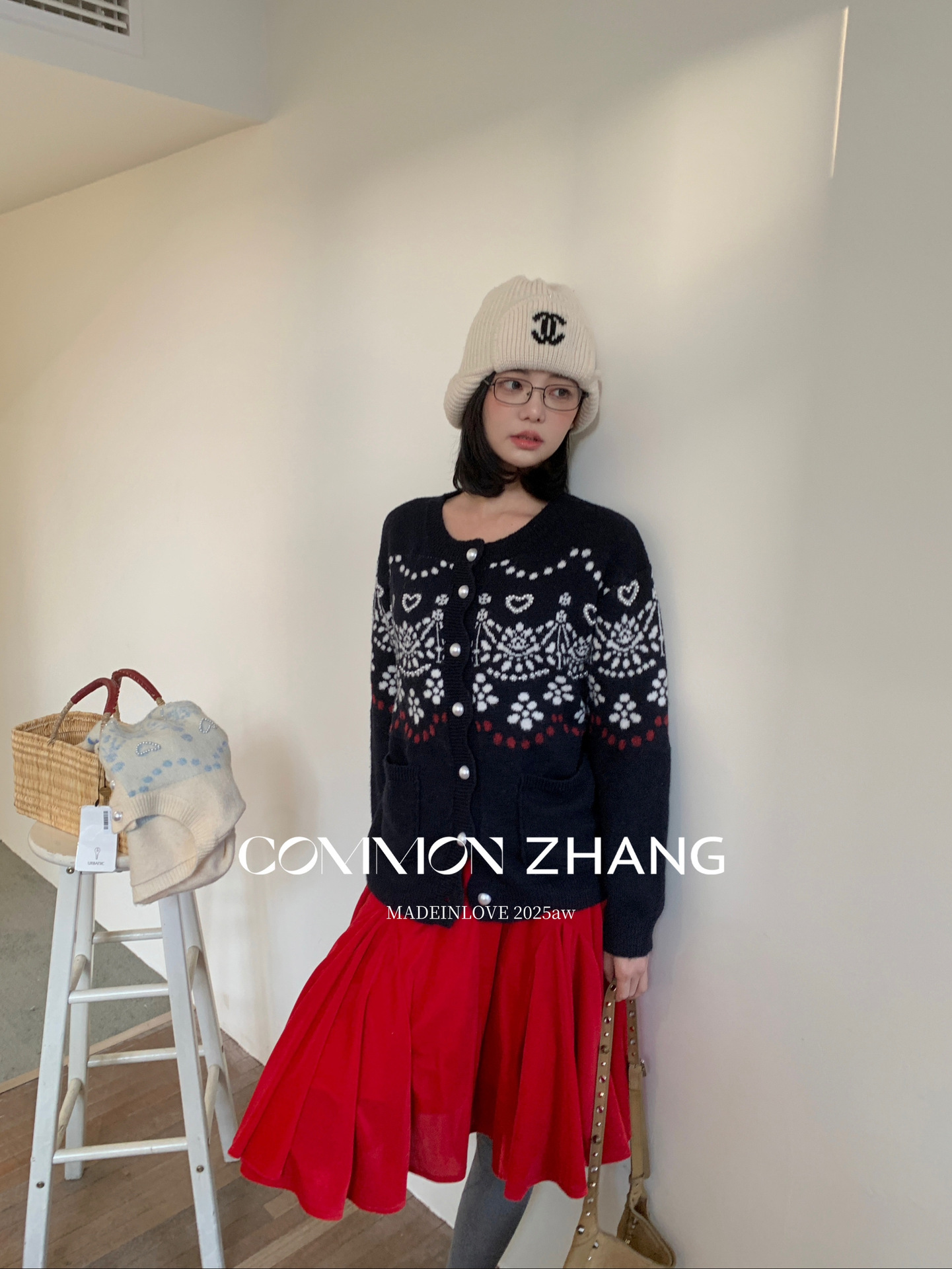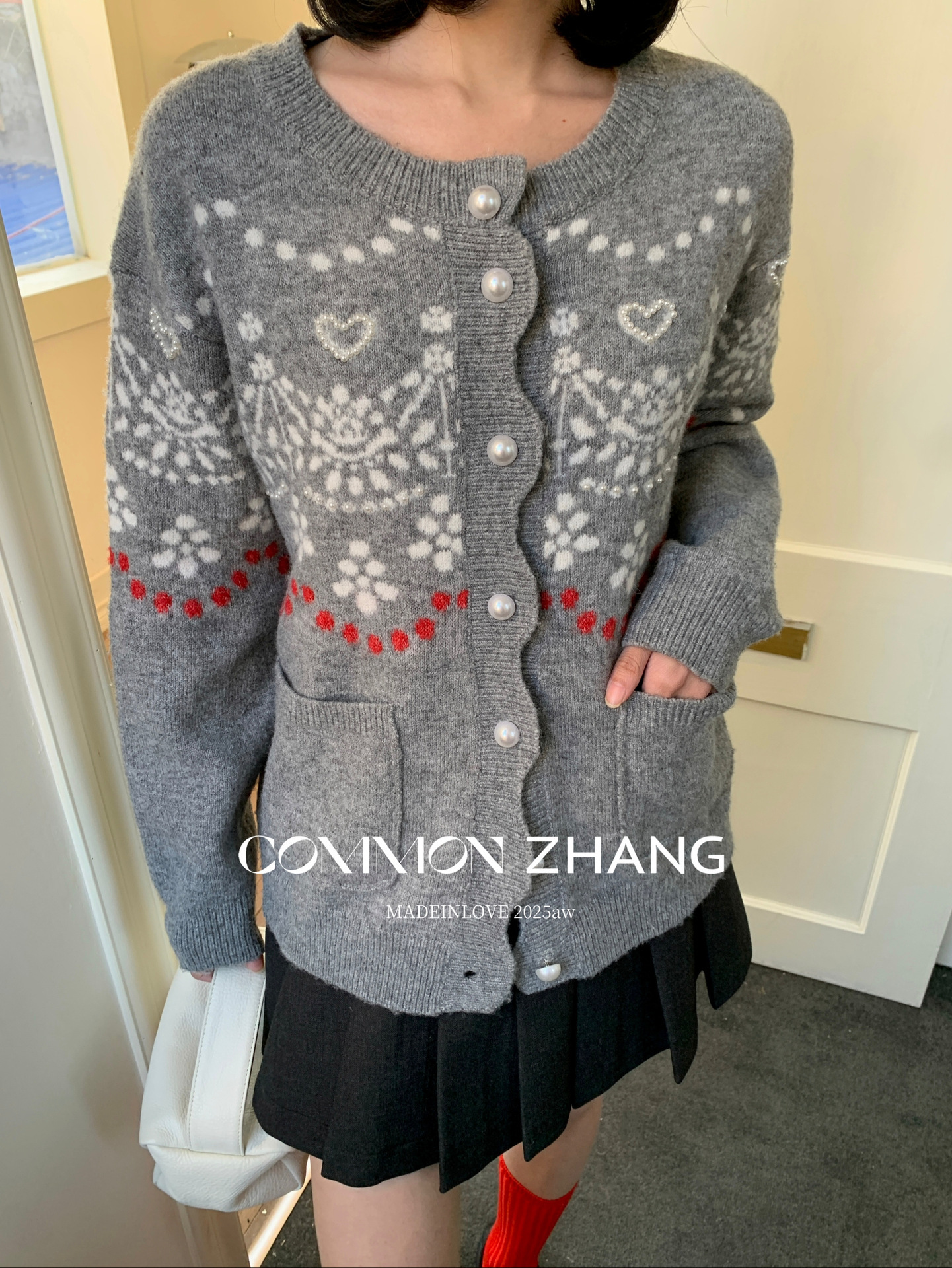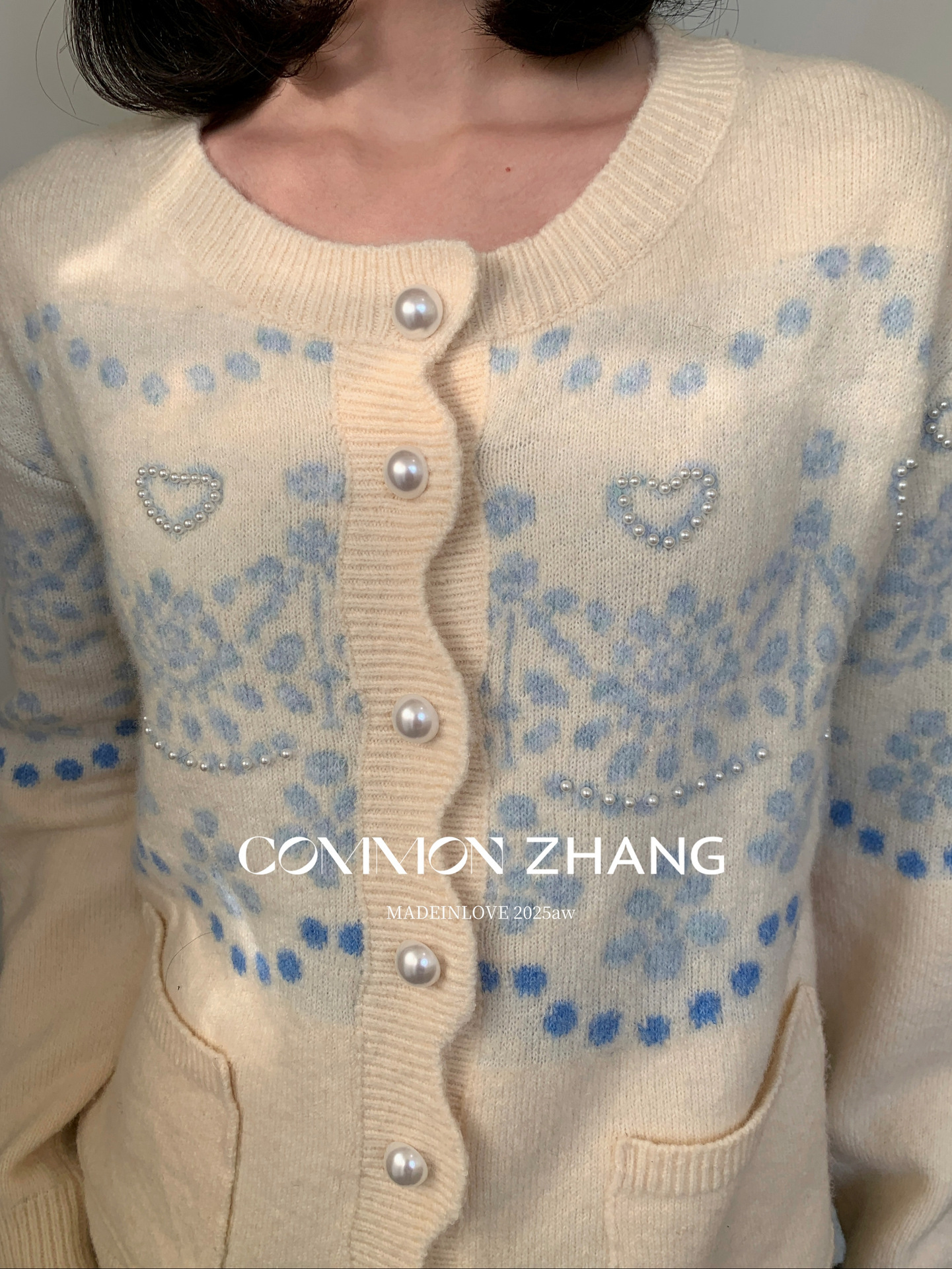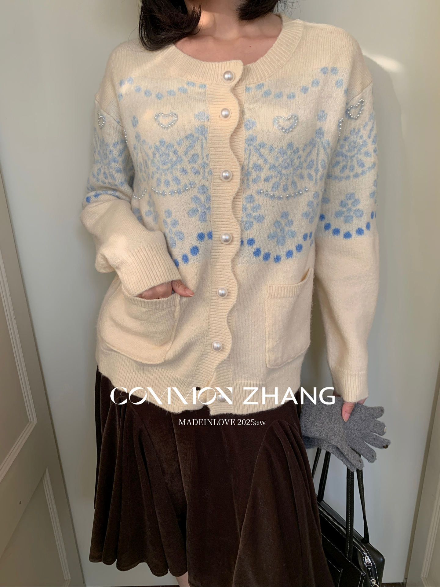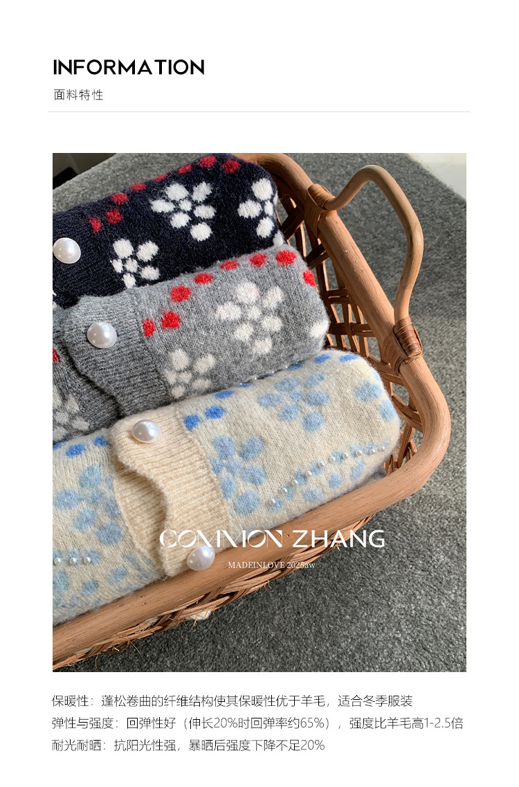 *o-ha-you*【FCZCB405218】秋冬釘珠羊毛針織開襟衫女甜美撞色提花減齡毛衣外套-3色