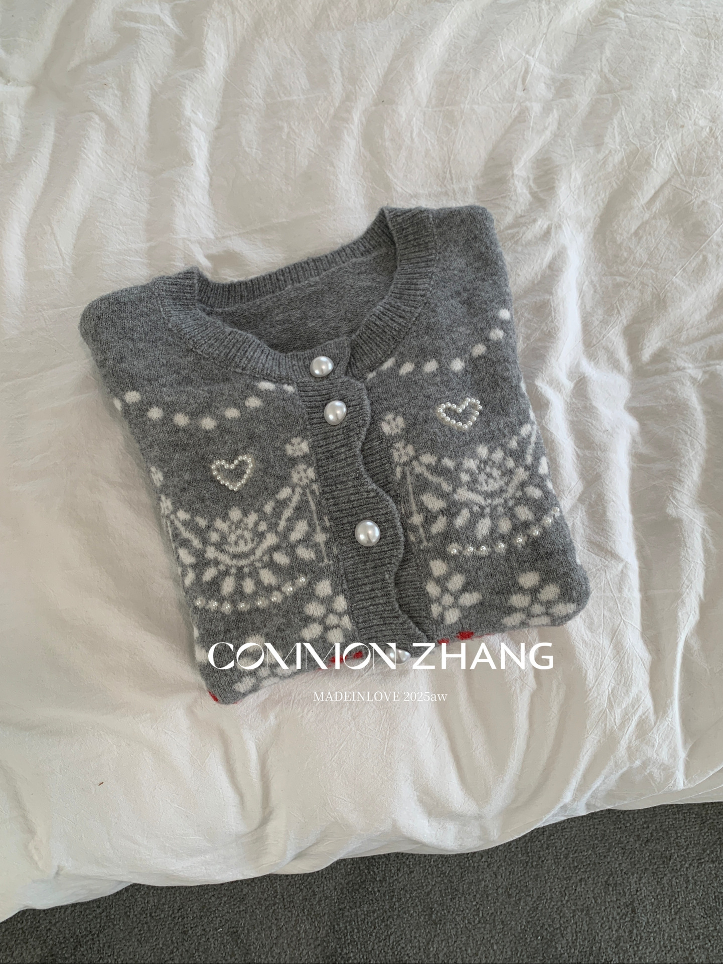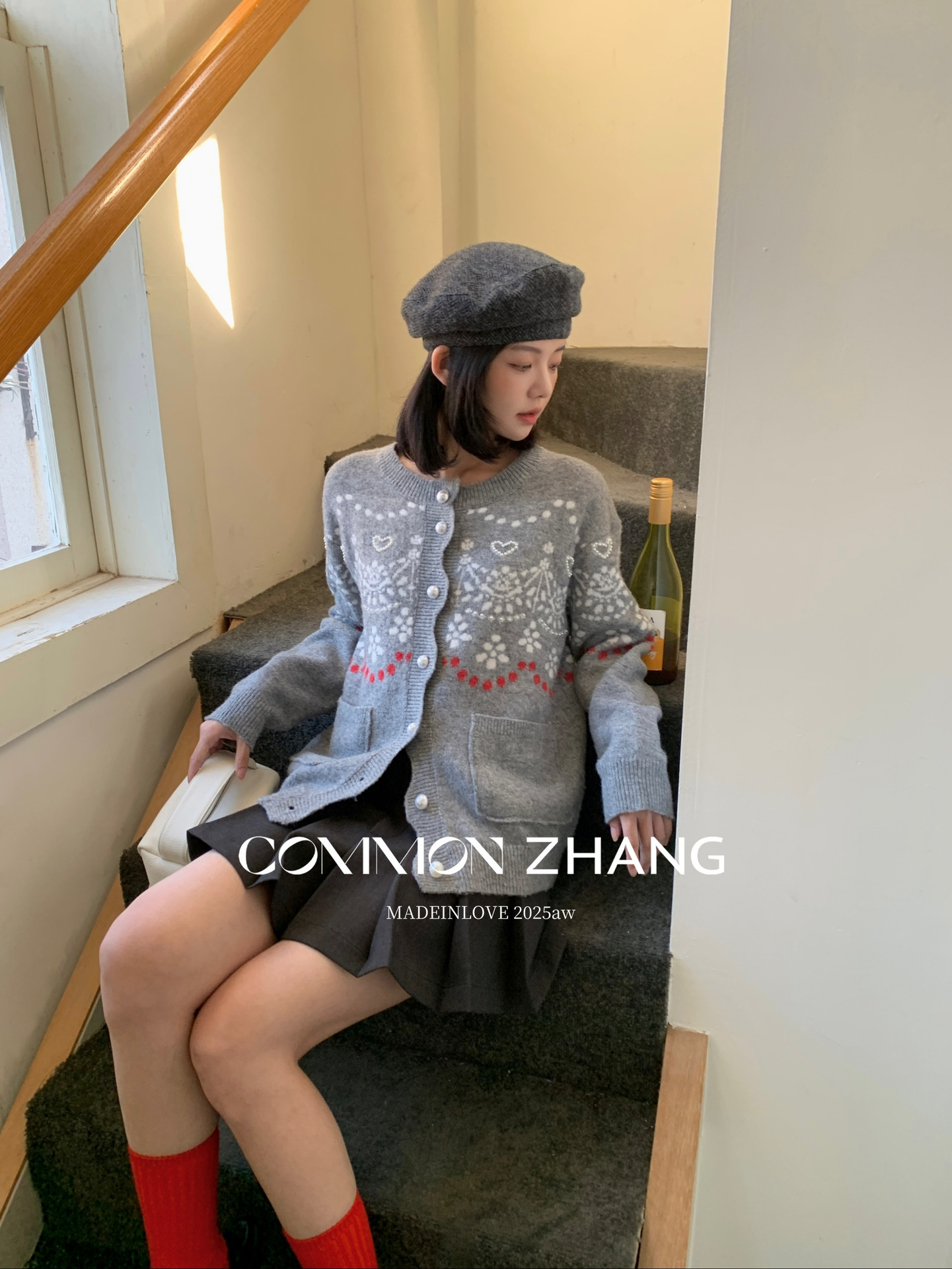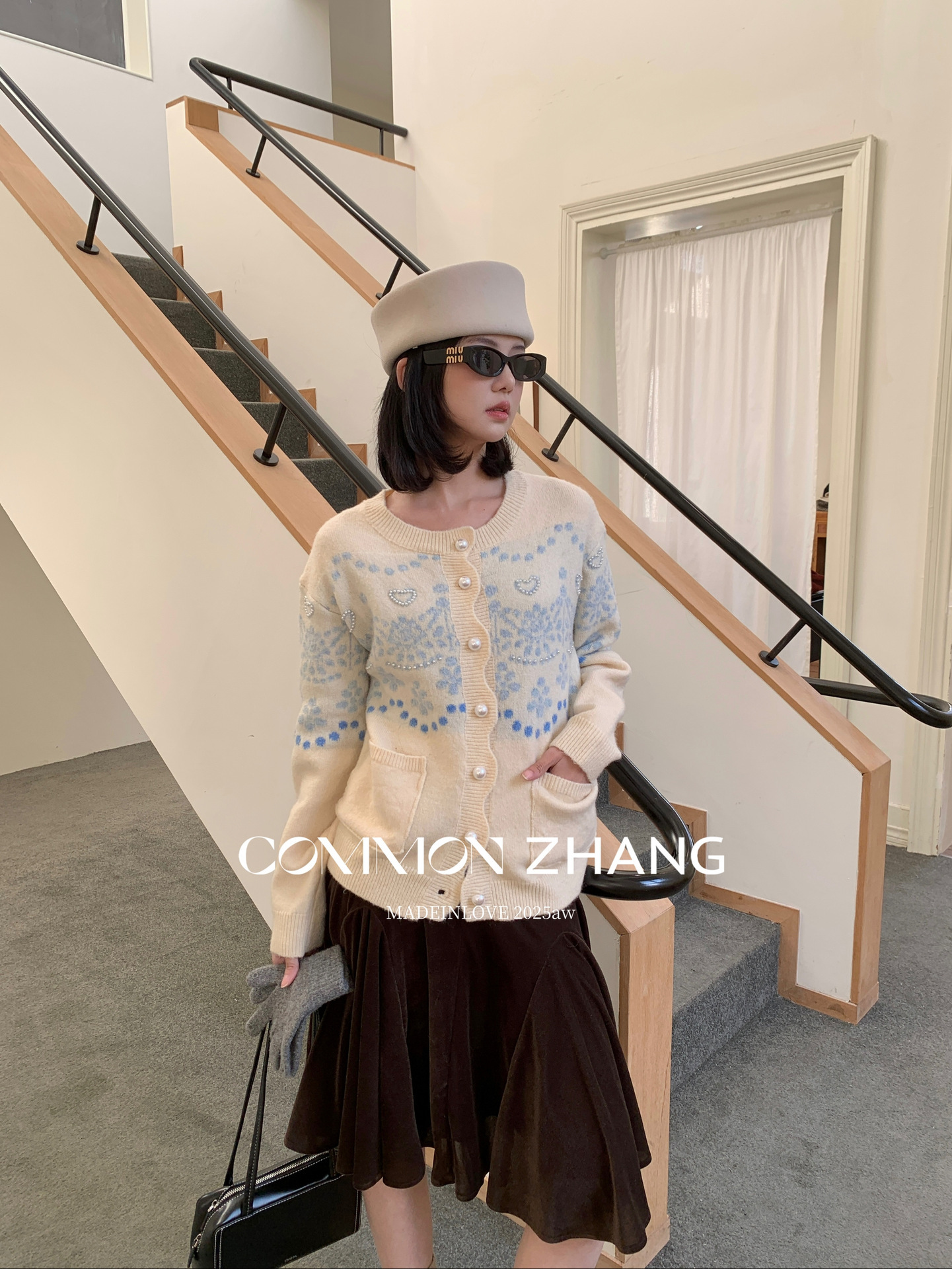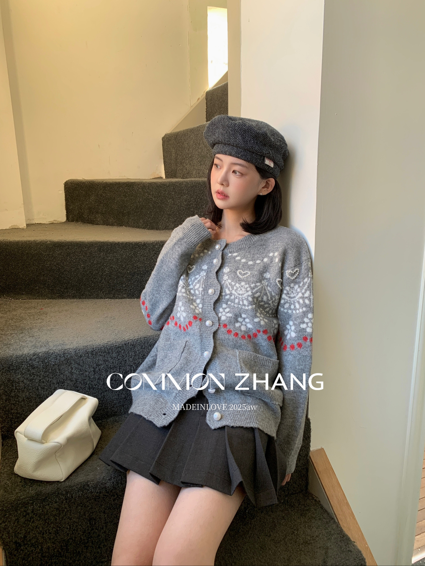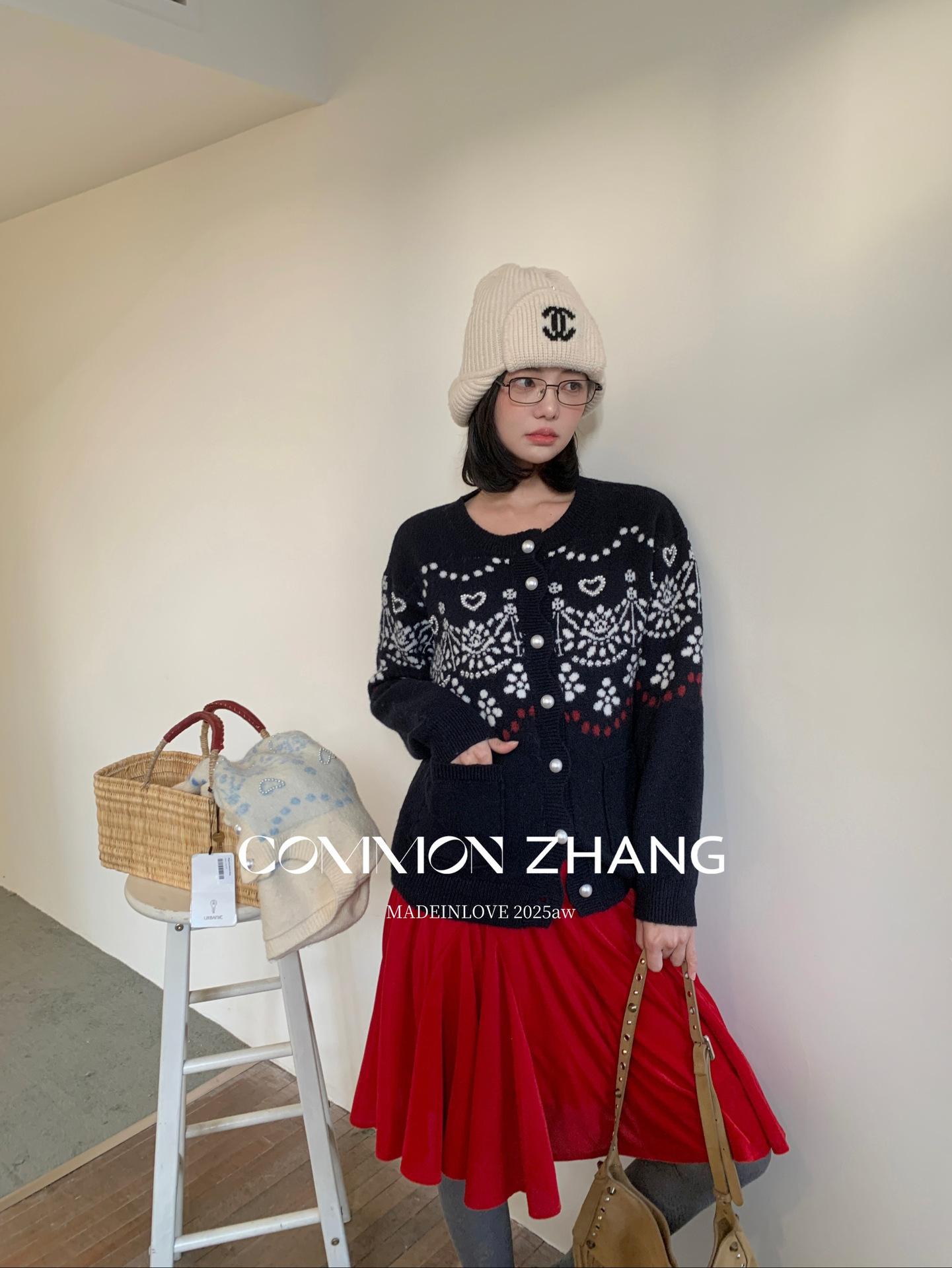 *o-ha-you*【FCZCB405218】秋冬釘珠羊毛針織開襟衫女甜美撞色提花減齡毛衣外套-3色