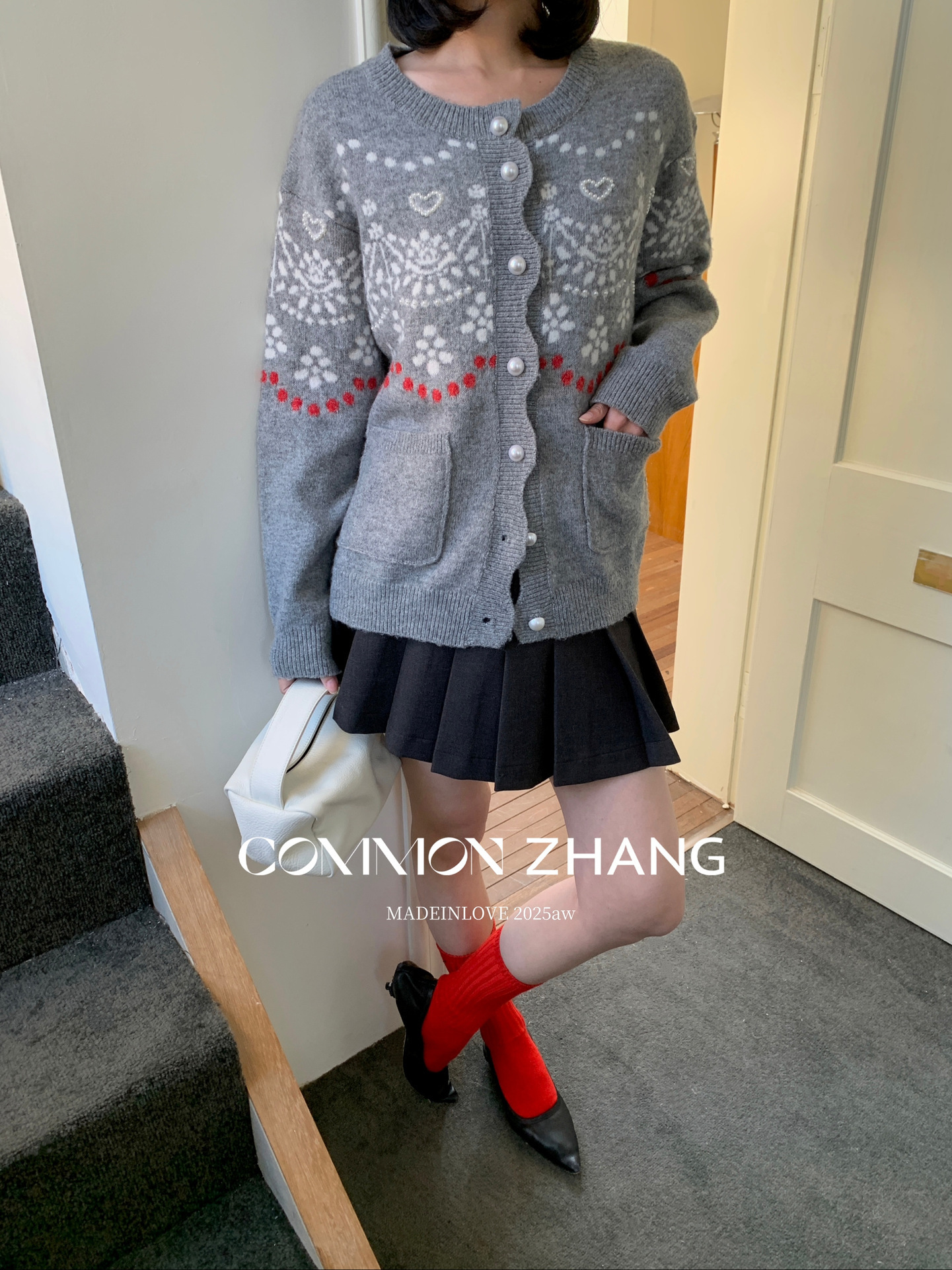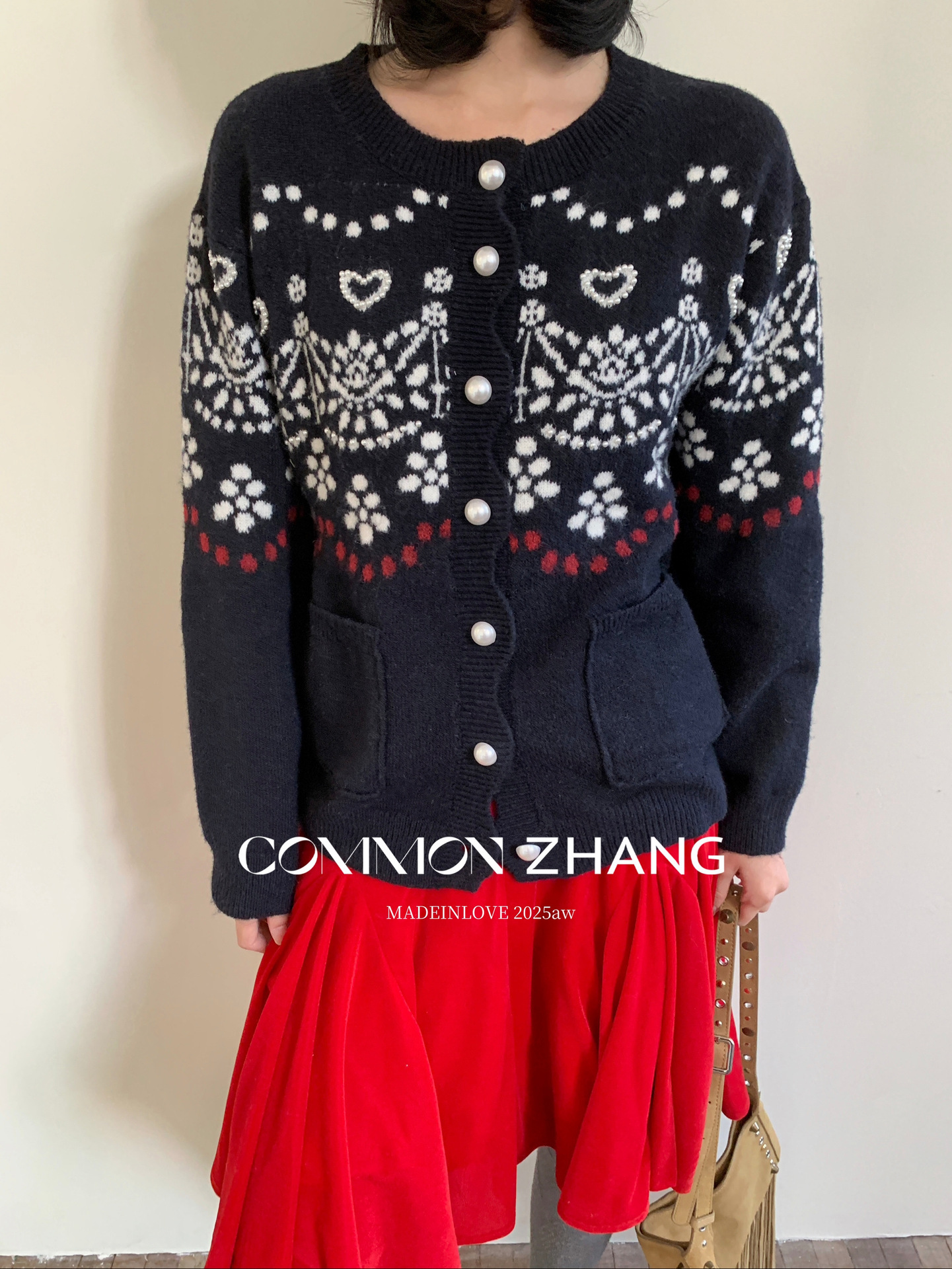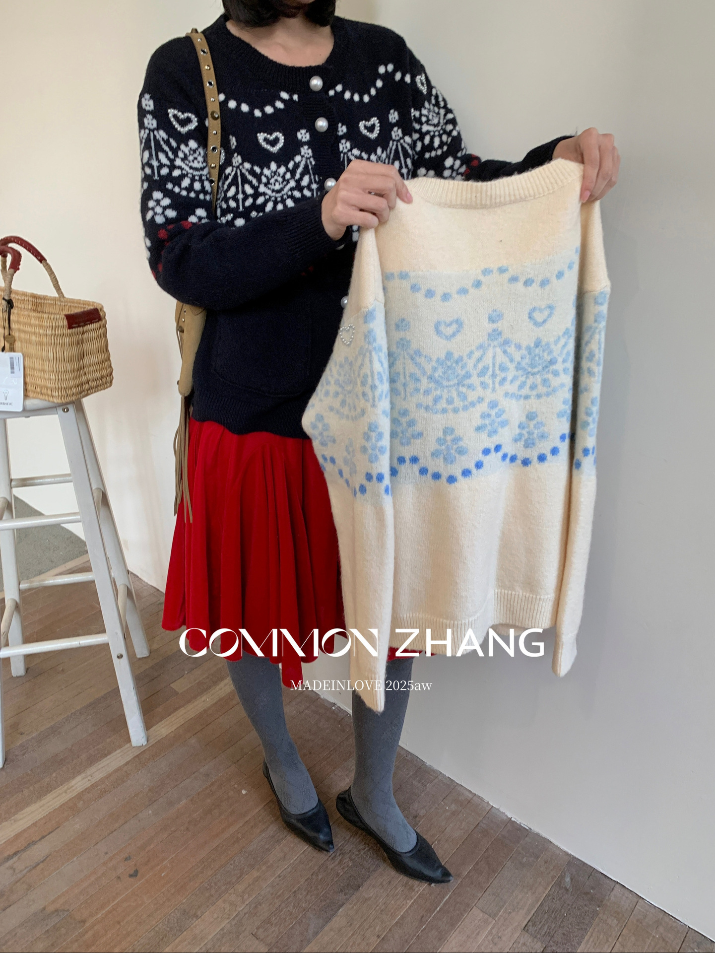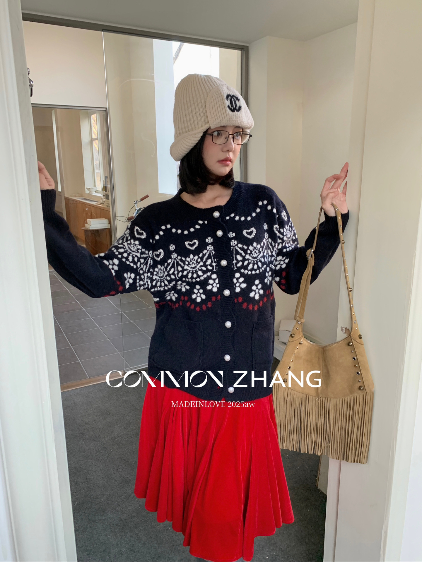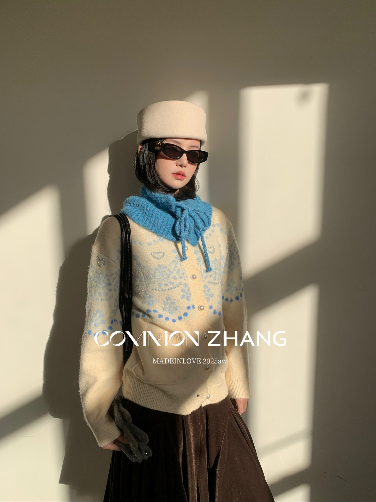 *o-ha-you*【FCZCB405218】秋冬釘珠羊毛針織開襟衫女甜美撞色提花減齡毛衣外套-3色