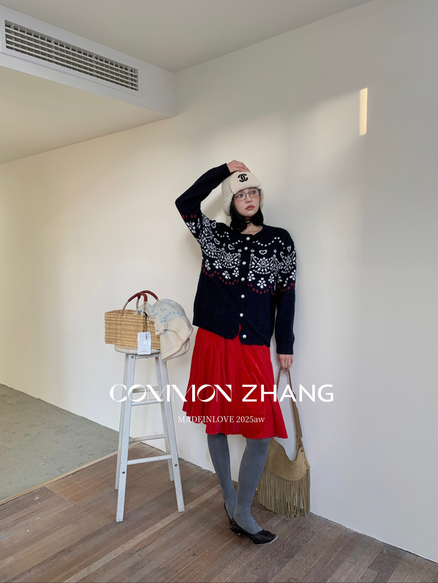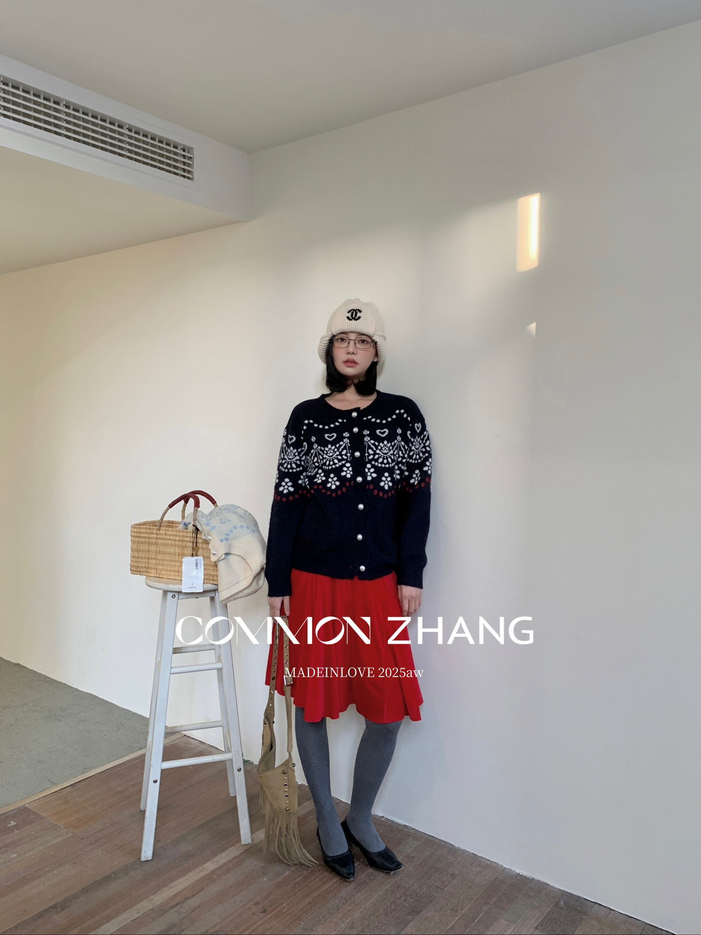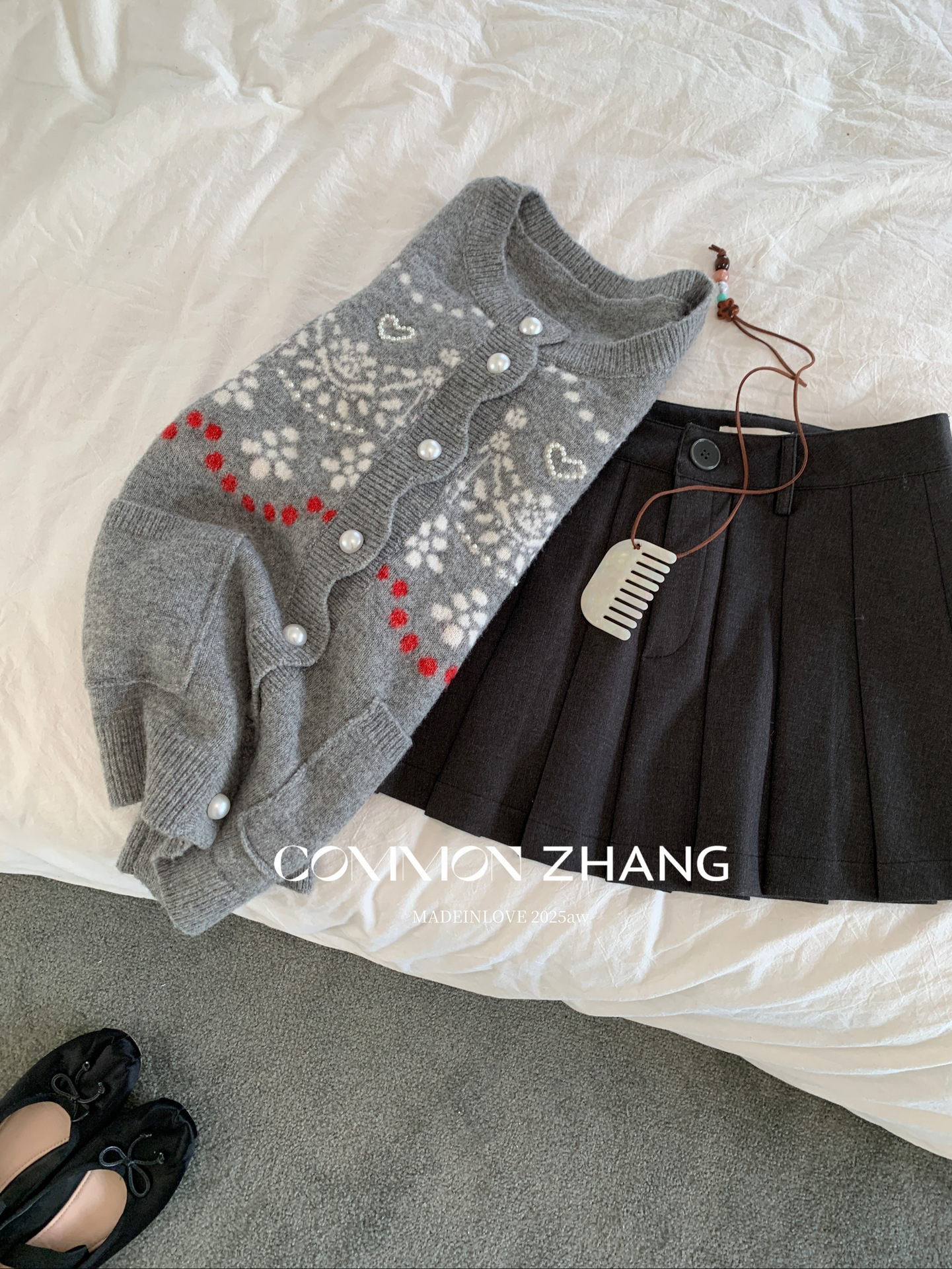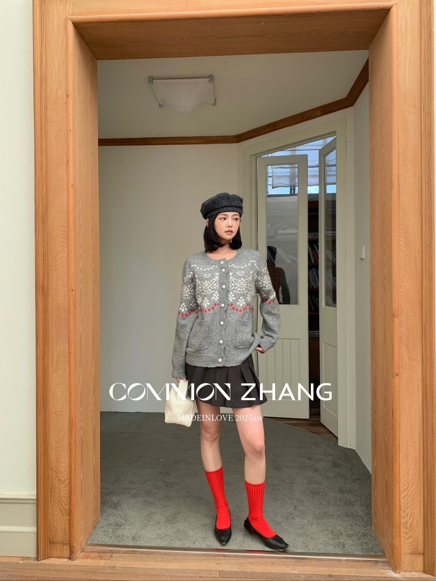 *o-ha-you*【FCZCB405218】秋冬釘珠羊毛針織開襟衫女甜美撞色提花減齡毛衣外套-3色