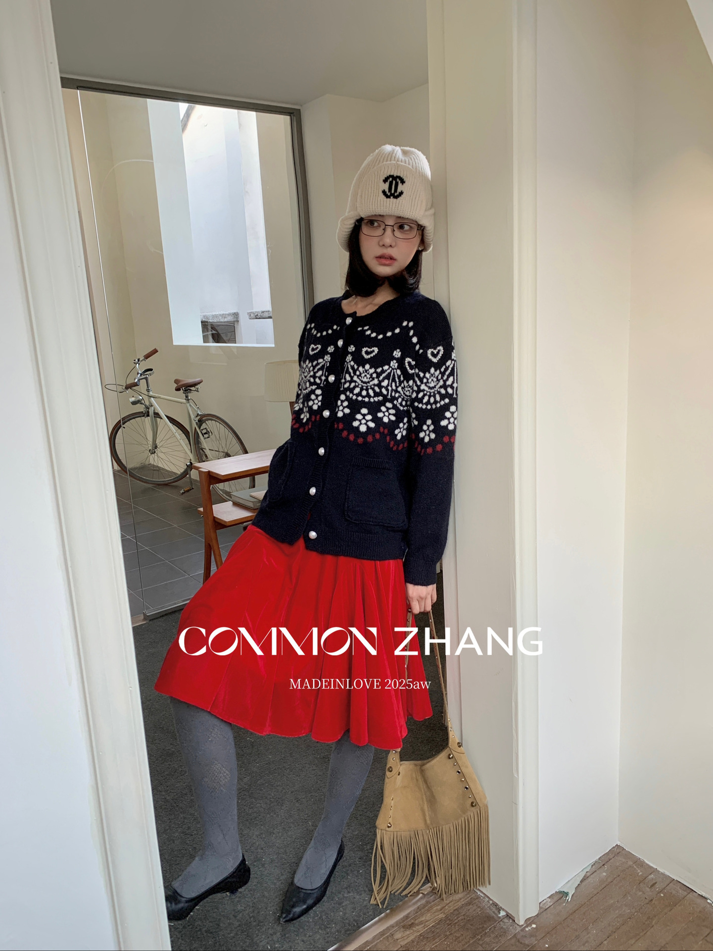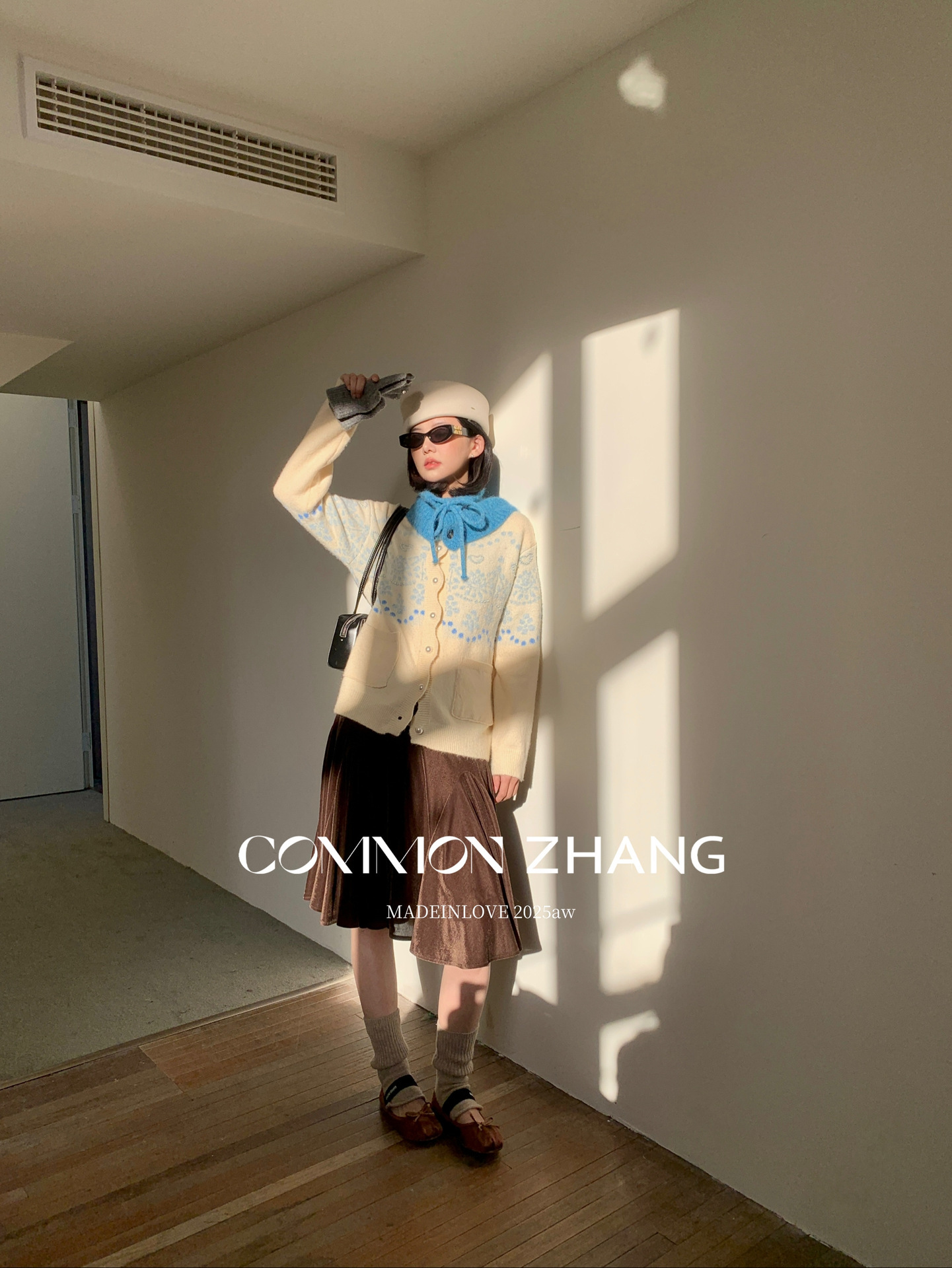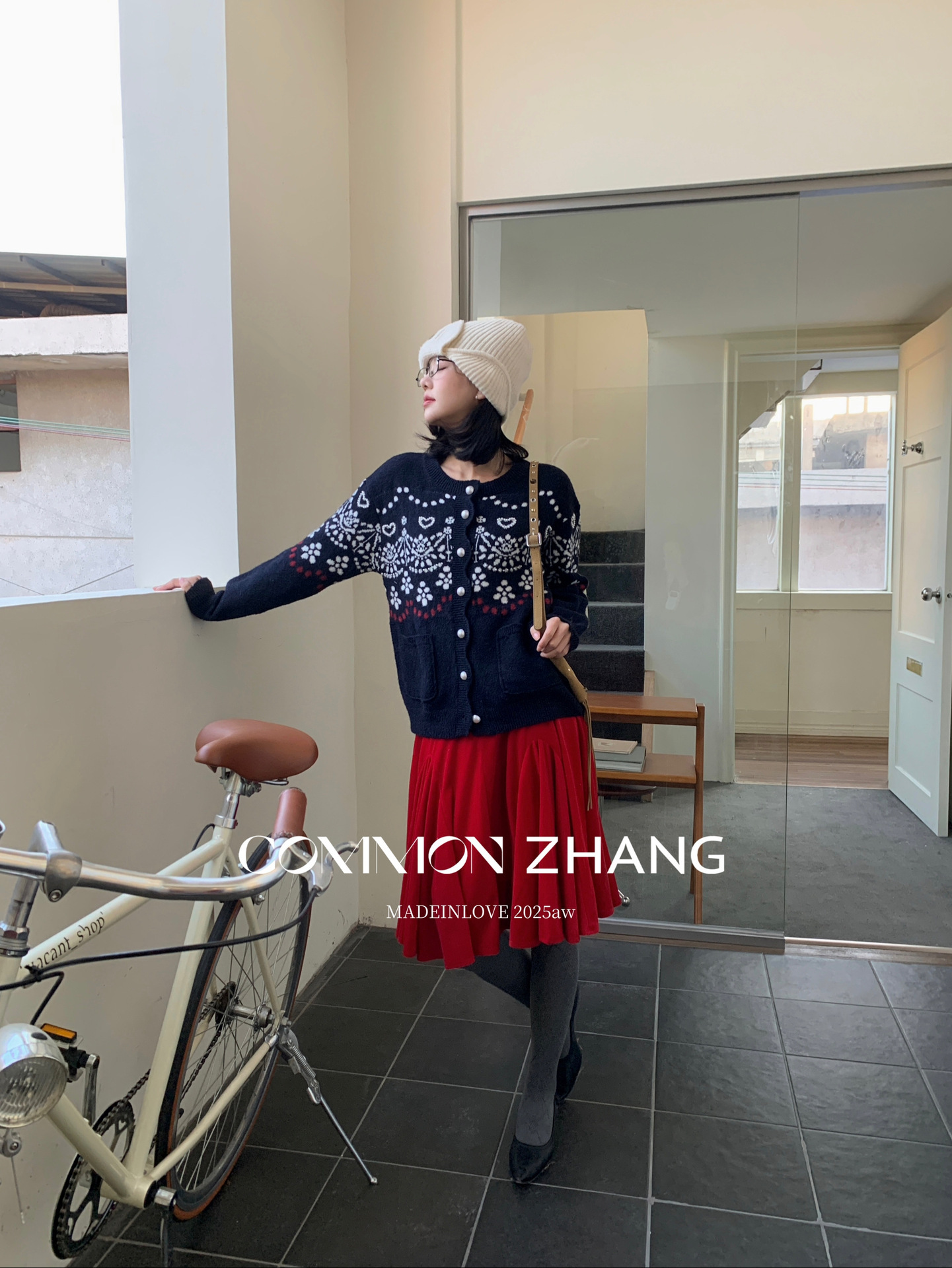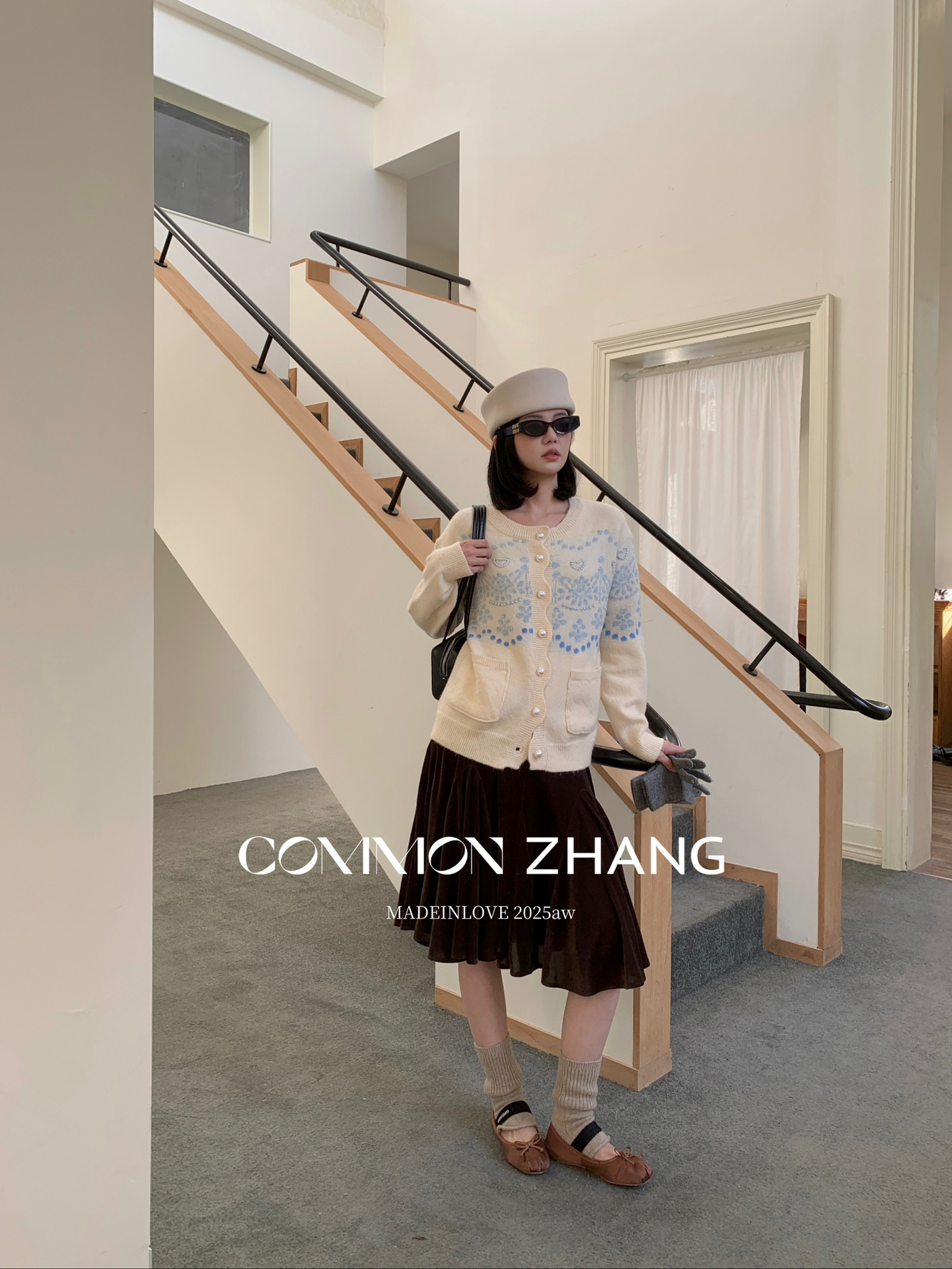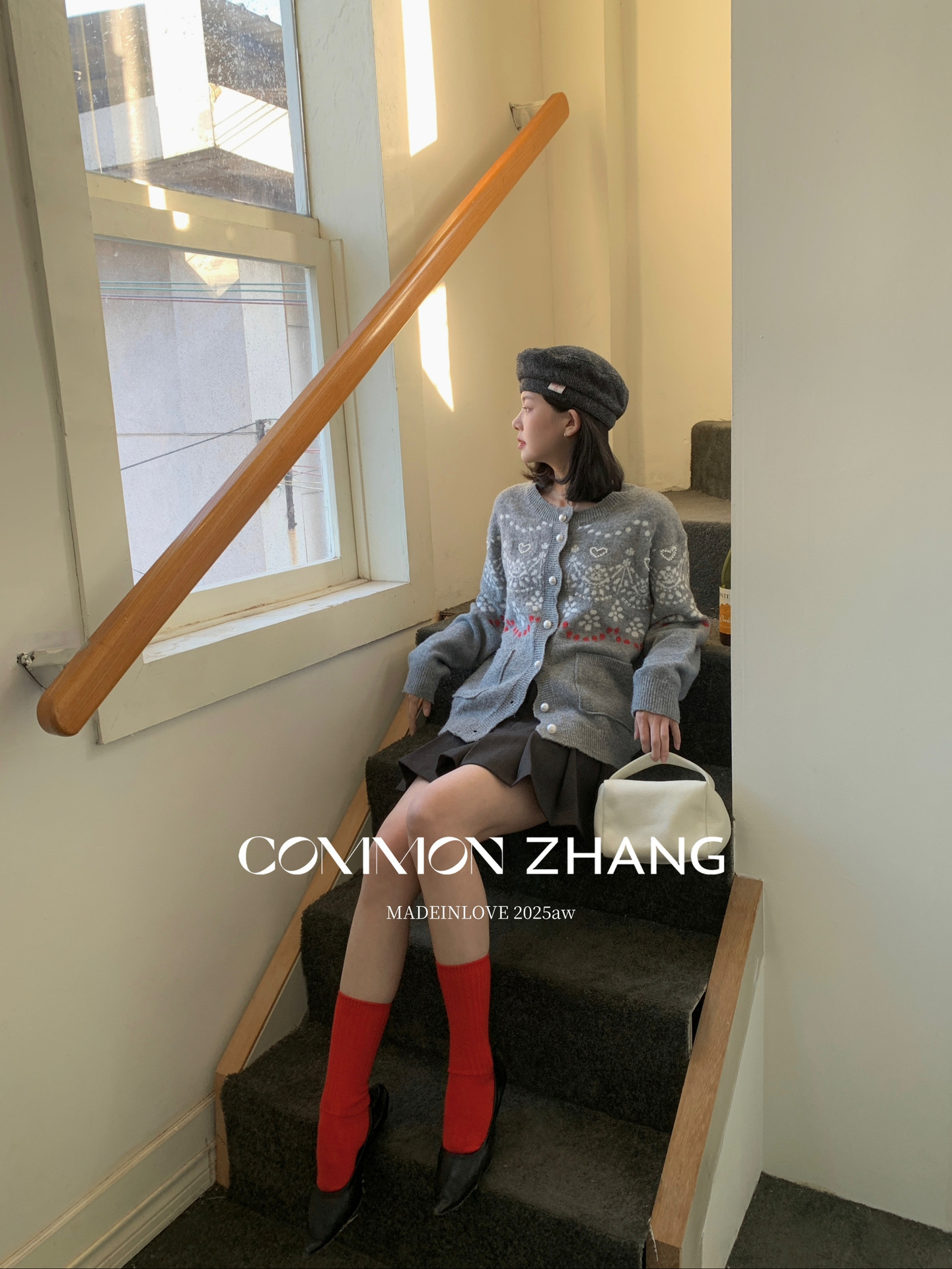 *o-ha-you*【FCZCB405218】秋冬釘珠羊毛針織開襟衫女甜美撞色提花減齡毛衣外套-3色