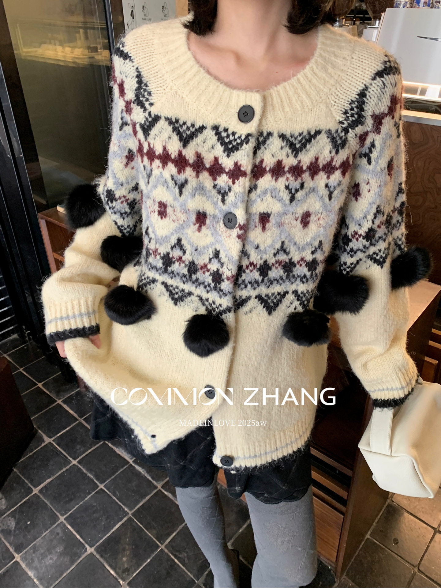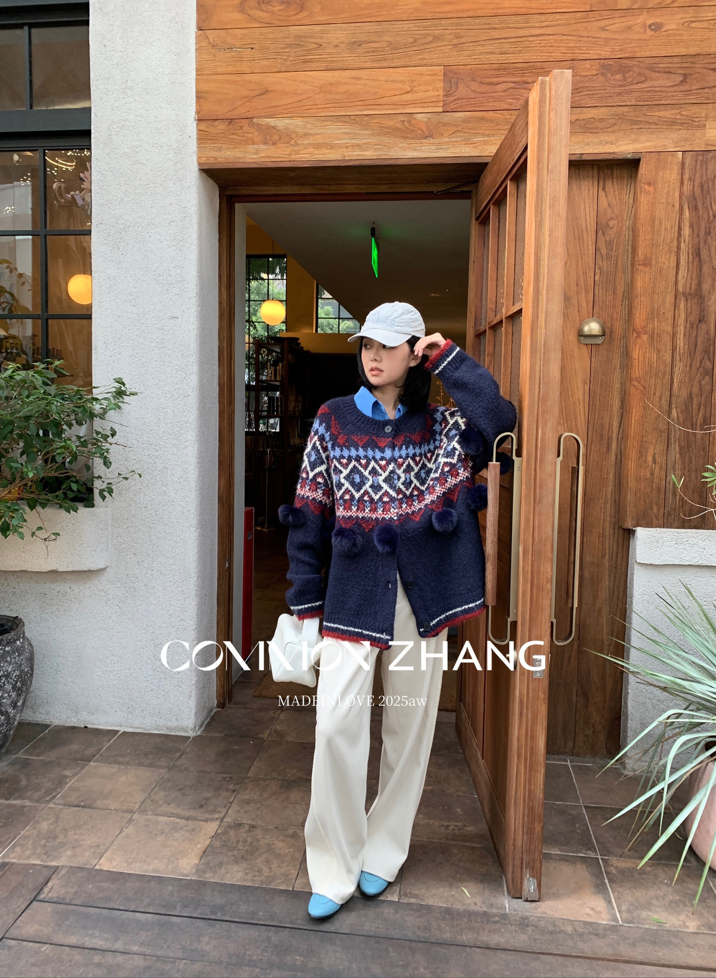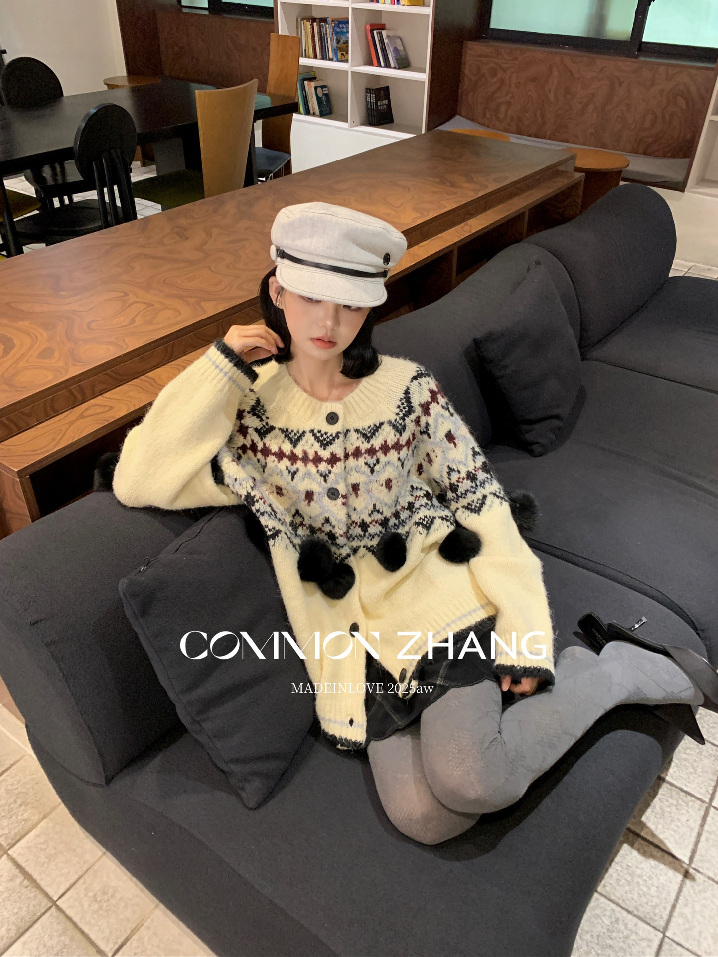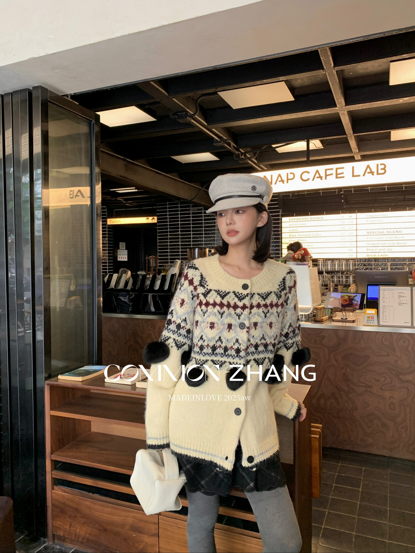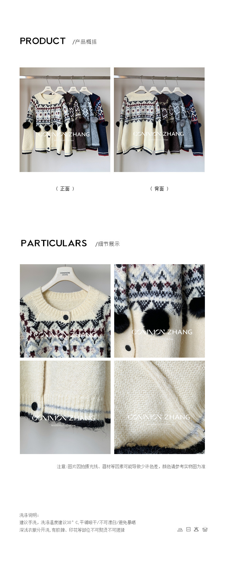 *o-ha-you*【FCZCB405260】秋冬羊毛提花針織開襟衫女毛球費爾島中長毛衣外套-4色