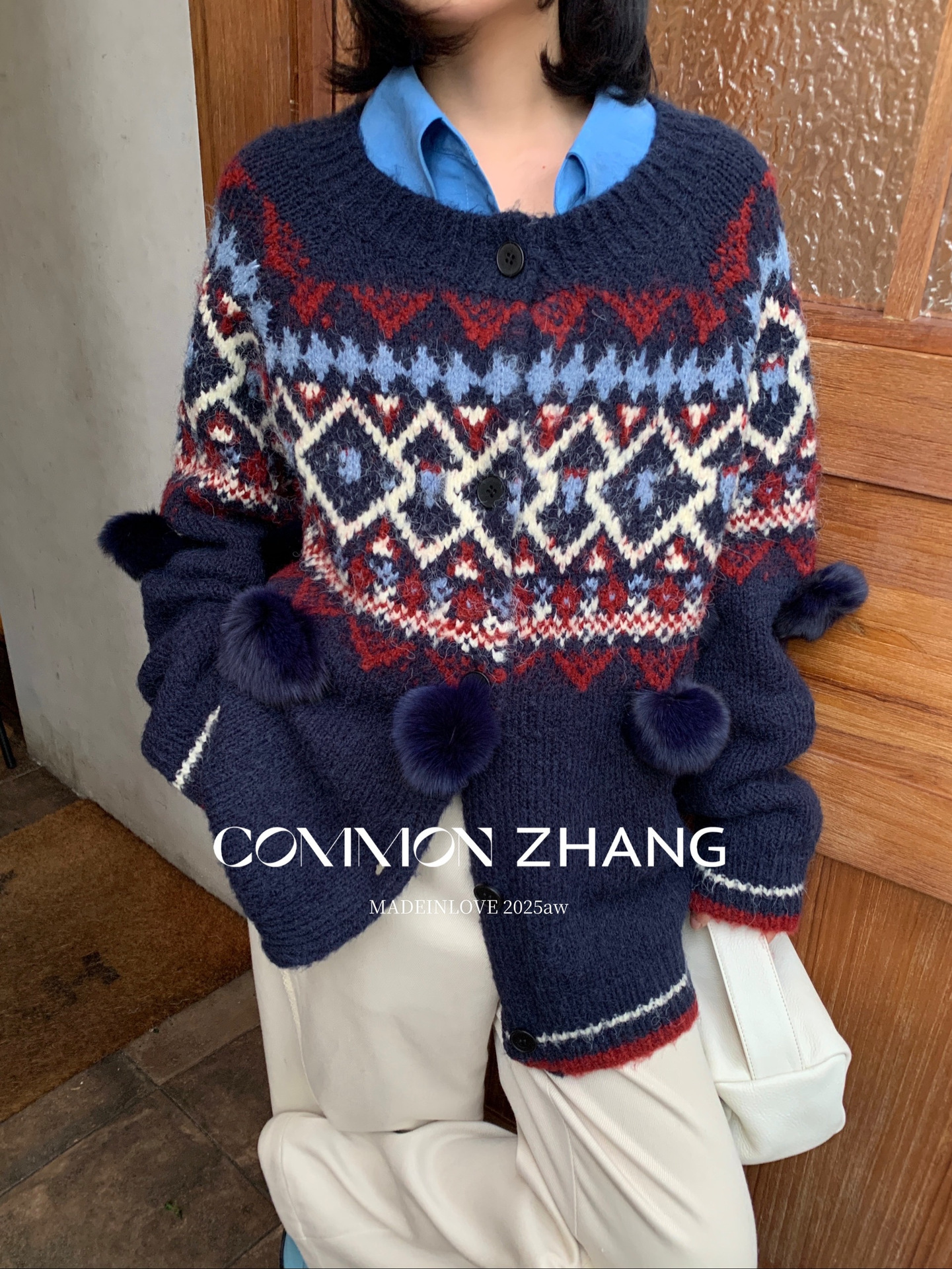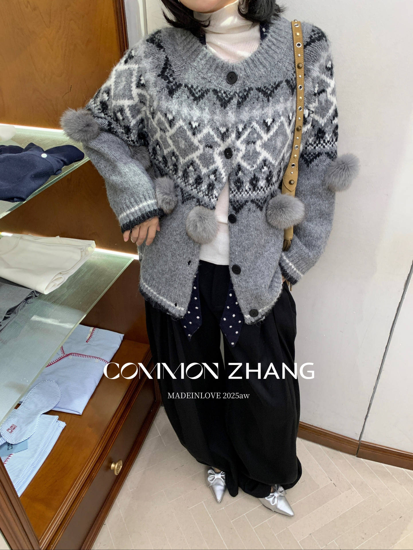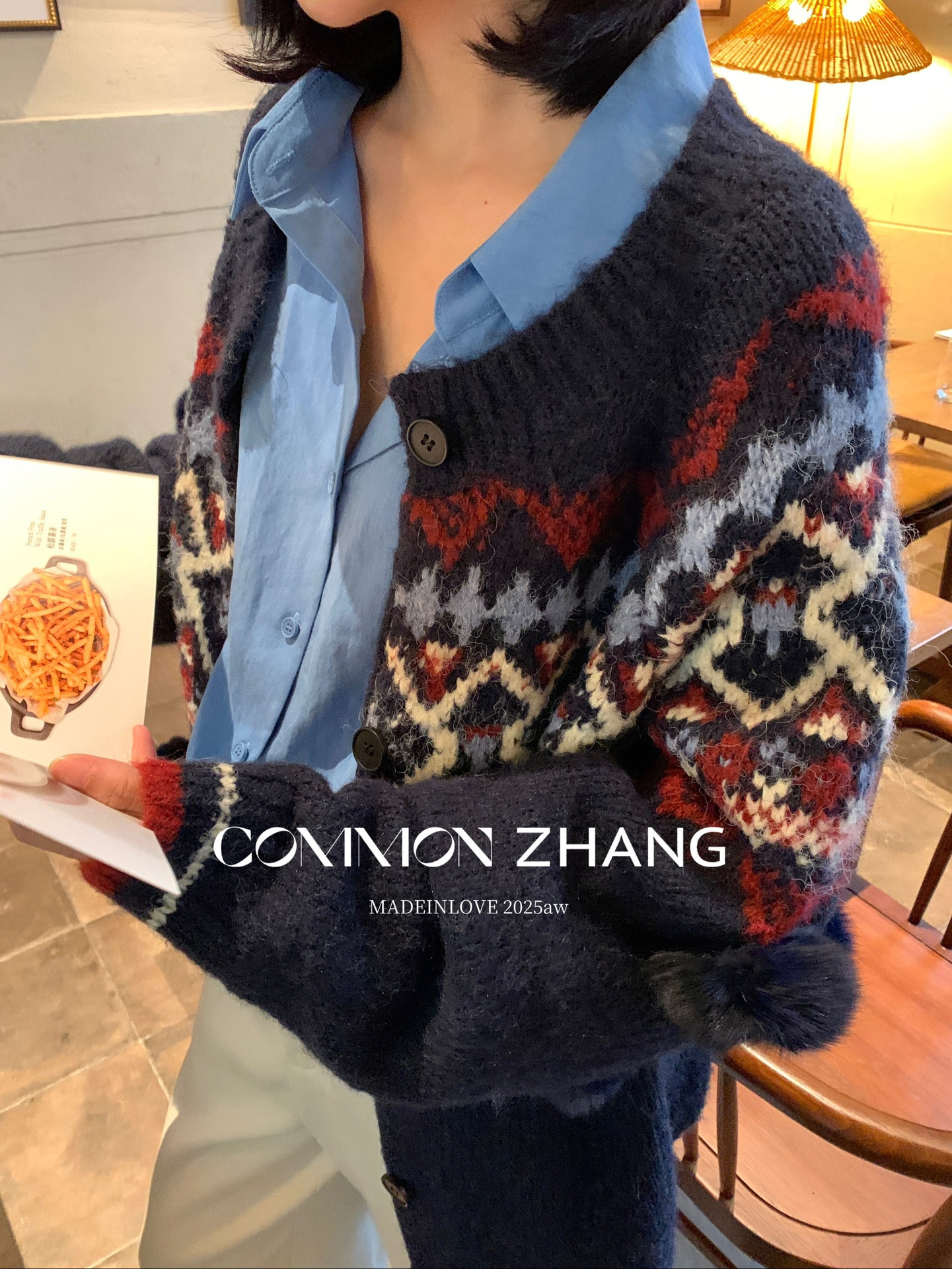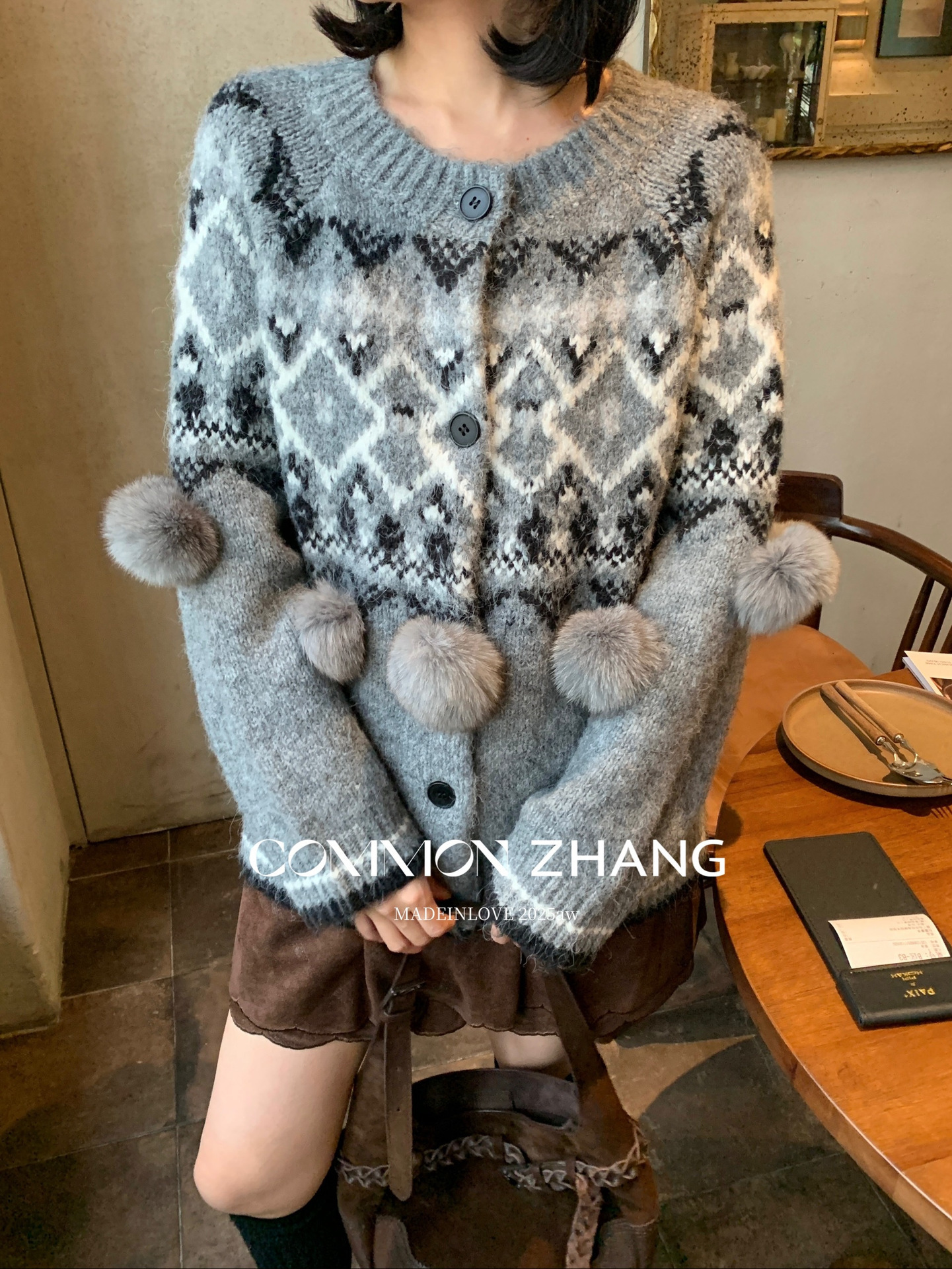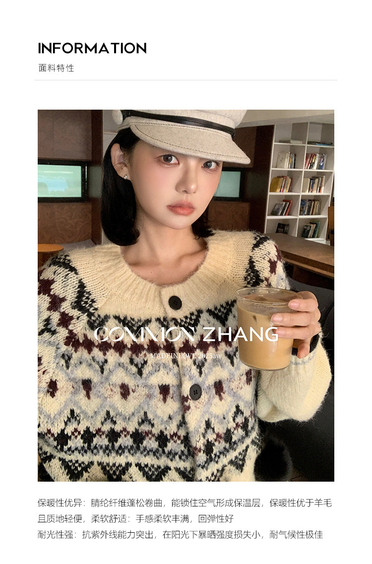 *o-ha-you*【FCZCB405260】秋冬羊毛提花針織開襟衫女毛球費爾島中長毛衣外套-4色