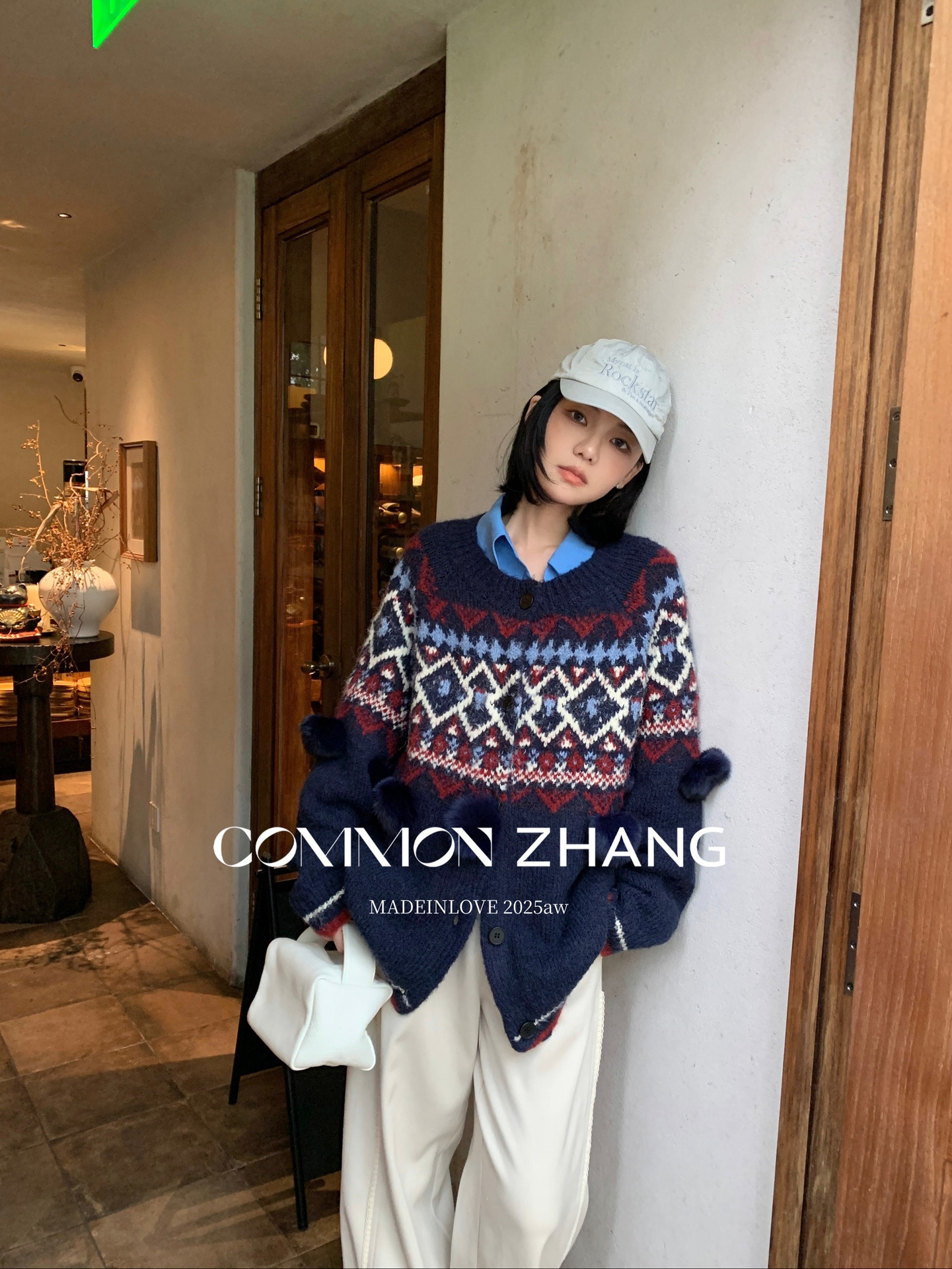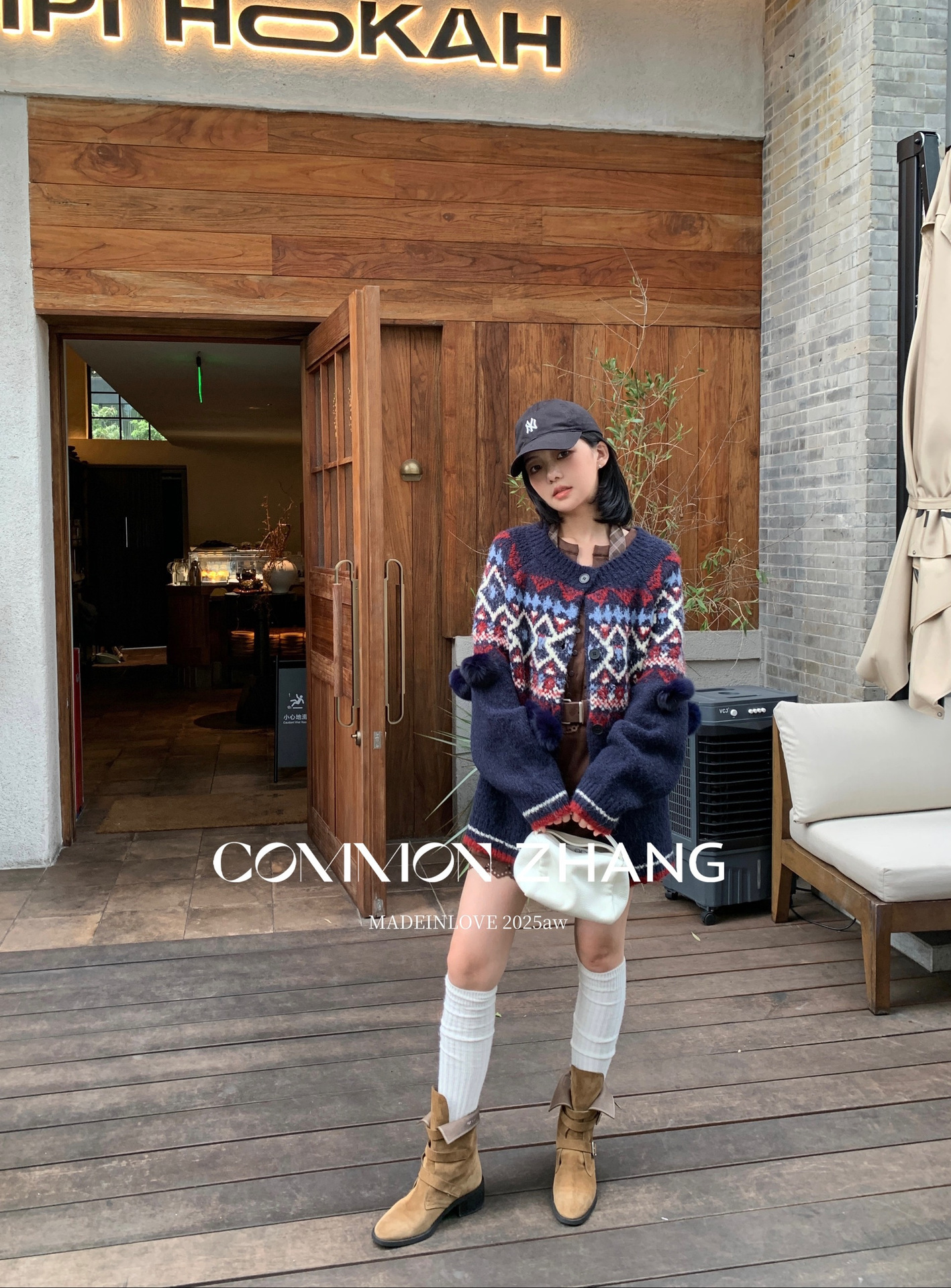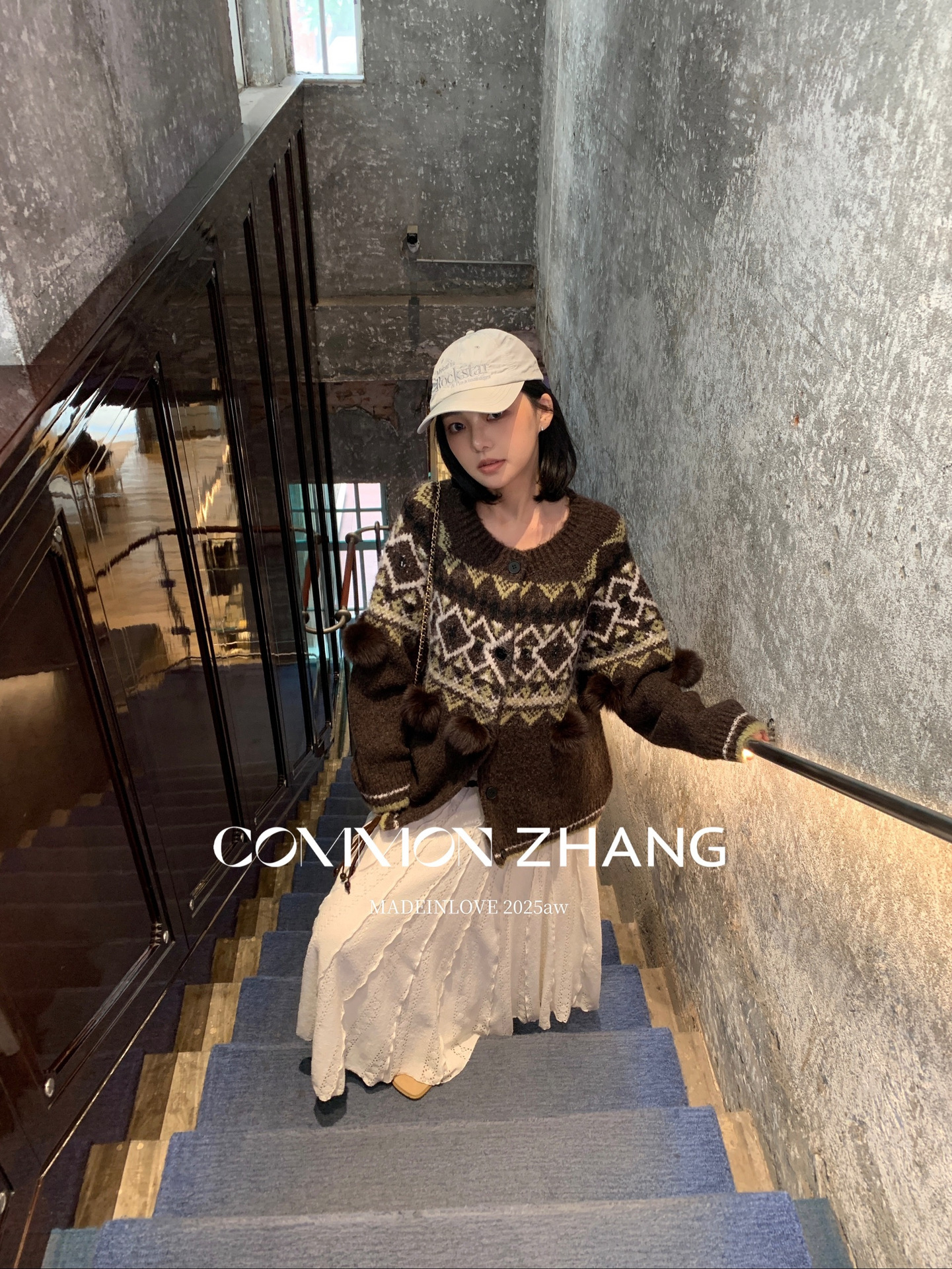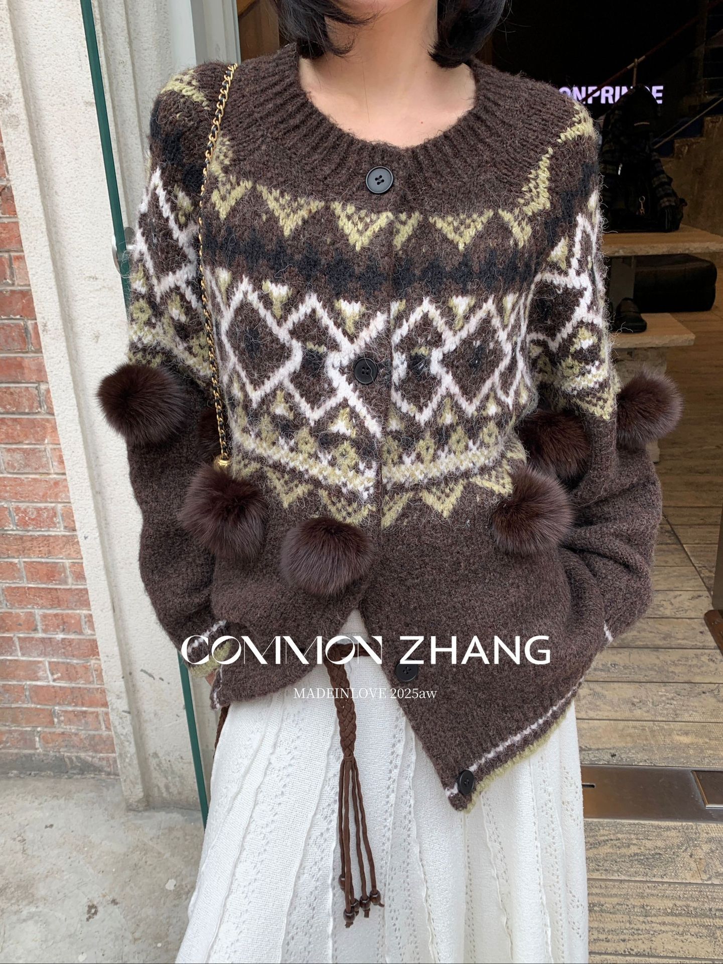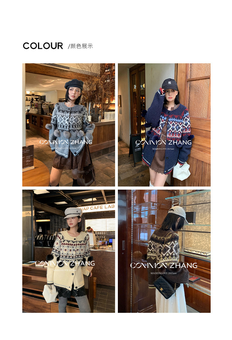 *o-ha-you*【FCZCB405260】秋冬羊毛提花針織開襟衫女毛球費爾島中長毛衣外套-4色