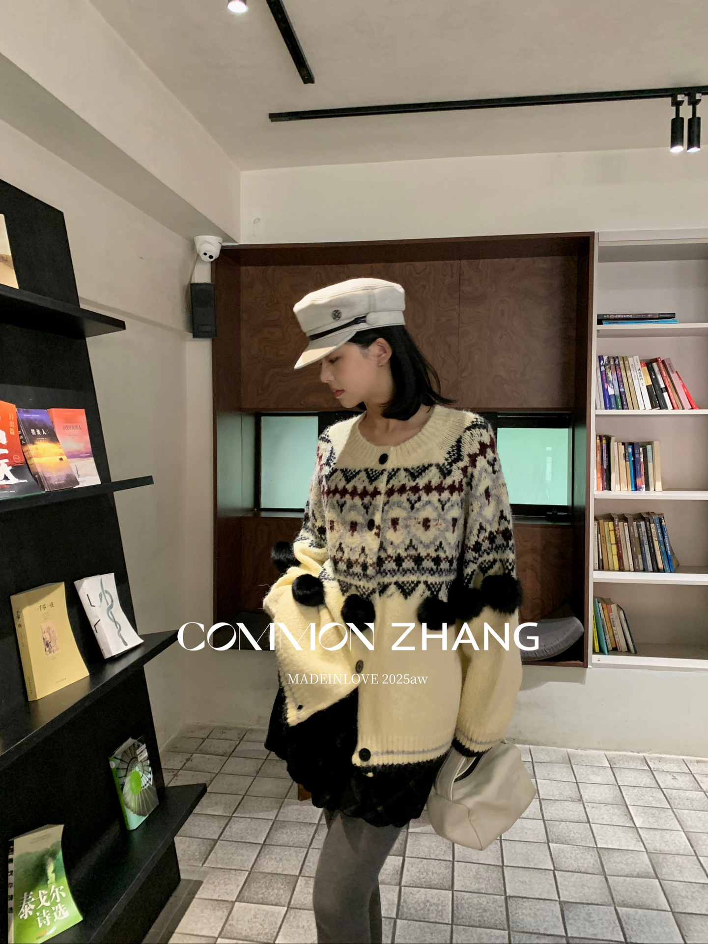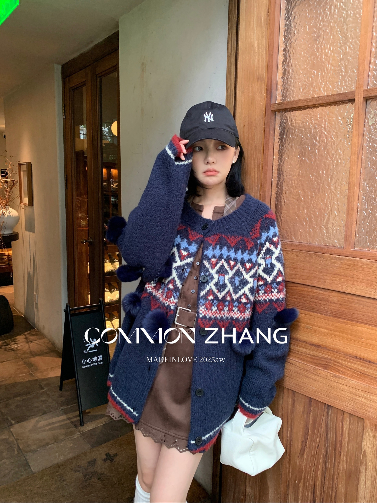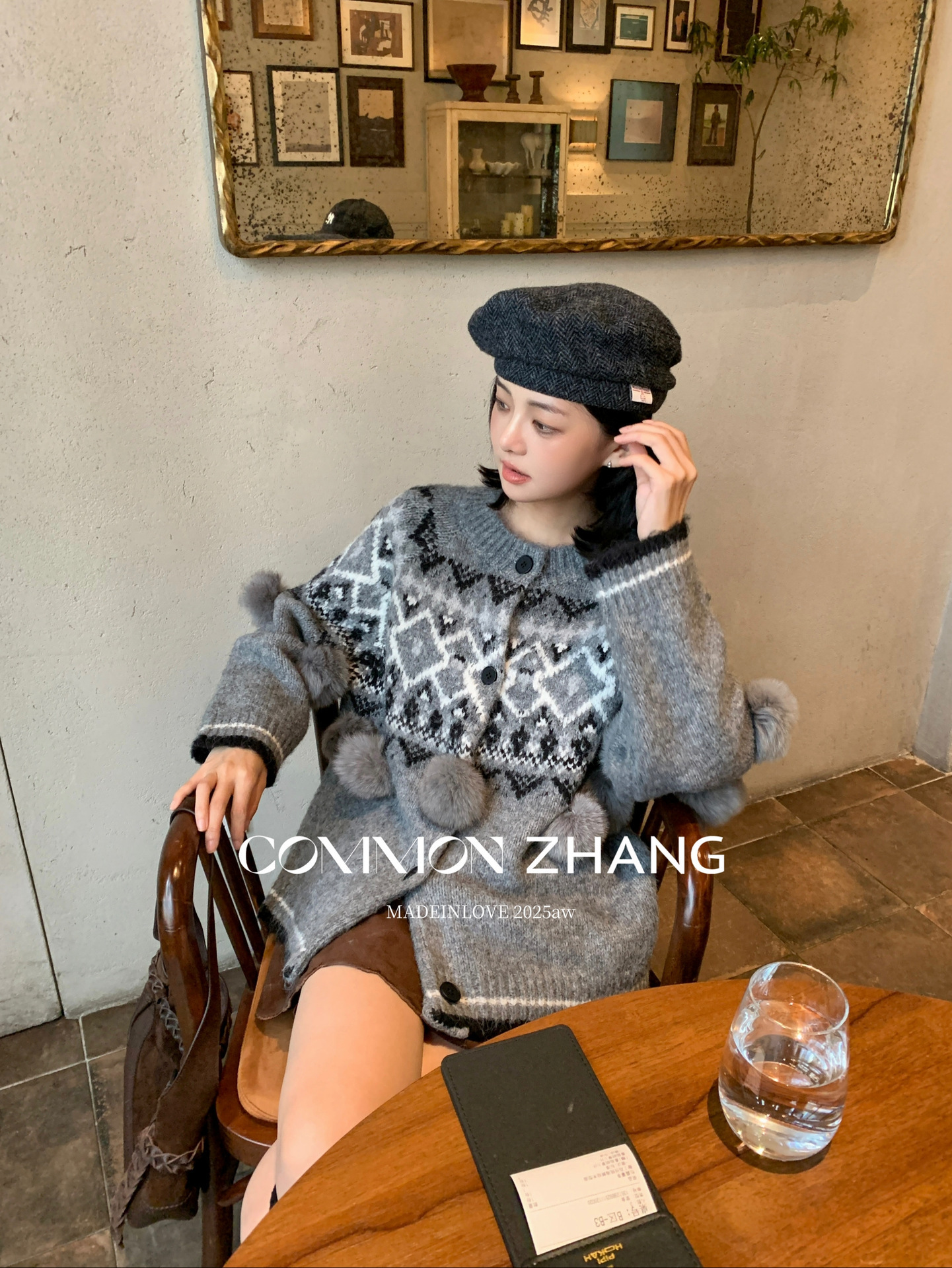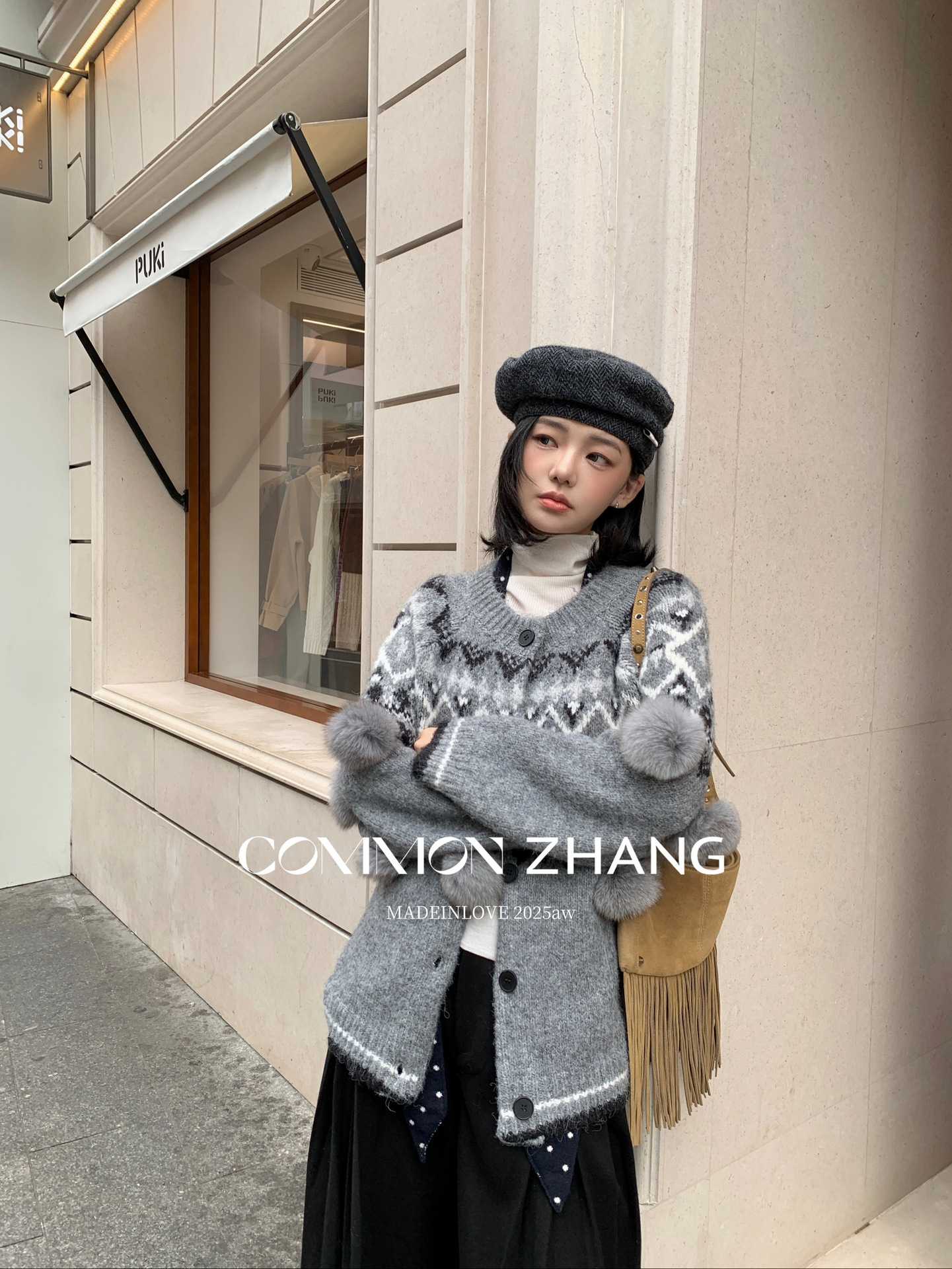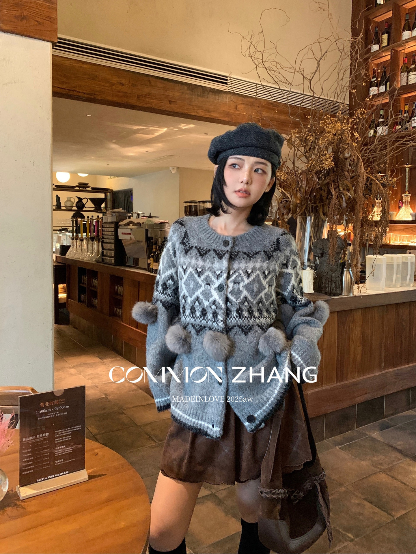 *o-ha-you*【FCZCB405260】秋冬羊毛提花針織開襟衫女毛球費爾島中長毛衣外套-4色
