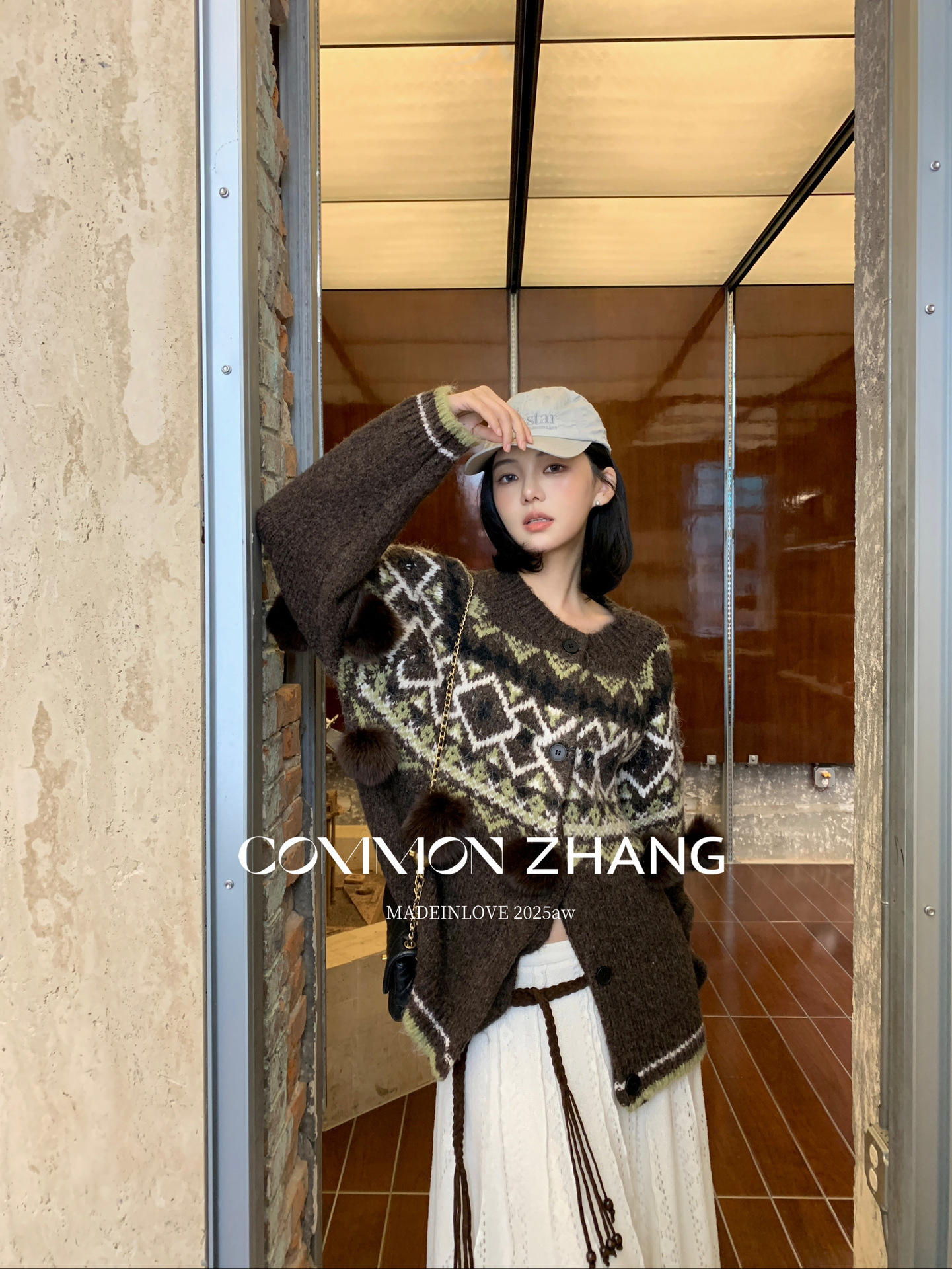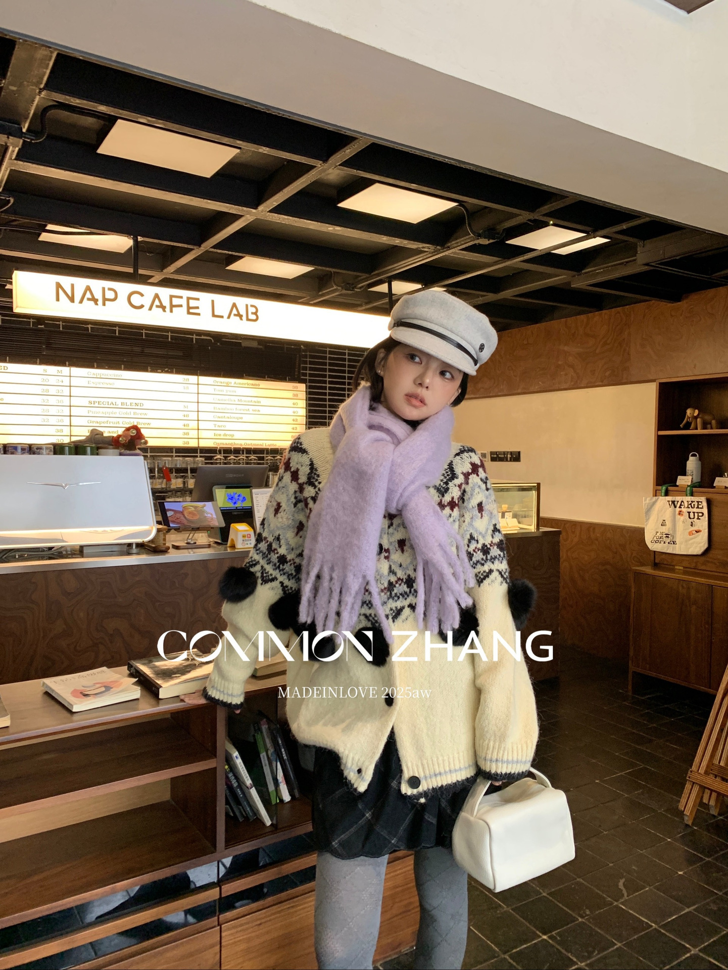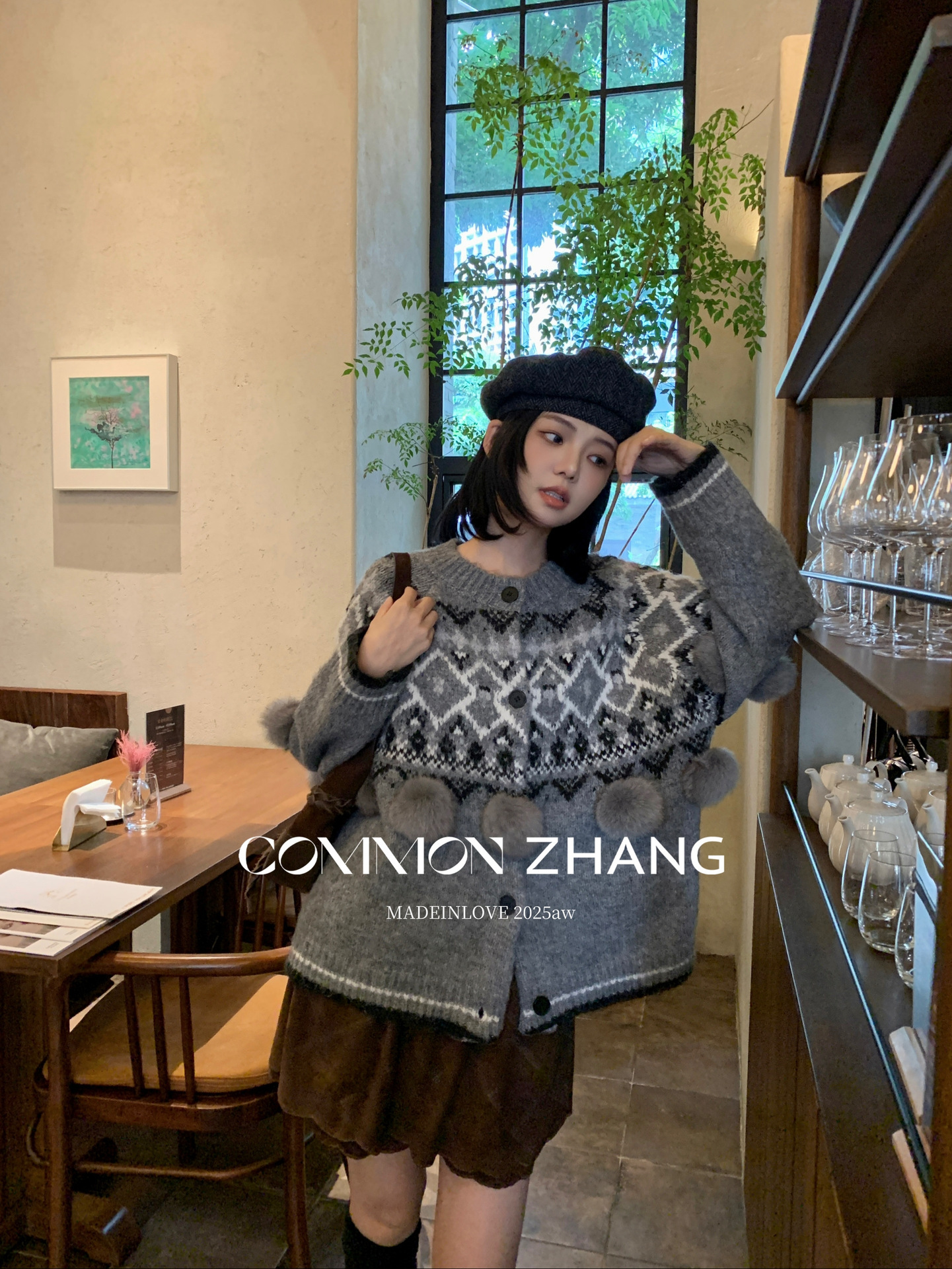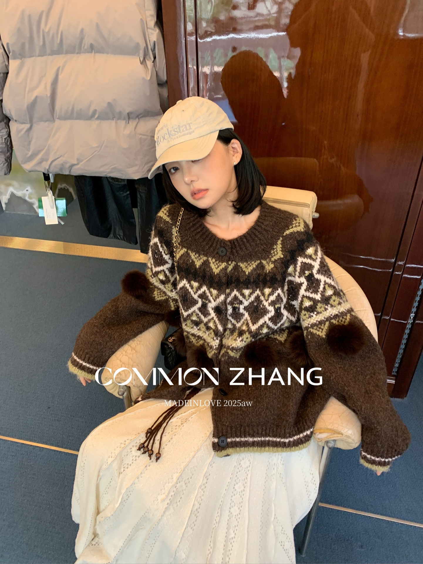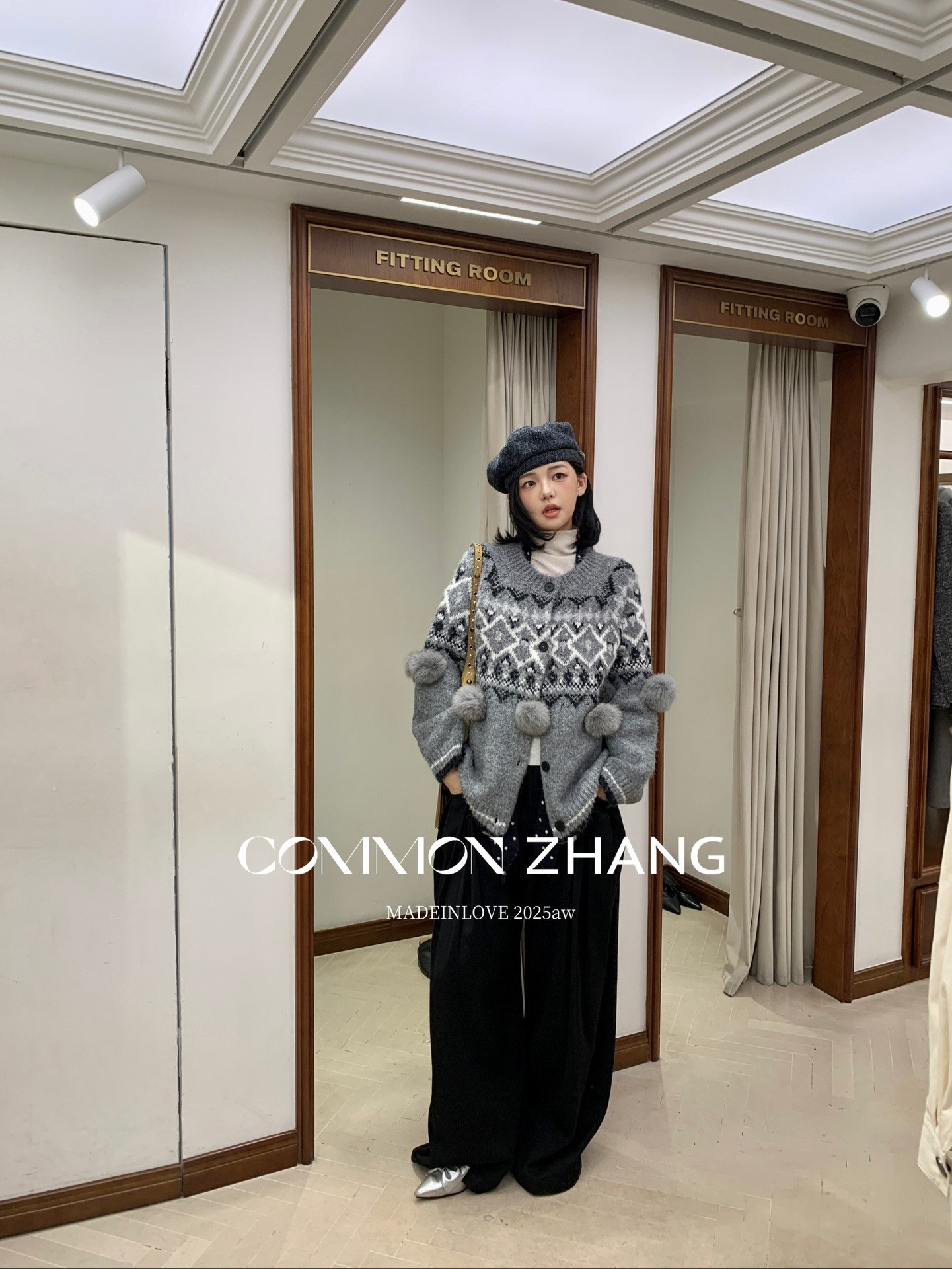 *o-ha-you*【FCZCB405260】秋冬羊毛提花針織開襟衫女毛球費爾島中長毛衣外套-4色