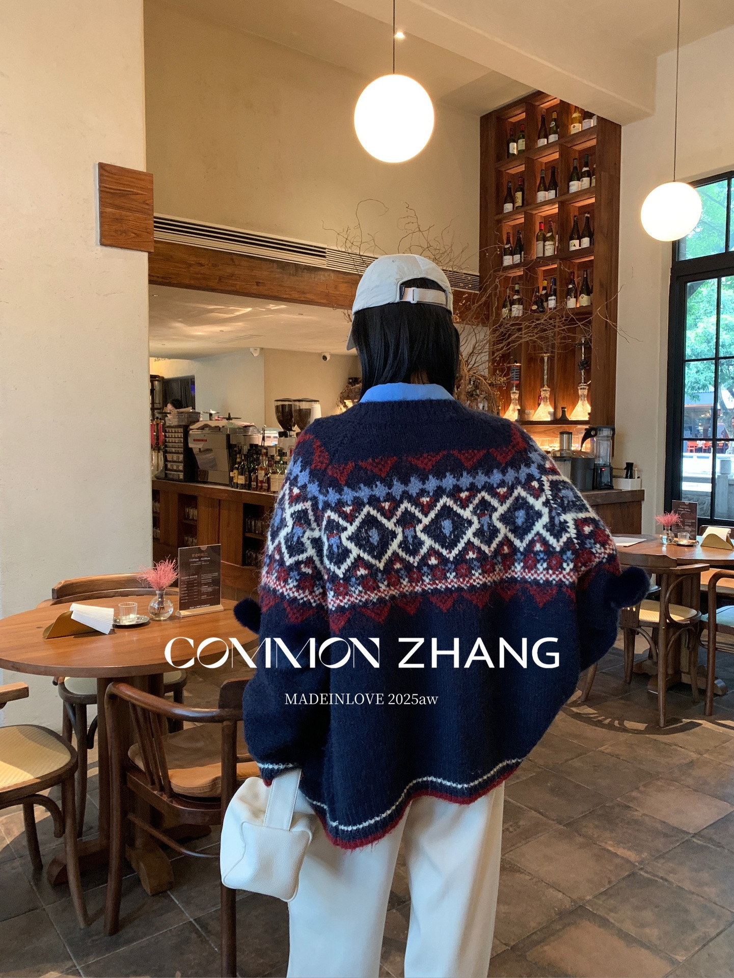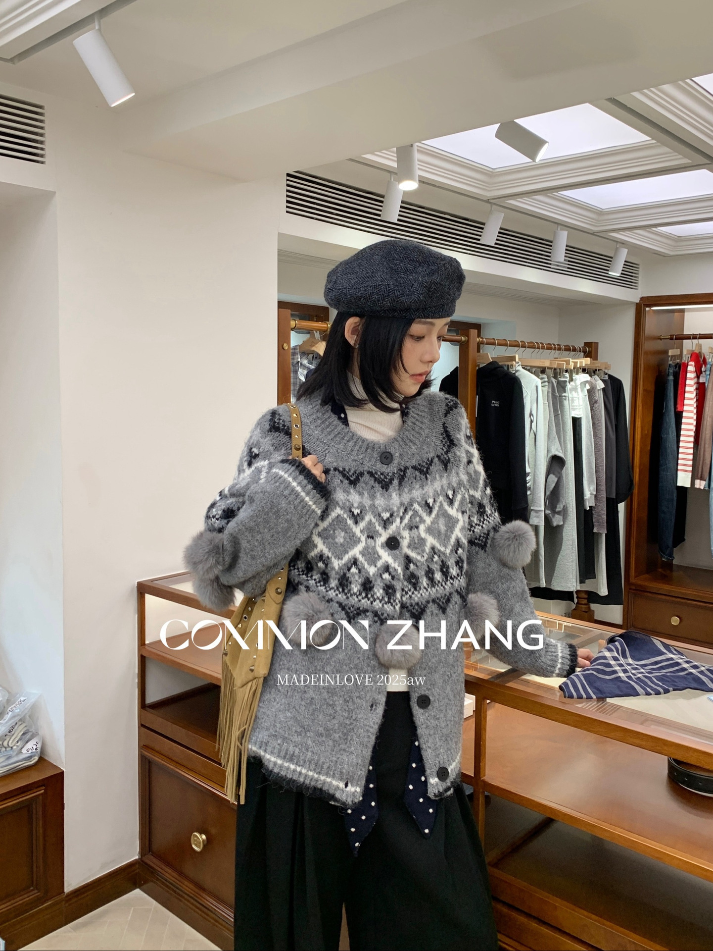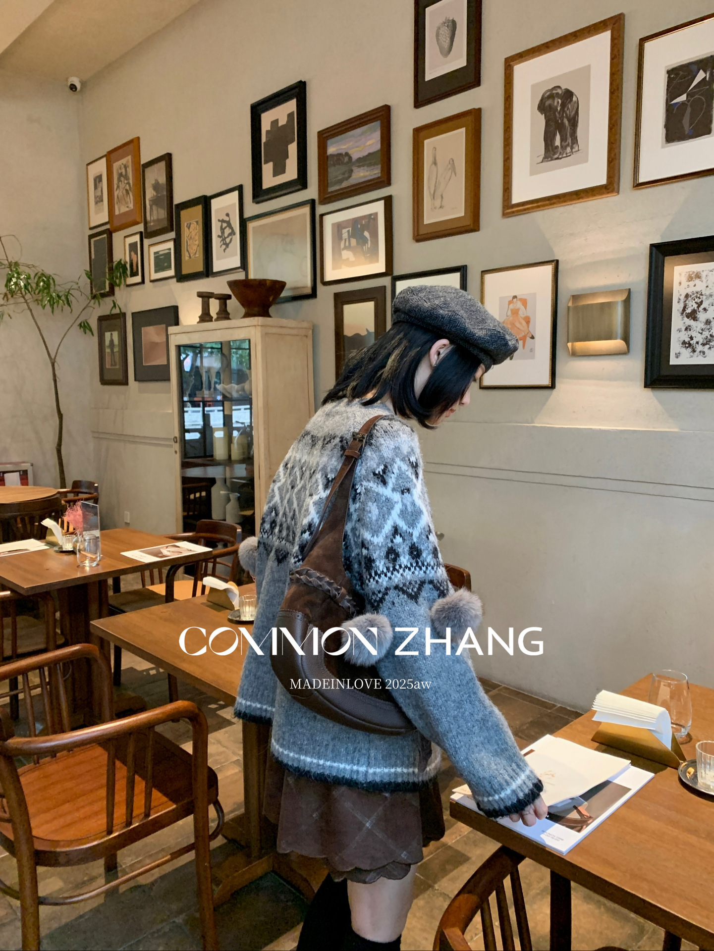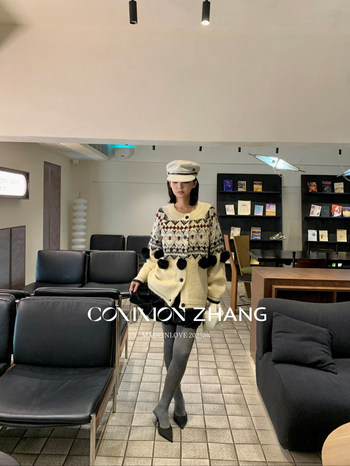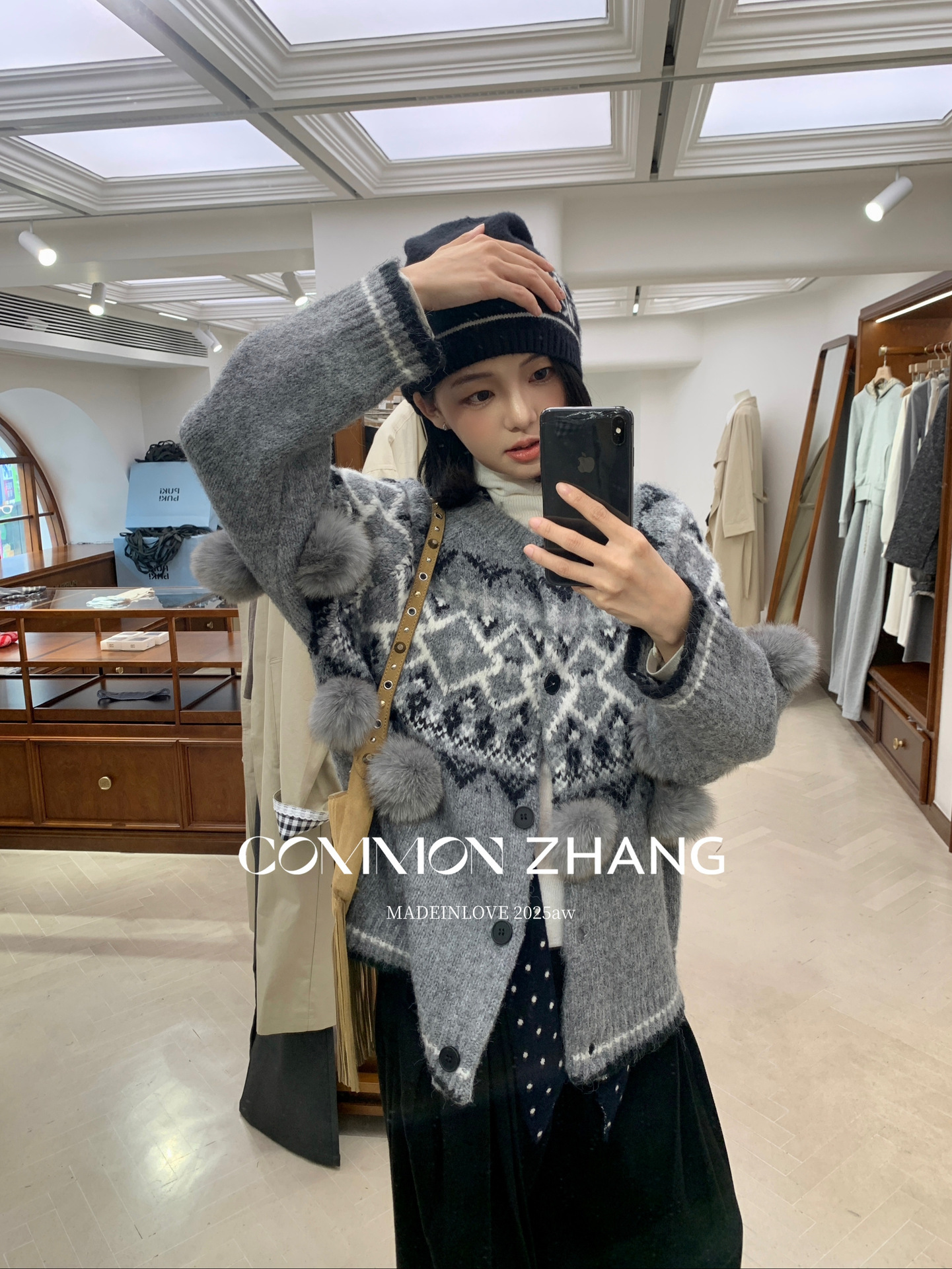*o-ha-you*【FCZCB405260】秋冬羊毛提花針織開襟衫女毛球費爾島中長毛衣外套-4色