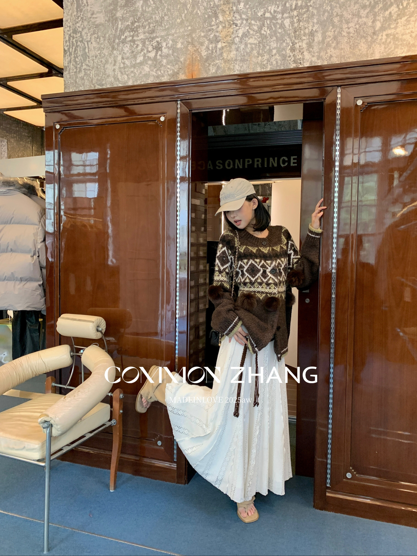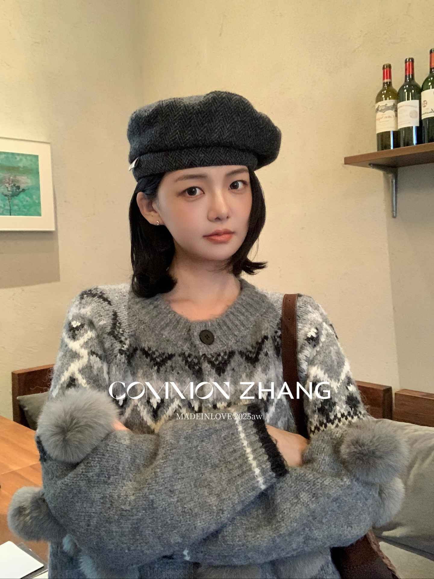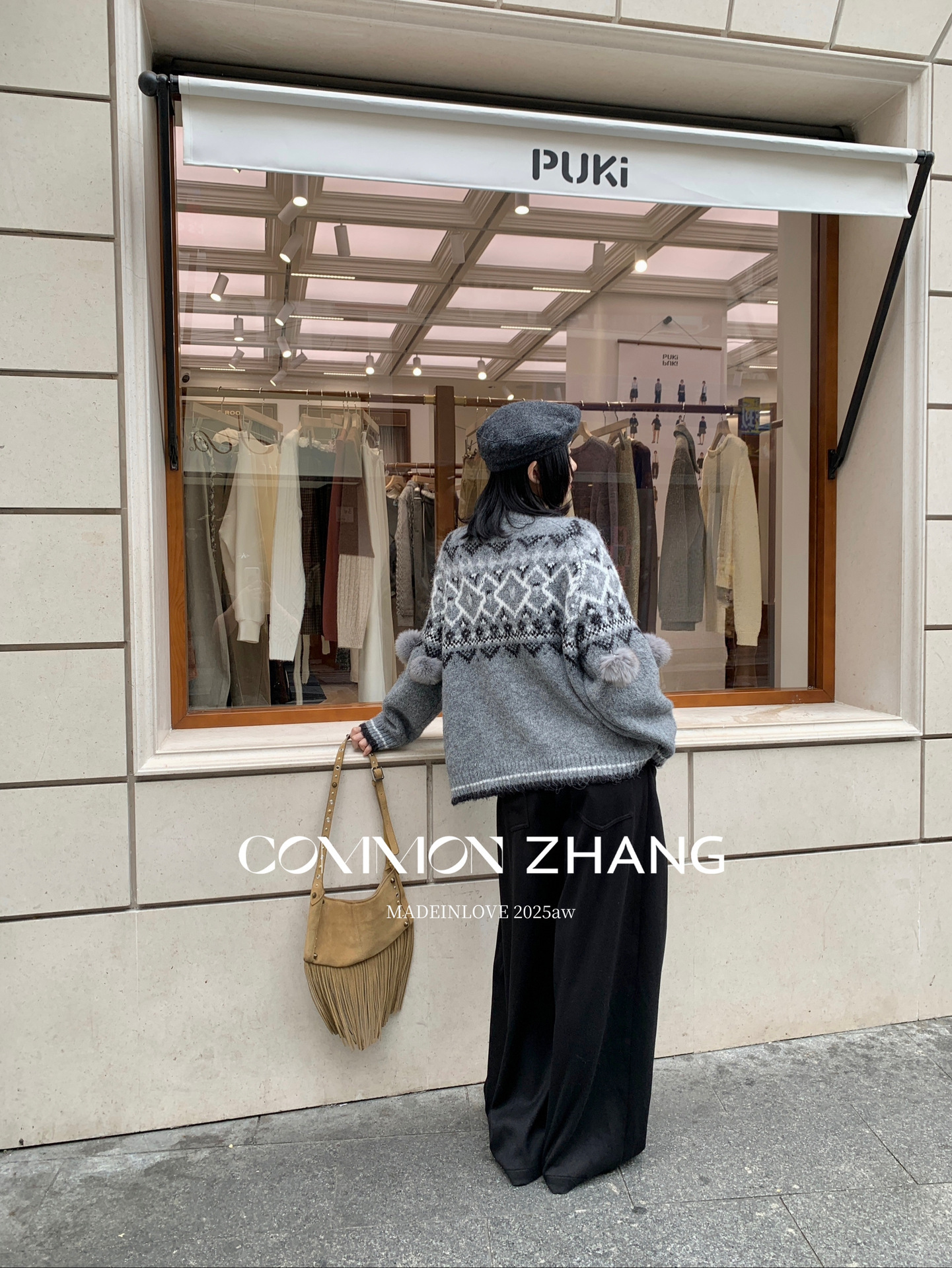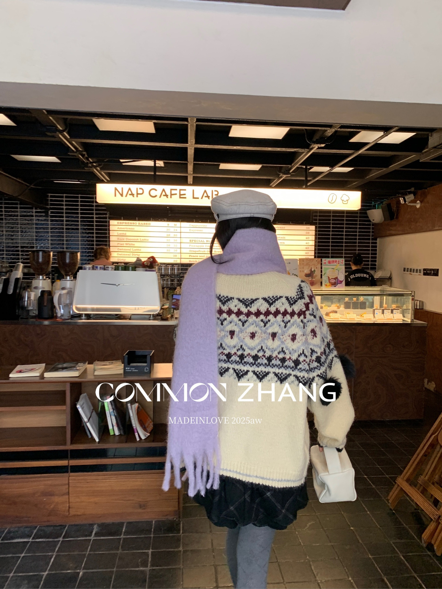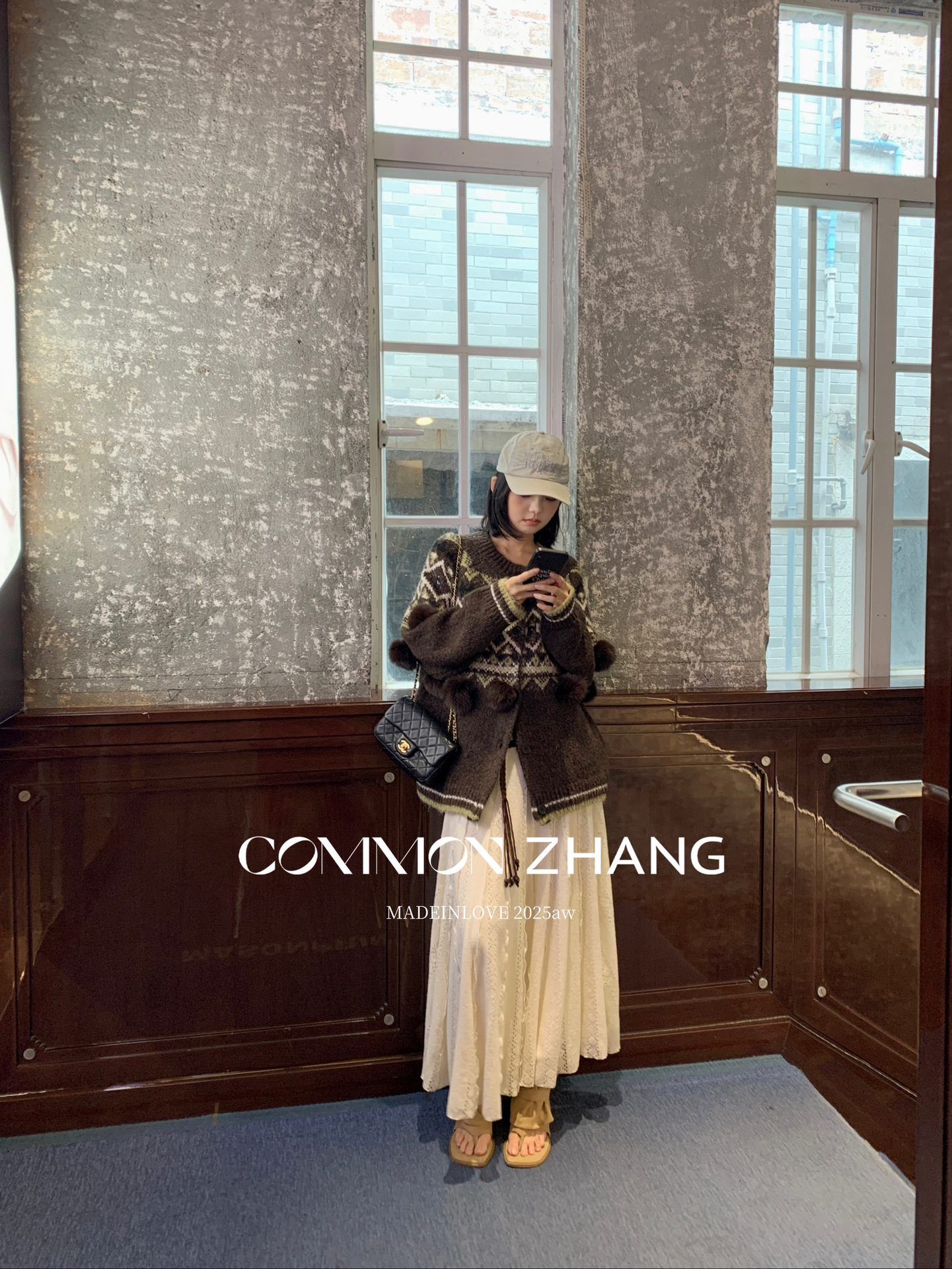 *o-ha-you*【FCZCB405260】秋冬羊毛提花針織開襟衫女毛球費爾島中長毛衣外套-4色