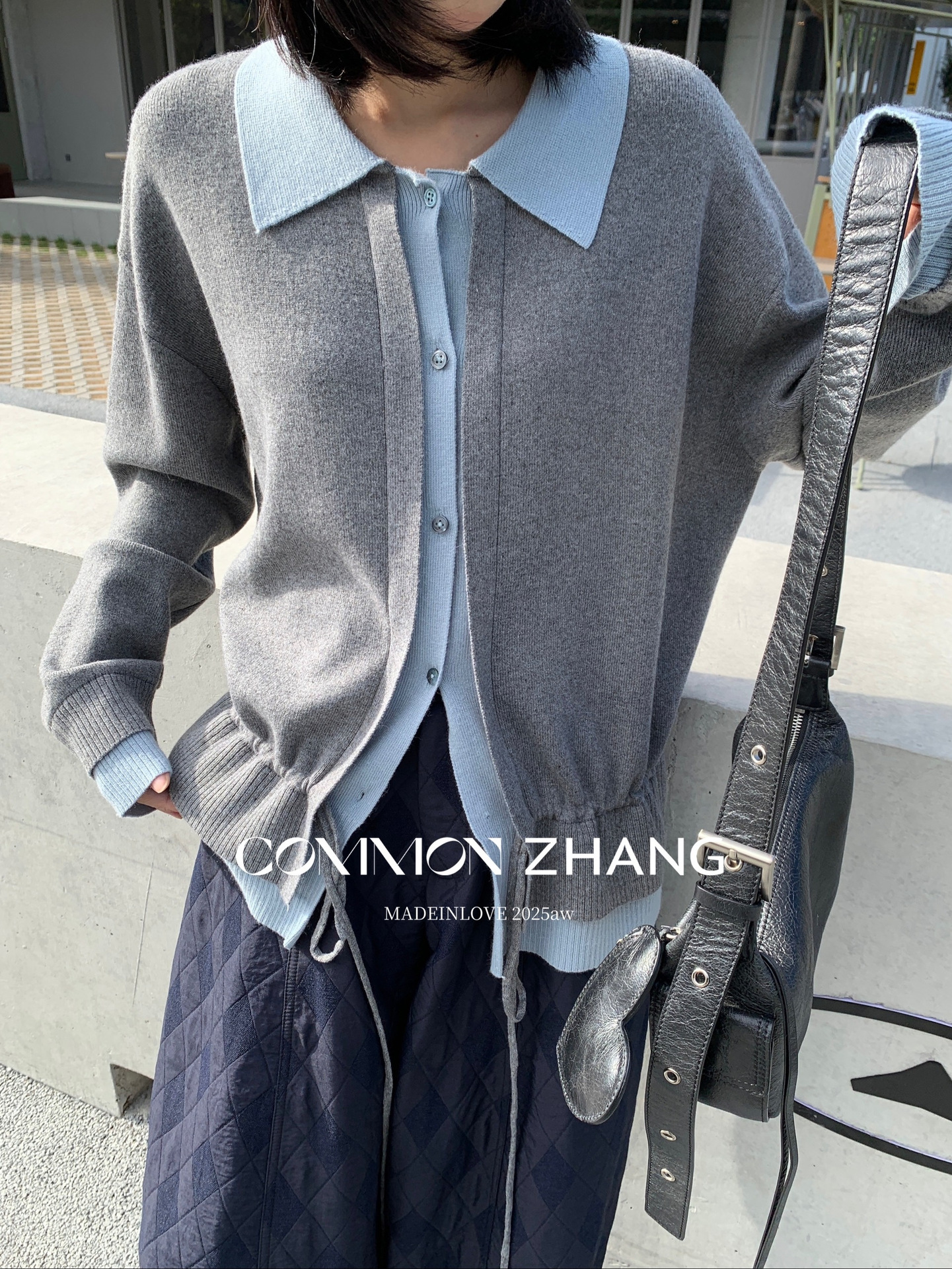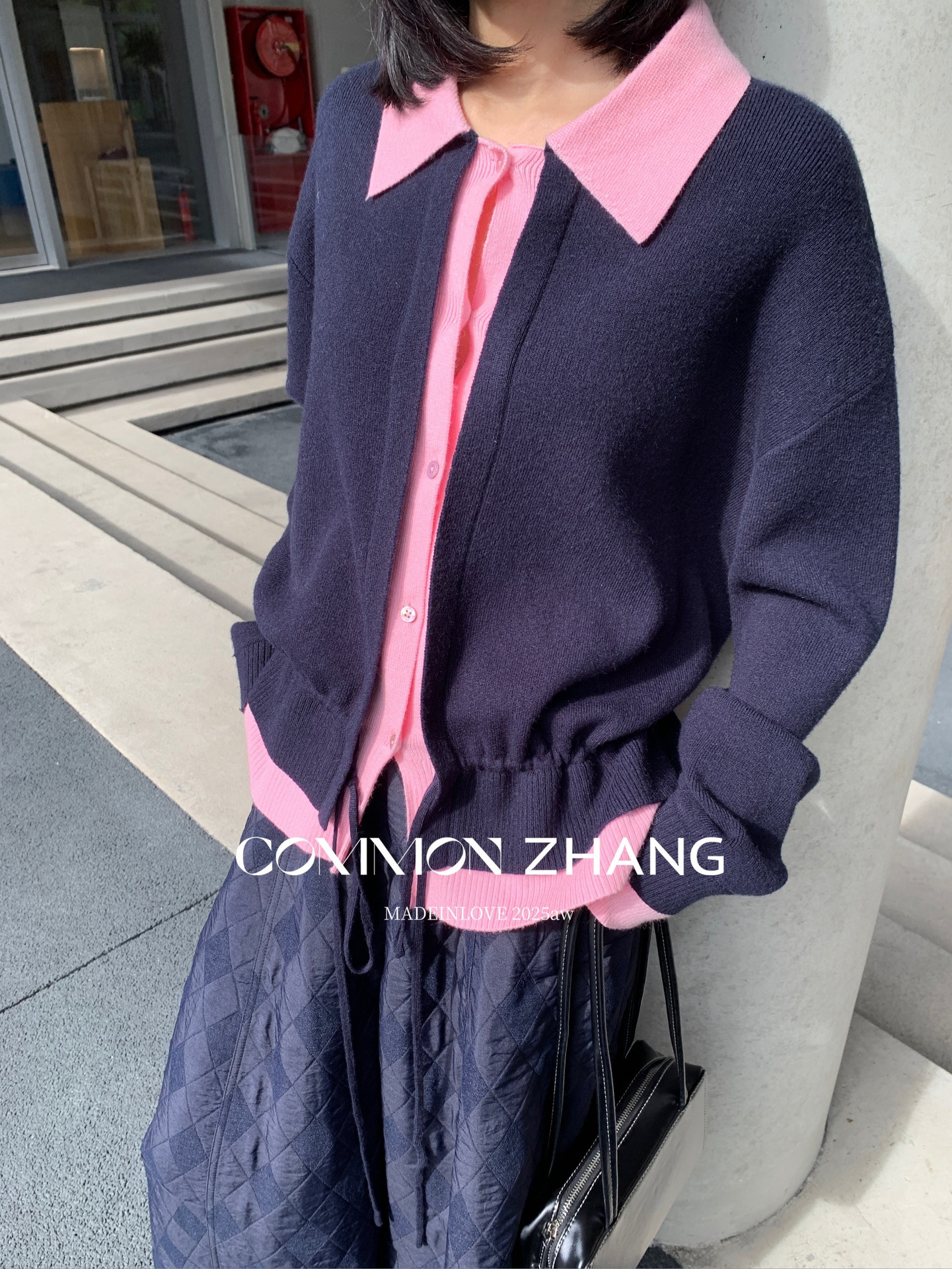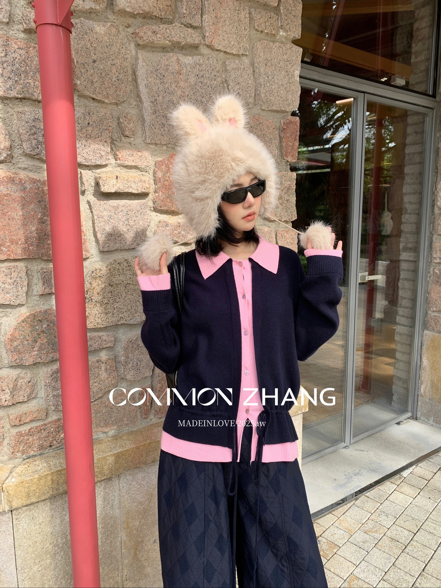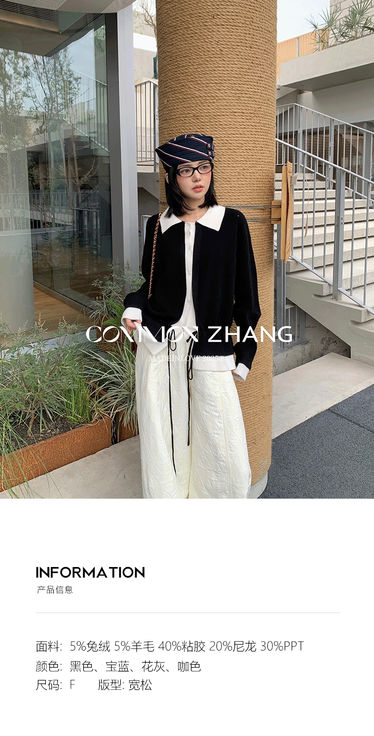 *o-ha-you*【FCZCB405262】秋冬兔絨假兩件羊毛針織開襟衫女撞色拼接襯衫領毛衣-4色