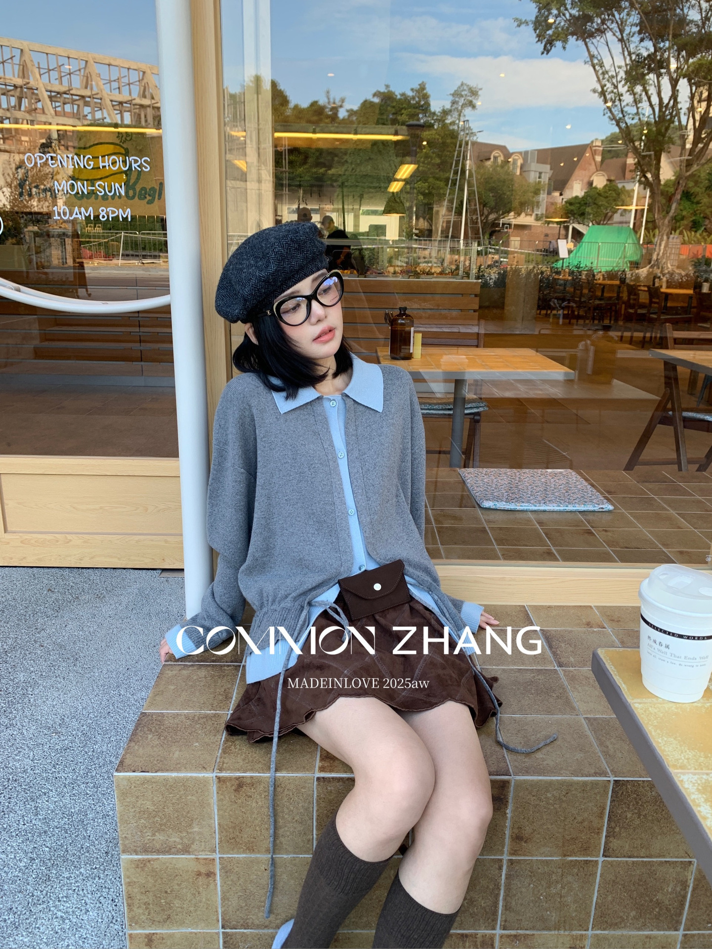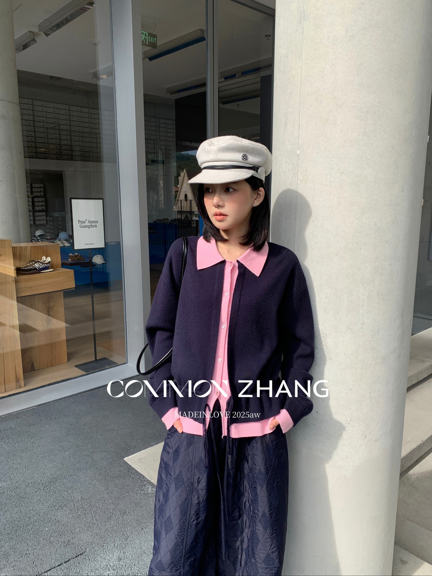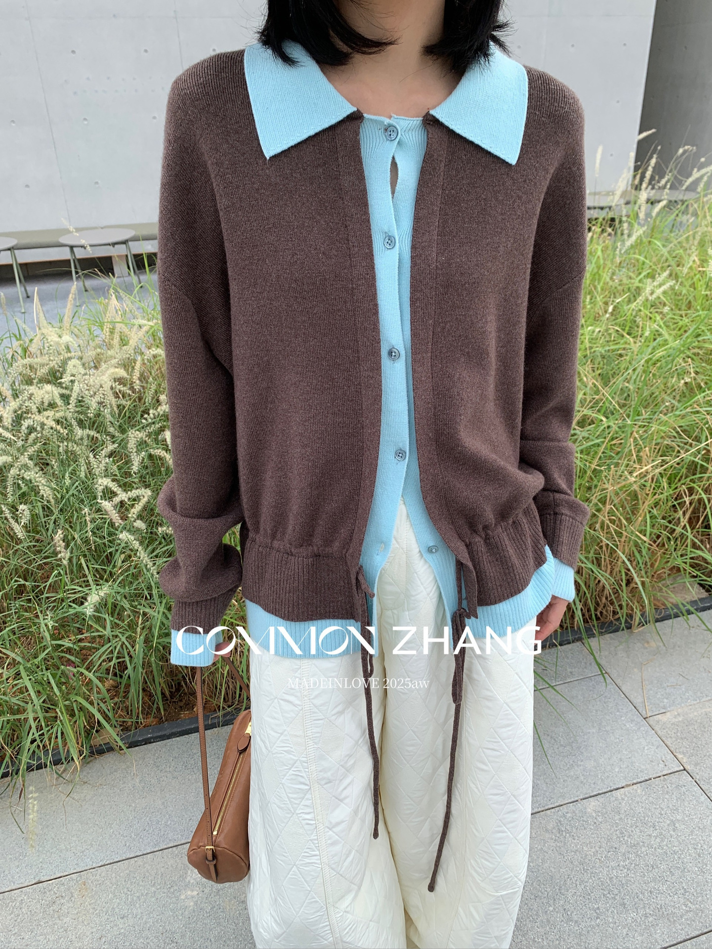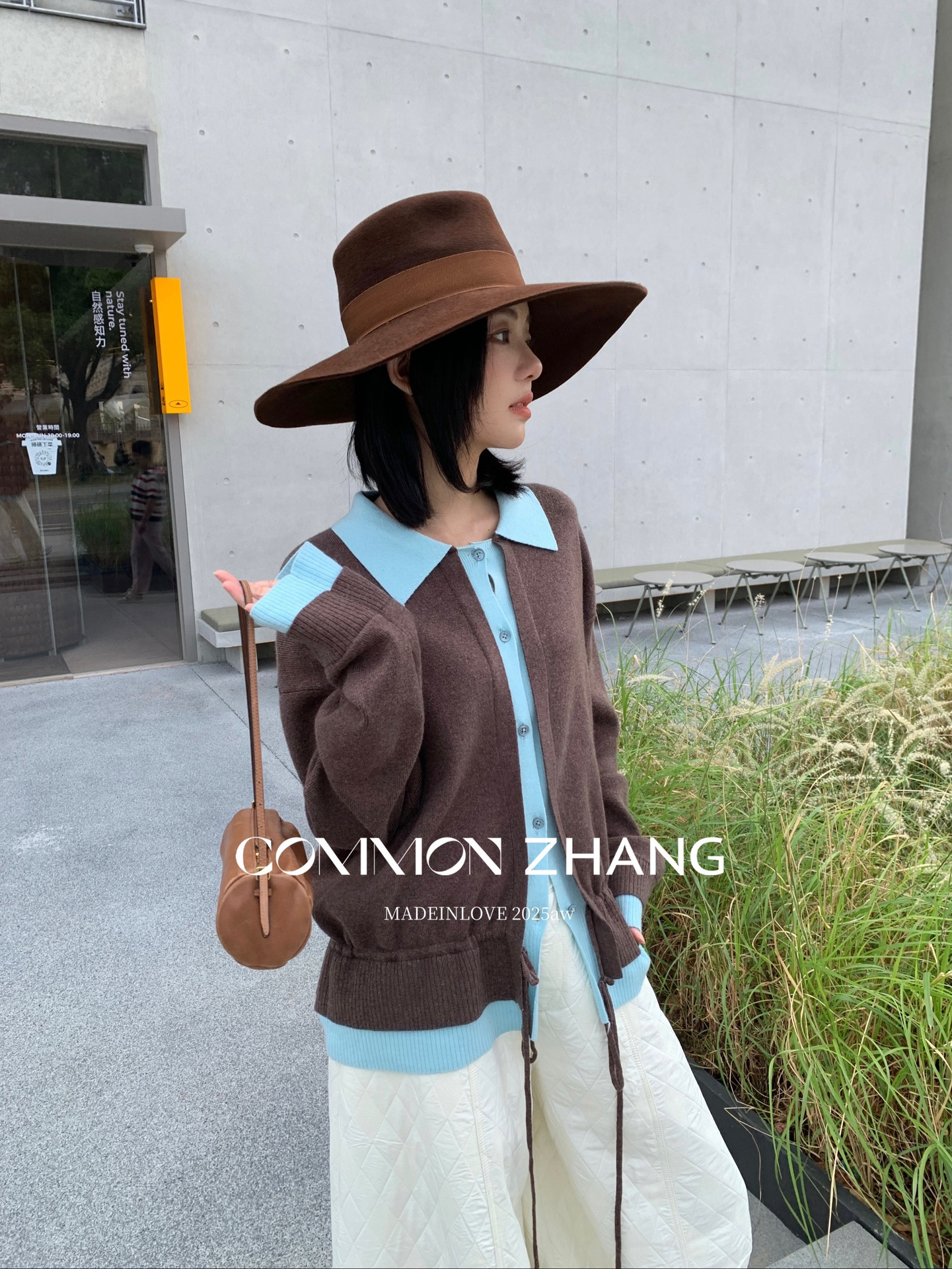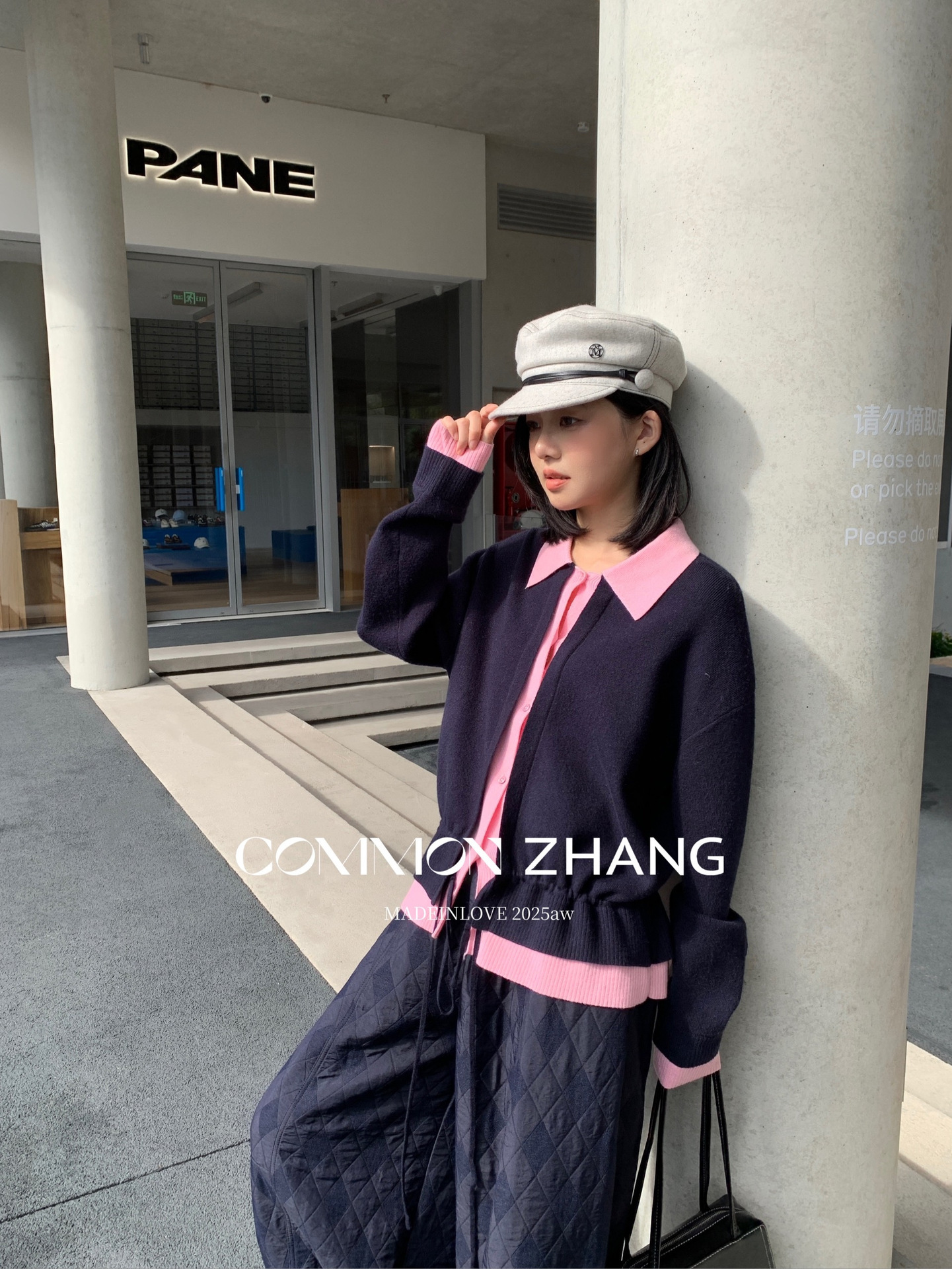 *o-ha-you*【FCZCB405262】秋冬兔絨假兩件羊毛針織開襟衫女撞色拼接襯衫領毛衣-4色