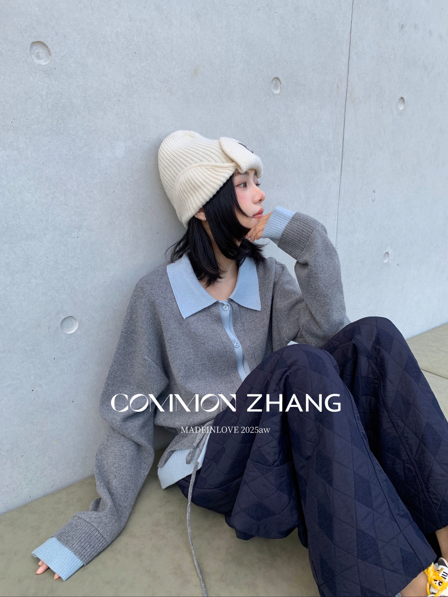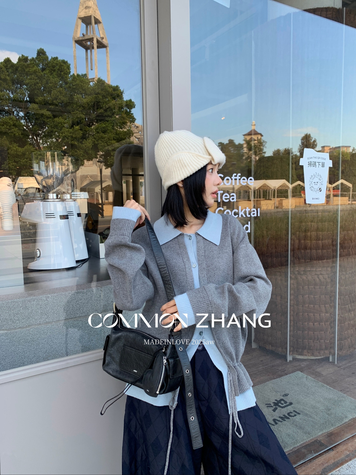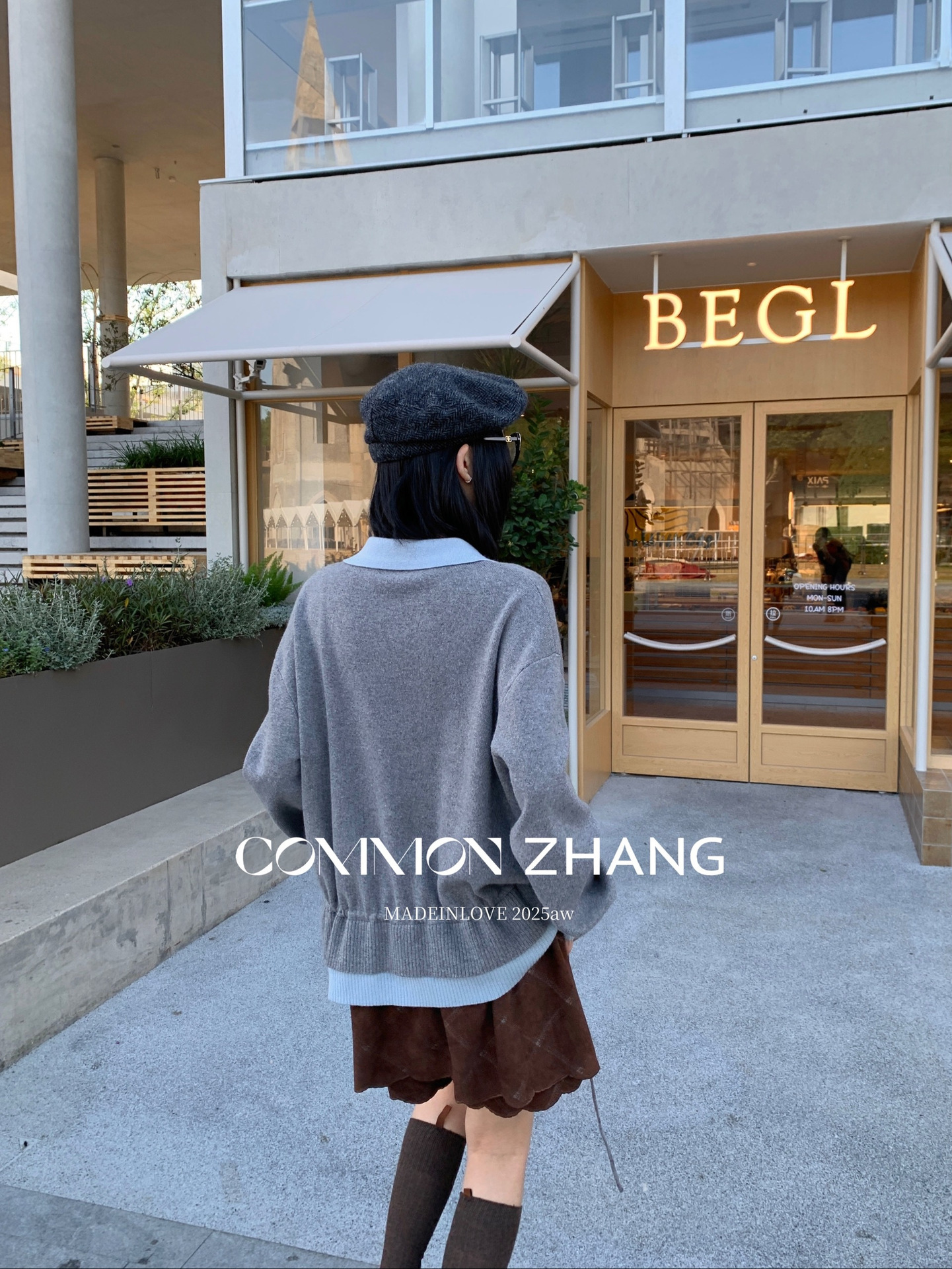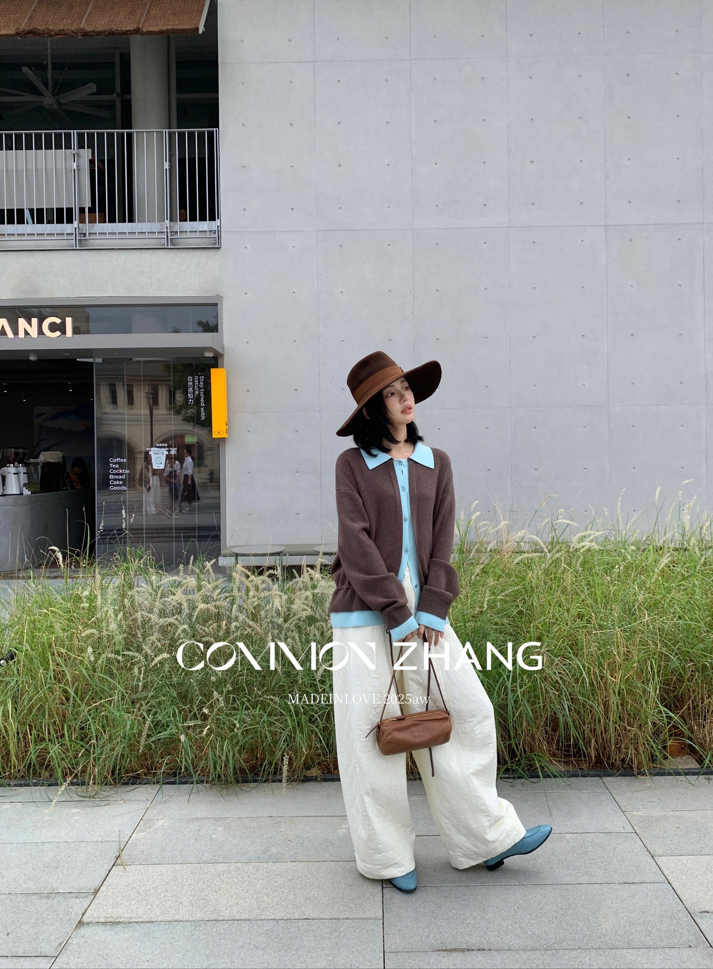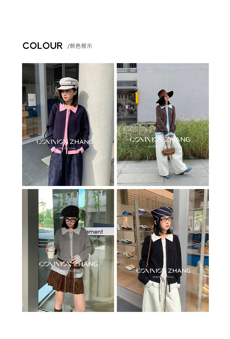 *o-ha-you*【FCZCB405262】秋冬兔絨假兩件羊毛針織開襟衫女撞色拼接襯衫領毛衣-4色