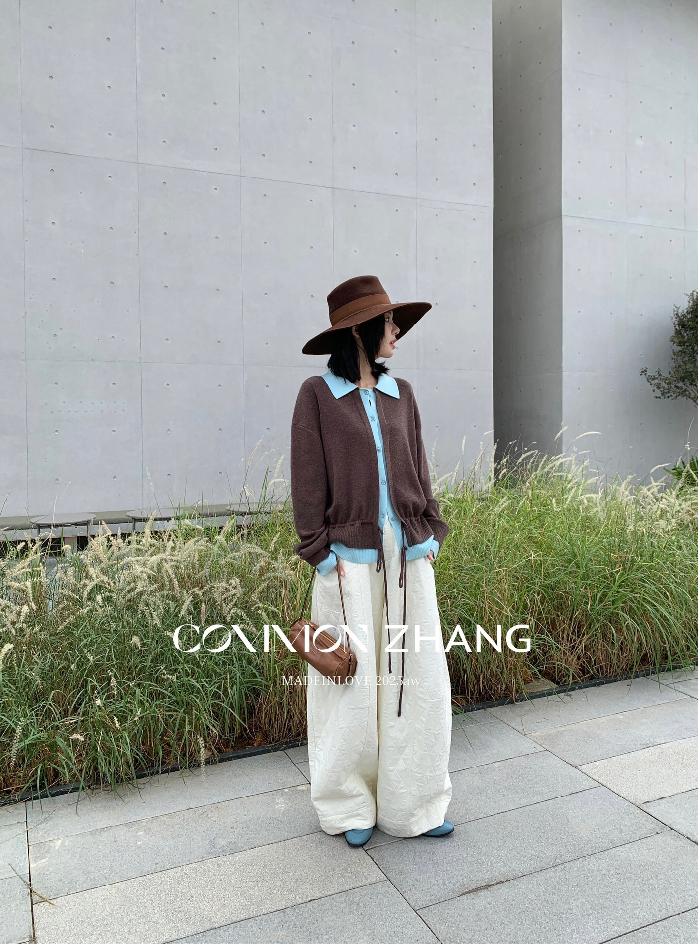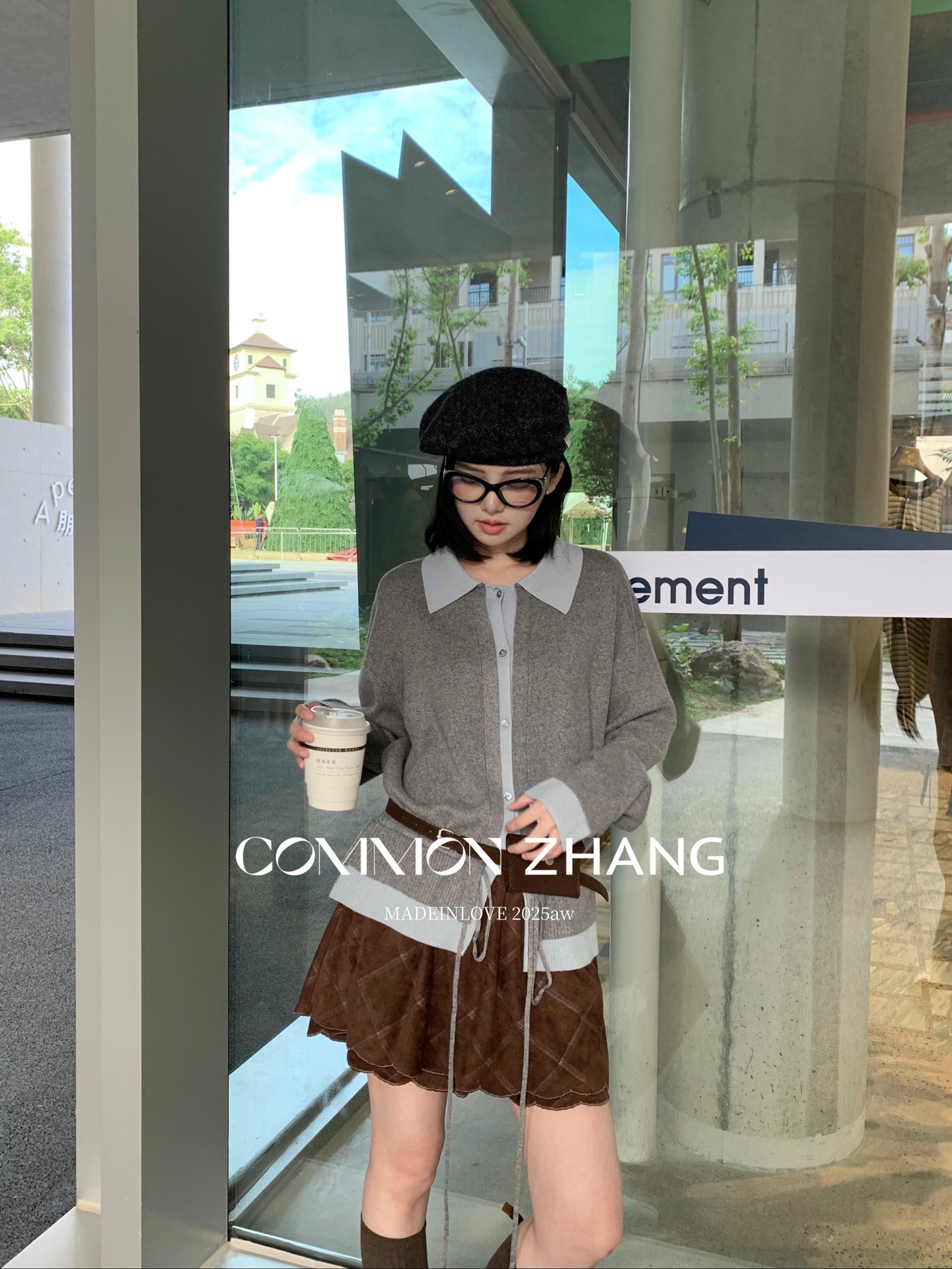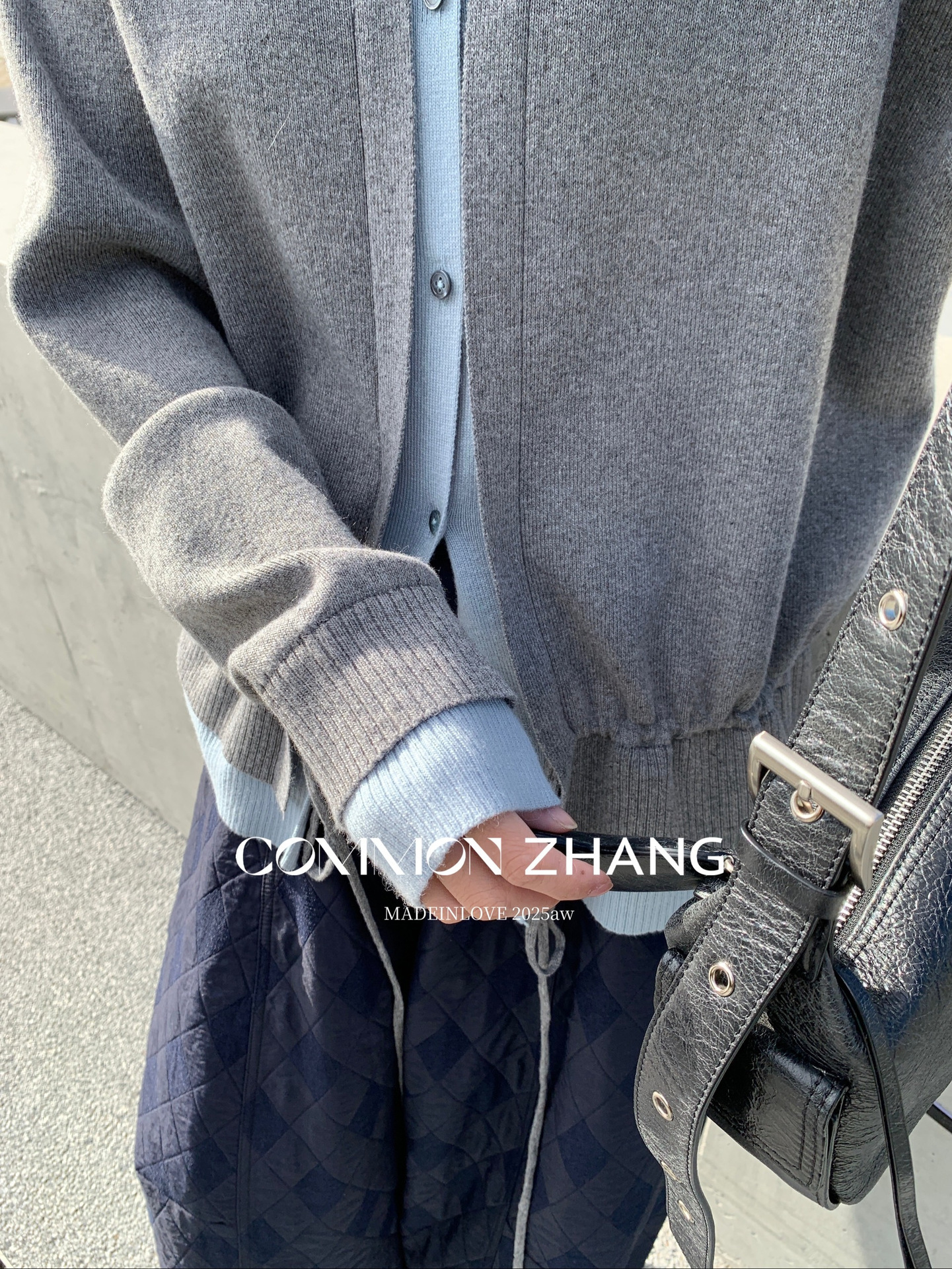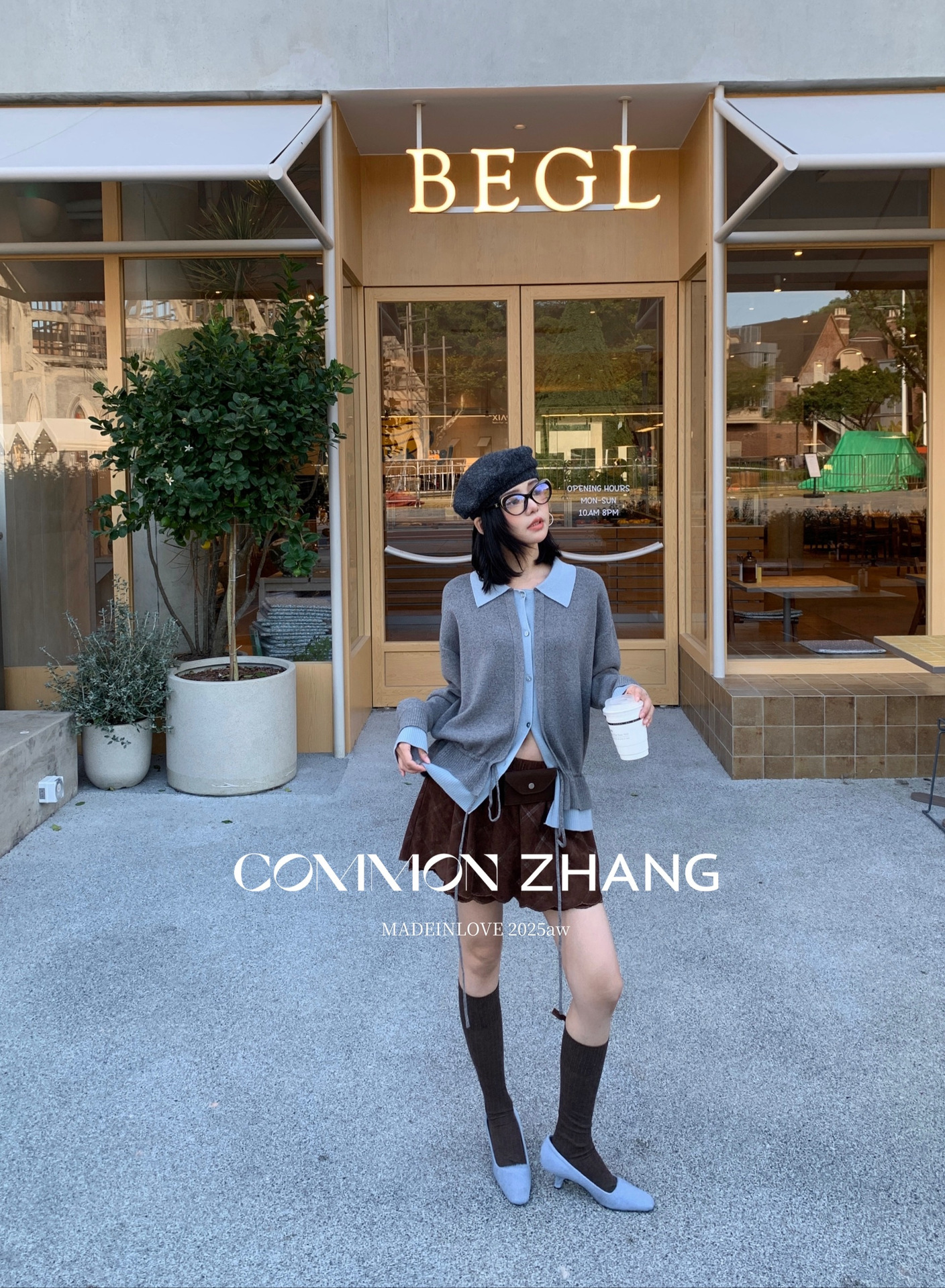 *o-ha-you*【FCZCB405262】秋冬兔絨假兩件羊毛針織開襟衫女撞色拼接襯衫領毛衣-4色