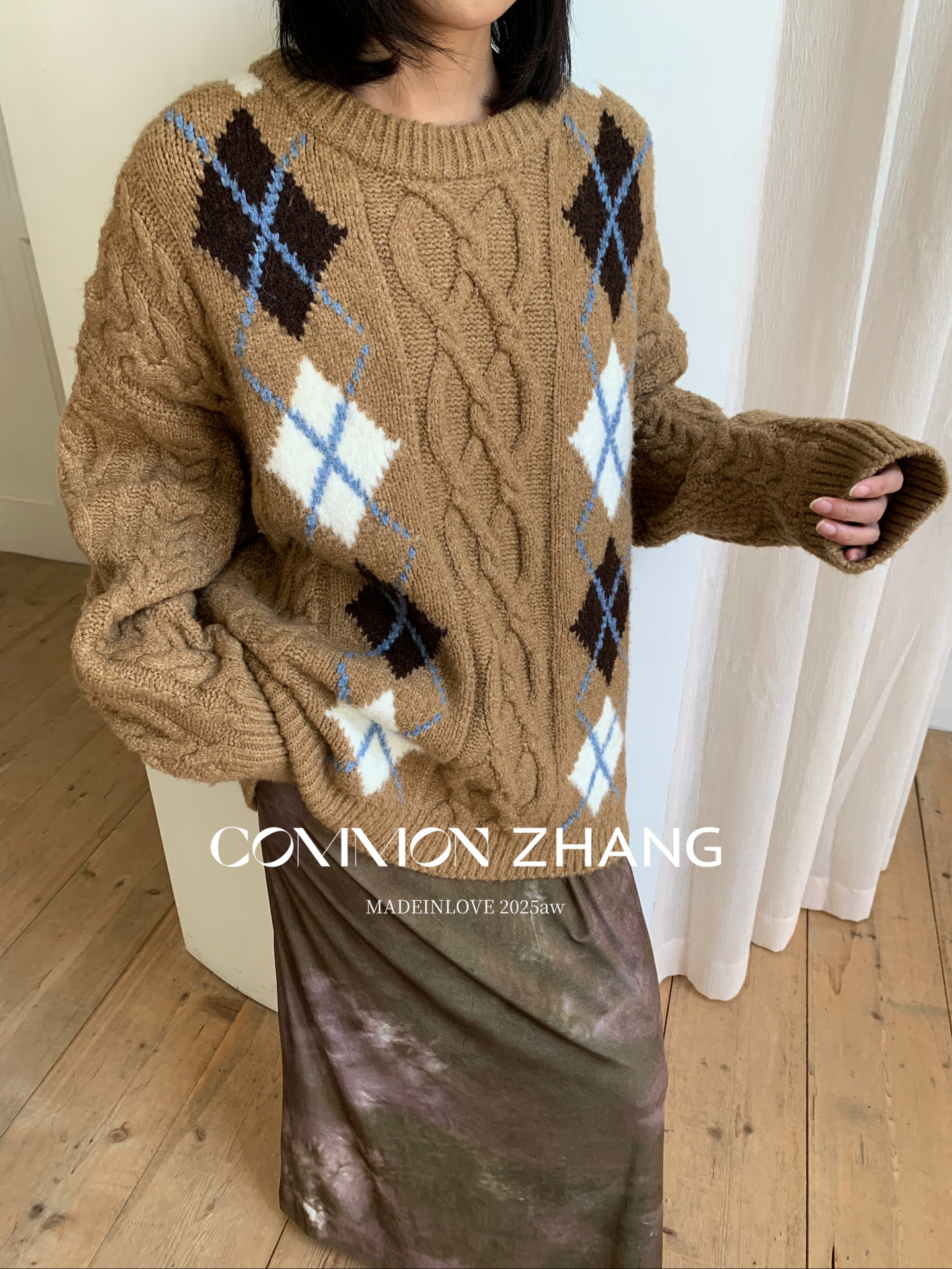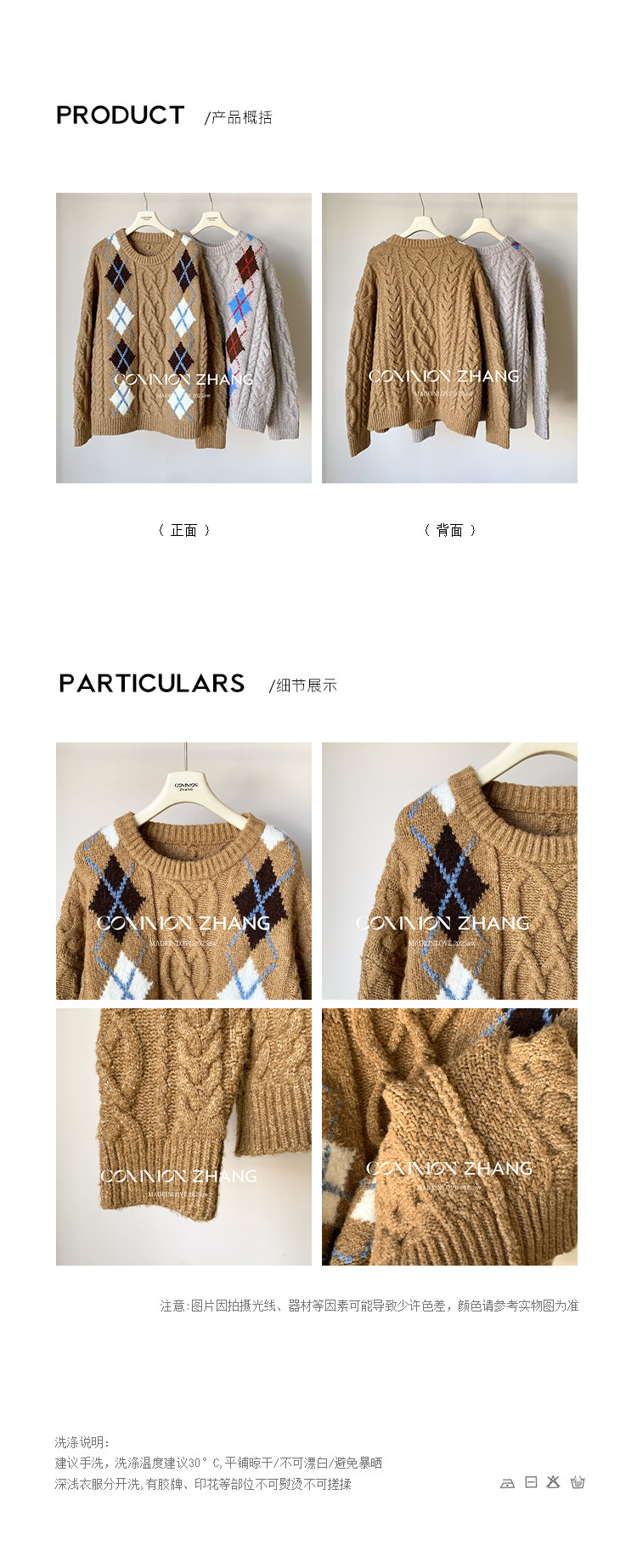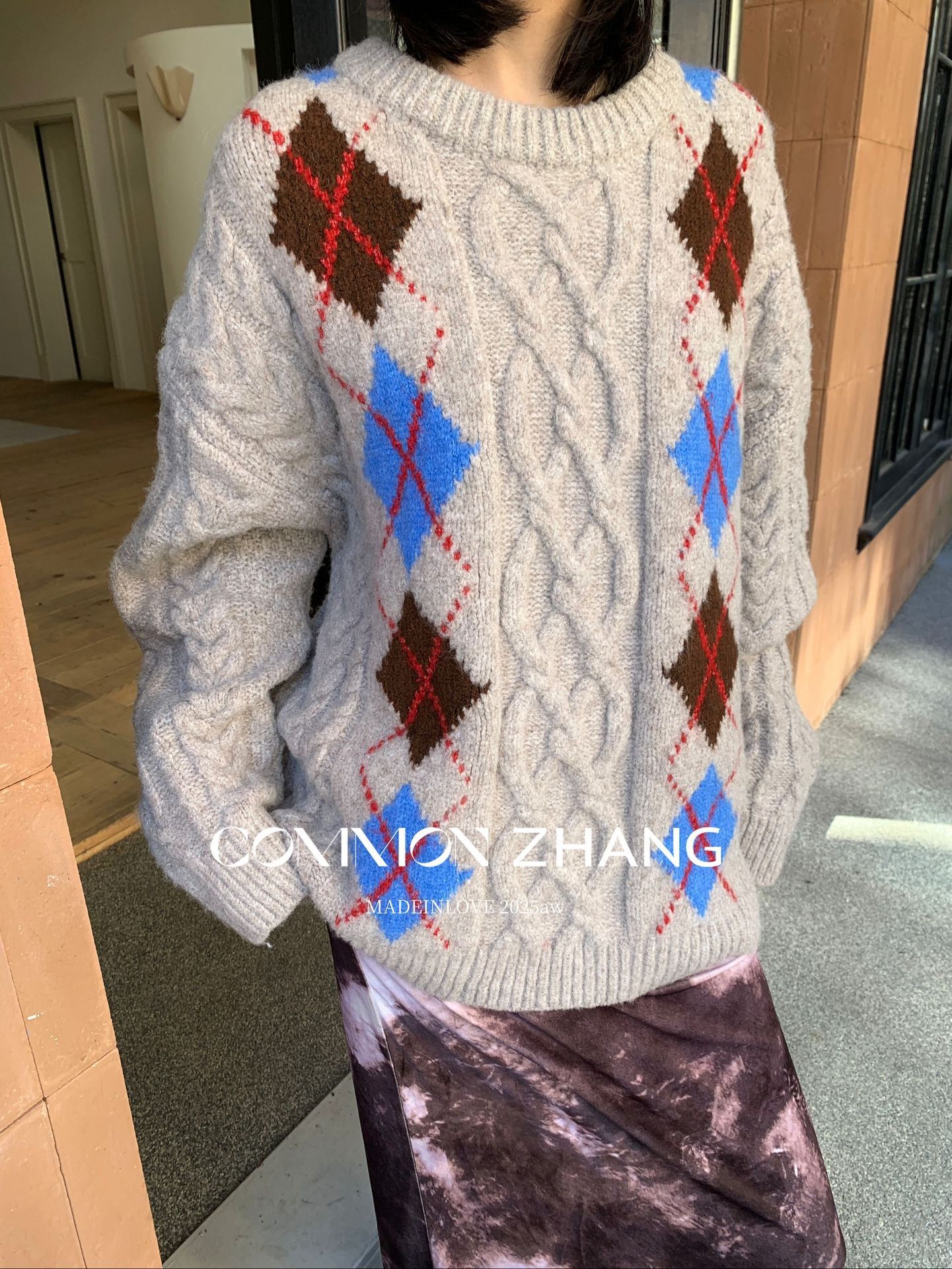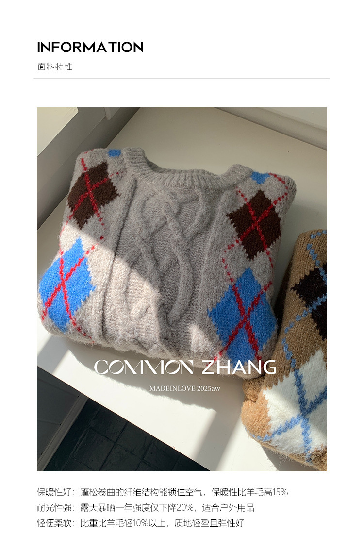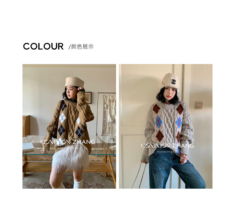 *o-ha-you*【FCZCB405263】秋冬加厚保暖羊毛套頭麻花毛衣女慵懶風提花針織衫-2色