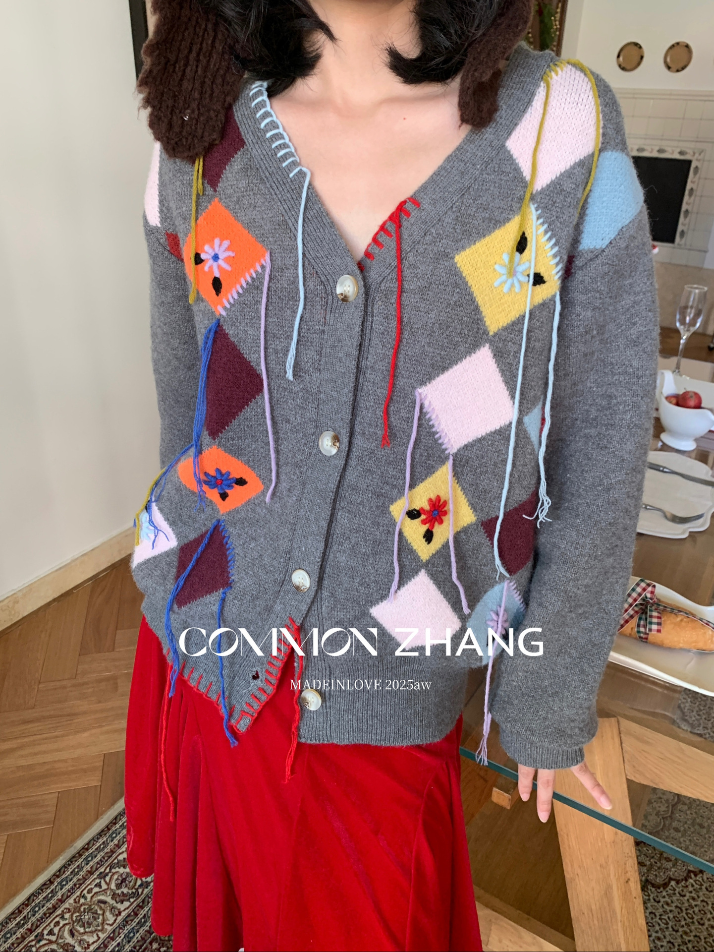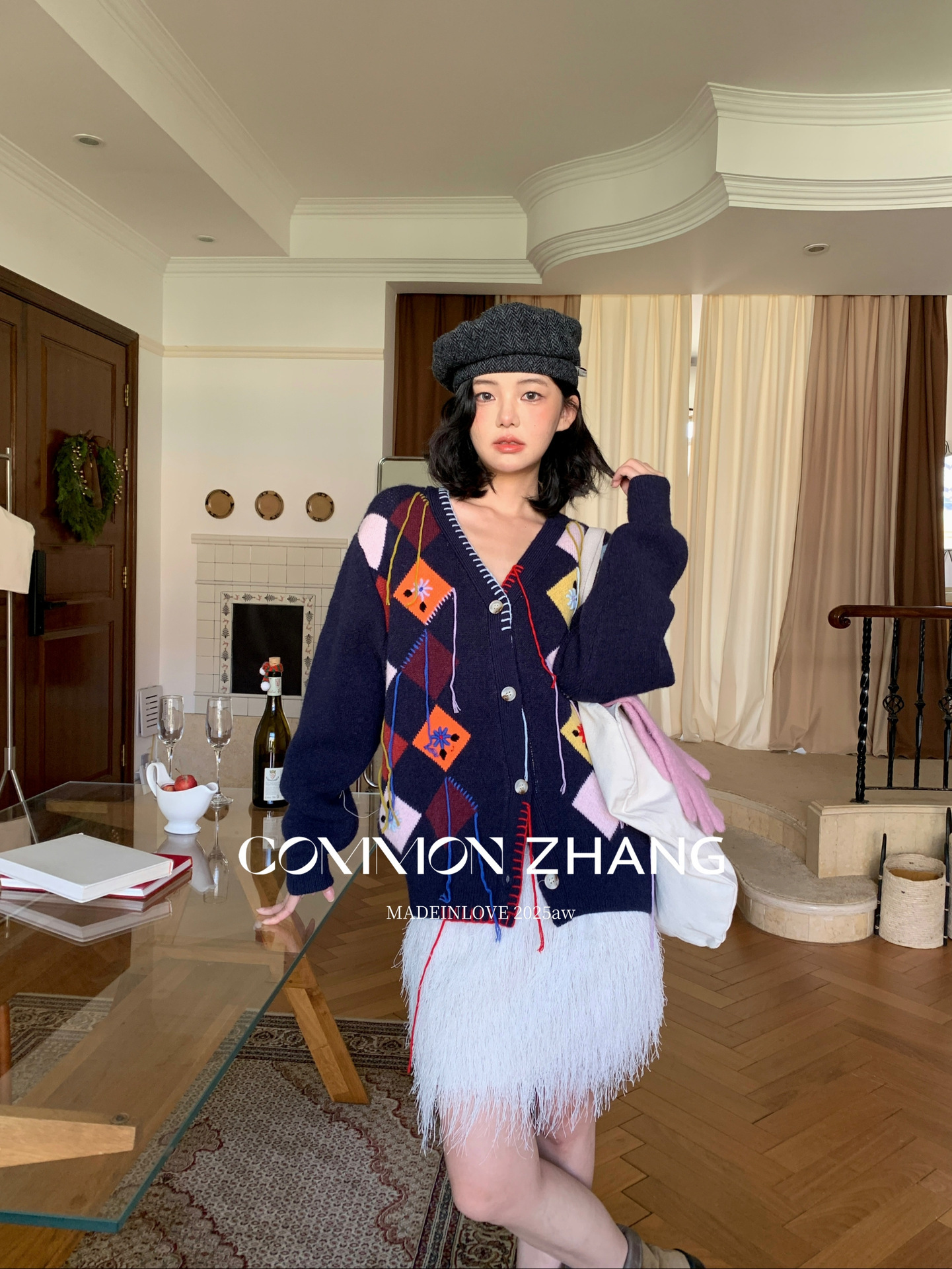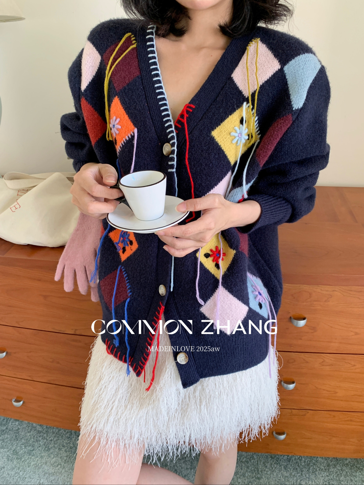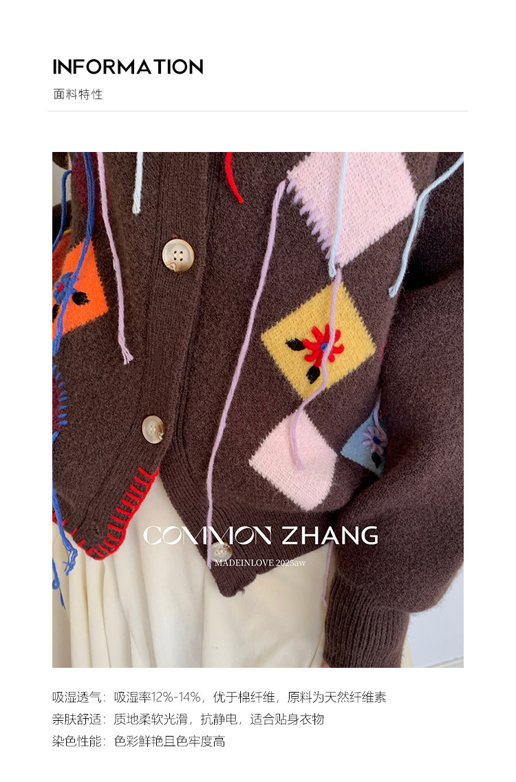 *o-ha-you*【FCZCB405279】費爾島繡花流蘇針織開襟衫女V領提花甜美毛衣外套-3色