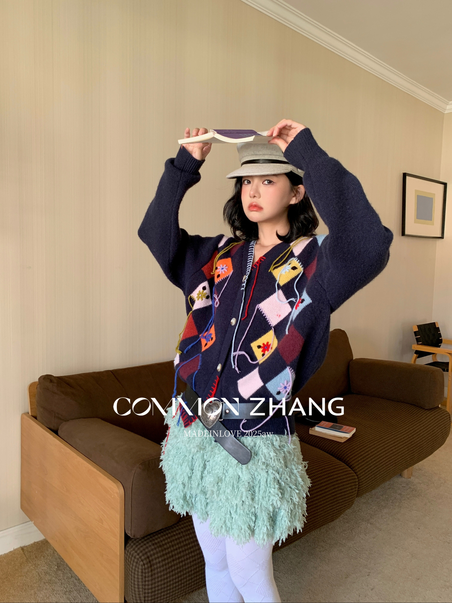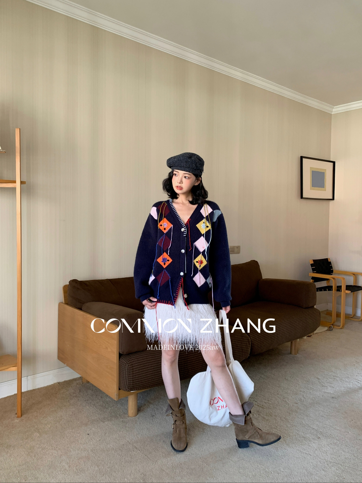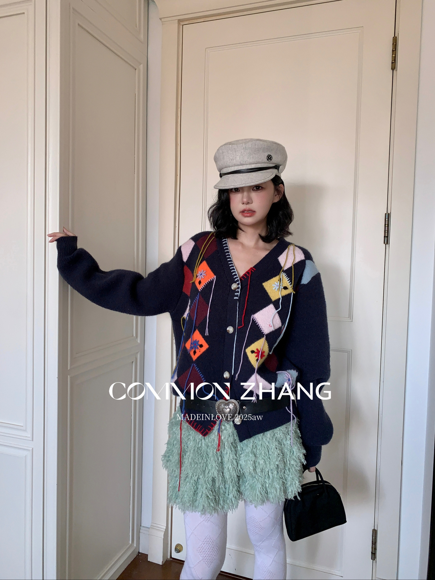 *o-ha-you*【FCZCB405279】費爾島繡花流蘇針織開襟衫女V領提花甜美毛衣外套-3色