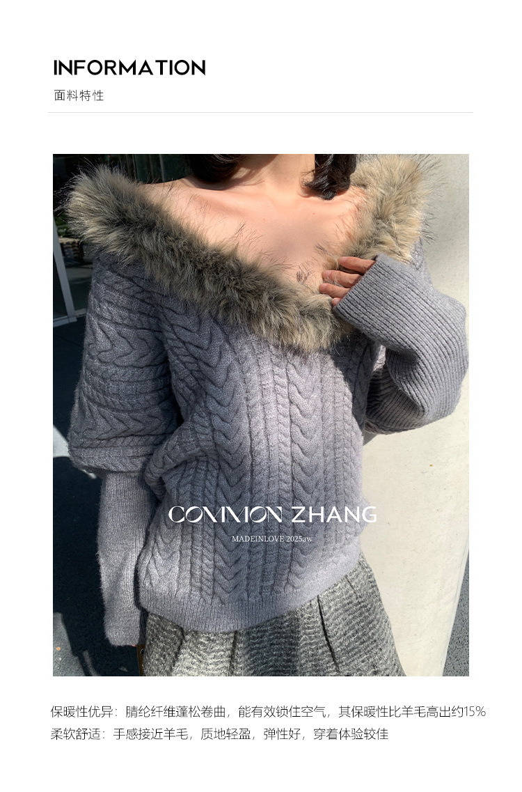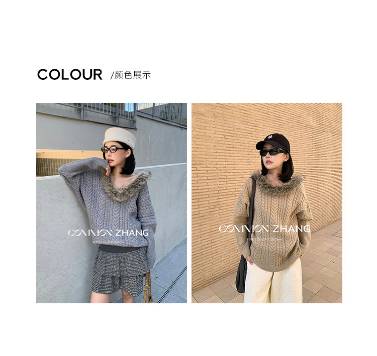 *o-ha-you*【FCZCB405283】秋冬前後兩穿仿貂毛毛領套頭毛衣女聖誕套頭針織衫-2色