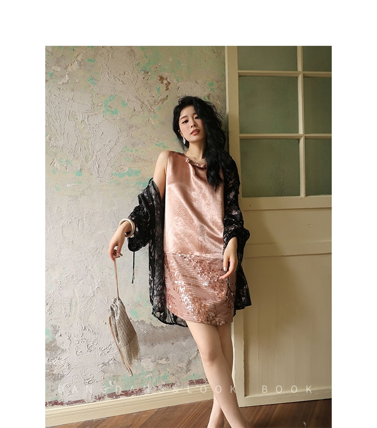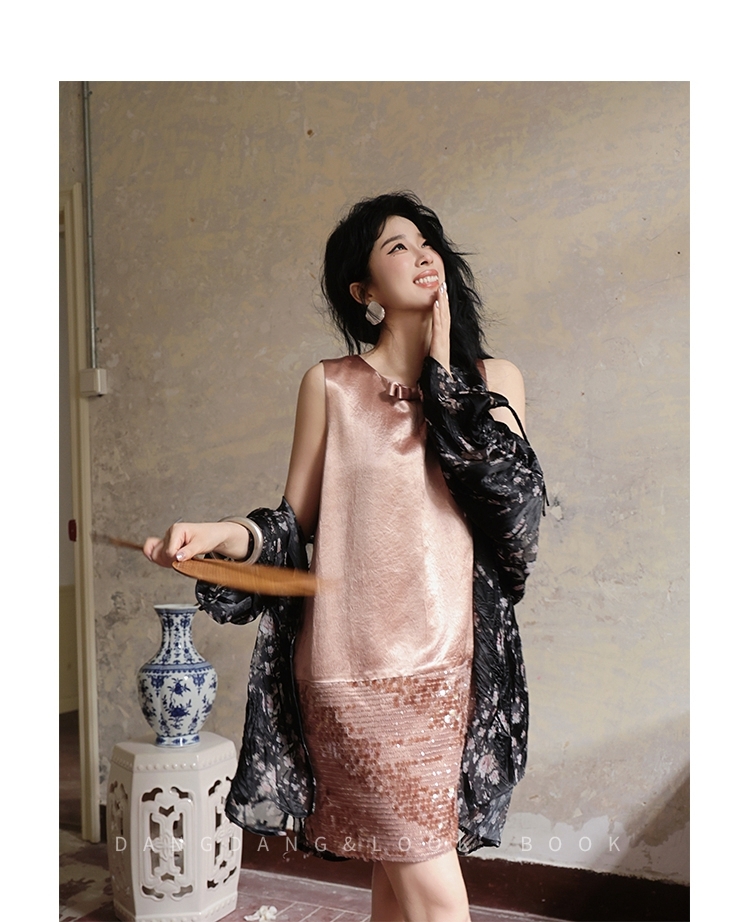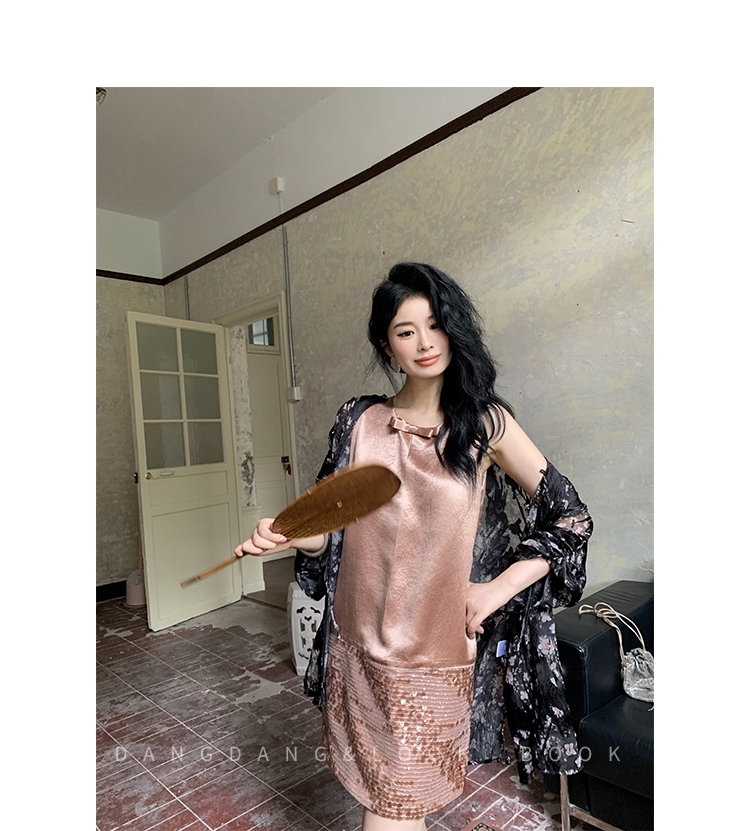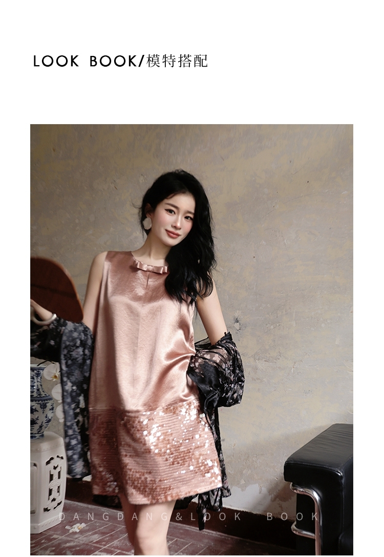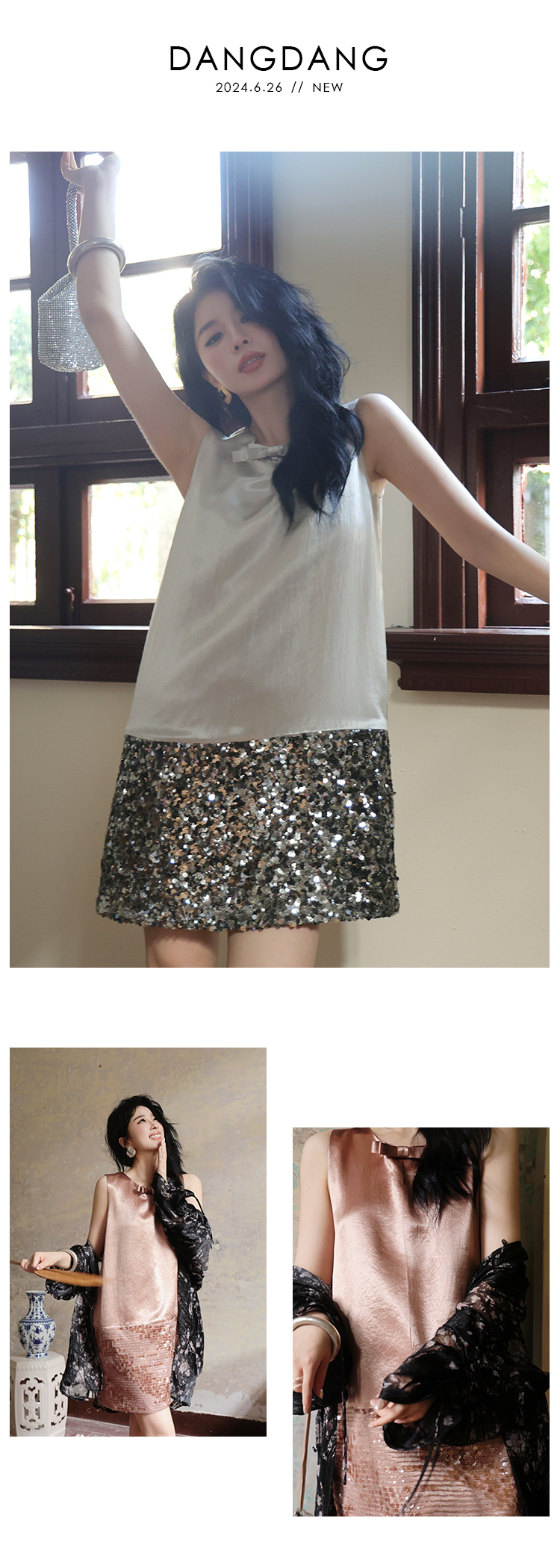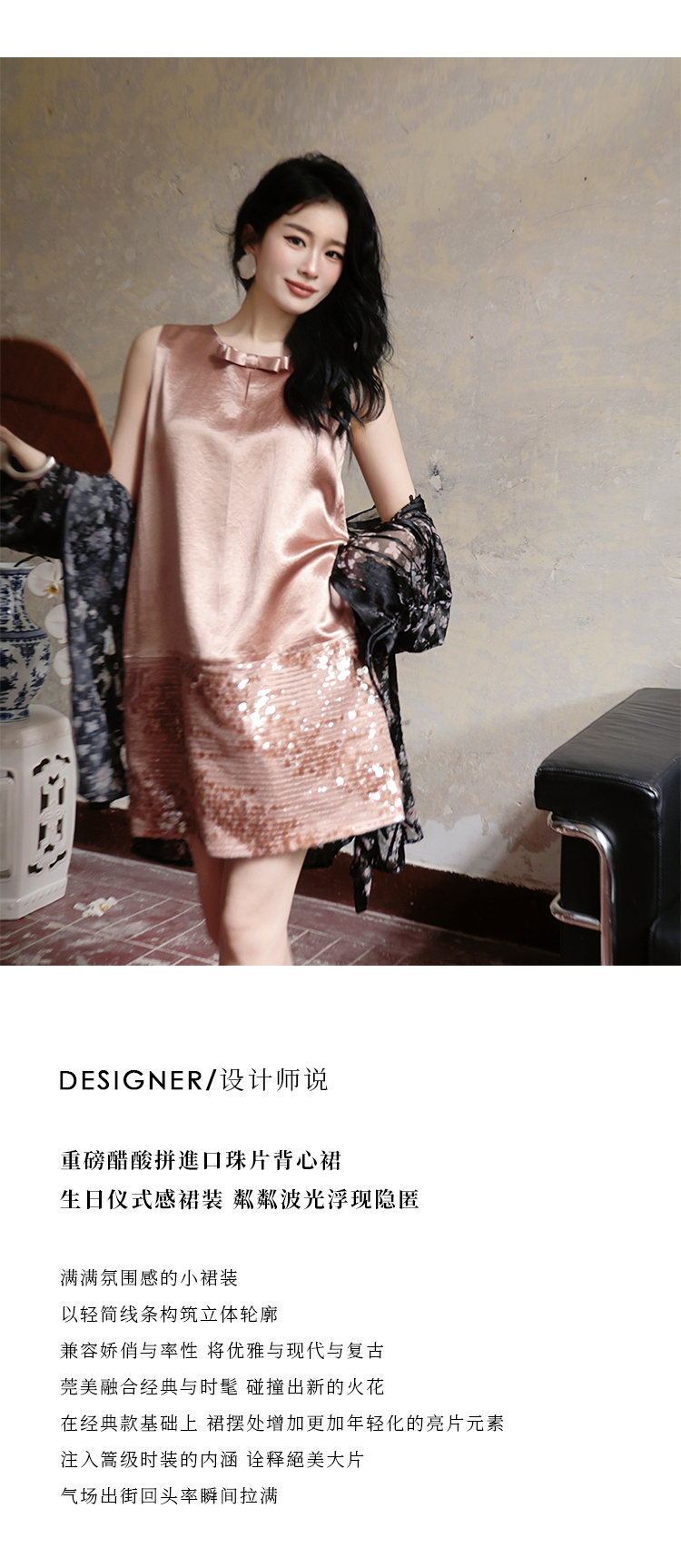 *o-ha-you*【FDD204A160】「月光琉璃」廳裡廳氣~重磅醋酸拼接珠片連衣裙小洋裝