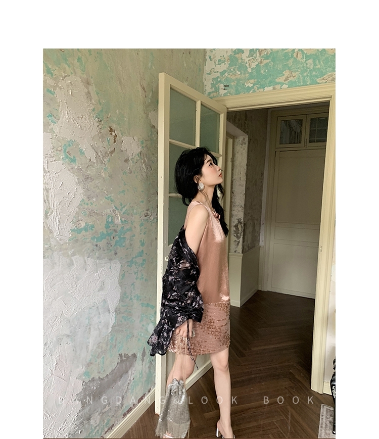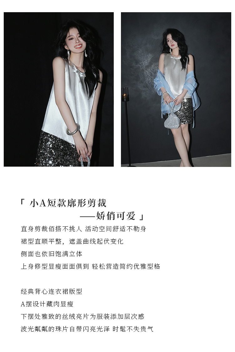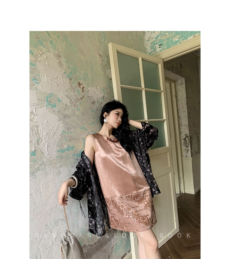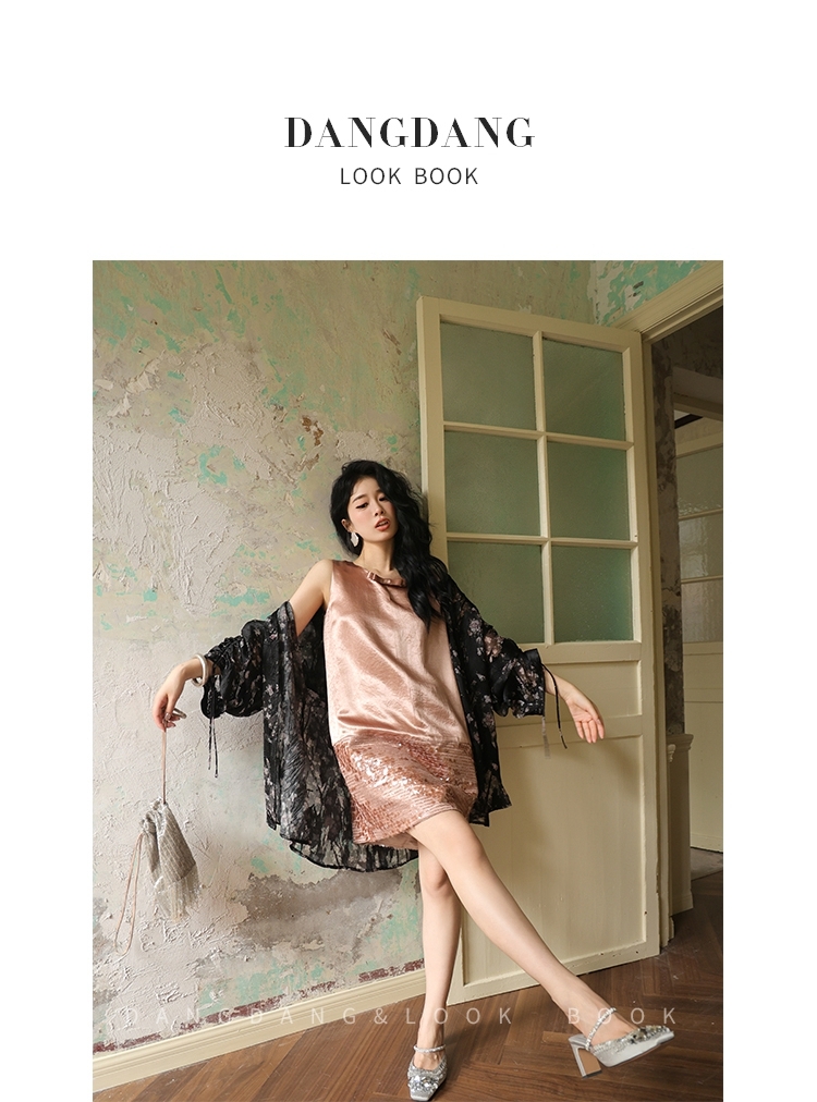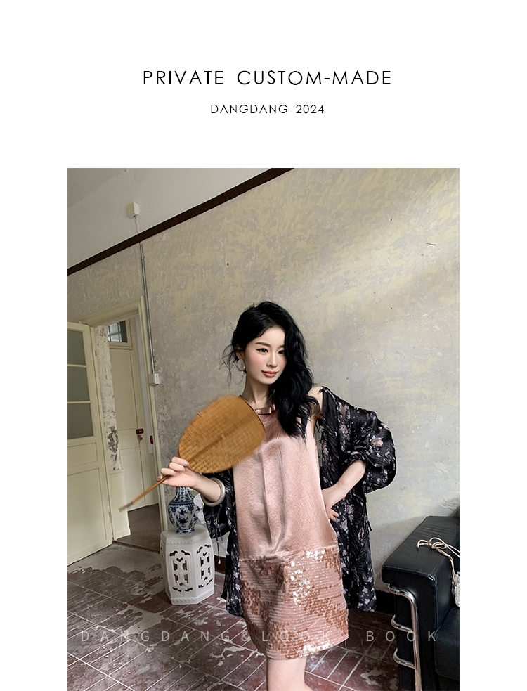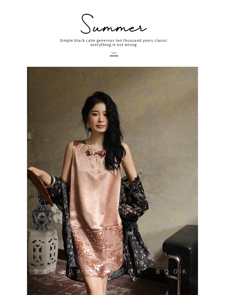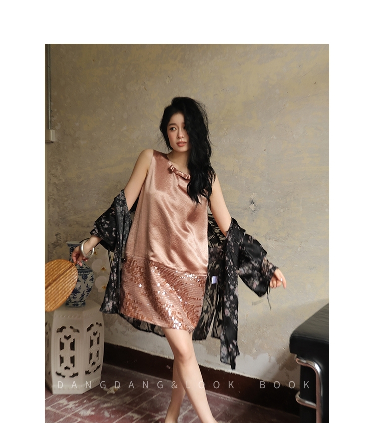 *o-ha-you*【FDD204A160】「月光琉璃」廳裡廳氣~重磅醋酸拼接珠片連衣裙小洋裝