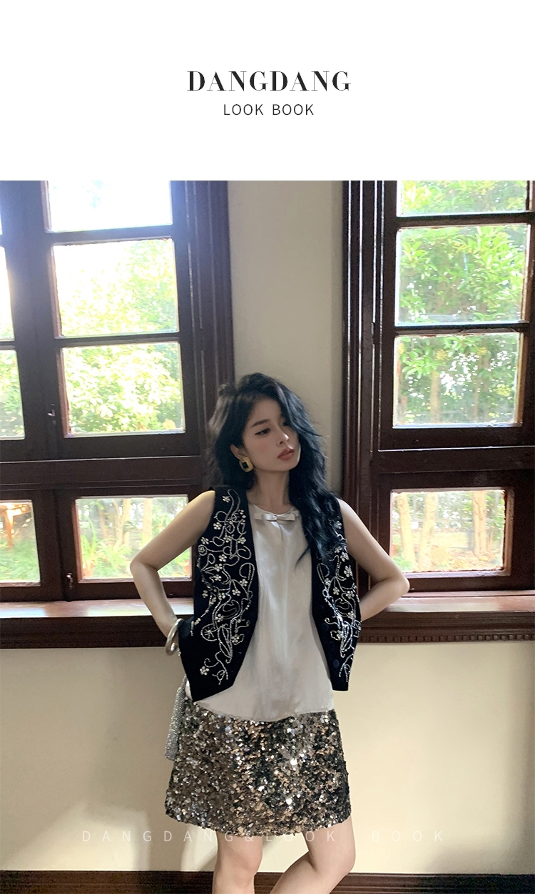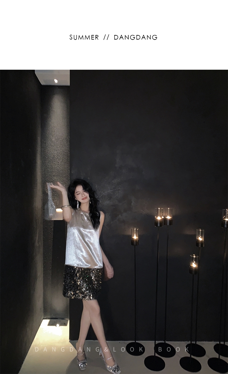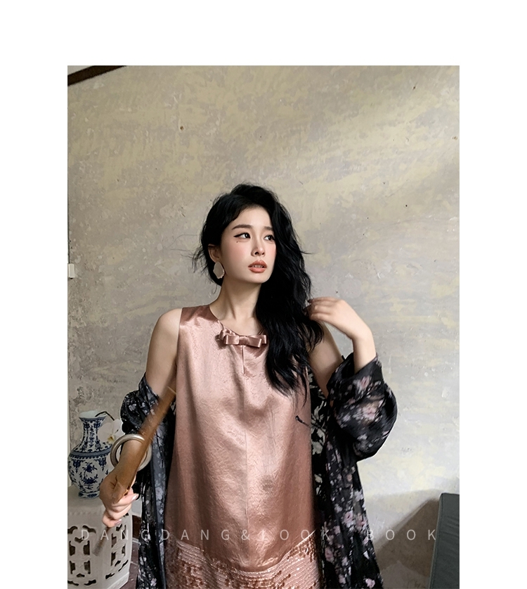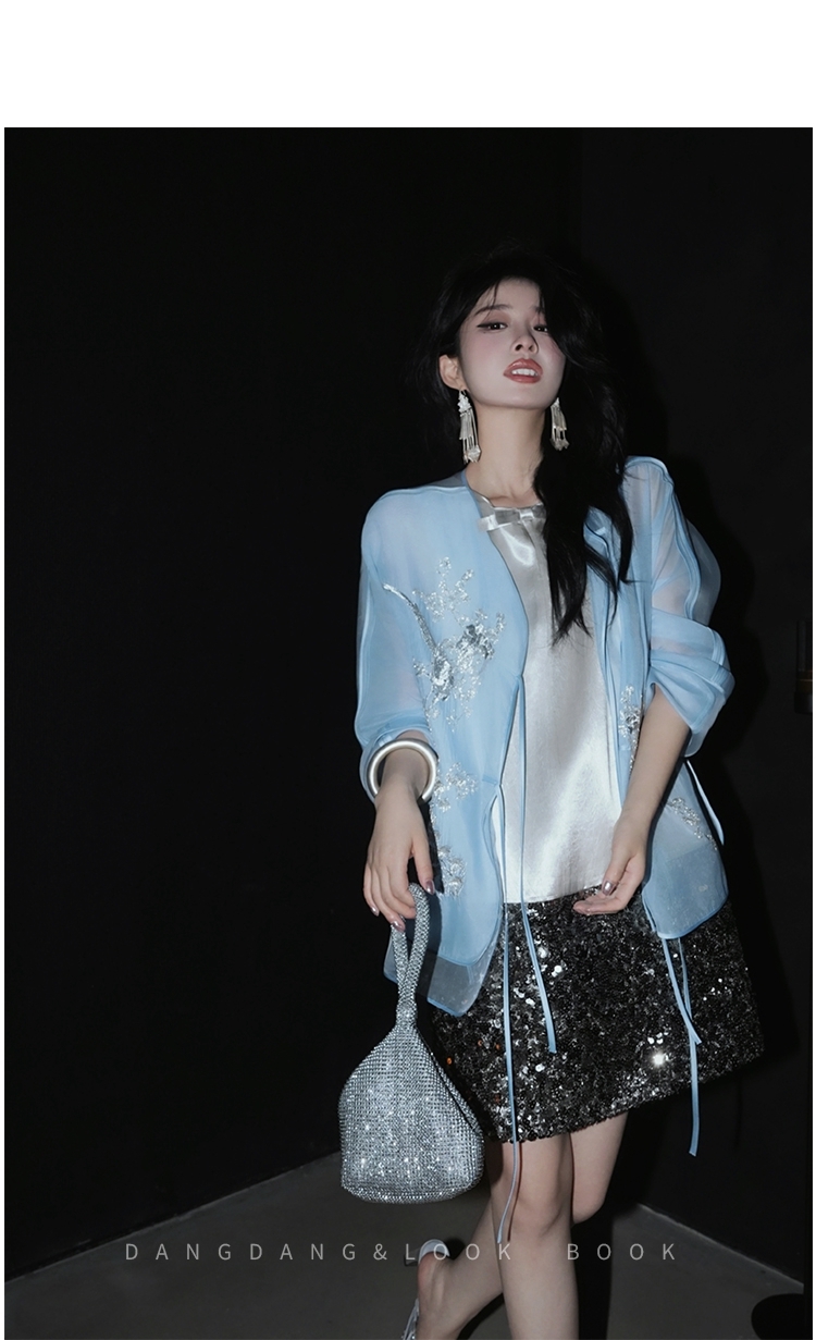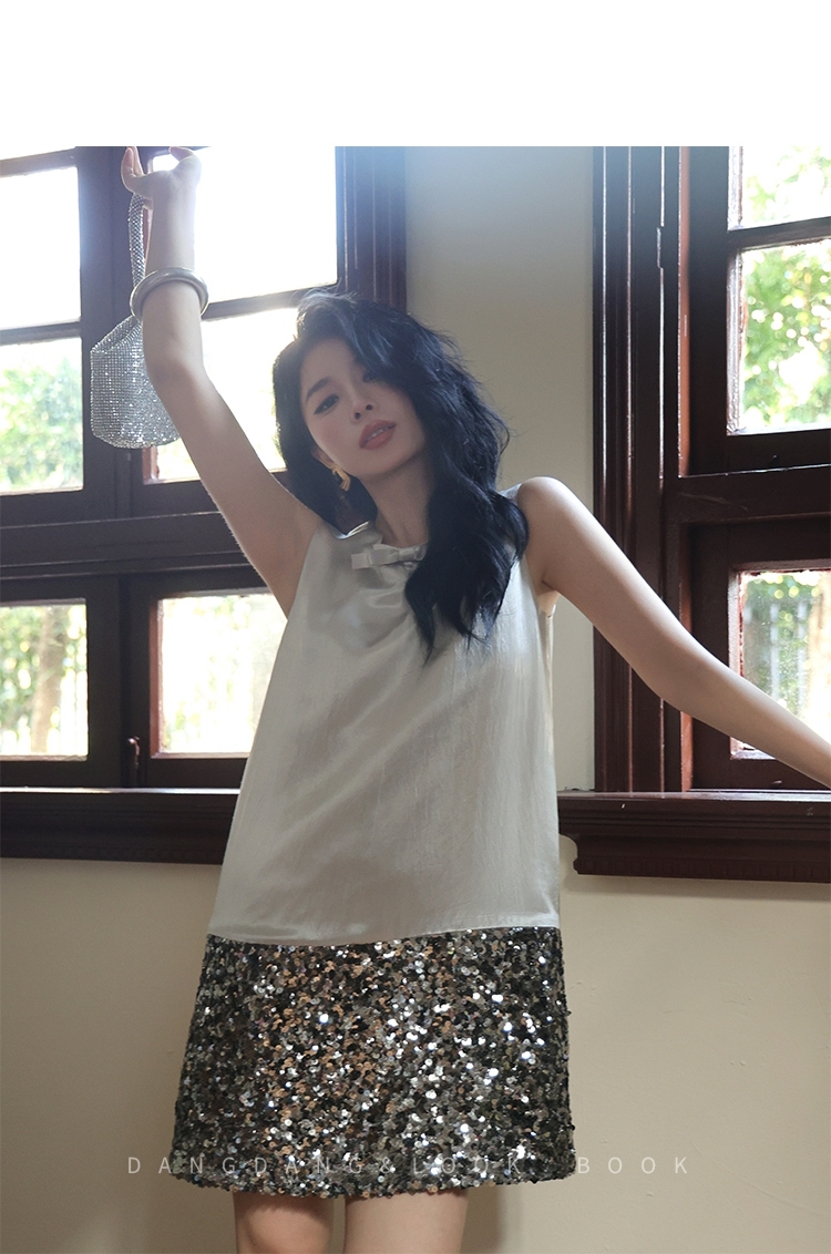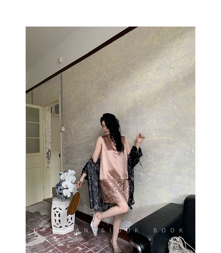 *o-ha-you*【FDD204A160】「月光琉璃」廳裡廳氣~重磅醋酸拼接珠片連衣裙小洋裝