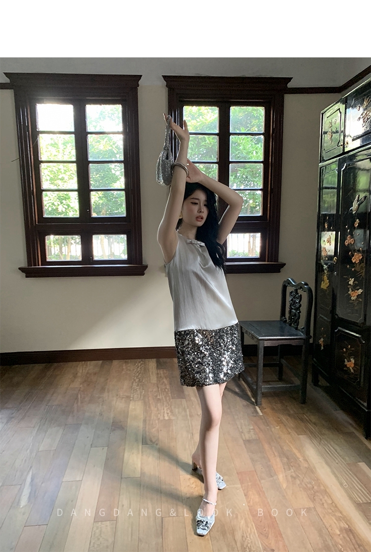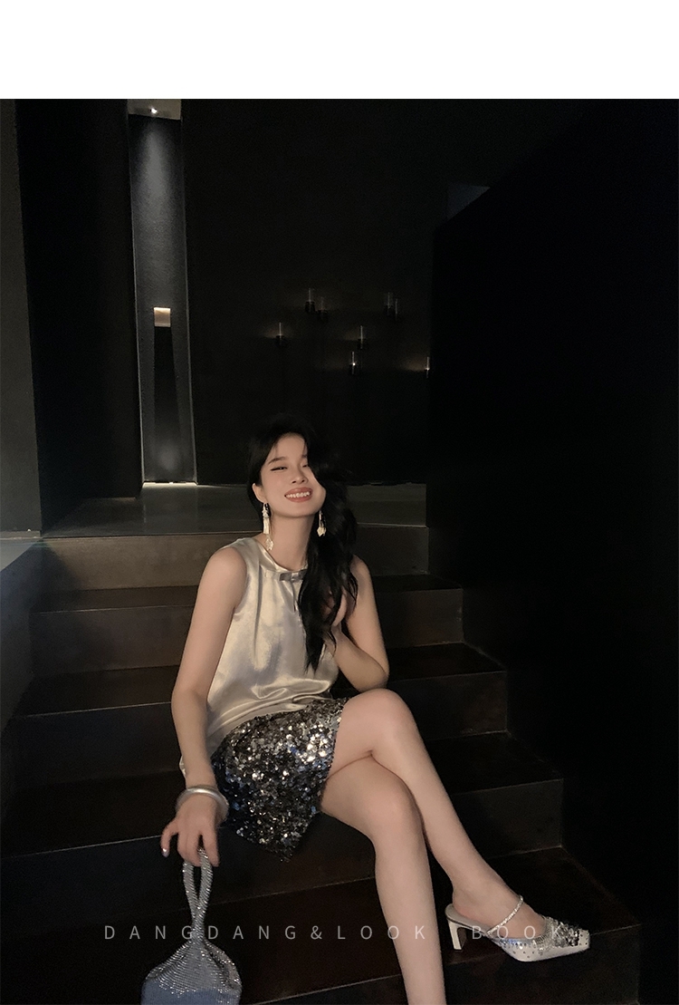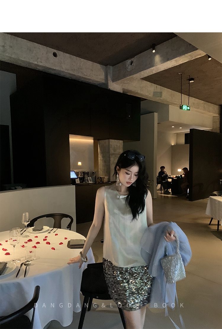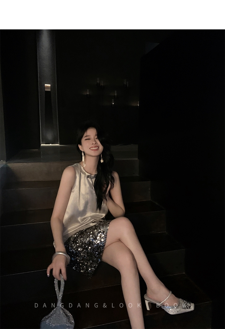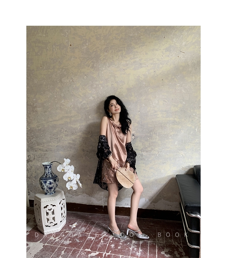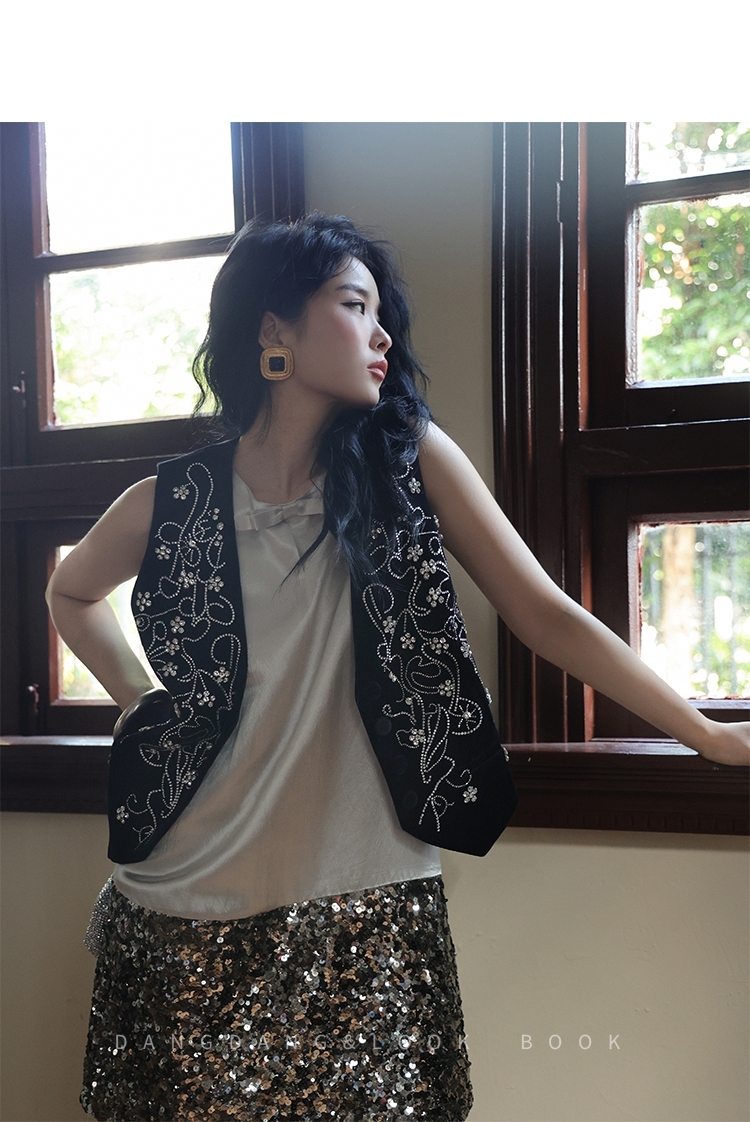 *o-ha-you*【FDD204A160】「月光琉璃」廳裡廳氣~重磅醋酸拼接珠片連衣裙小洋裝