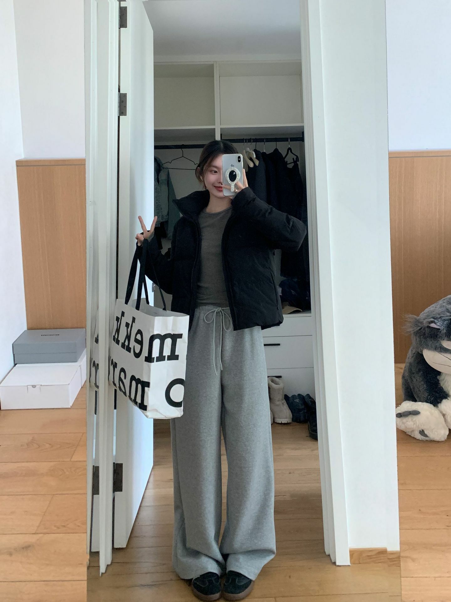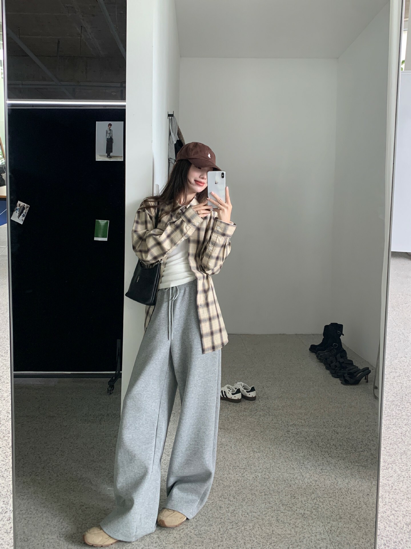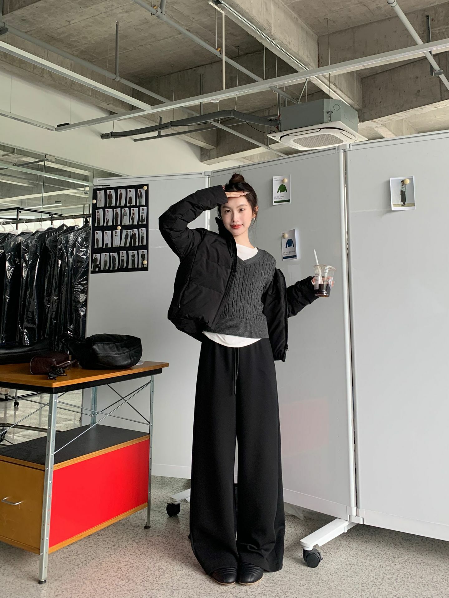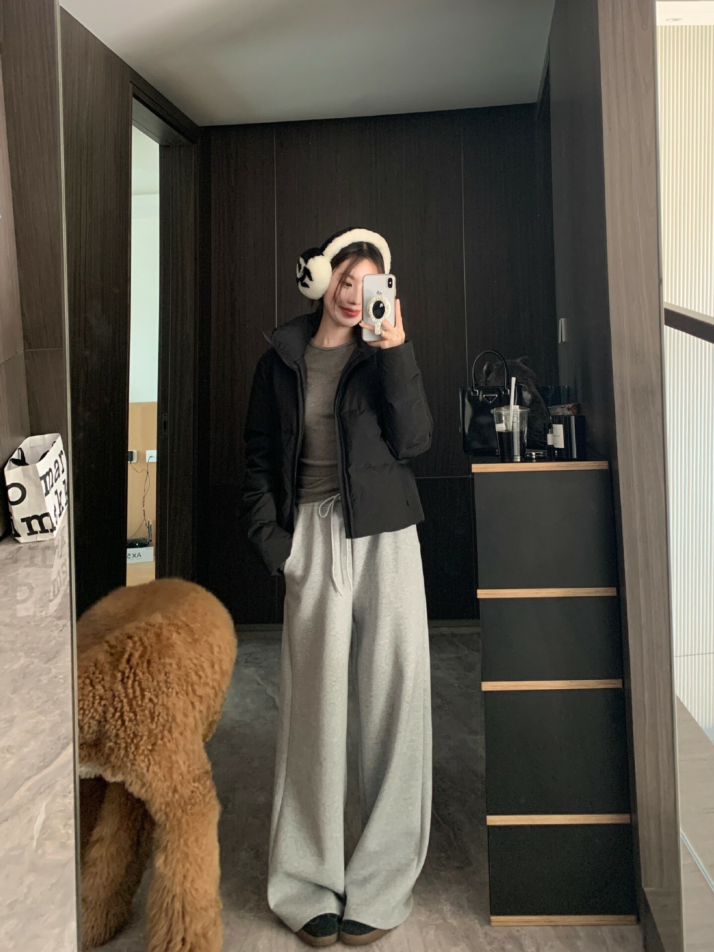 *o-ha-you*【FEAGR7089】慵懶風空氣層衛褲秋冬高腰寬鬆直筒顯瘦垂感拖地休閒闊腿褲-2色