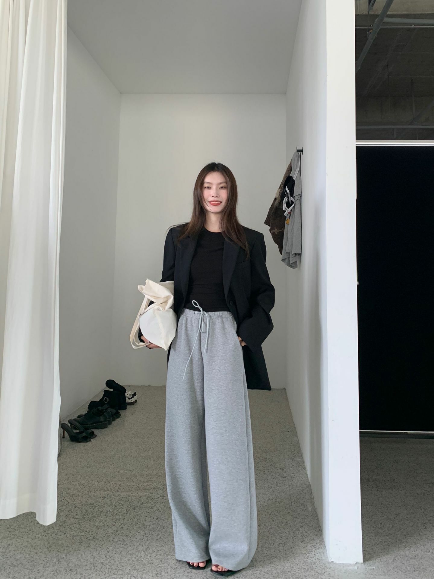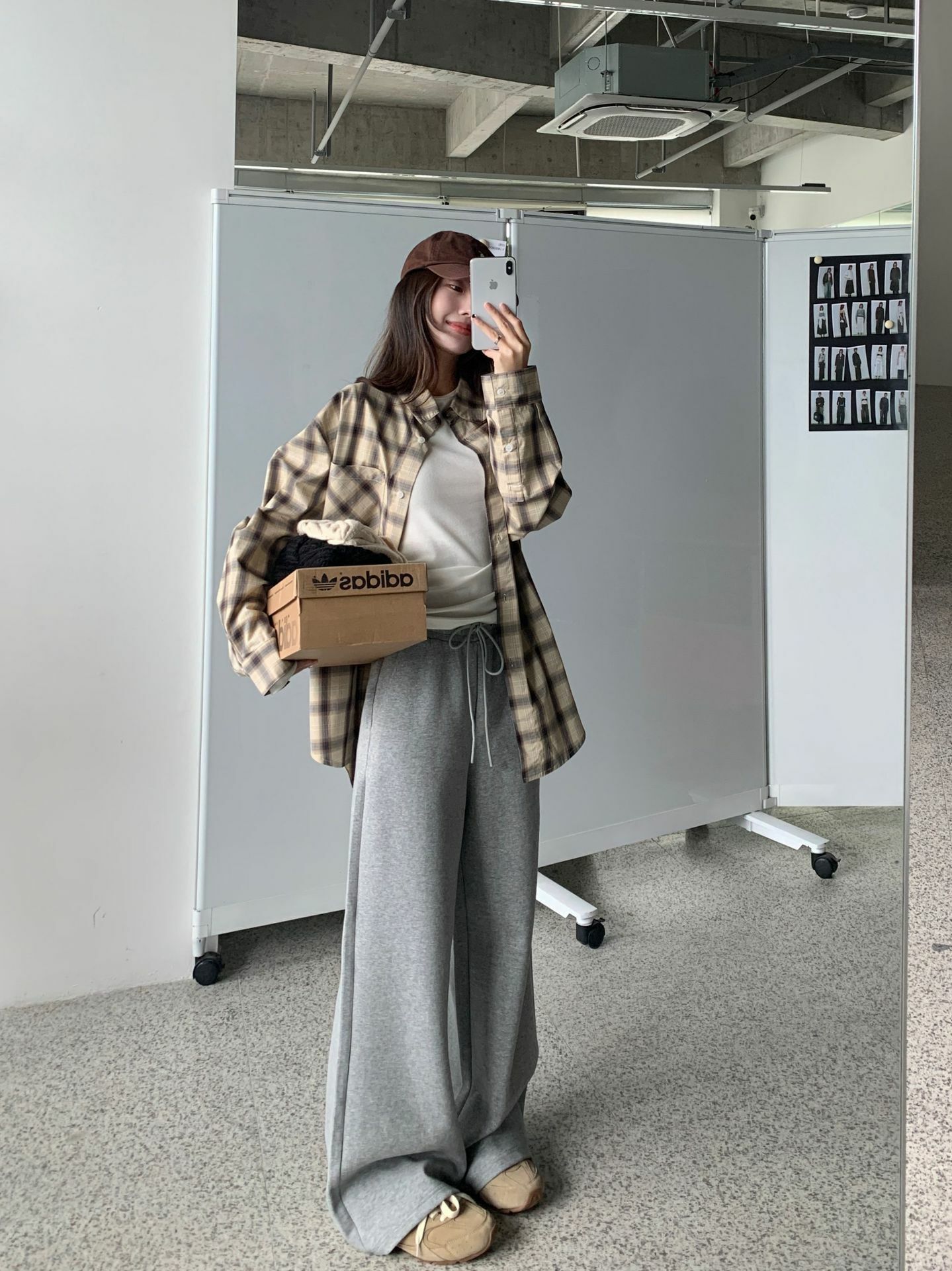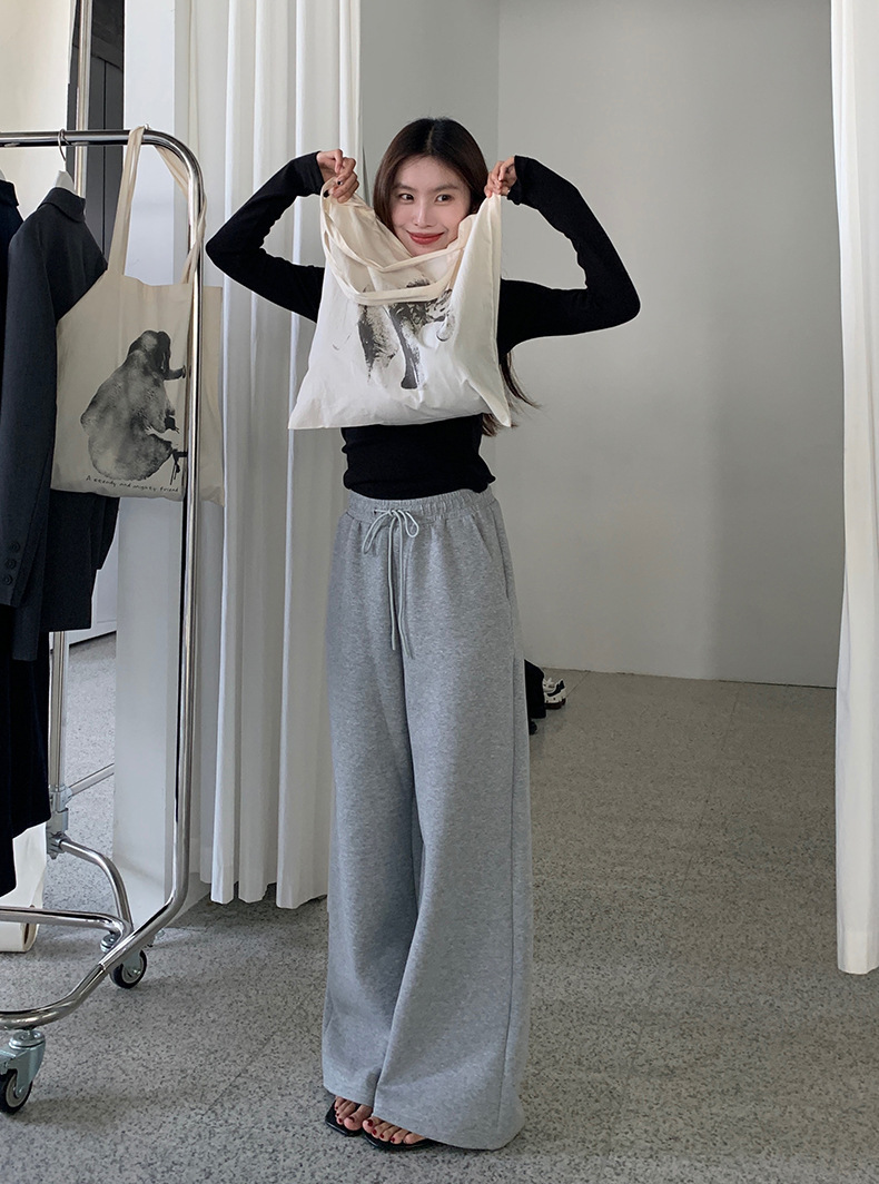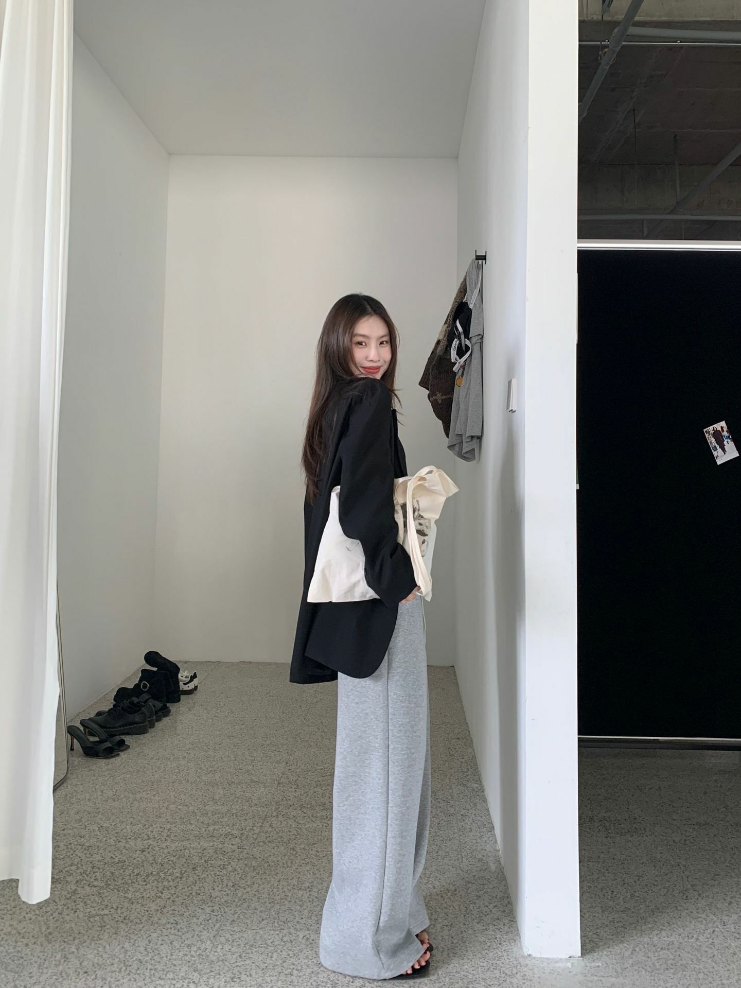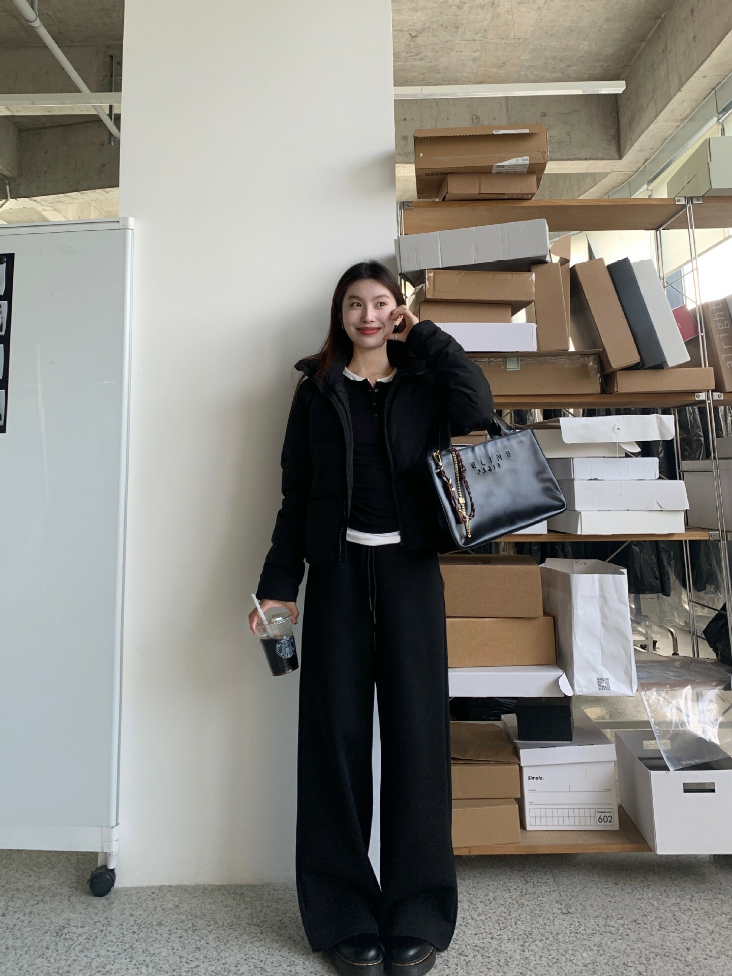 *o-ha-you*【FEAGR7089】慵懶風空氣層衛褲秋冬高腰寬鬆直筒顯瘦垂感拖地休閒闊腿褲-2色