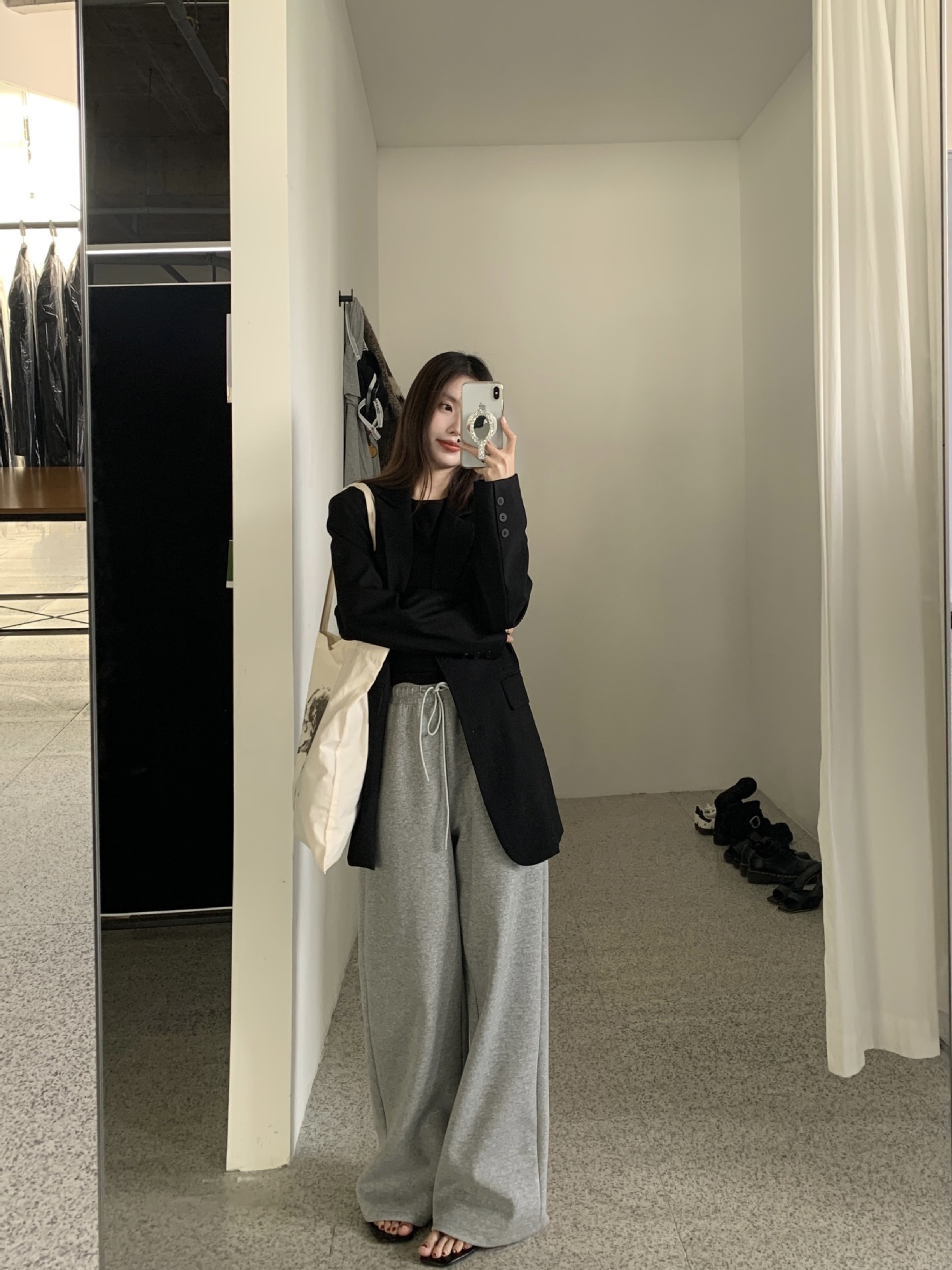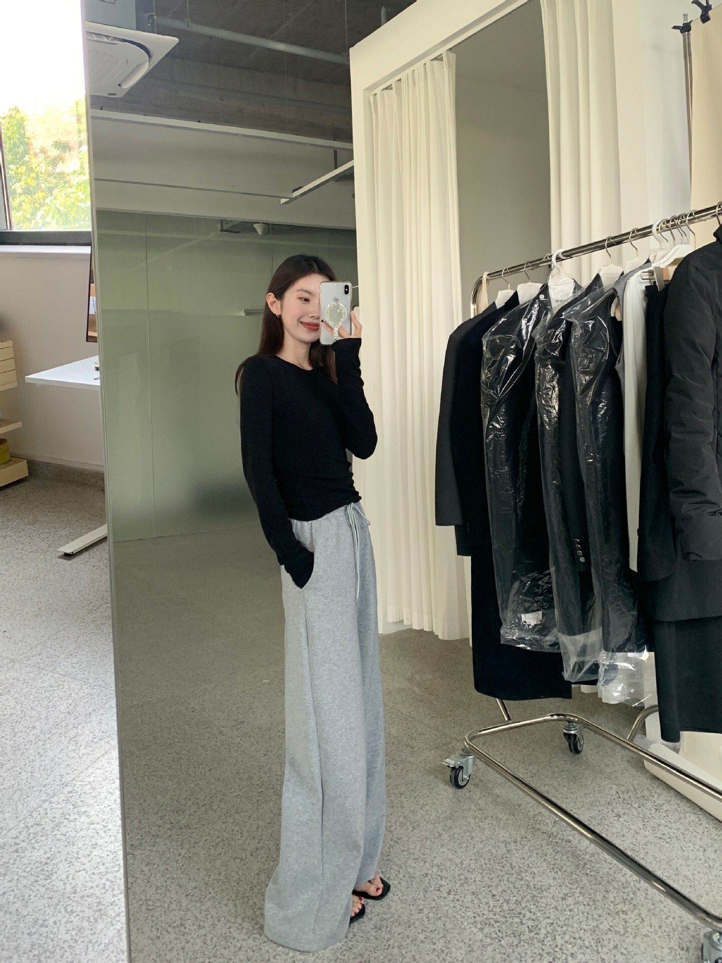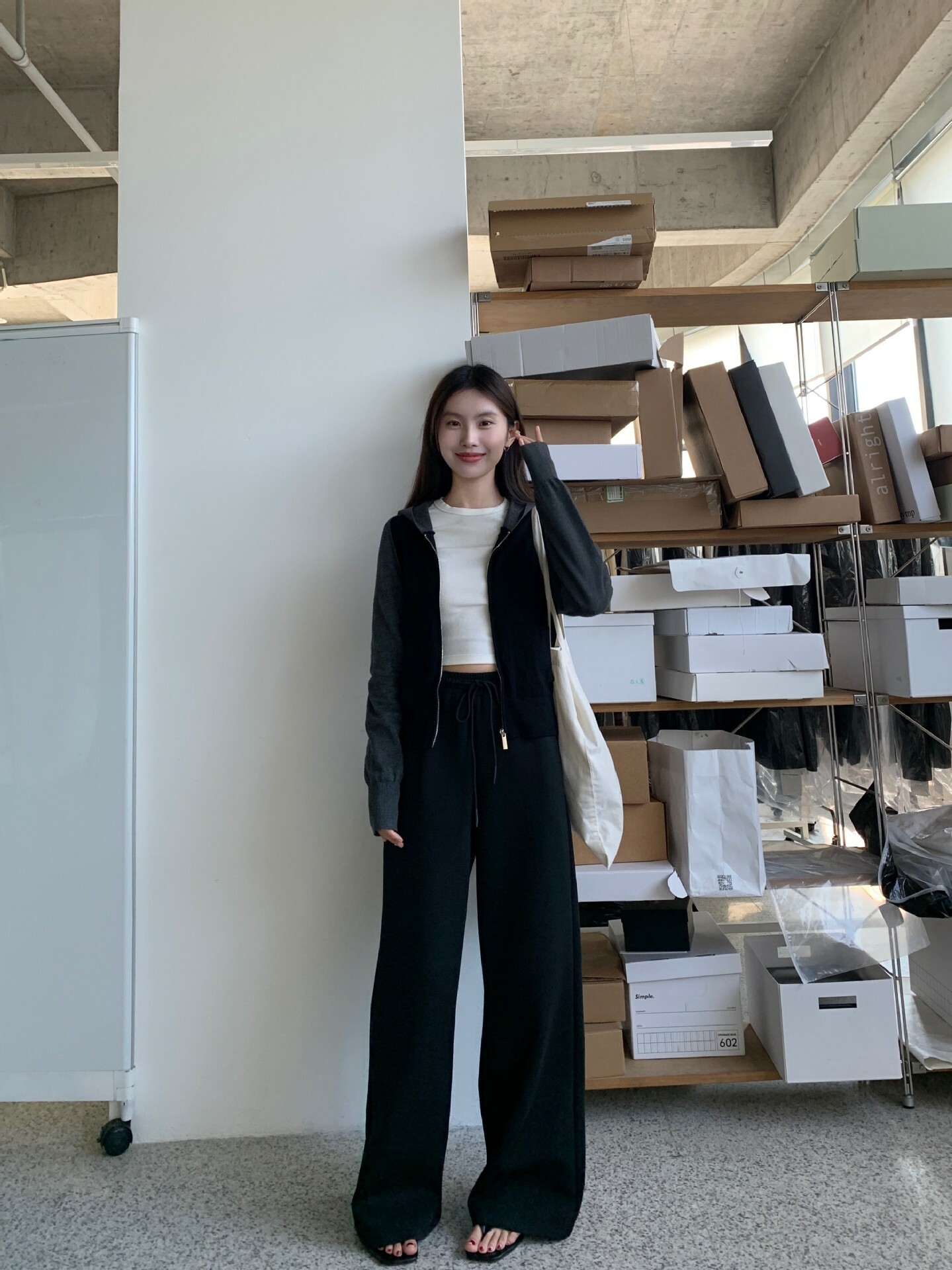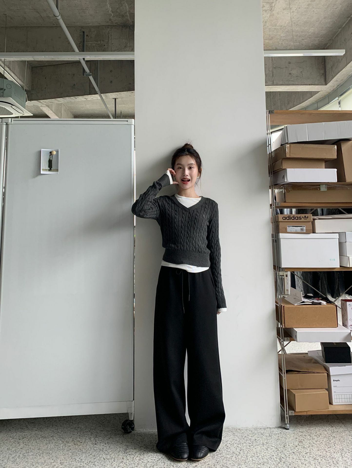 *o-ha-you*【FEAGR7089】慵懶風空氣層衛褲秋冬高腰寬鬆直筒顯瘦垂感拖地休閒闊腿褲-2色