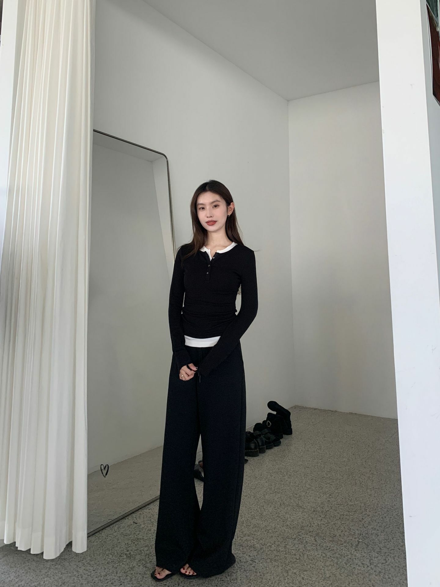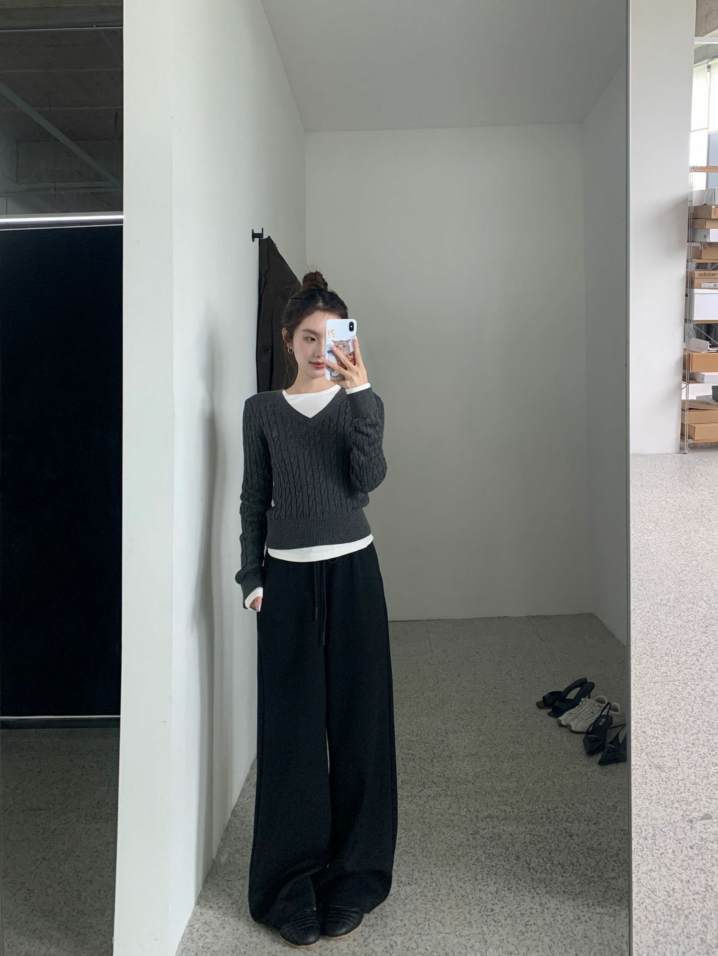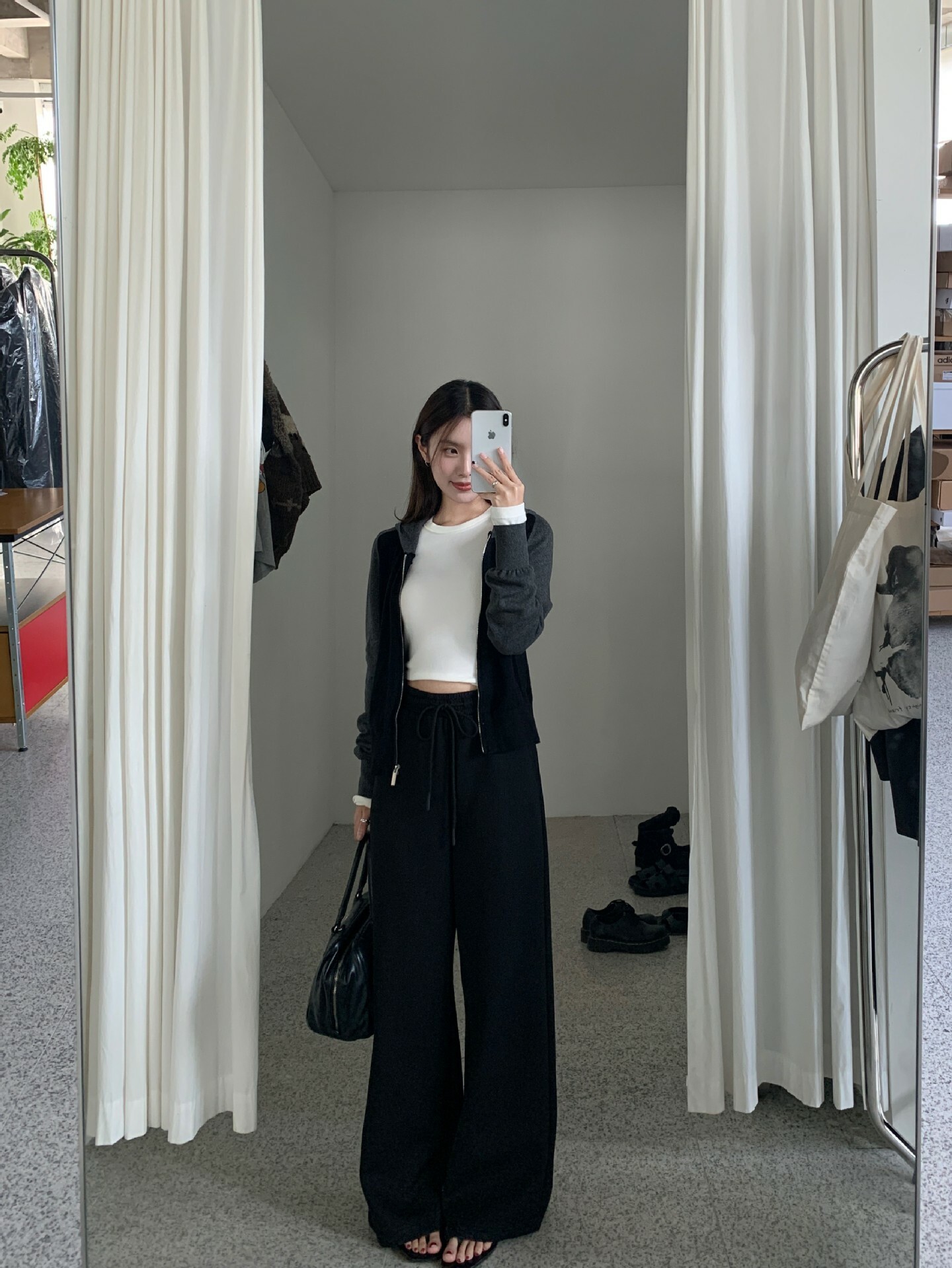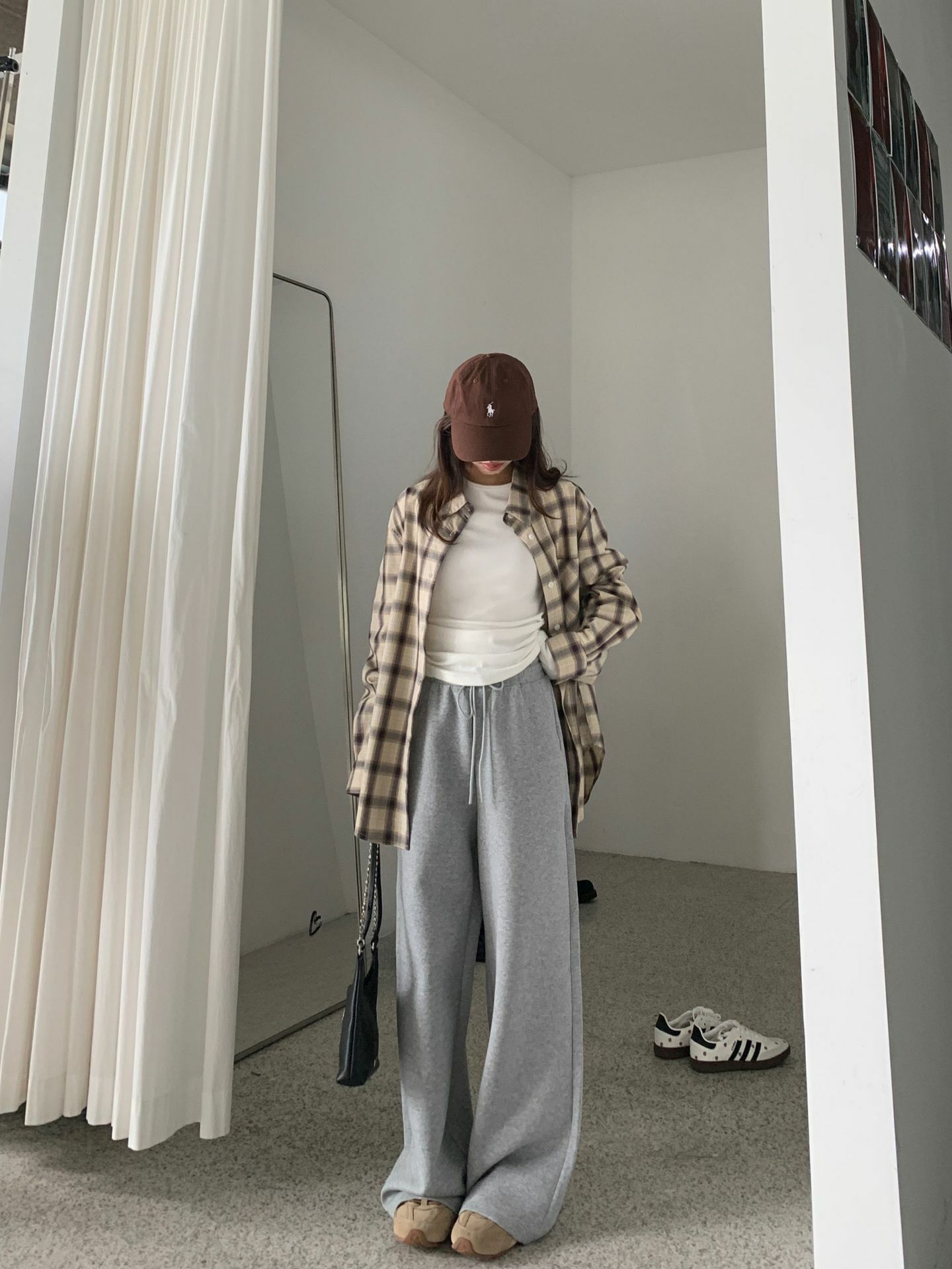 *o-ha-you*【FEAGR7089】慵懶風空氣層衛褲秋冬高腰寬鬆直筒顯瘦垂感拖地休閒闊腿褲-2色