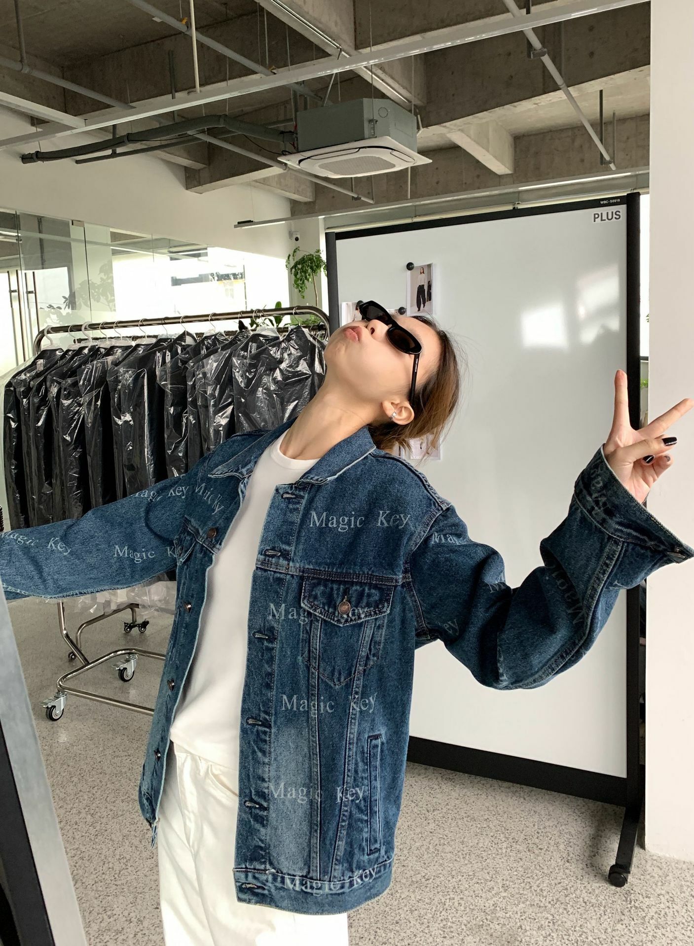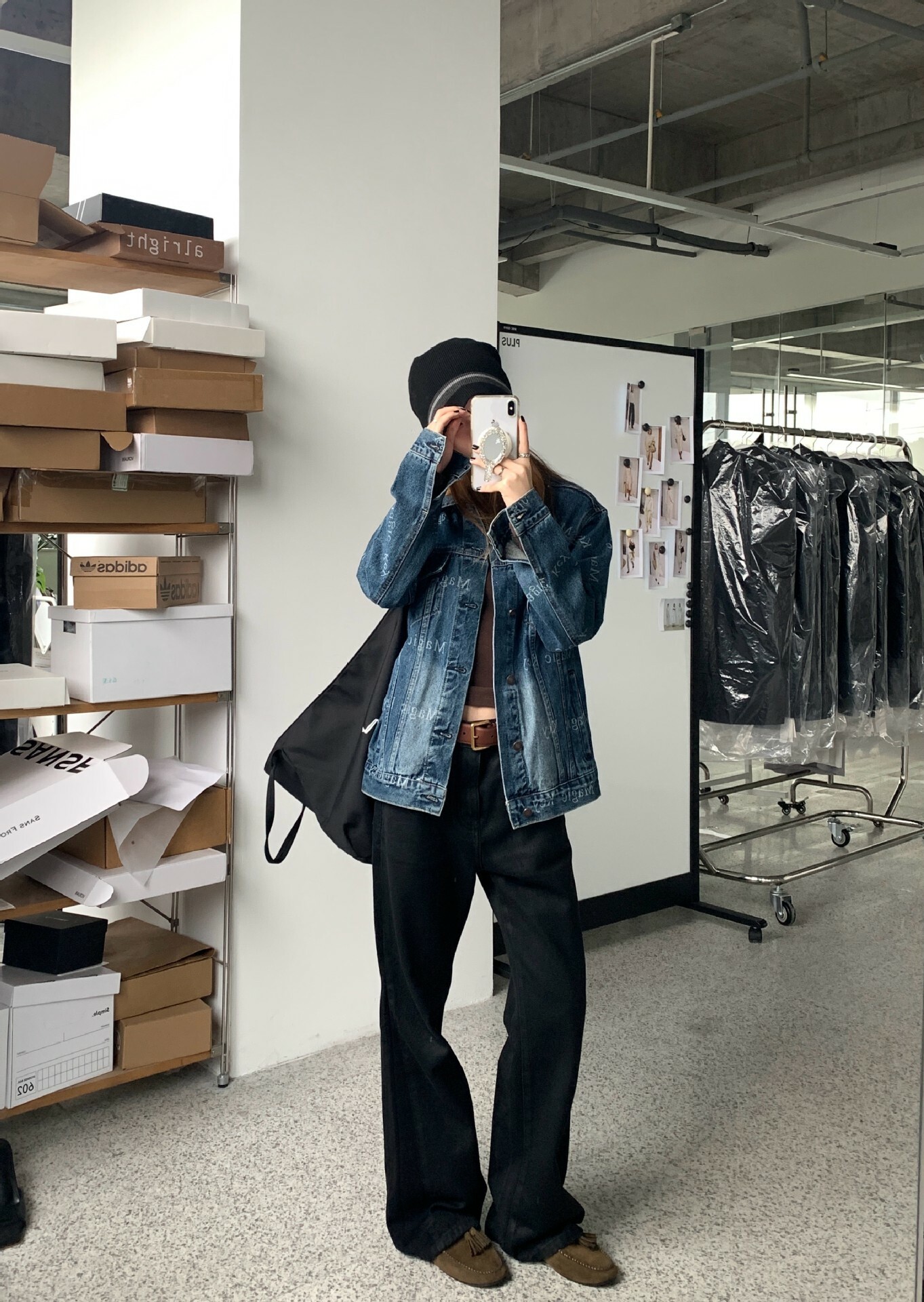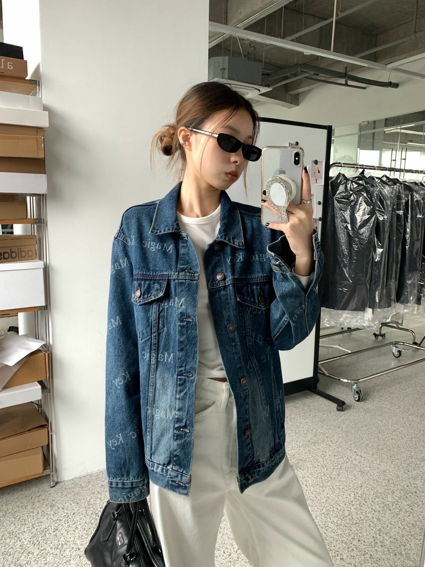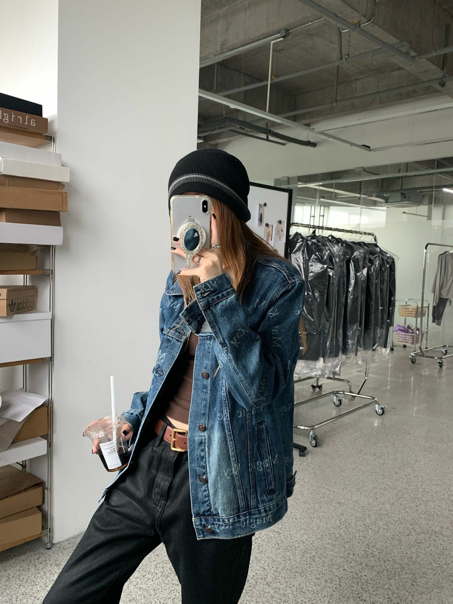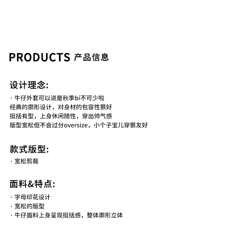 *o-ha-you*【FEANZ1038】重工質感字母設計牛仔外套2024秋季寬鬆百搭復古夾克上衣