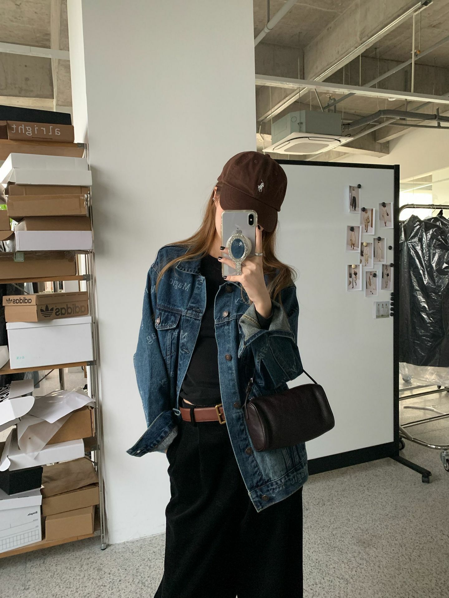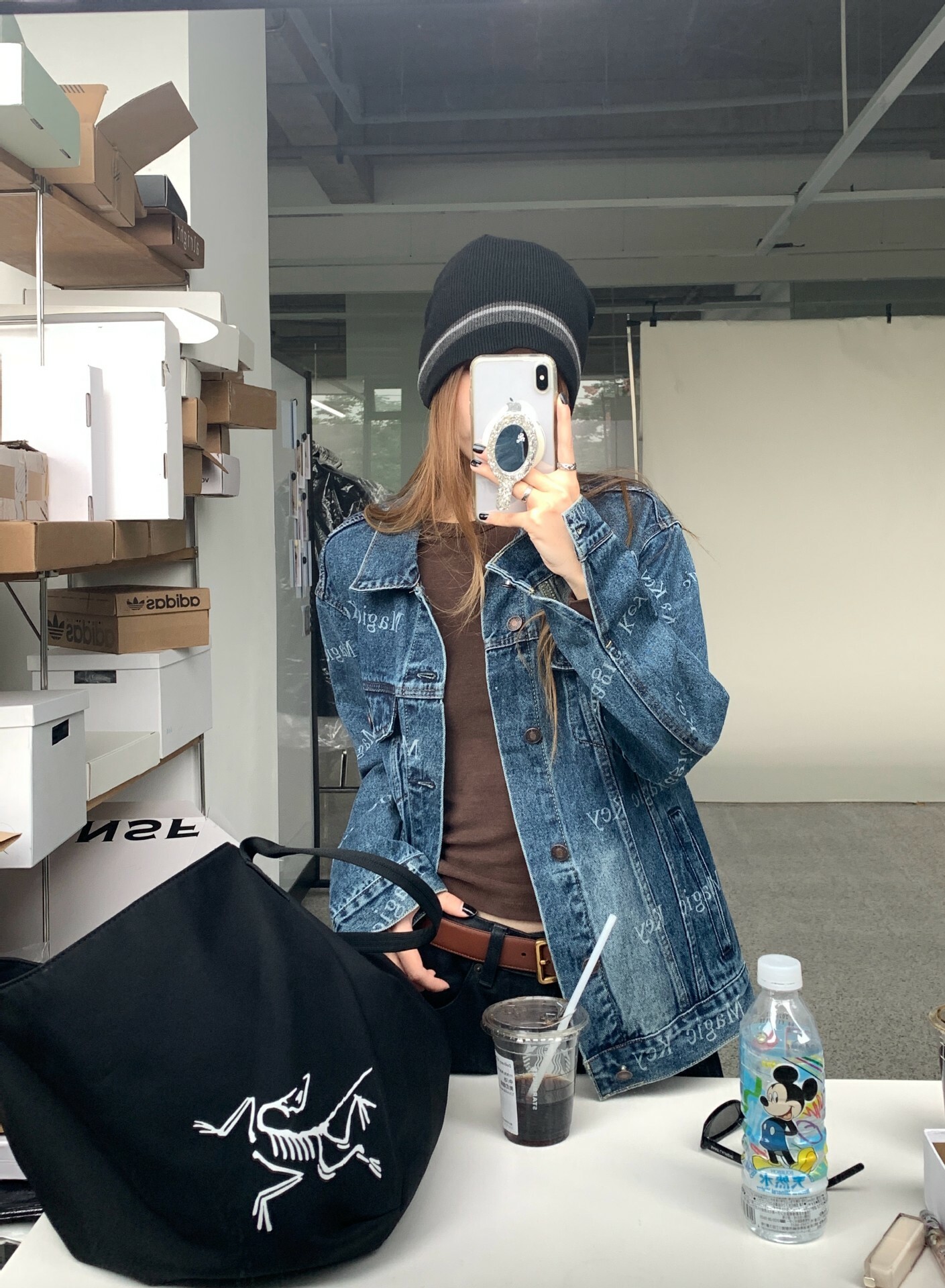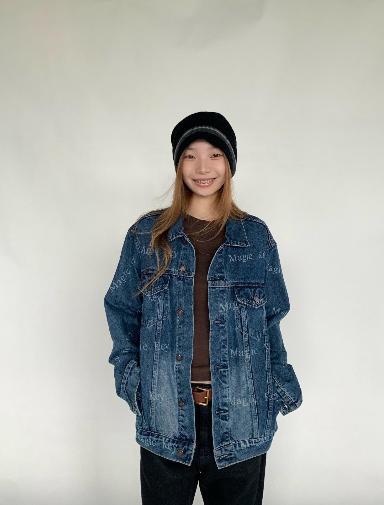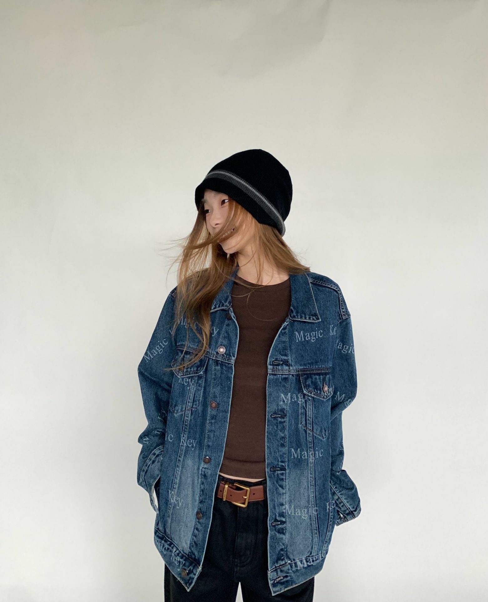 *o-ha-you*【FEANZ1038】重工質感字母設計牛仔外套2024秋季寬鬆百搭復古夾克上衣