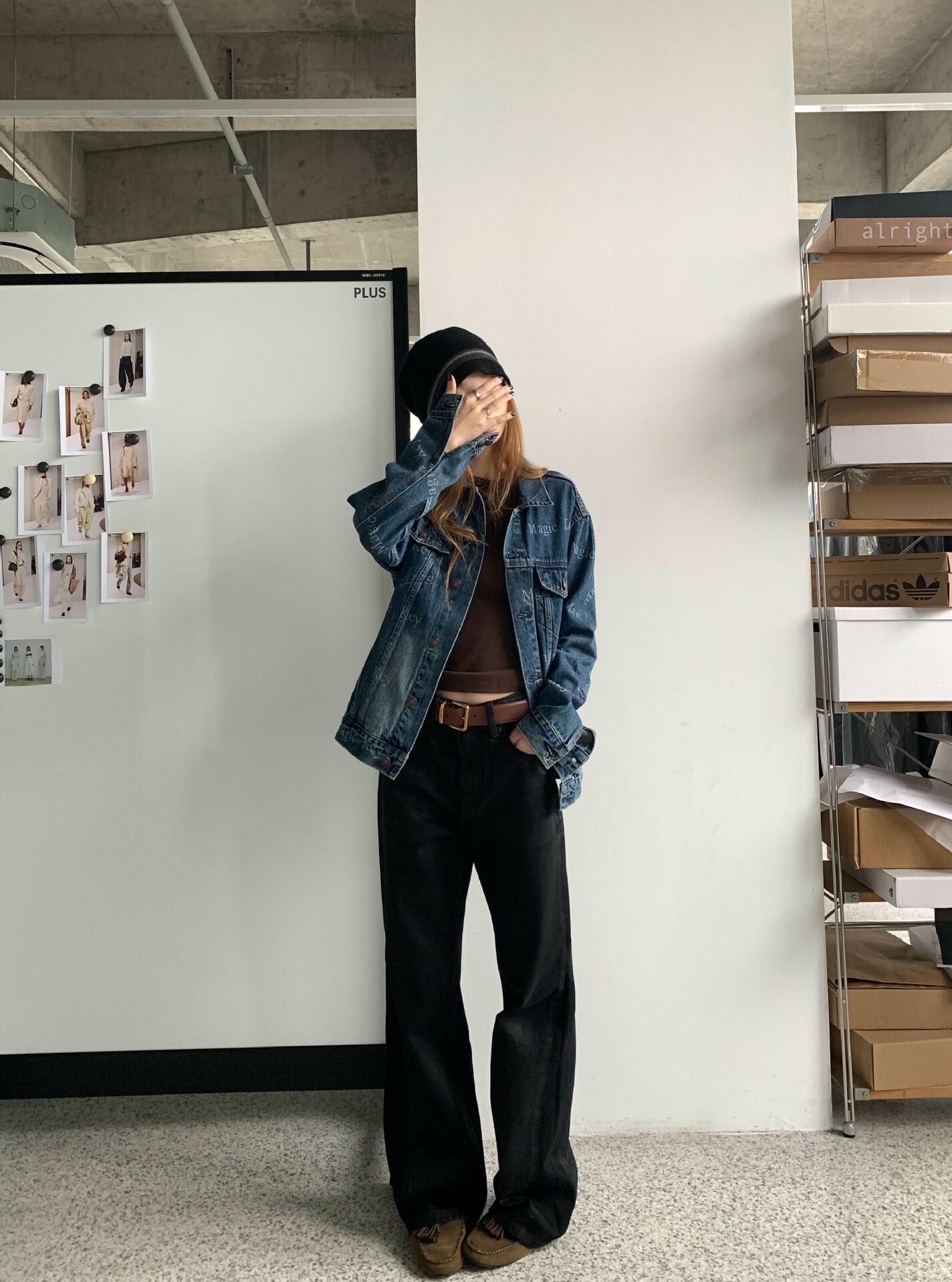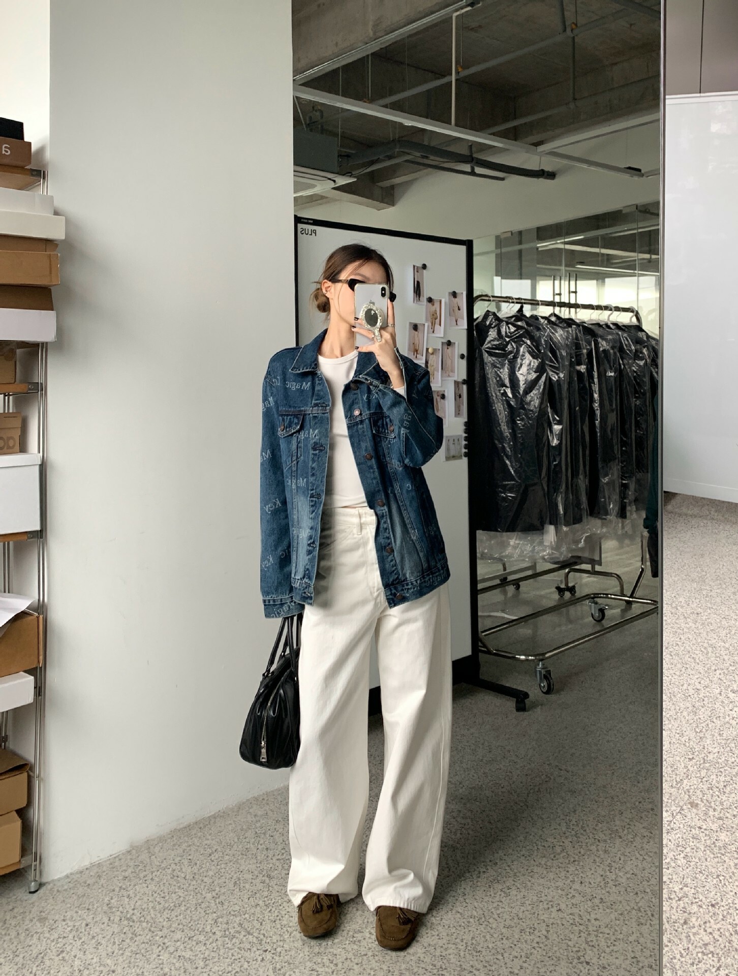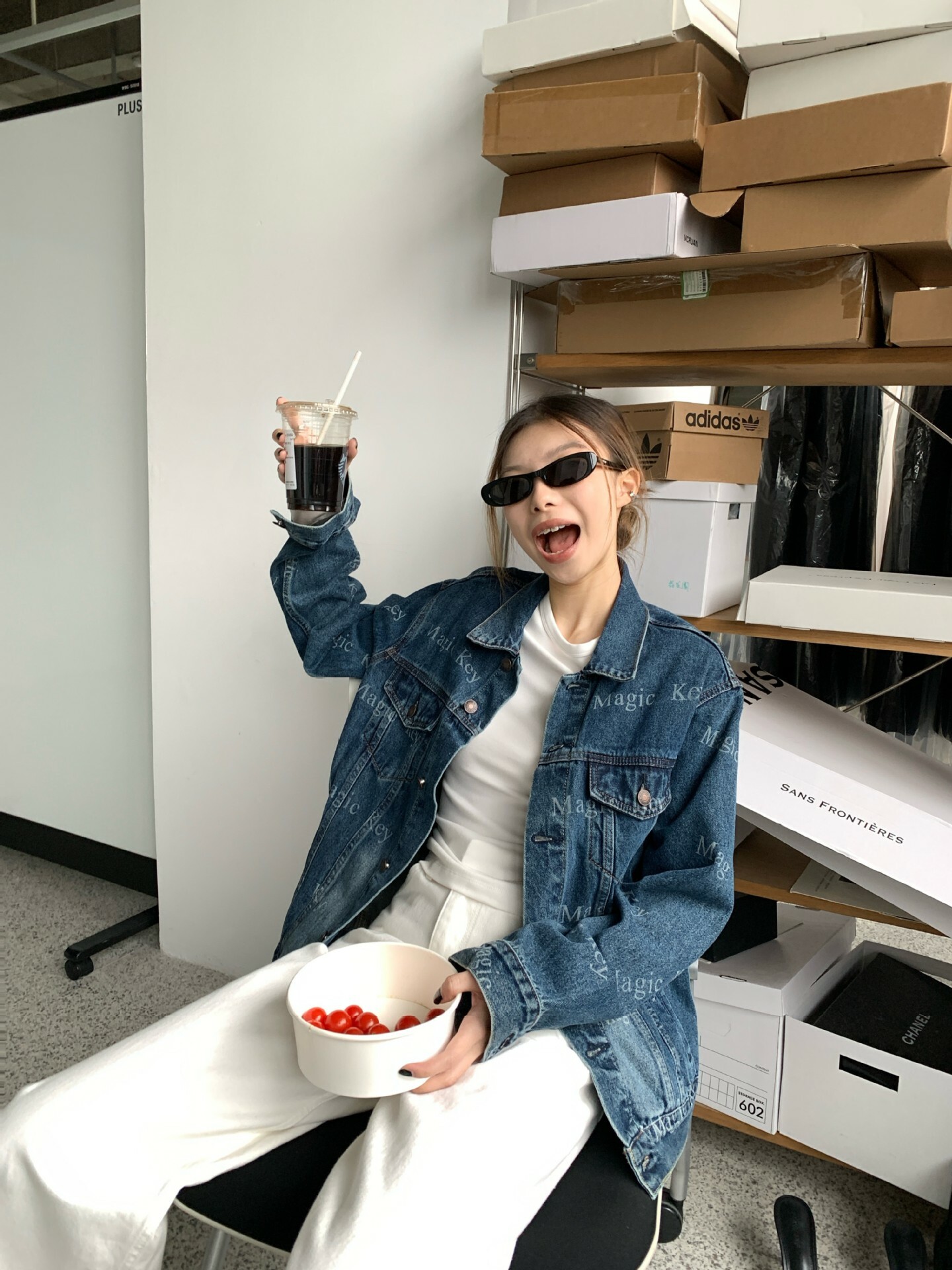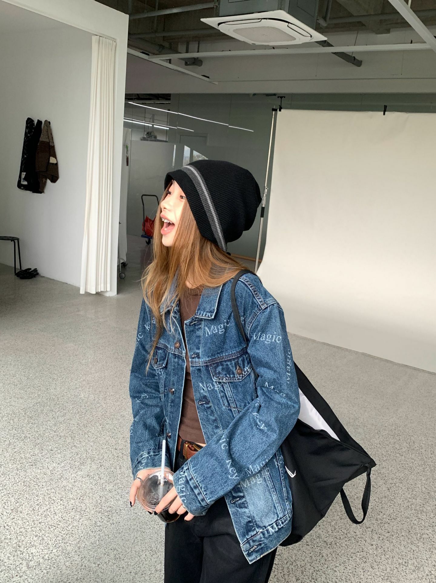 *o-ha-you*【FEANZ1038】重工質感字母設計牛仔外套2024秋季寬鬆百搭復古夾克上衣