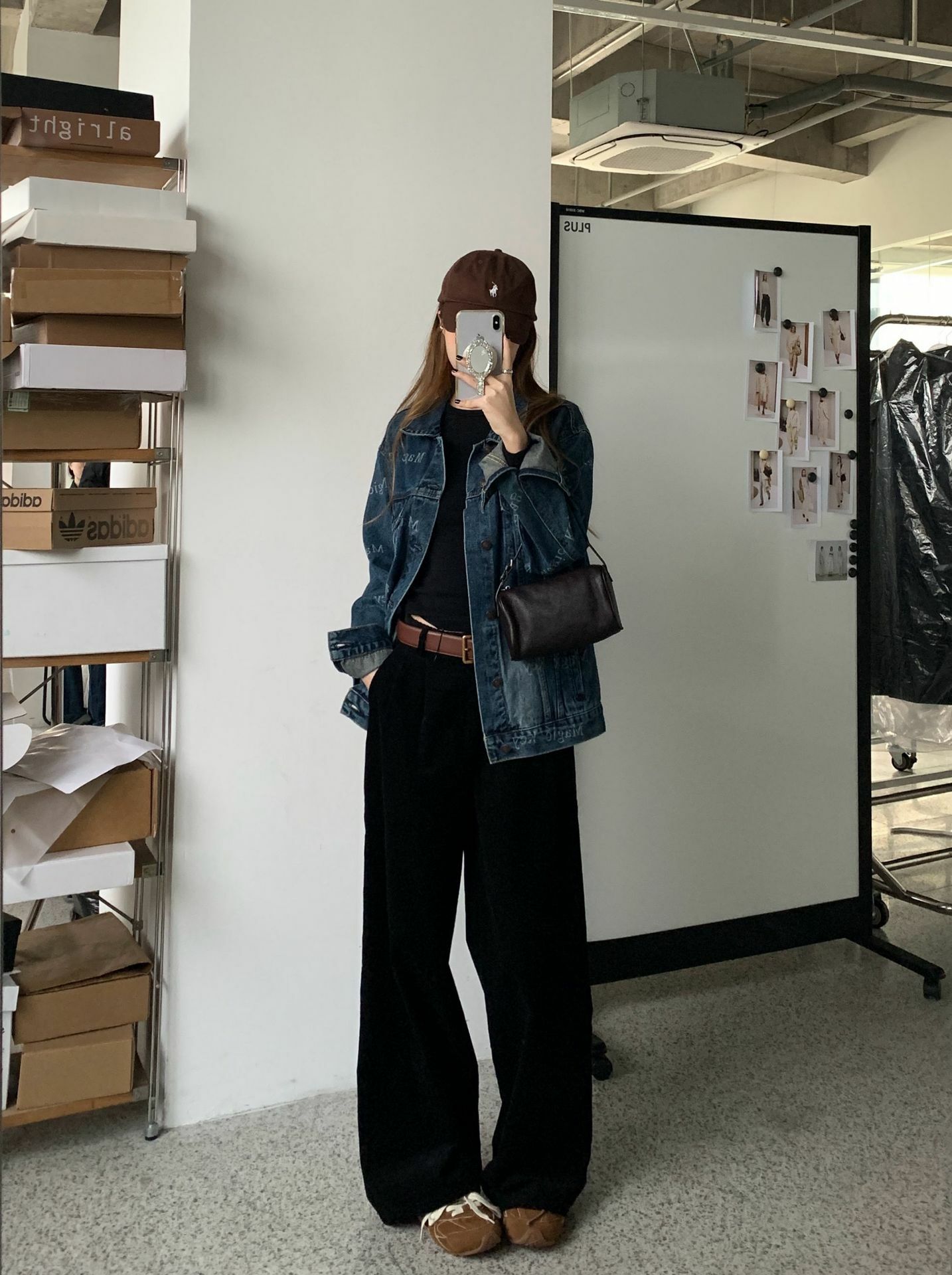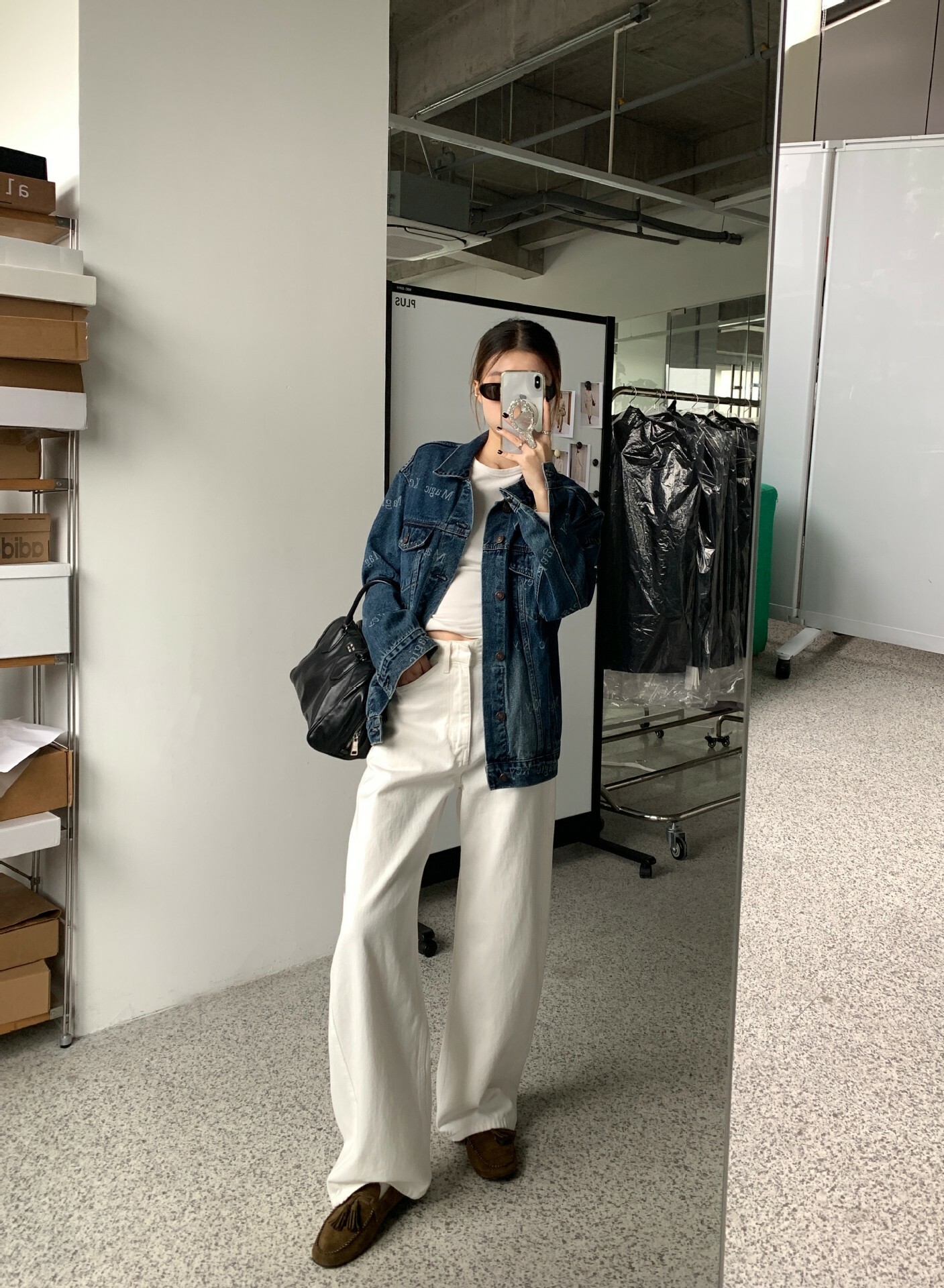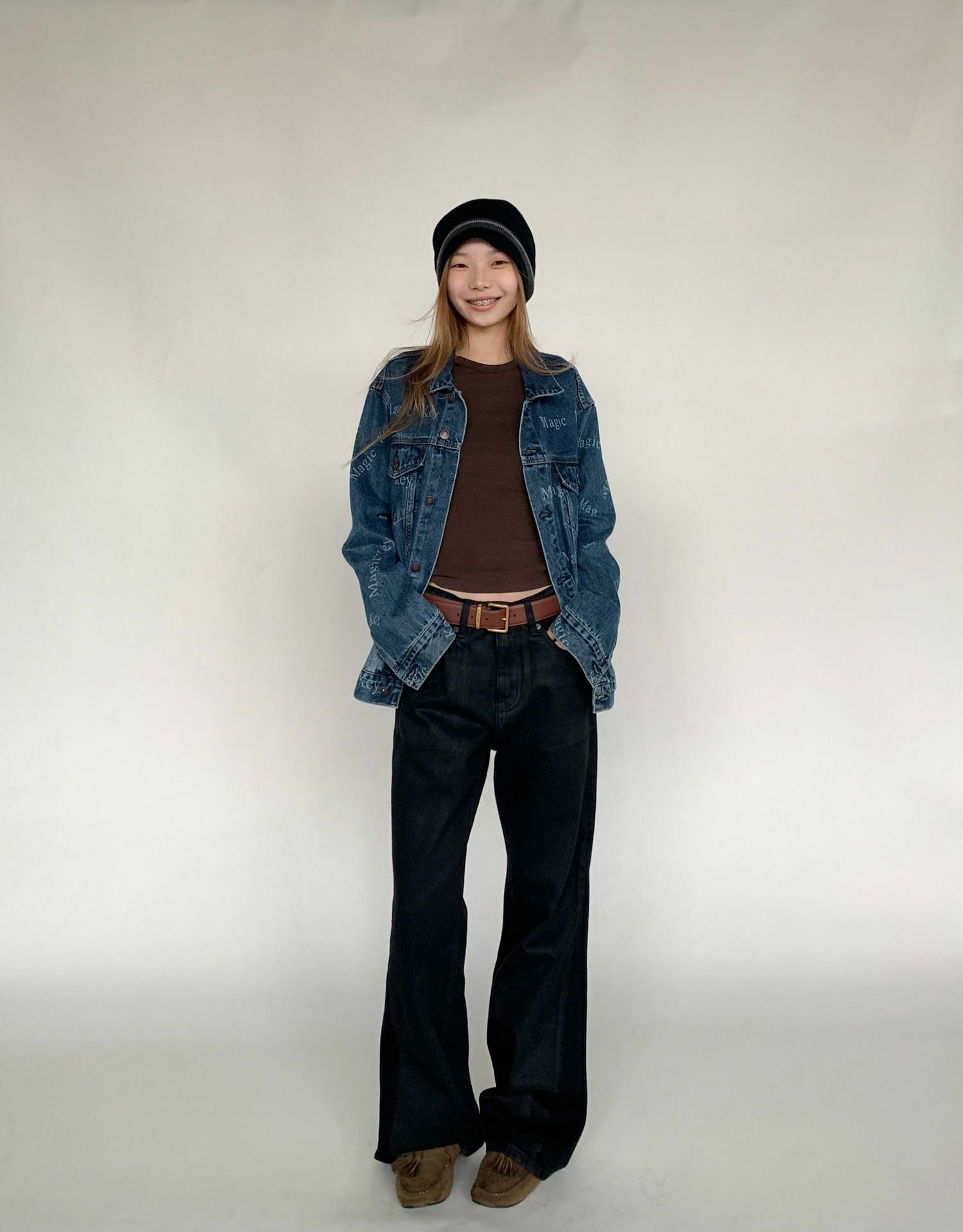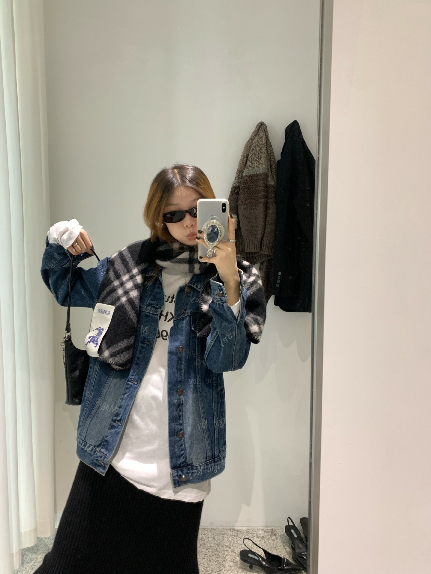 *o-ha-you*【FEANZ1038】重工質感字母設計牛仔外套2024秋季寬鬆百搭復古夾克上衣
