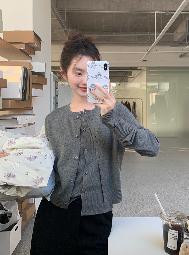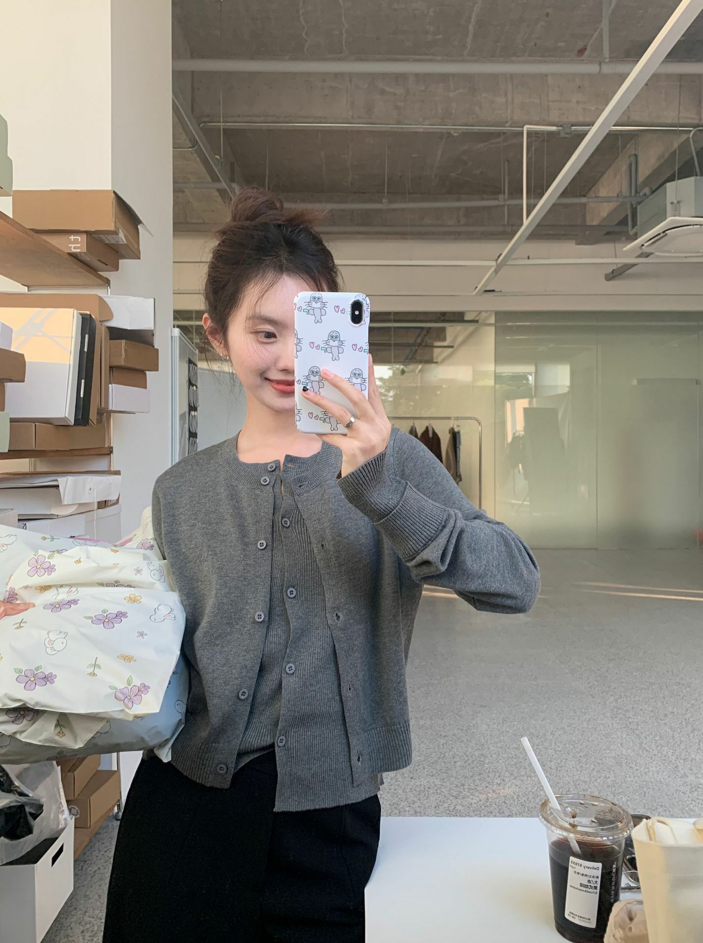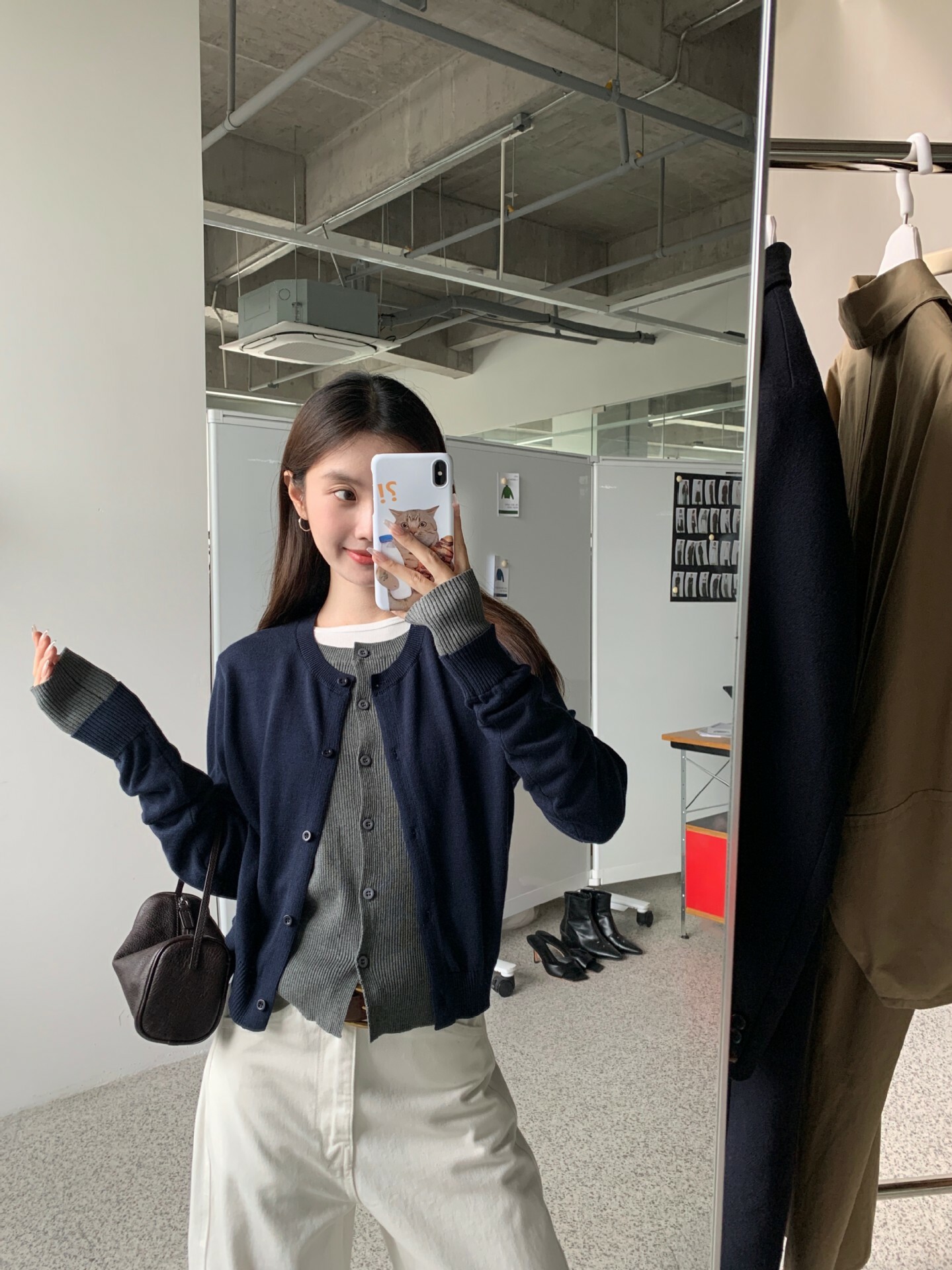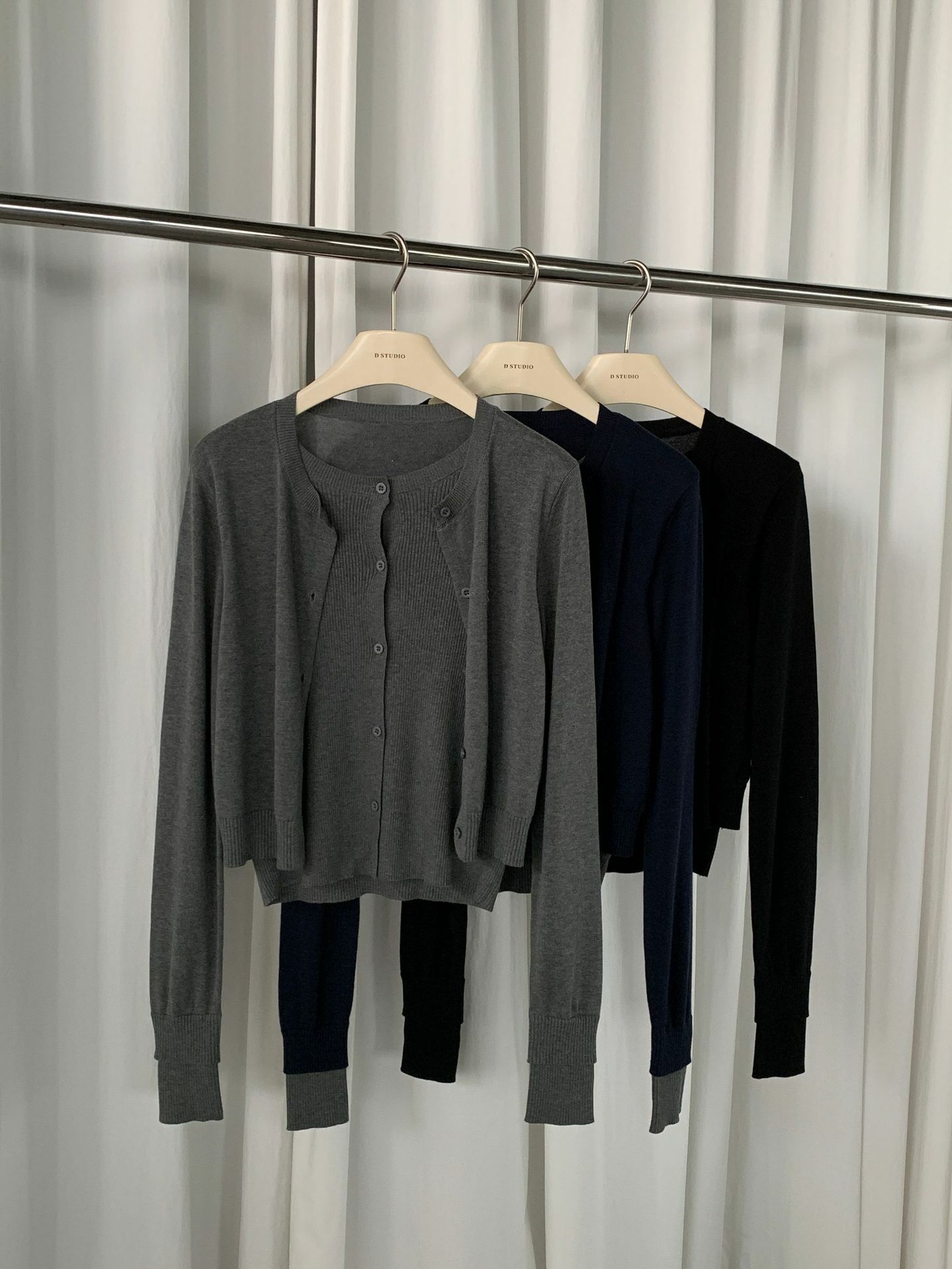 *o-ha-you*【FEAST8003】2024新款秋季小眾拼接假兩件針織衫小個子設計感氣質開襟衫-3色