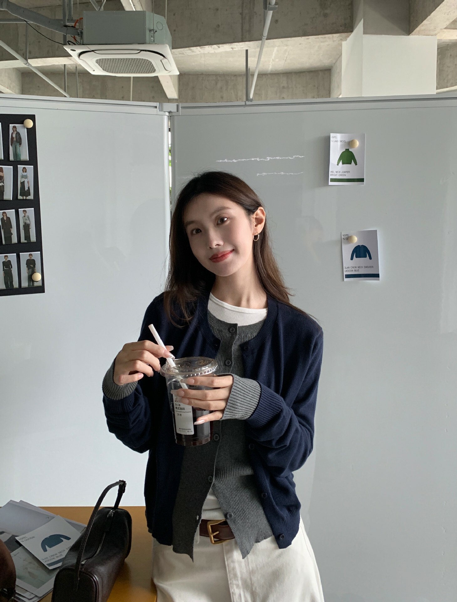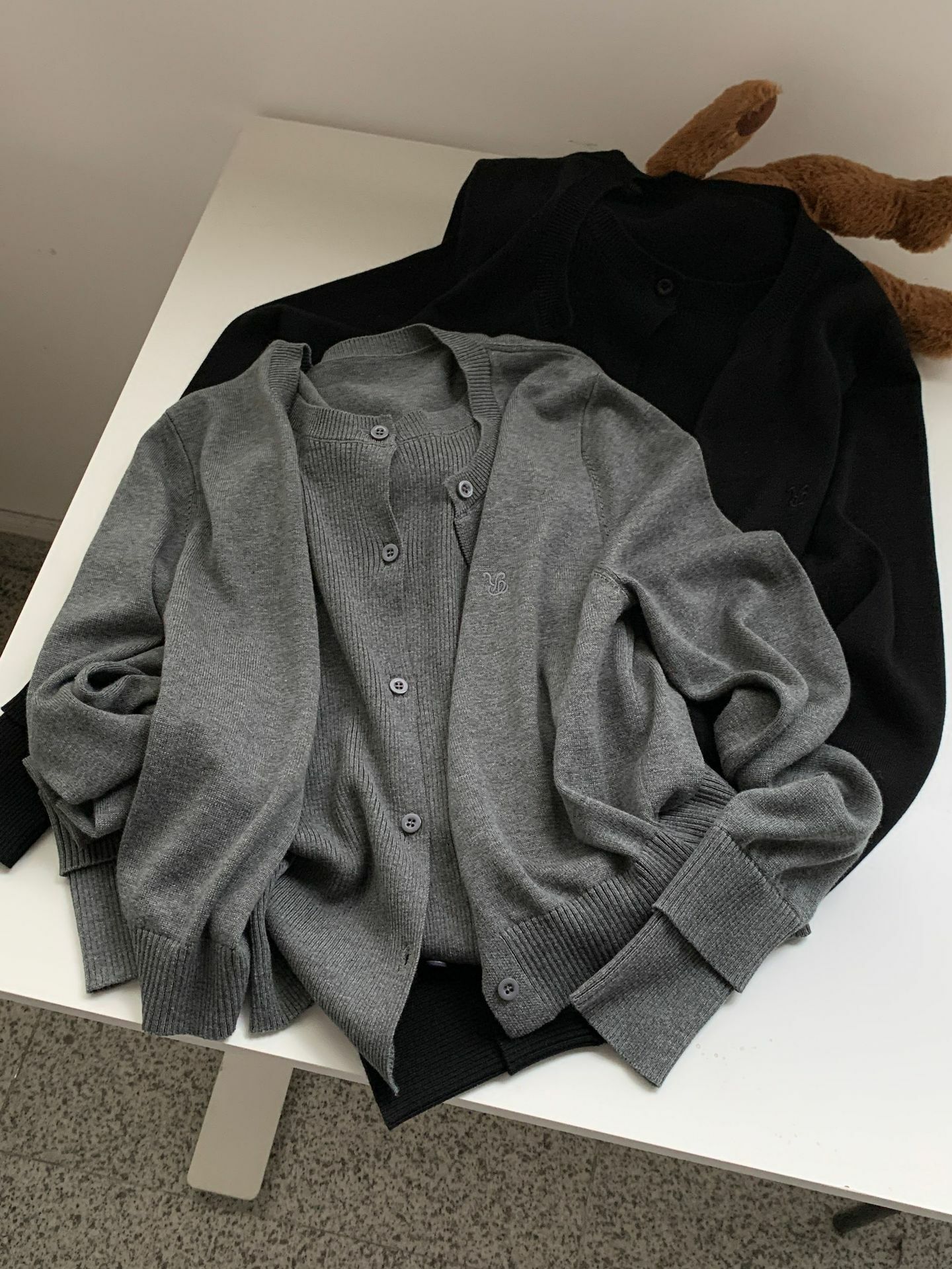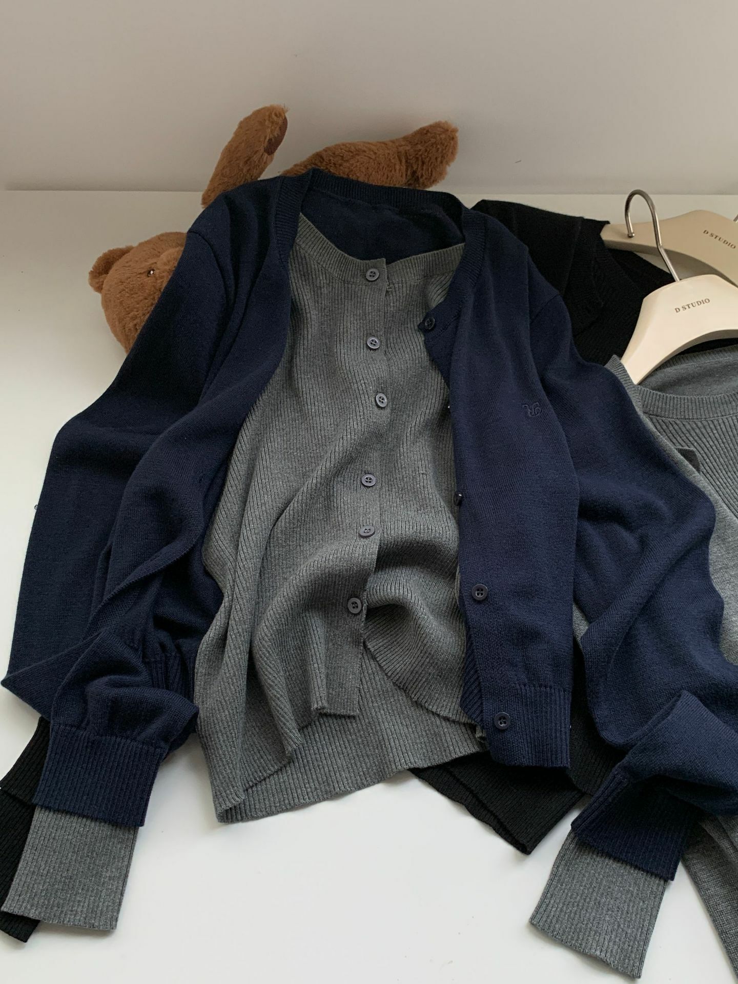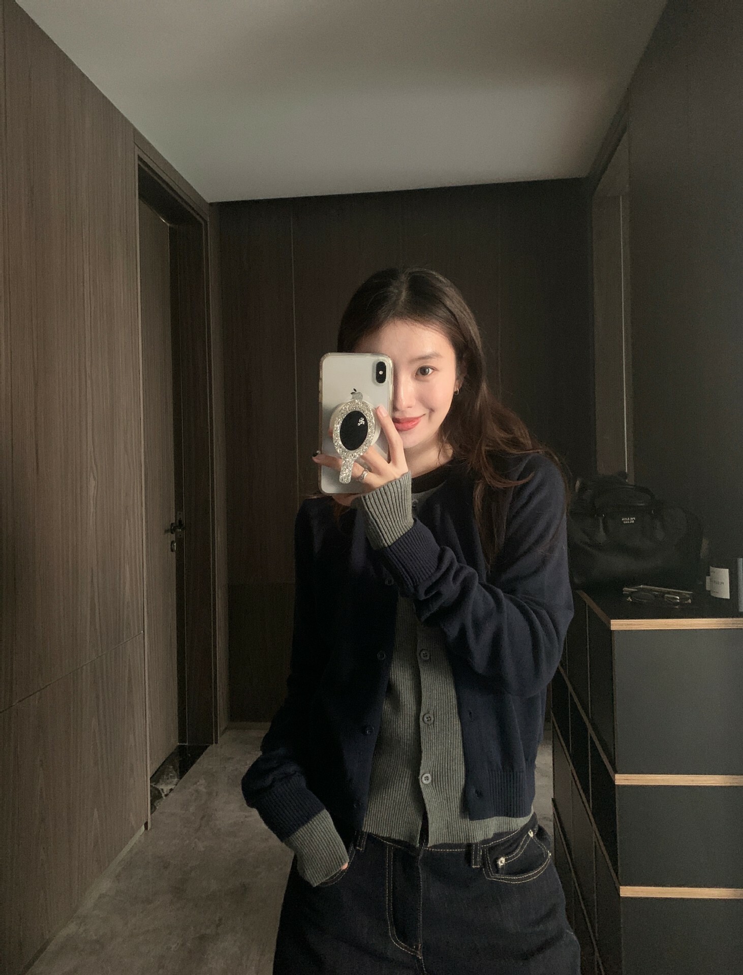 *o-ha-you*【FEAST8003】2024新款秋季小眾拼接假兩件針織衫小個子設計感氣質開襟衫-3色