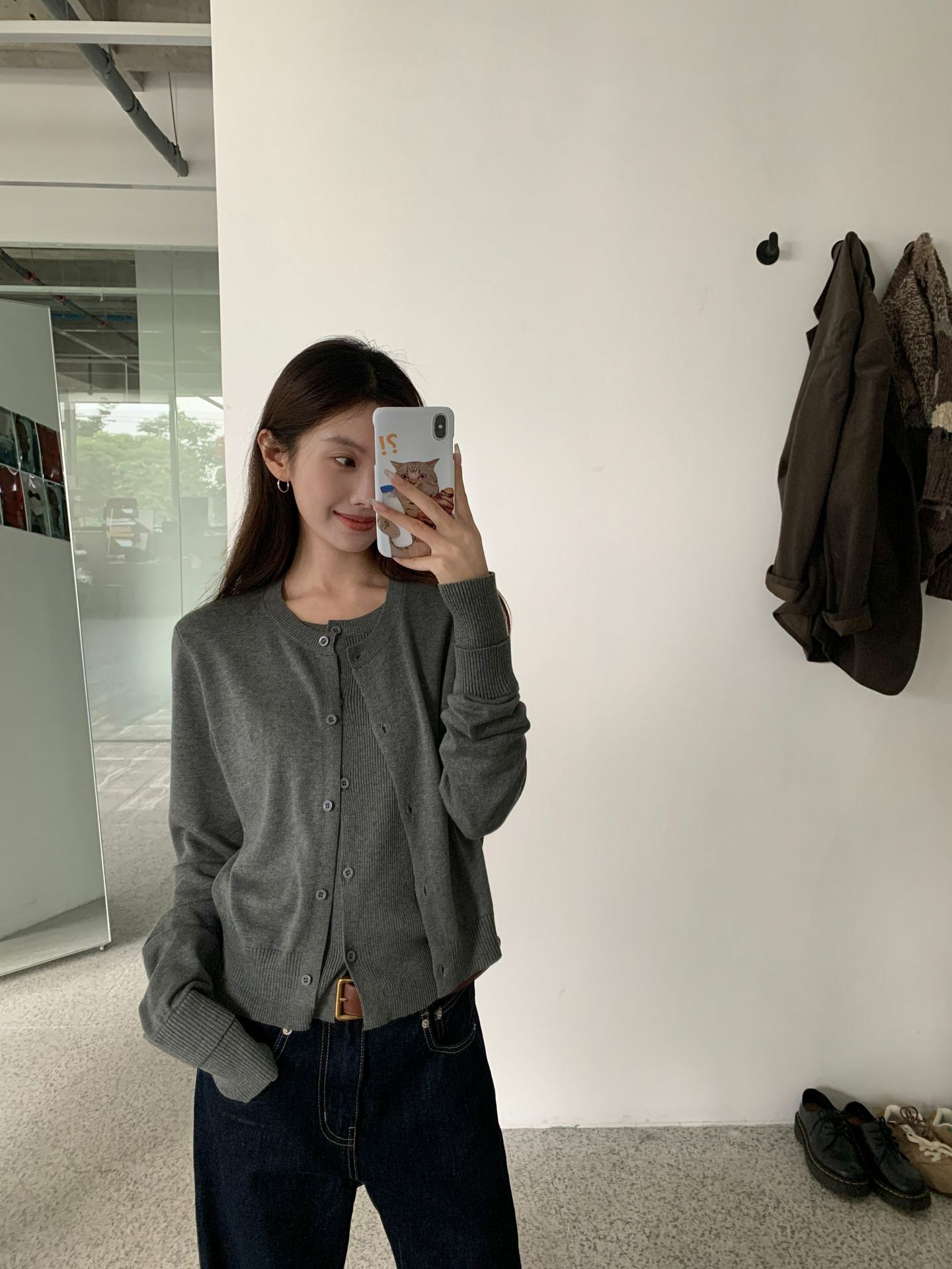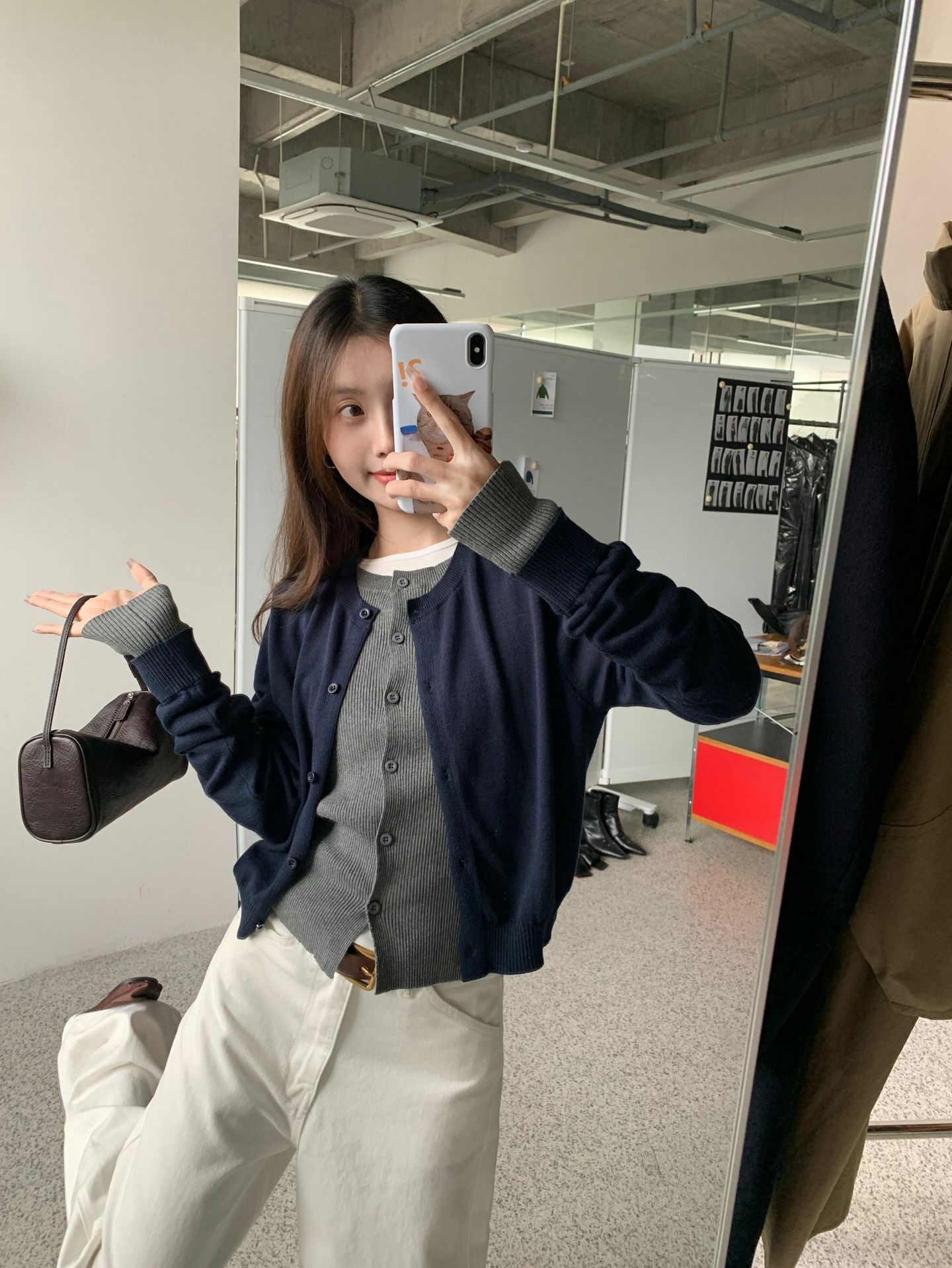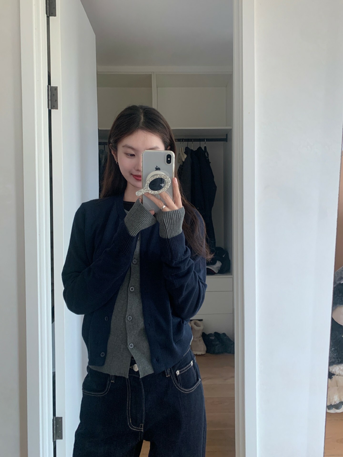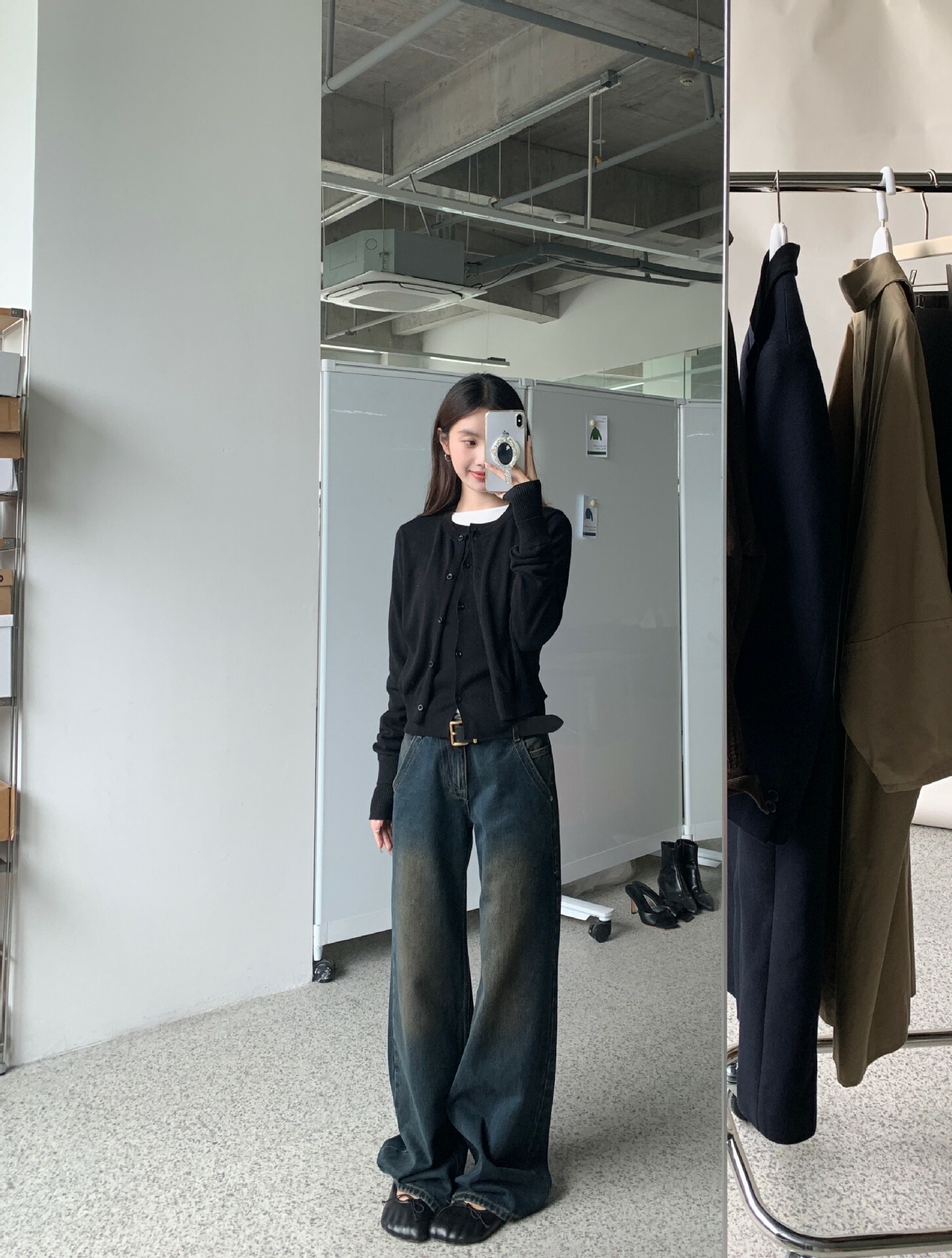 *o-ha-you*【FEAST8003】2024新款秋季小眾拼接假兩件針織衫小個子設計感氣質開襟衫-3色