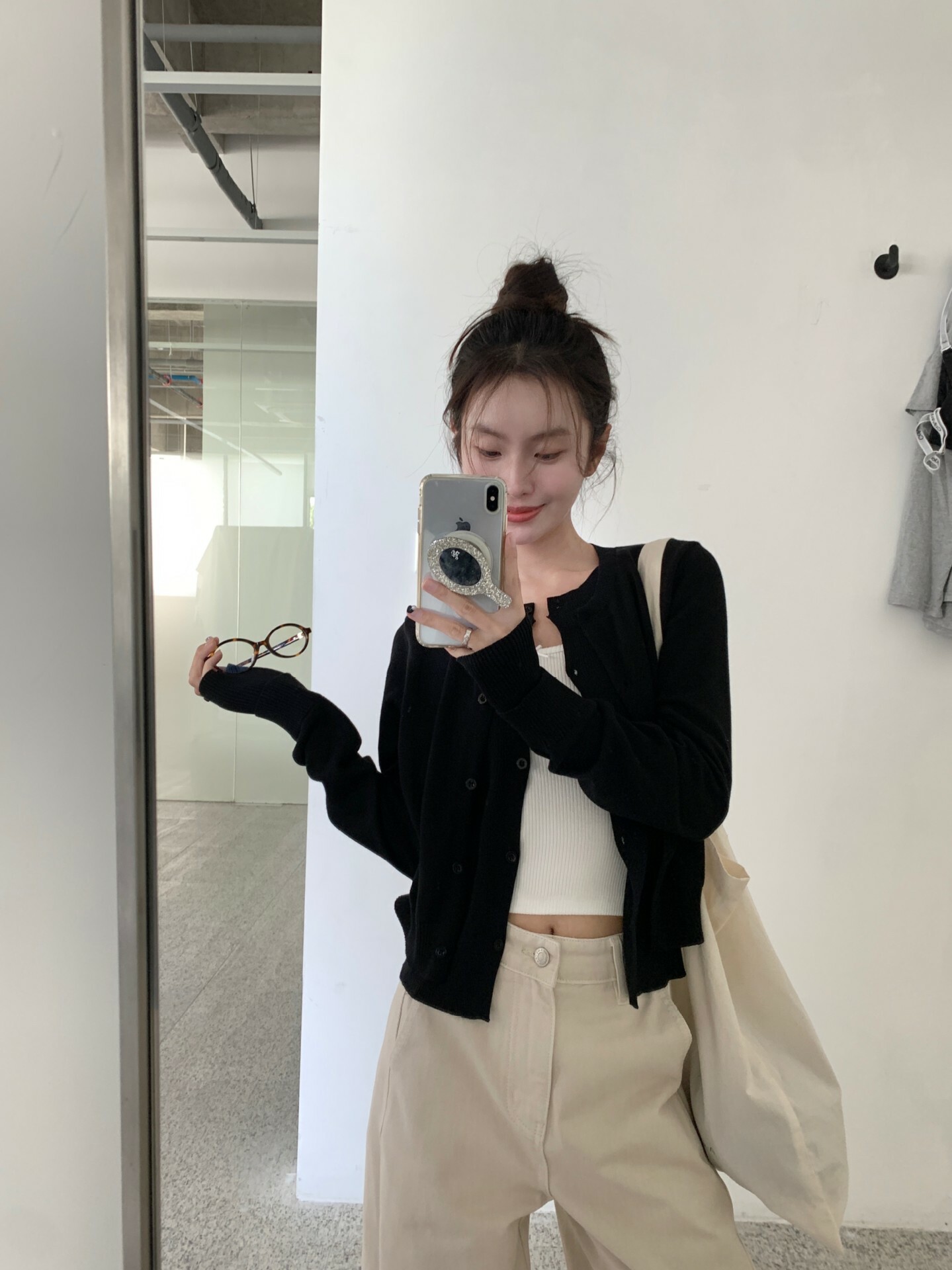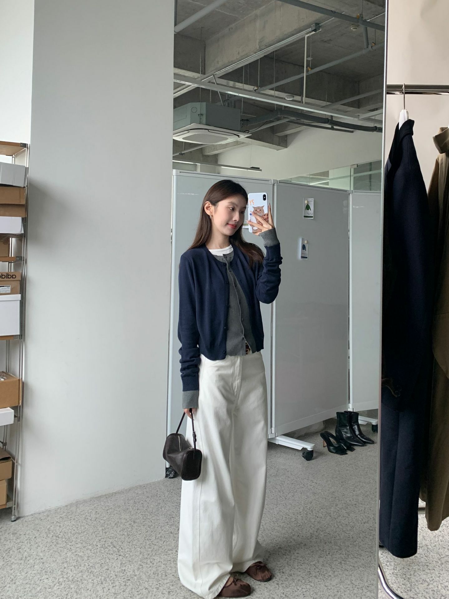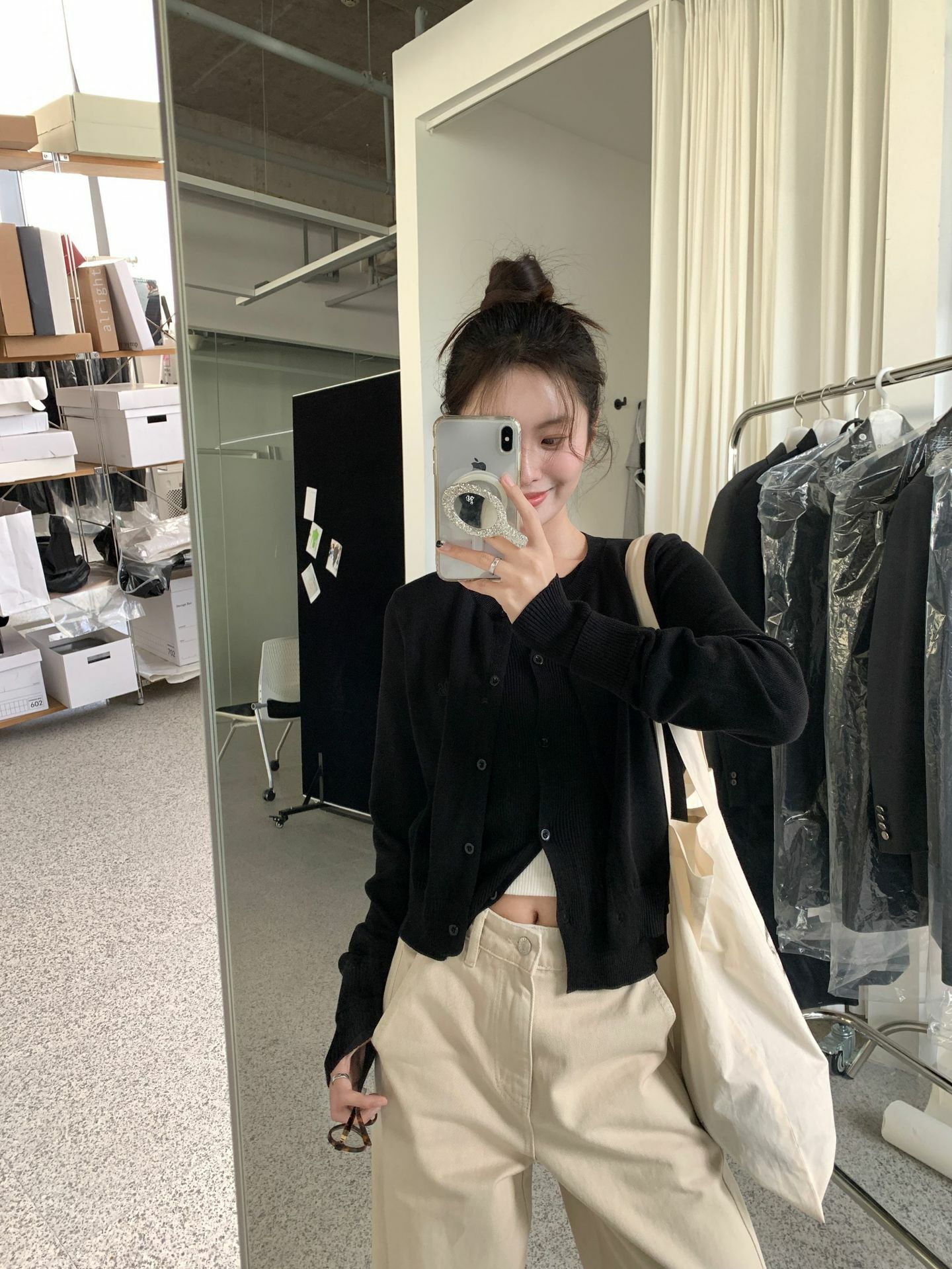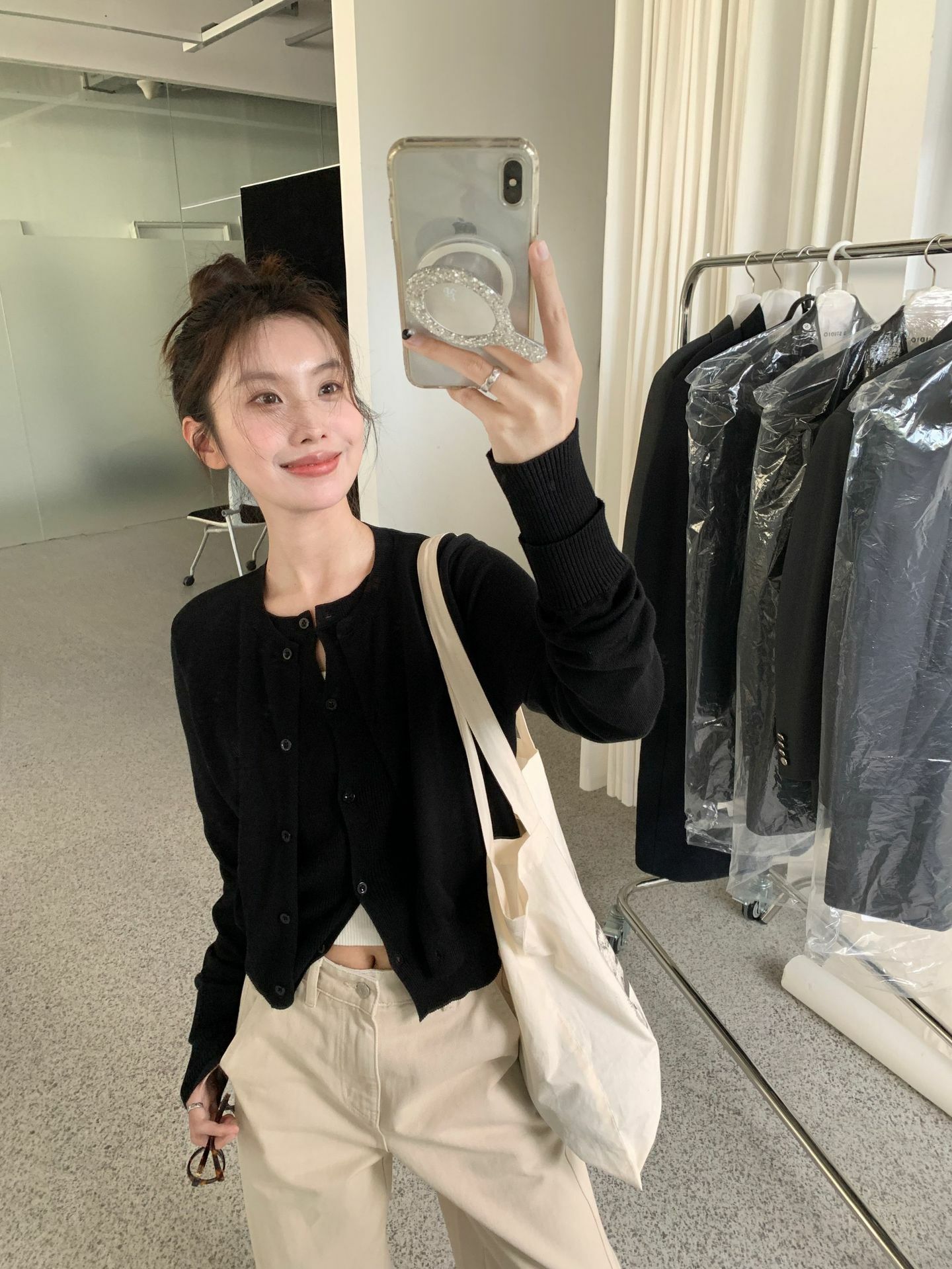 *o-ha-you*【FEAST8003】2024新款秋季小眾拼接假兩件針織衫小個子設計感氣質開襟衫-3色
