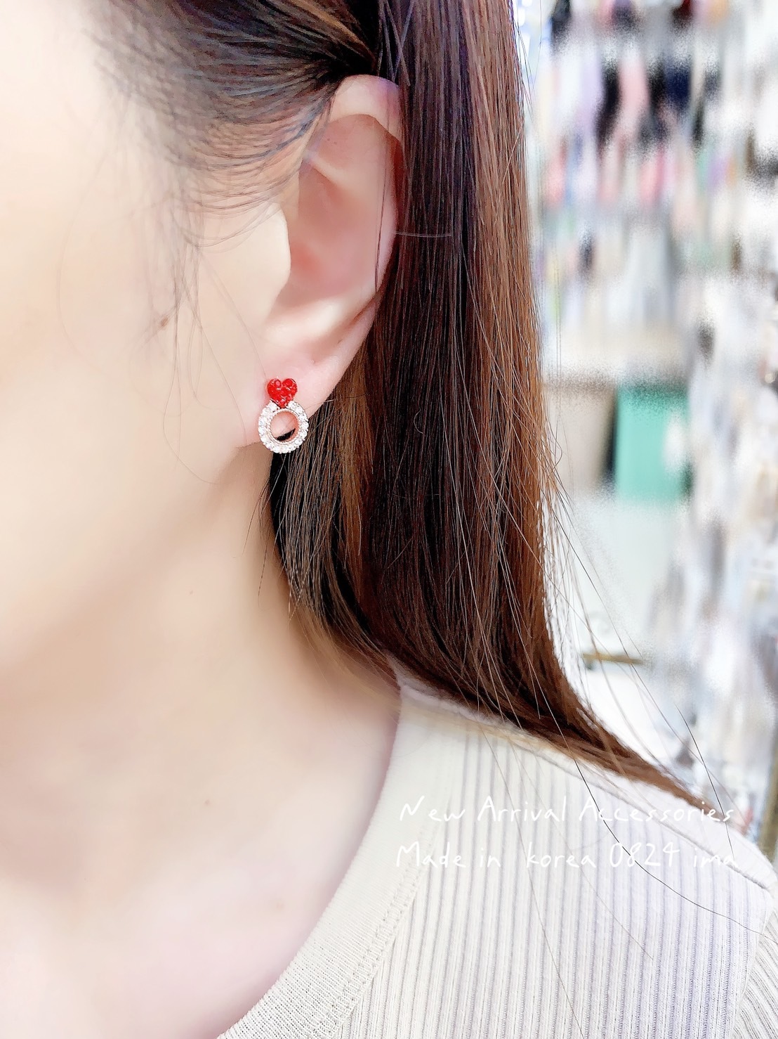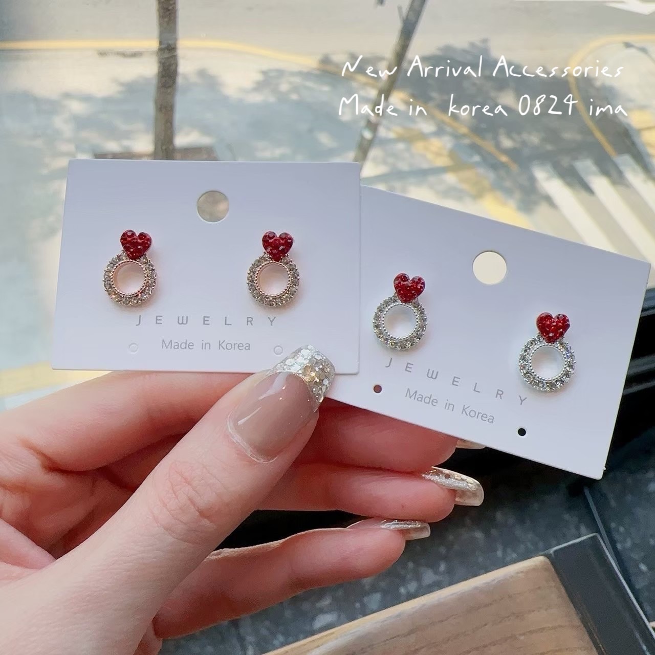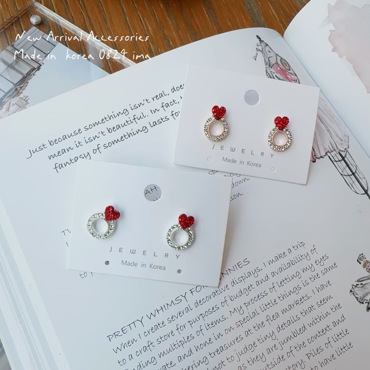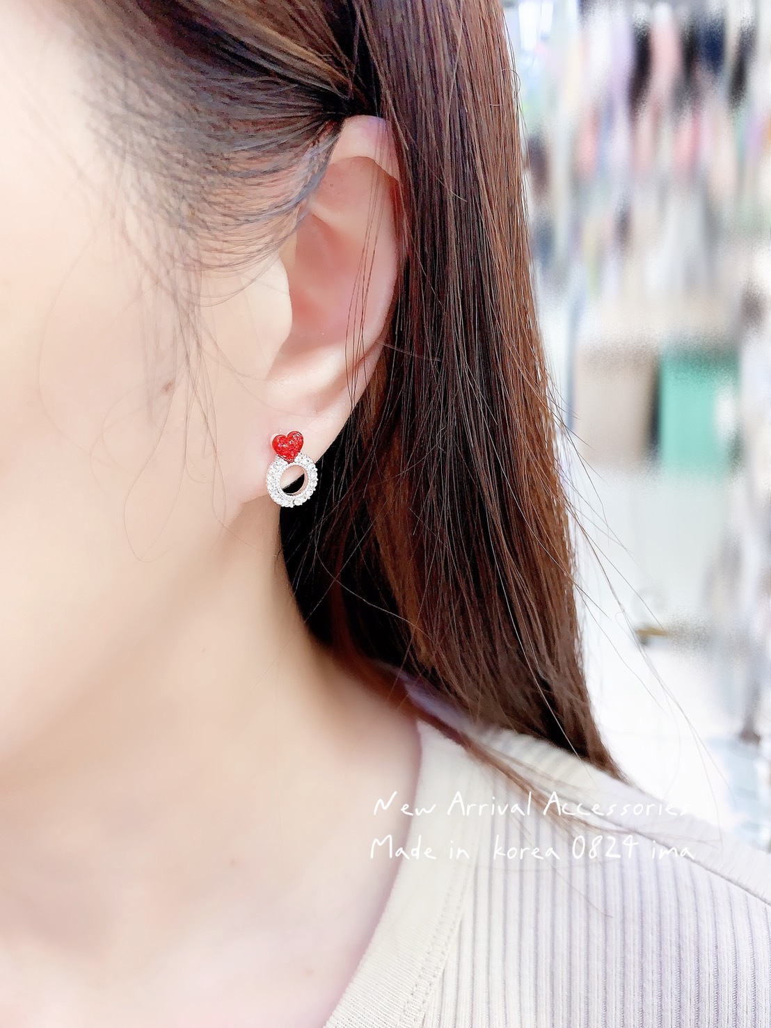 *o-ha-you*【FEM204921】韓KOREA俏麗甜心愛心圓環滿鑽純銀耳針耳環