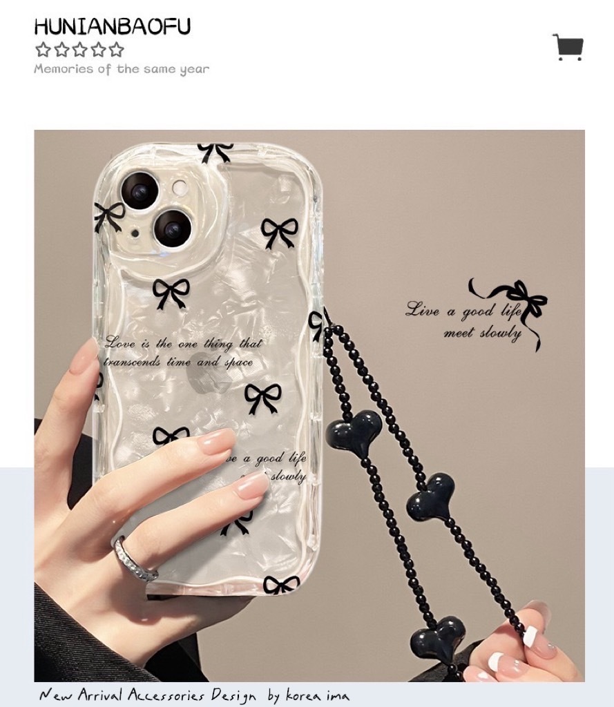 *o-ha-you*【FEM204925】絕美款滿版蝴蝶結手機殼附贈串珠愛心吊飾