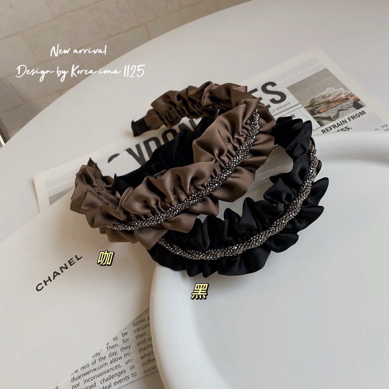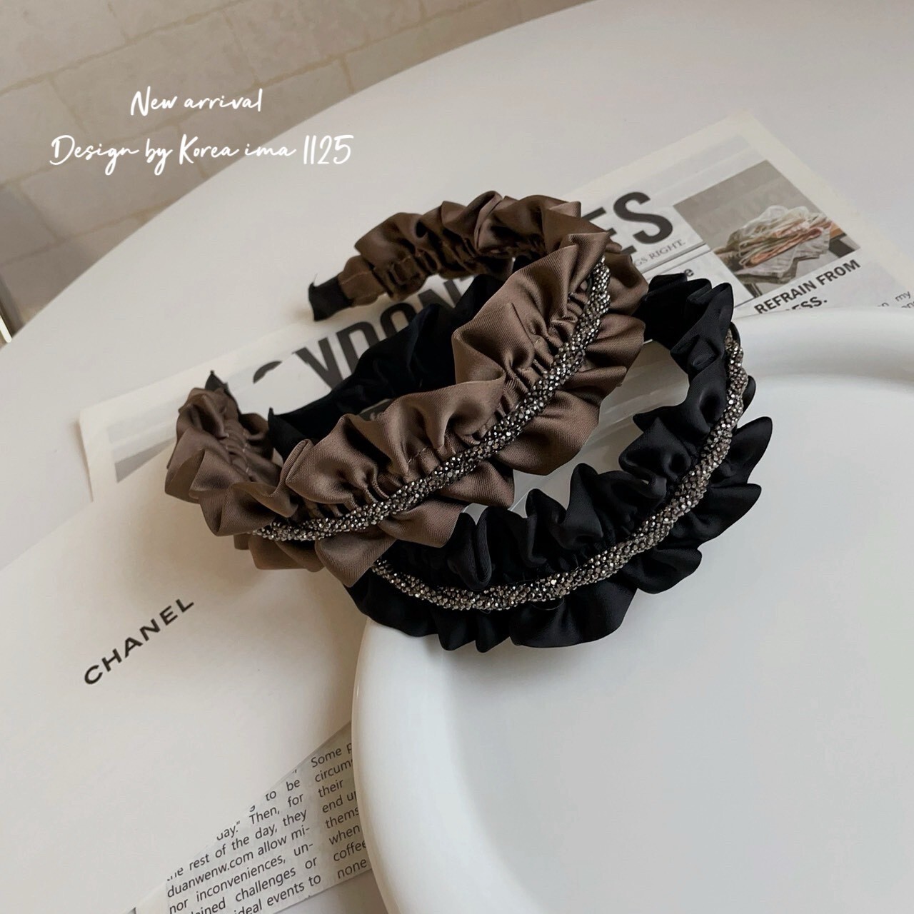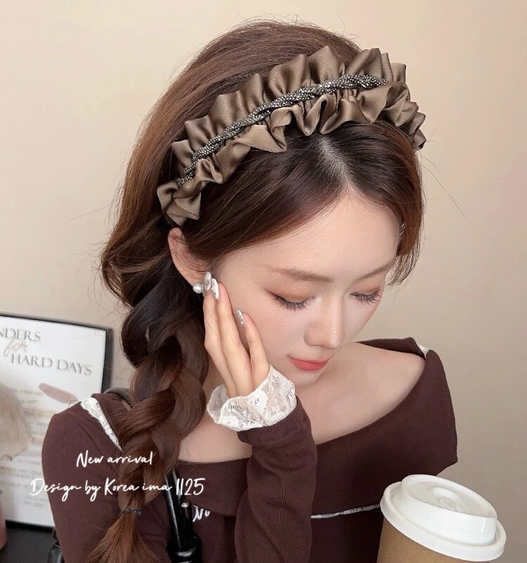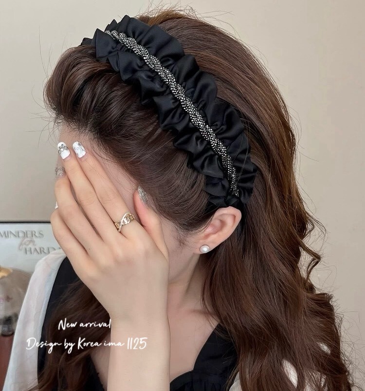 *o-ha-you*【FEM204961】氣質名媛高顱頂閃亮亮荷葉邊髮圈髮箍