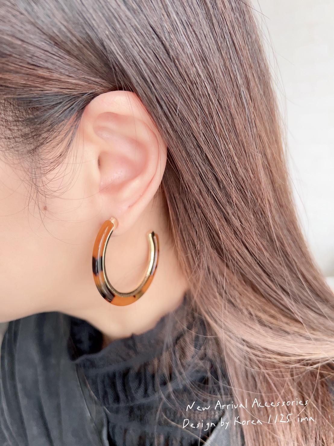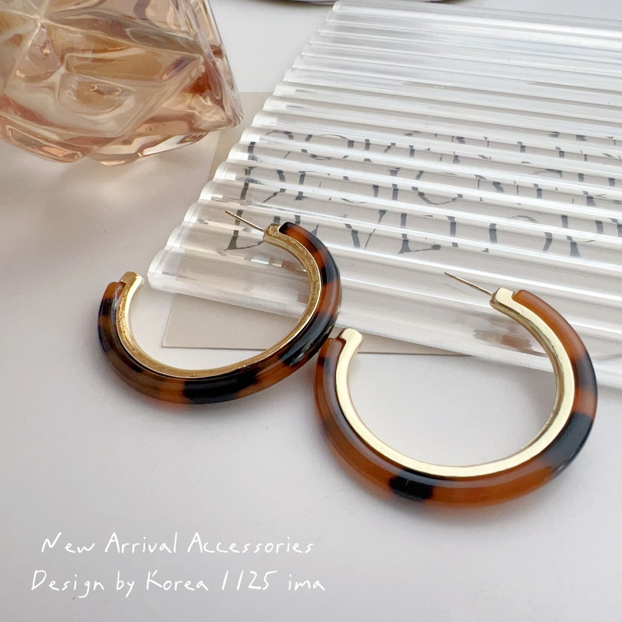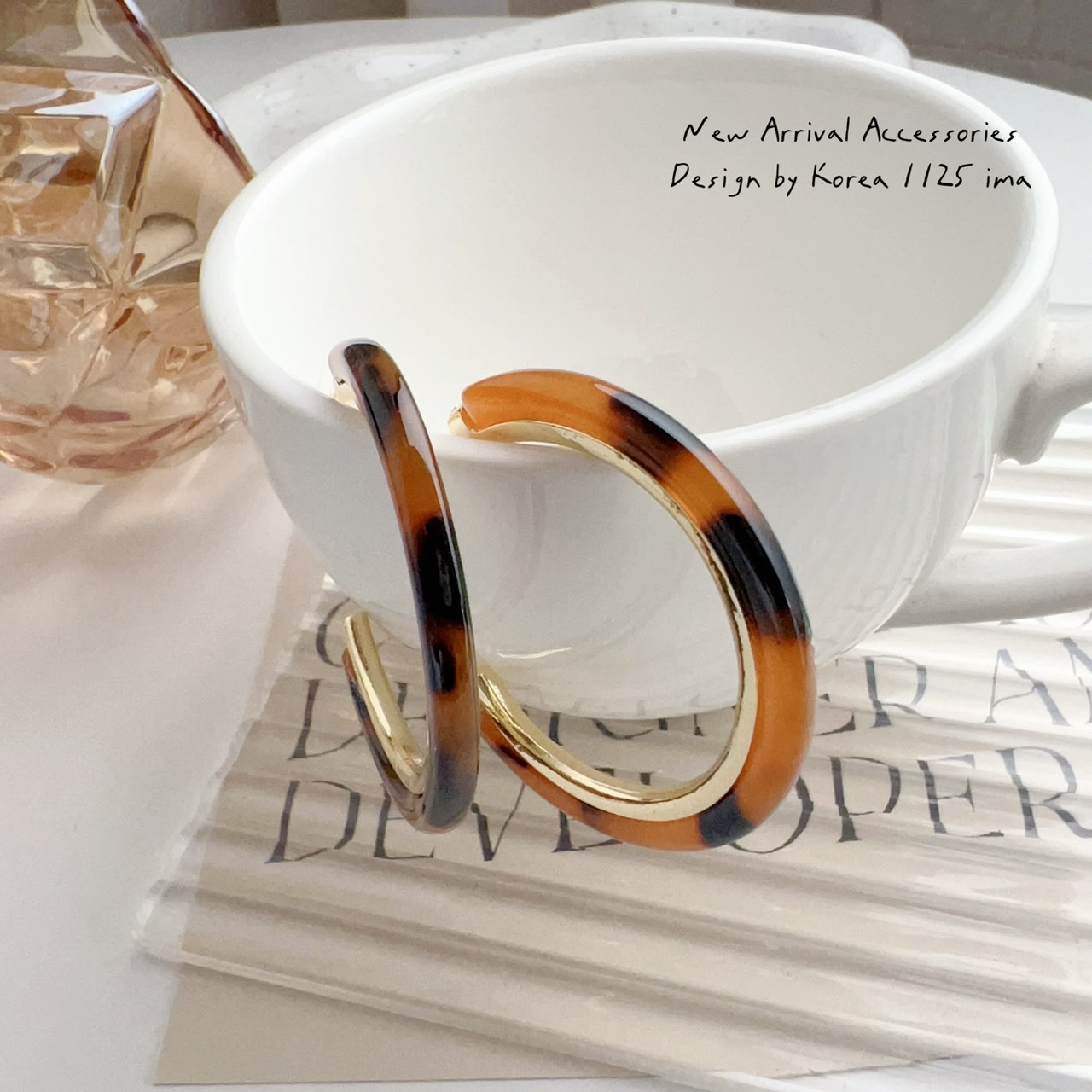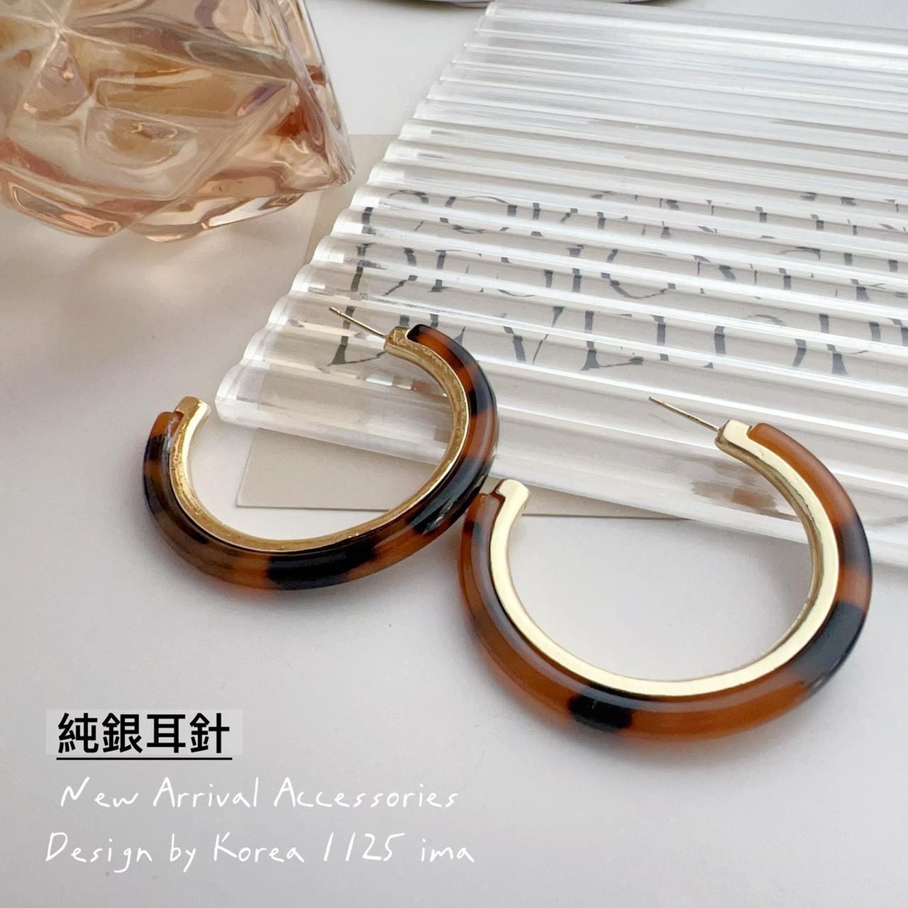 *o-ha-you*【FEM204972】趙露思同款玳瑁顏色純銀耳針C圈耳環
