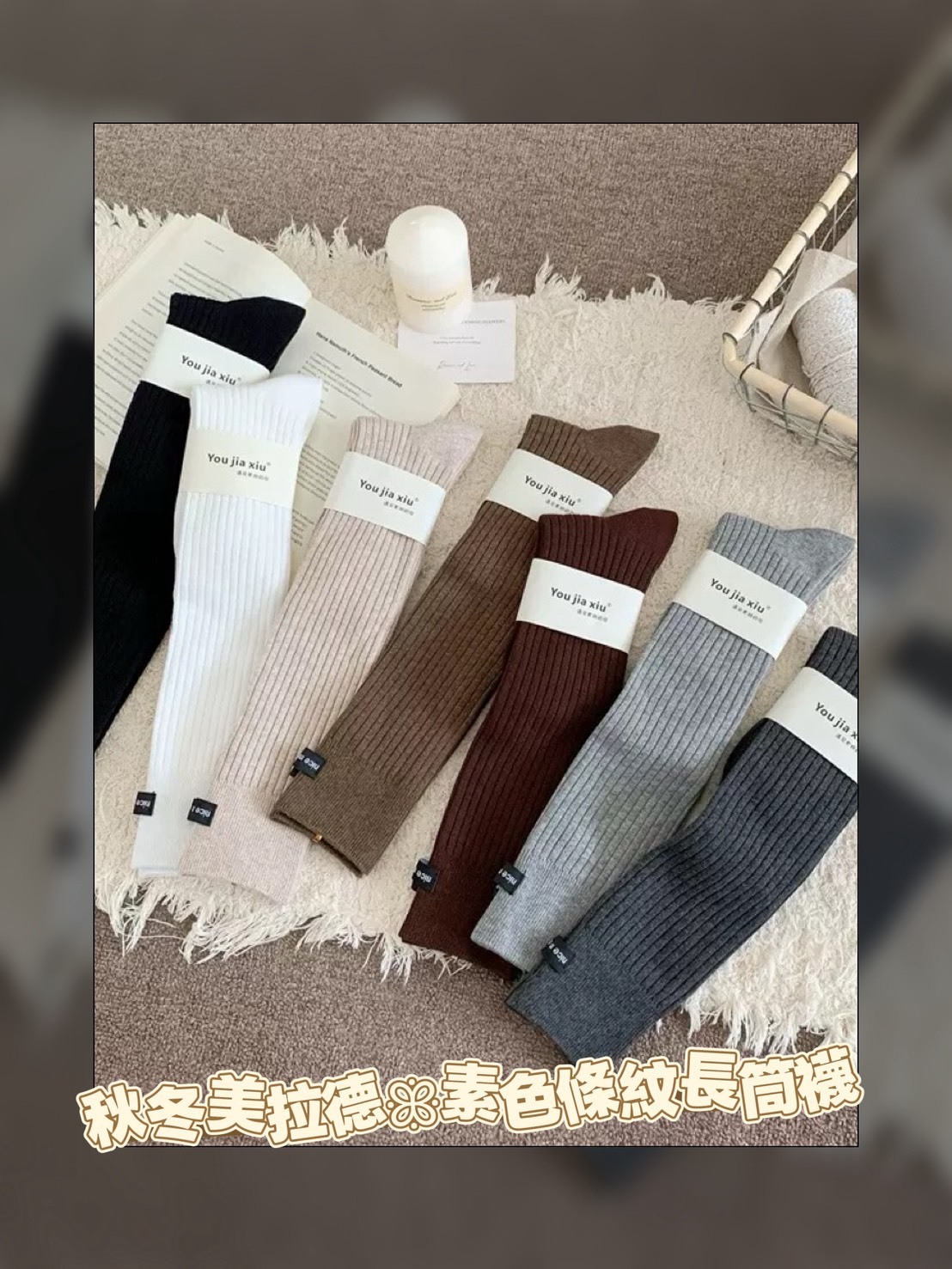 ♥秋冬美拉德ꕥ素色條紋長筒襪