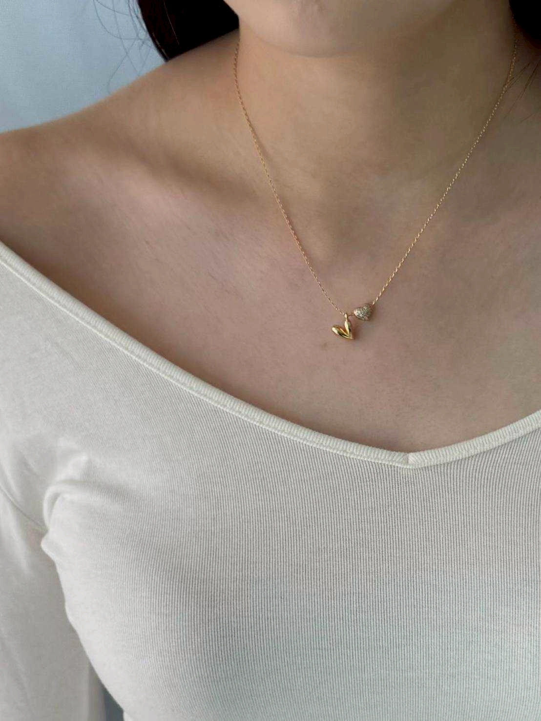 *o-ha-you*【FEM204981】韓KOREA高級系列簡約雙愛心鎖骨短項鍊-2色